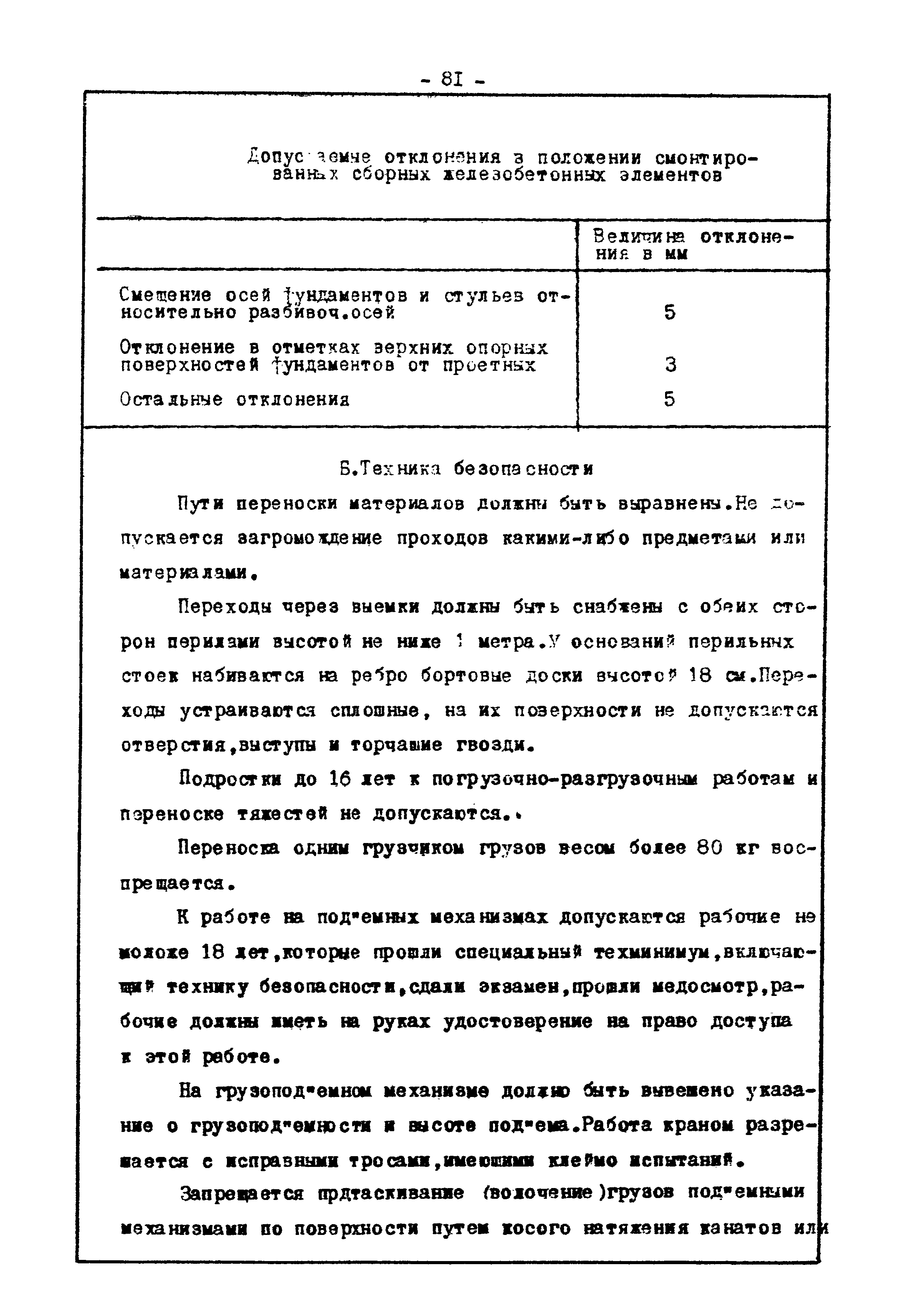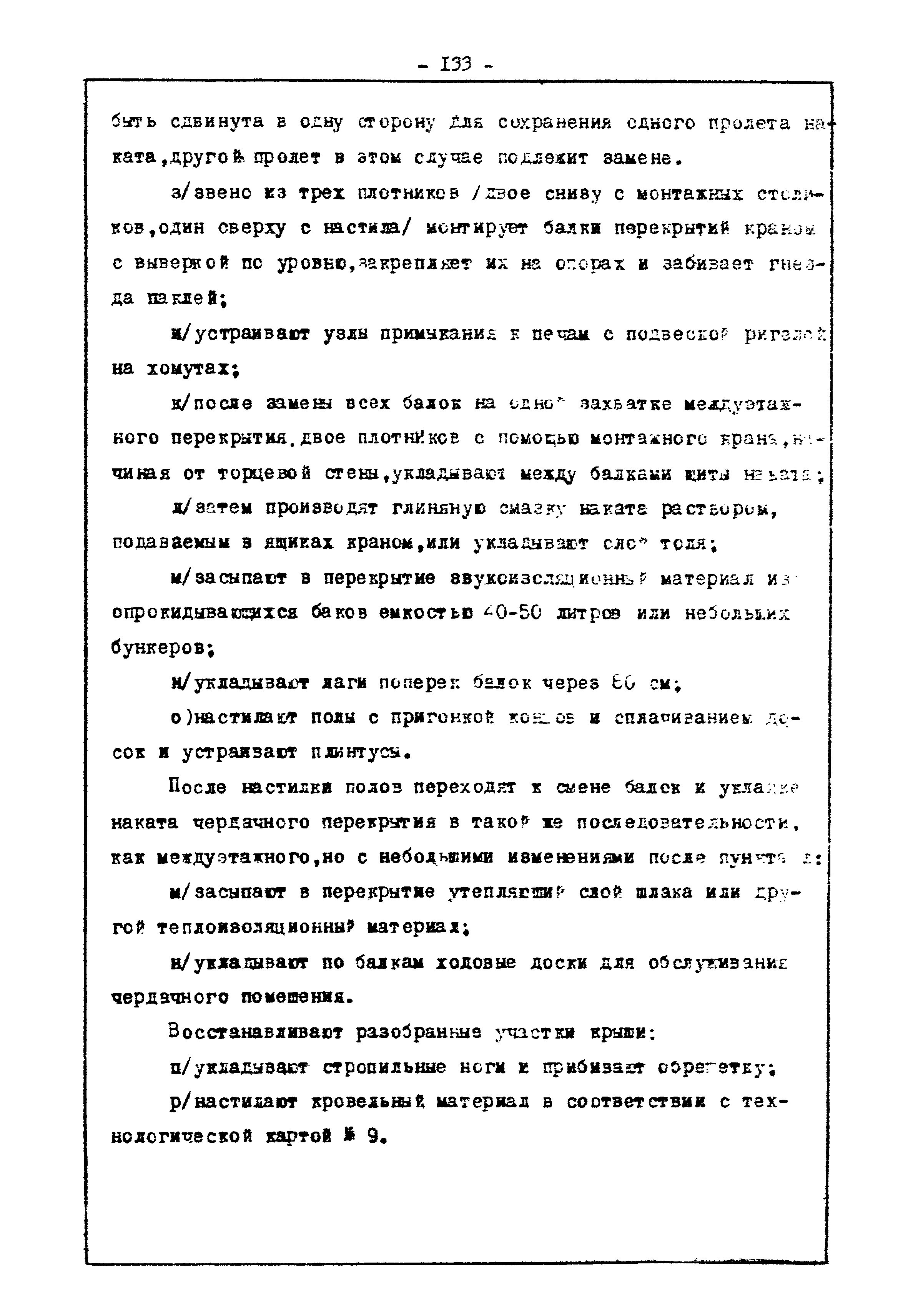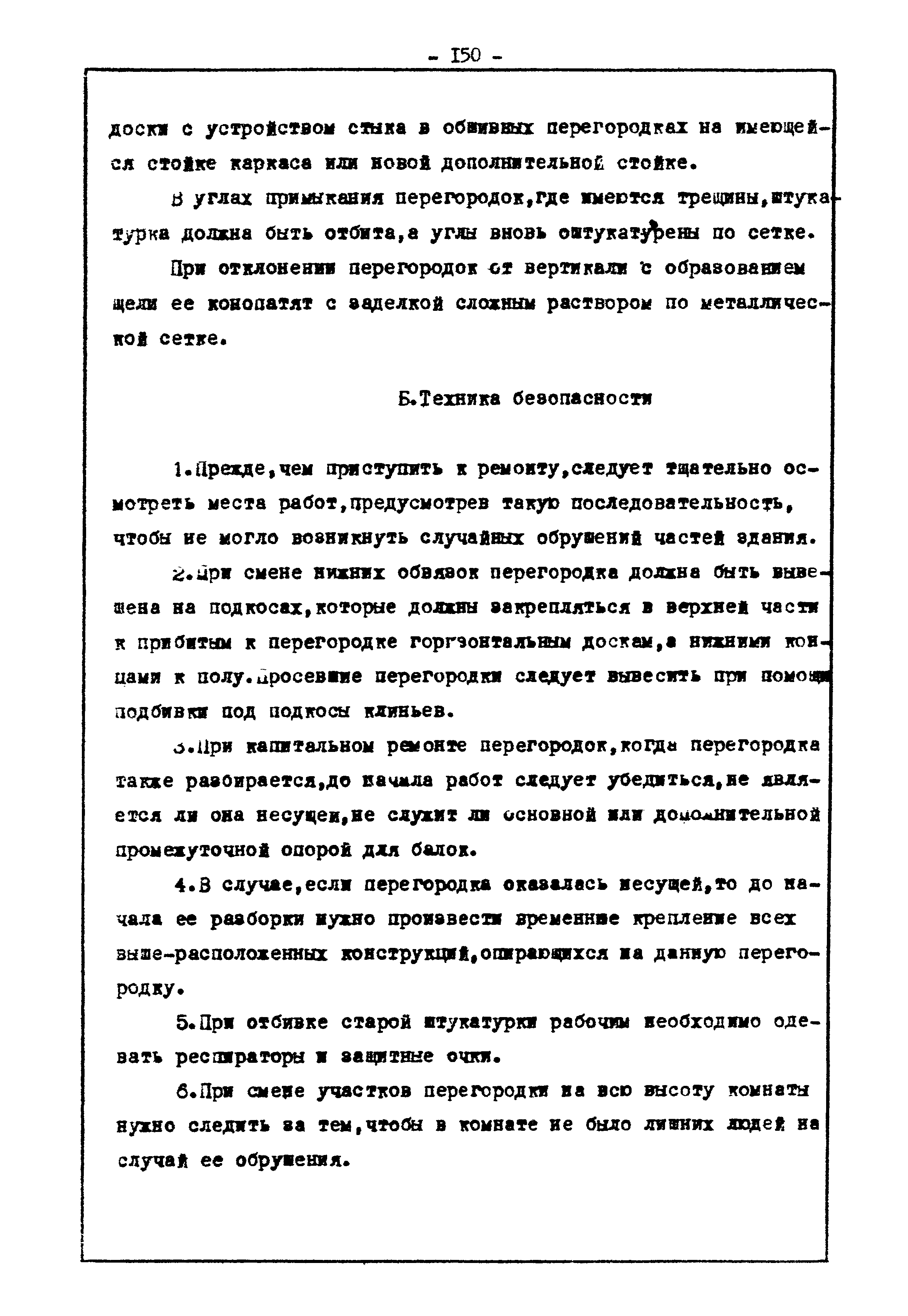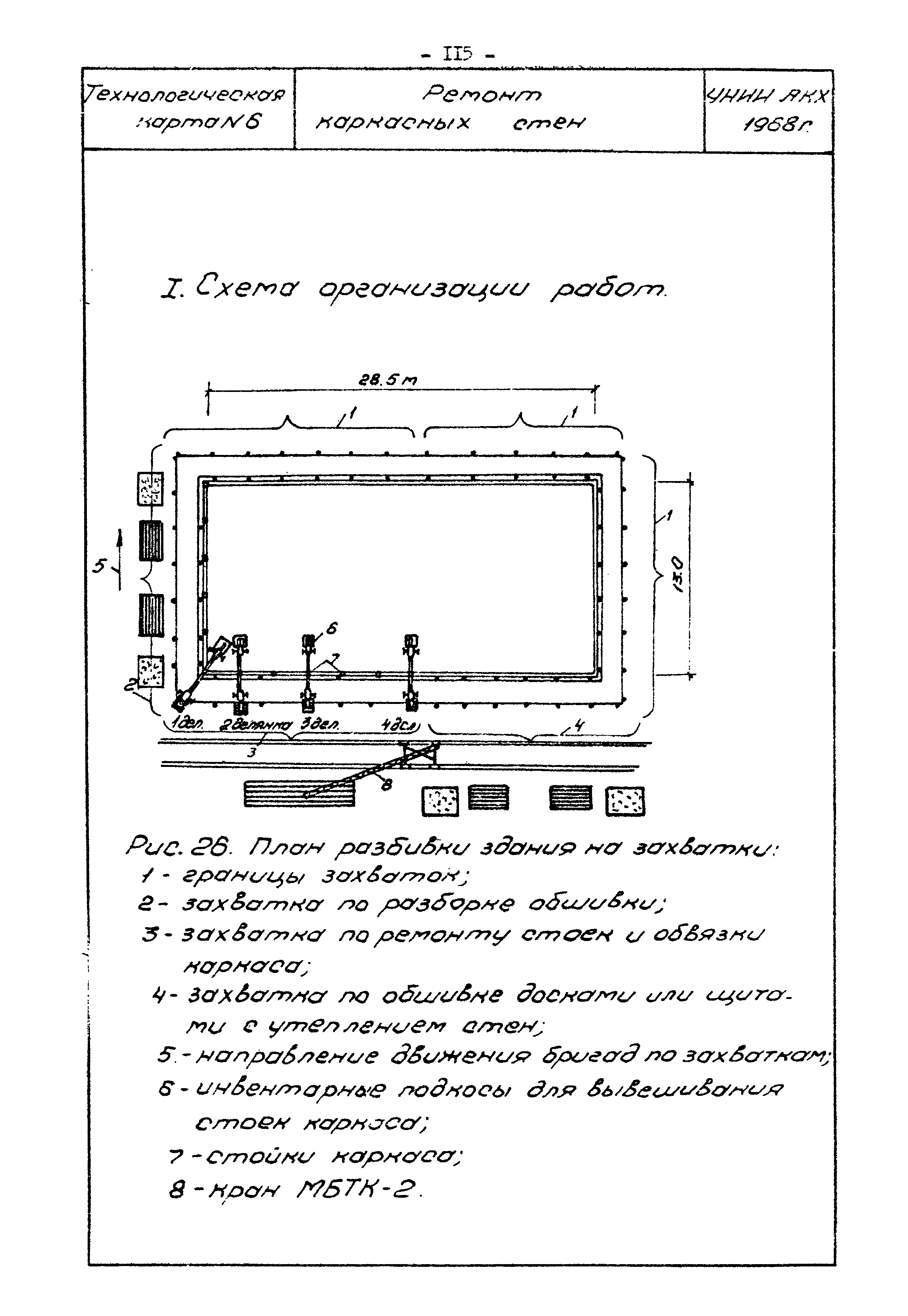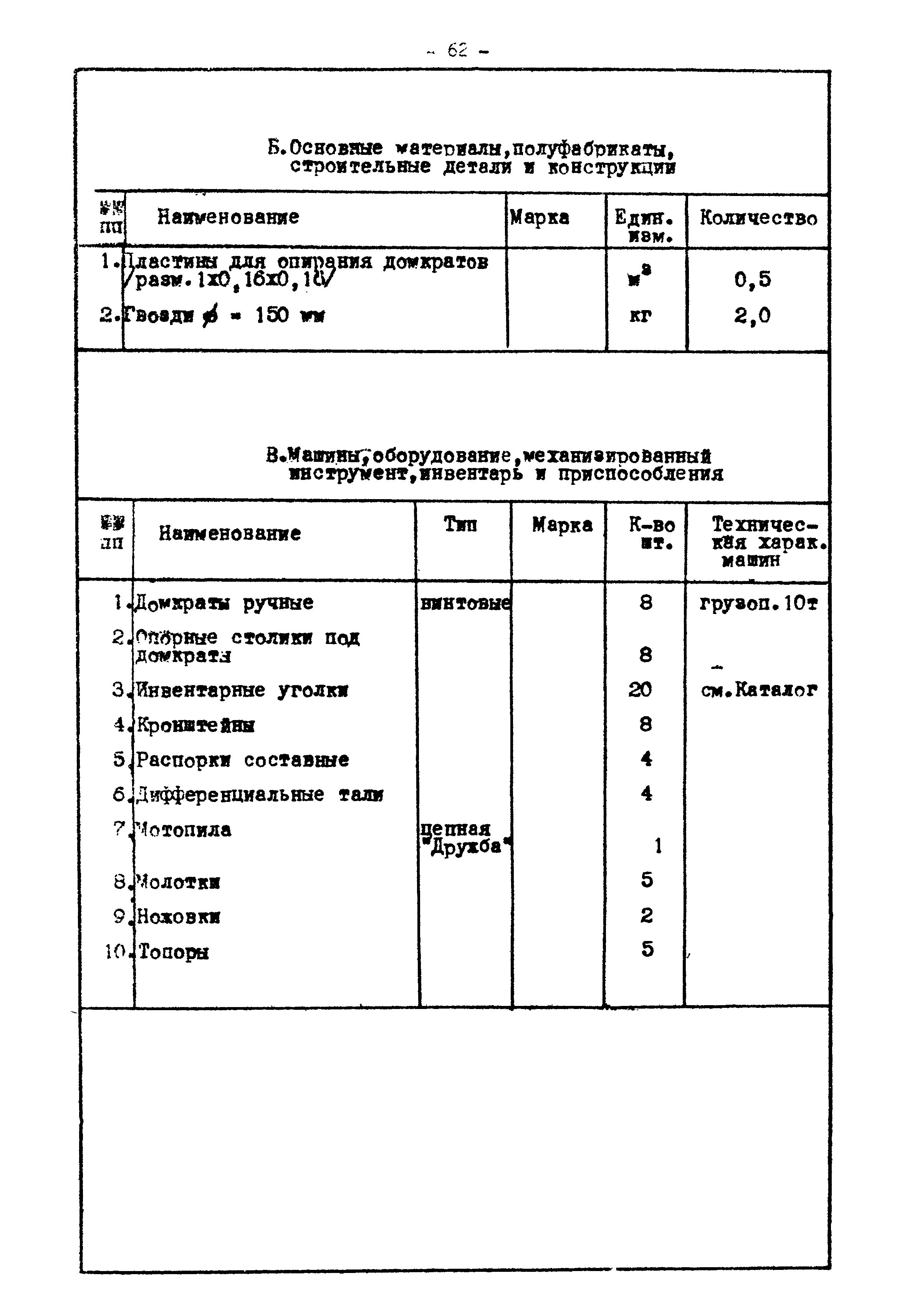 Каталог индустриальных конструкций, машин, механизмов и технологические карты для капитального ремонта деревянных жилых домов| Статус: | справочные материалы, мп, тпр | | Название рус.: | Каталог индустриальных конструкций, машин, механизмов и технологические карты для капитального ремонта деревянных жилых домов | | Дата добавления в базу: | 01.10.2014 | | Дата актуализации: | 01.01.2021 | | Область применения: | Каталог содержит индустриальные конструкции, рекомендуемые для ремонта: фундаментов и цоколя (как в обычных условиях, так и в грунтах, подверженных морозному пучению), стен, перекрытий и перегородок. Во втором разделе приведены машины, механизмы, приспособления и инструмент необходимые для механизации: земляных работ, вывешивания и поднимания домов, вертикального транспорта, погрузо-разгрузочных, плотнично-столярных и отделочных работ. | | Оглавление: | Пояснительная записка 1. Индустриальные конструкции и детали 1.1 Фундаменты и цоколь 1.2 Стены 1.3 Перекрытия 1.4 Перегородки 2. Машины, механизмы, приспособления и инструмент 2.1 Машины для земляных работ. 2.2 Приспособления для вывешивания и поднимания домов 2.3 Машины и механизмы для вертикального транспорта 2.4 Погрузочно-разгрузочная и транспортная машина 2.5 Станки и инструмент для плотнично-столярных работ 2.6 Механизмы и инструмент для отделочных работ 2.7 Леса и подмости . 3. Технологические карты 3.1 Вывешивание углов и участков стен дома домкратами 3.2а Поднятие 2х этажного дома домкратами на кронштейнах 3.2б Поднятие 2х этажного дома лебедками на мачтах или шеврах 3.3 Замена деревянных стульев и цоколя сборными железобетонными элементами 3.4 Ремонт простенков, и замена отдельных венцов стен 3.5 Усиление и ремонт перекрытий 3.6 Ремонт каркасных стен 3.7 Замена перекрытий балками со щитовым канатом 3.8 Ремонт перегородок 3.9 Смена асбестоцементной кровли Приложение 1. Расчет конструкций Приложение 2. Требования к древесине Приложение 3. Антисептики, антипирены, инсектициды Приложение 4. Пример диспетчеризации связи на ремонте деревянных домов в Свердловском РСТ Литература | | Разработан: | Академия коммунального хозяйства им. К.Д. Памфилова Минжилкомхоза РСФСР Уральский научно-исследовательский институт АКХ