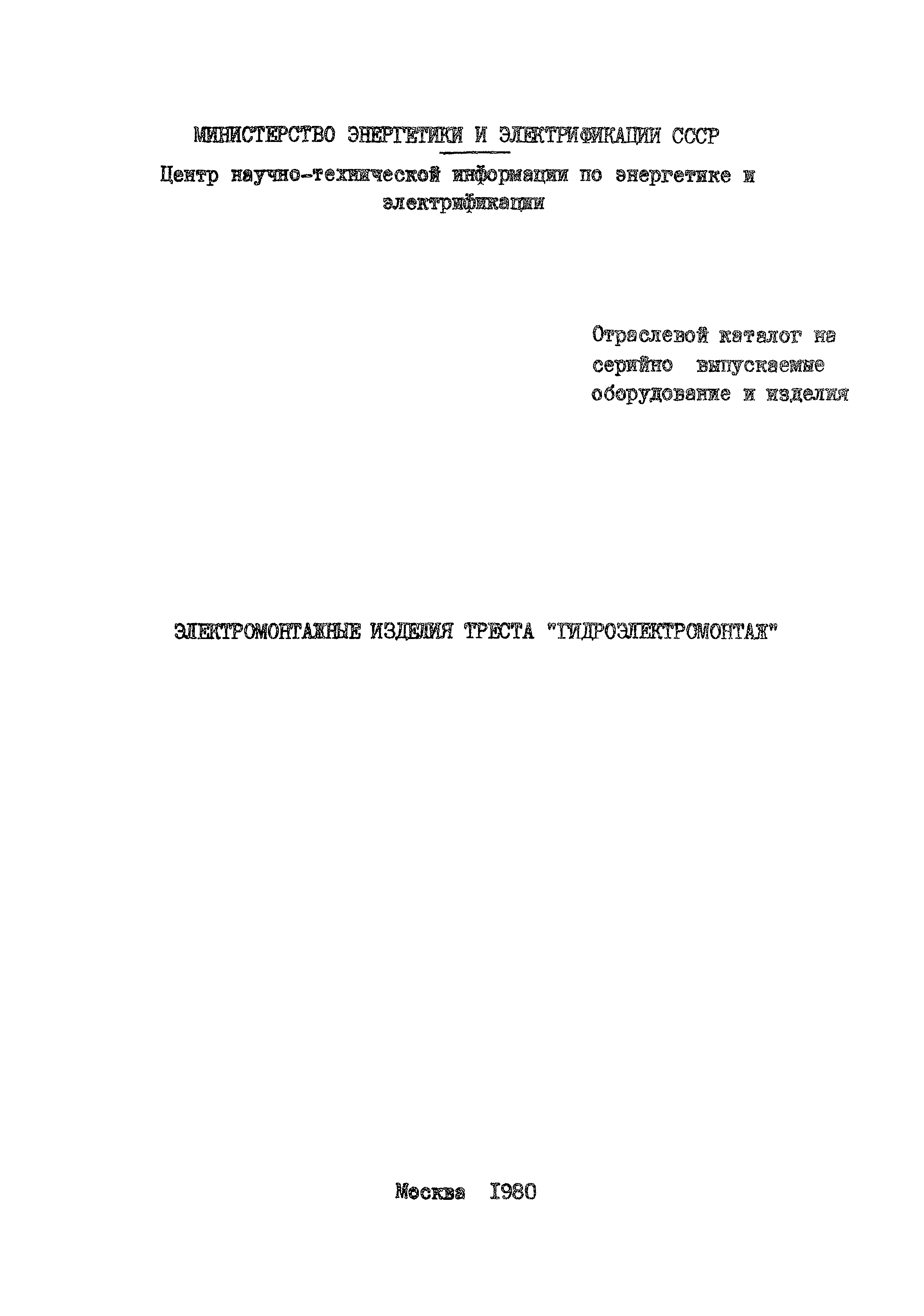 | Название рус.: | Каталоги промышленного оборудования. Электромонтажные изделия треста "Гидроэлектромонтаж" |