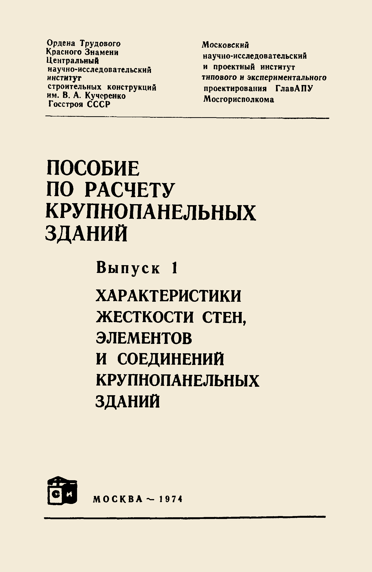 | Название рус.: | Пособие по расчету крупнопанельных зданий. Выпуск 1. Характеристики жесткости стен, элементов и соединений крупнопанельных зданий |