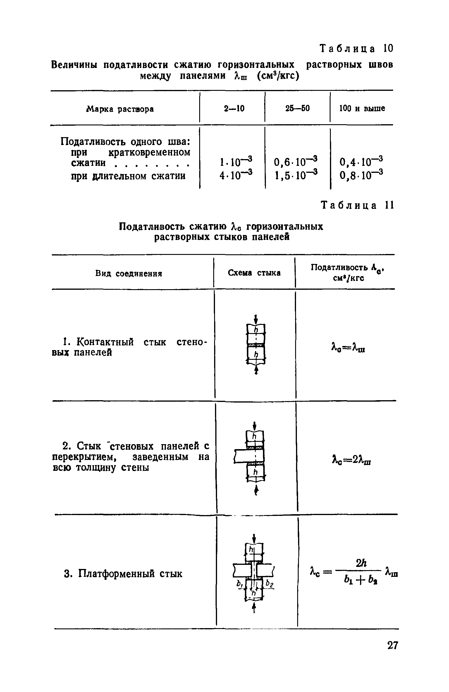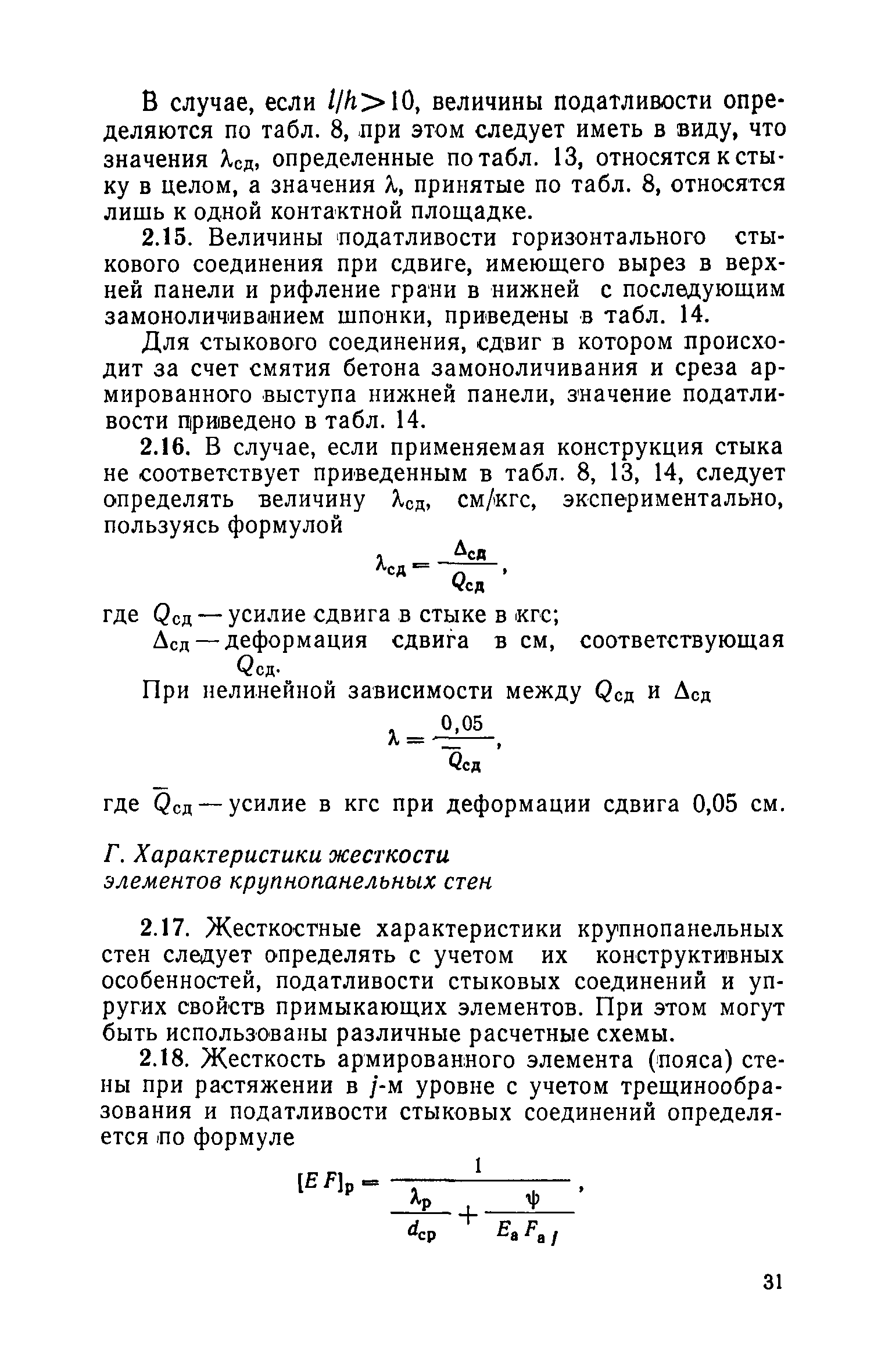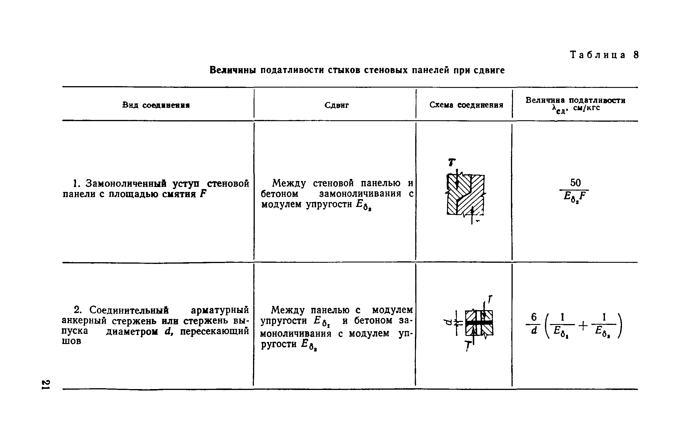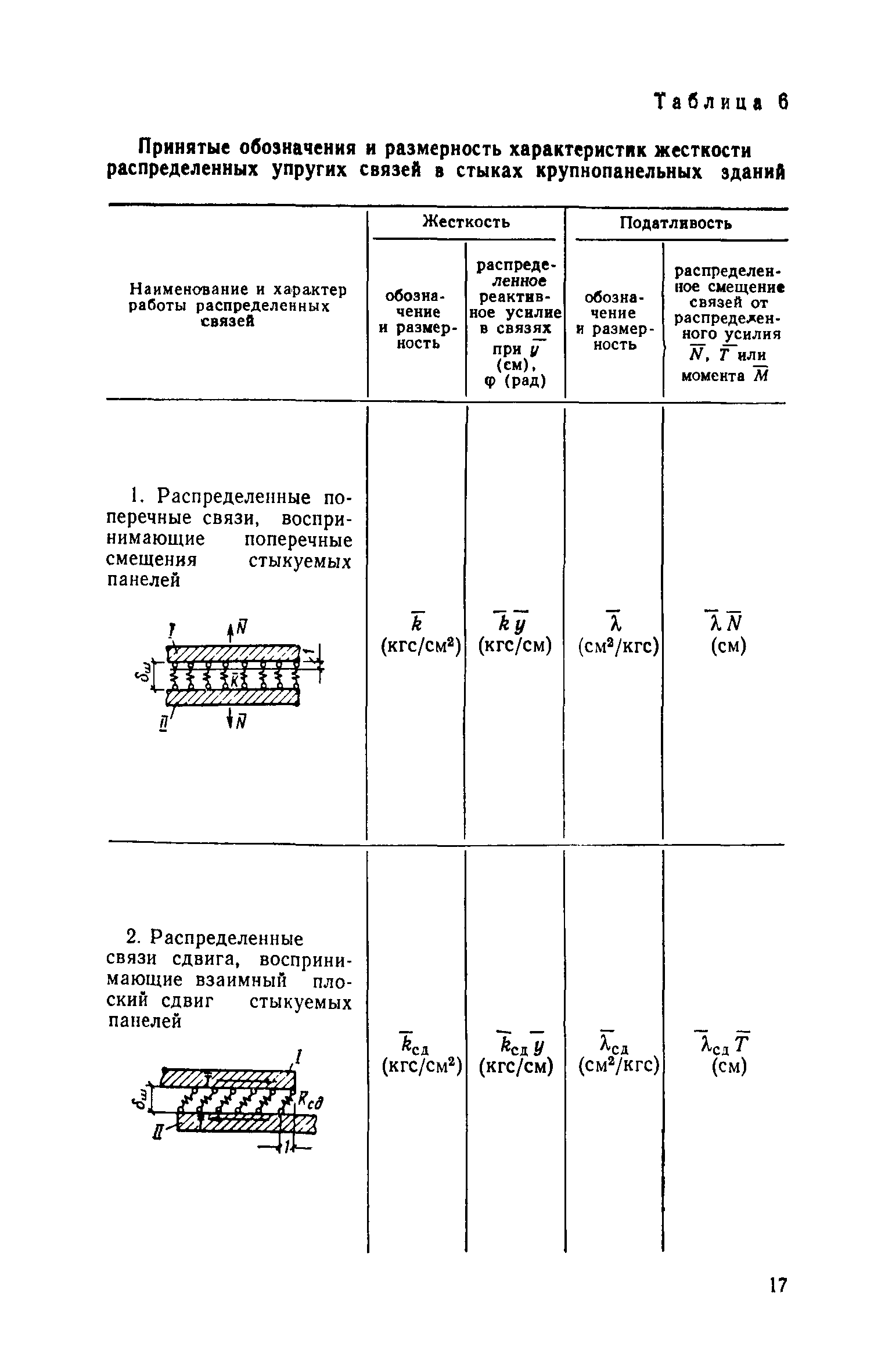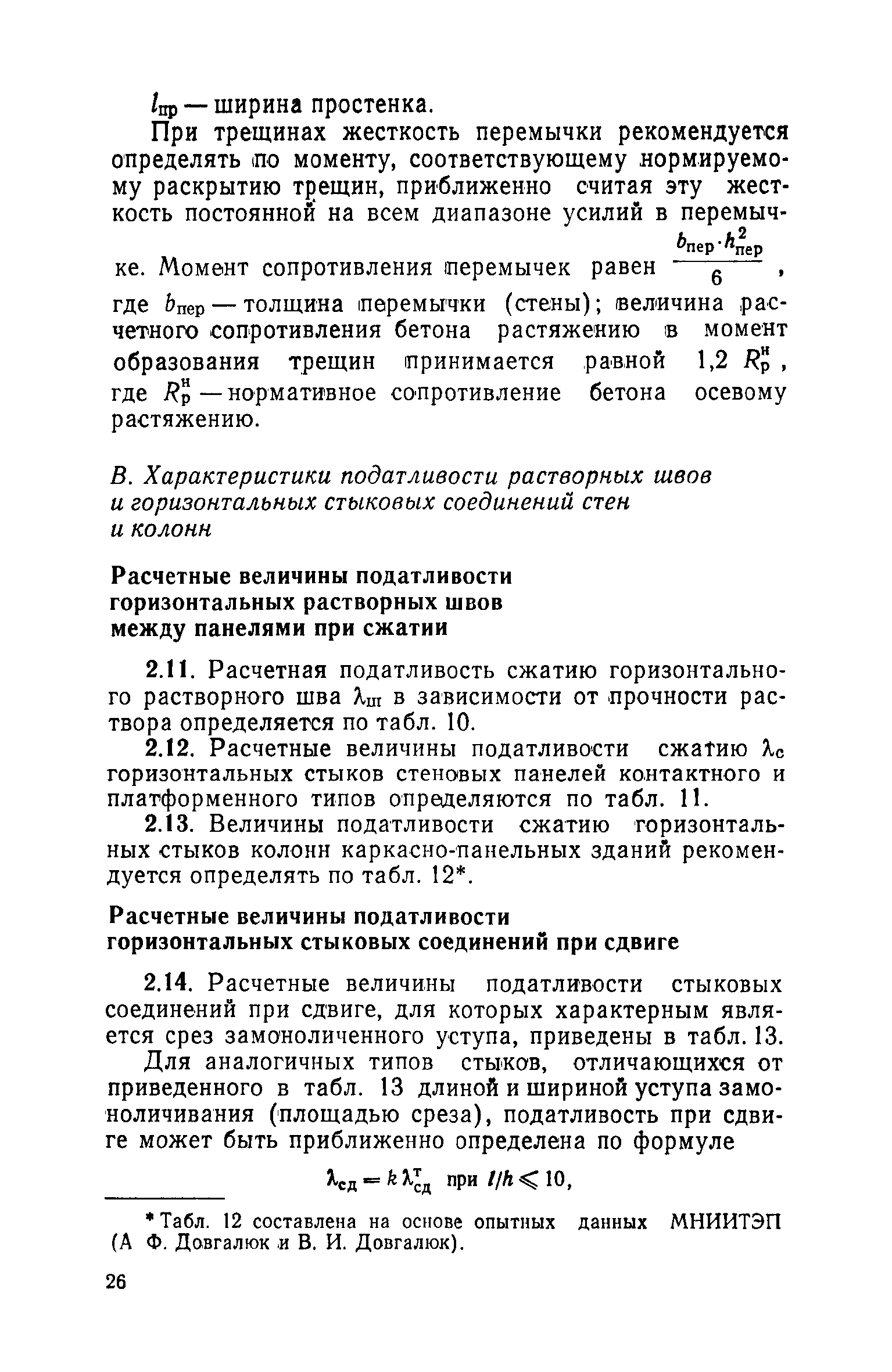 | Оглавление: | Предисловие 1. Общие указания 2. Определение характеристик жесткости элементов стен и соединений А. Характеристики жесткости стеновых панелей при перекосе Б. Характеристики податливости вертикальных стыковых соединений стен Расчетные величины податливости стыковых соединений растяжению Расчетные величины податливости вертикальных стыковых соединений сдвигу Расчетные величины податливости сдвигу соединений в виде заведенных в стены плит перекрытий Расчетные величины податливости сдвигу железобетонных перемычек над проемами В. Характеристики податливости растворных швов и горизонтальных стыковых соединений стен и колонн Расчетные величины податливости горизонтальных растворных швов между панелями при сжатии Расчетные величины податливости горизонтальных стыковых соединений при сдвиге Г. Характеристики жесткости элементов крупнопанельных стен Д. Характеристики жесткости перекрытий 3. Примеры определения податливости элементов и соединений крупнопанельных стен |