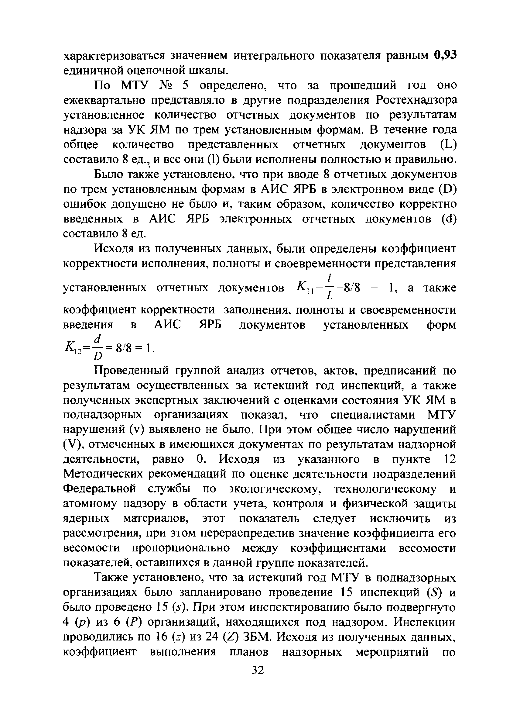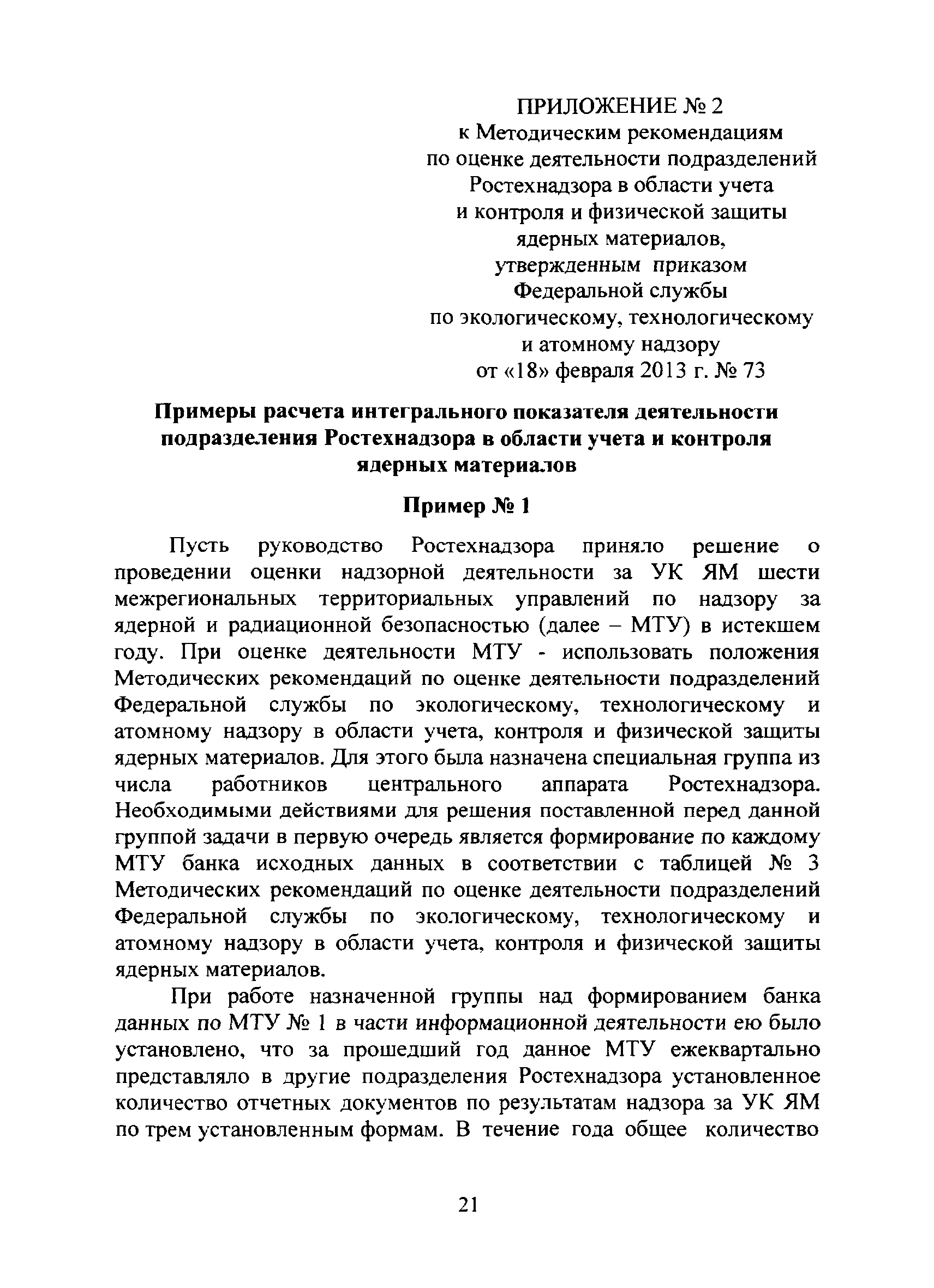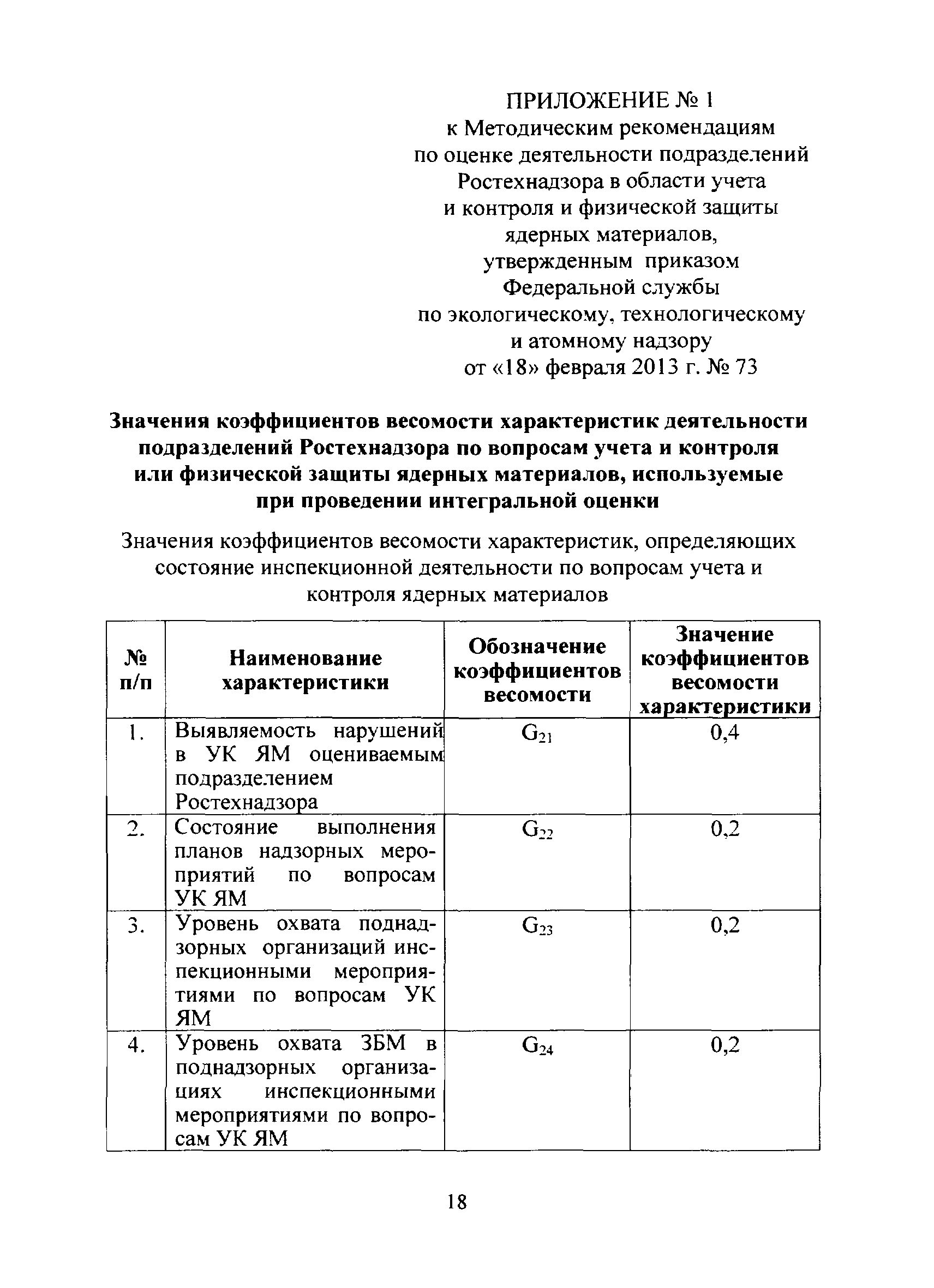 | Оглавление: | I. Общие положения II. Система показателей деятельности подразделений Ростехнадзора в области надзора за учетом, контролем и физической защитой ядерных материалов и основные расчетные зависимости для их определения III. Оценка деятельности подразделения Ростехнадзора в области надзора за учетом, контролем и физической защитой ядерных материалов IV. Исходные данные для проведения оценки деятельности подразделения Ростехнадзора в области учета и контроля или физической защиты ядерных материалов и порядок их получения Приложение №1 Значения коэффициентов весомости характеристик деятельности подразделений Ростехнадзора по вопросам учета и контроля или физической защиты ядерных материалов, используемые при проведении интегральной оценки Приложение №2 Примеры расчета интегрального показателя деятельности подразделения Ростехнадзора в области учета и контроля ядерных материалов |