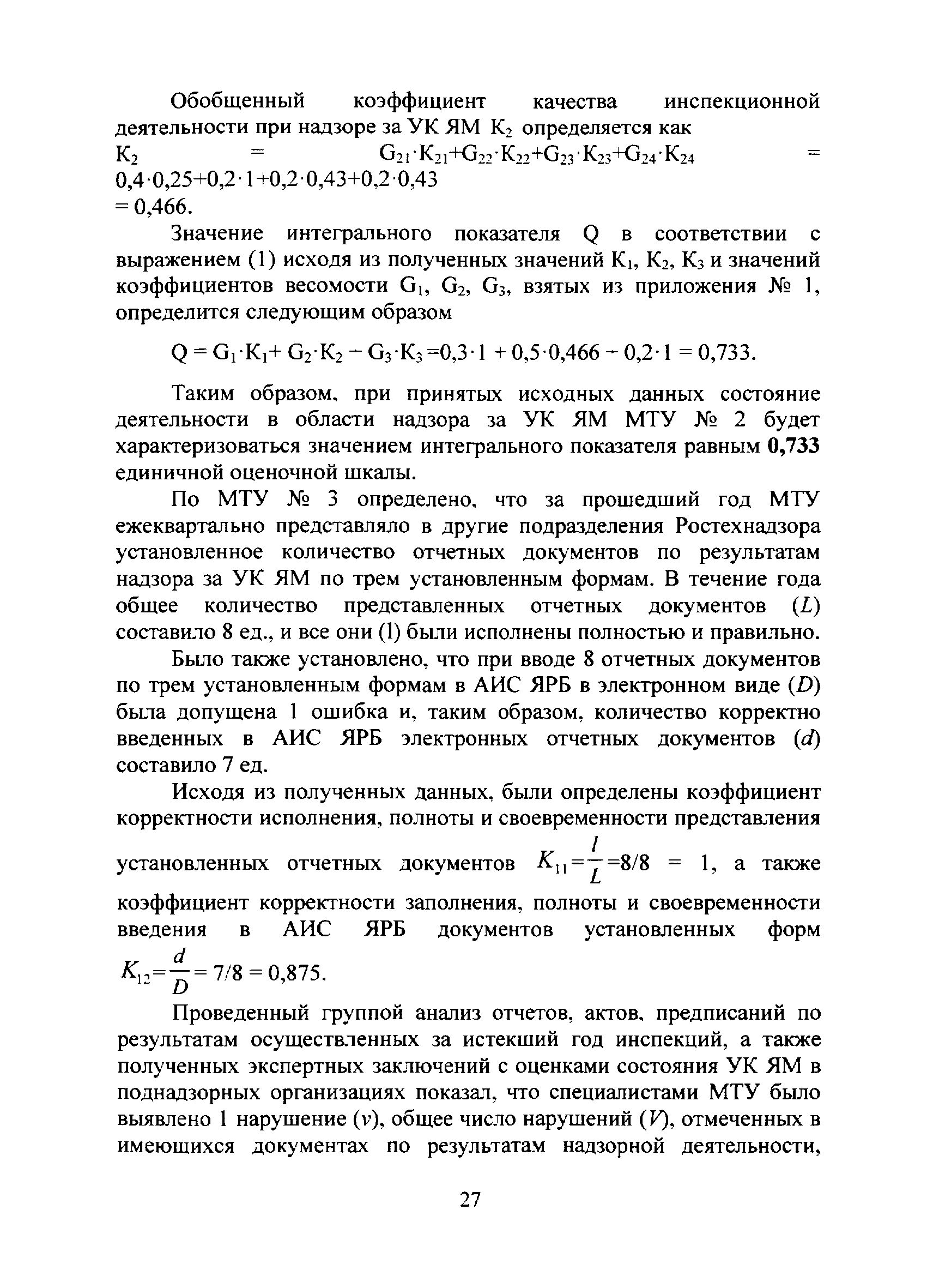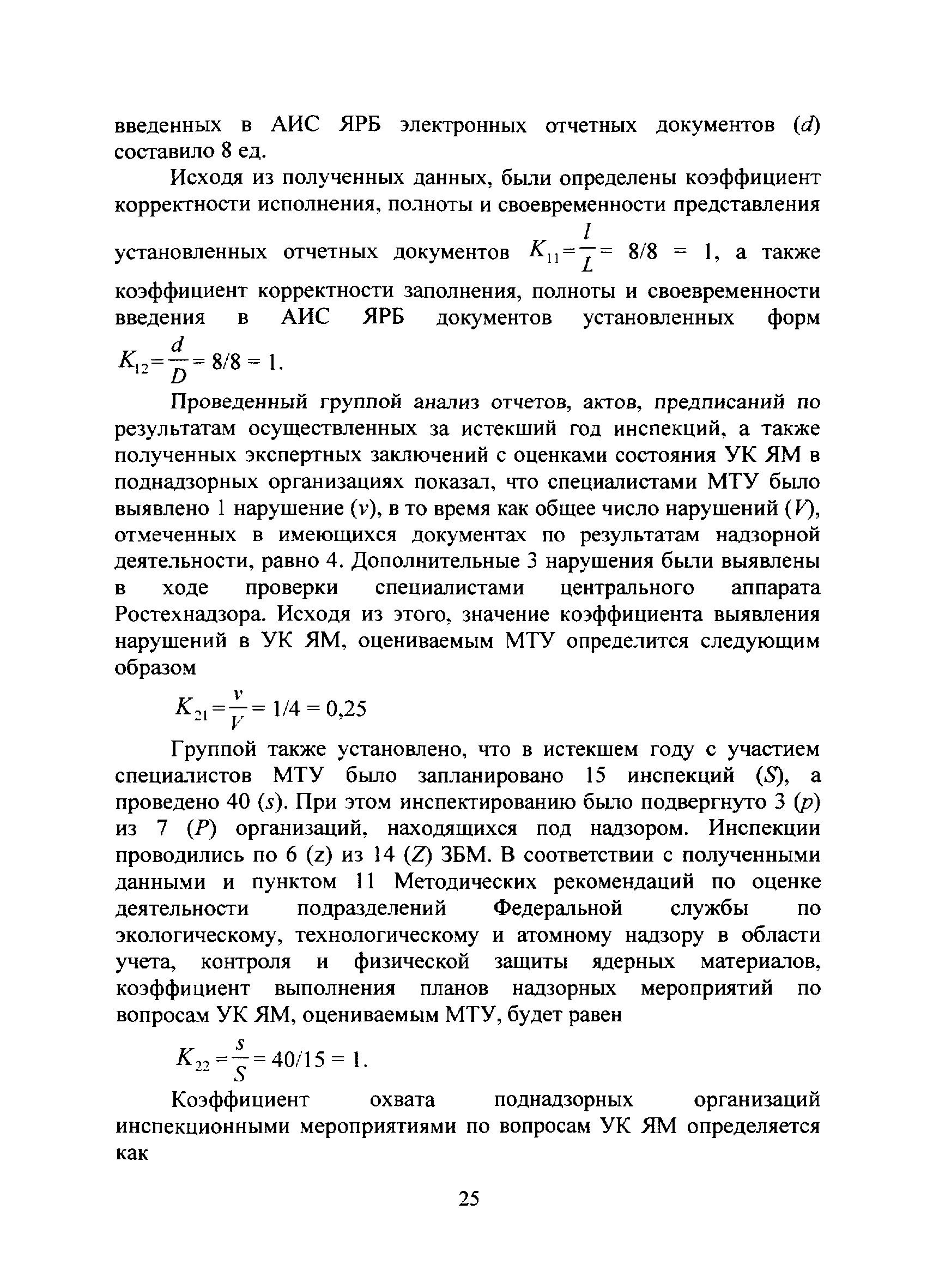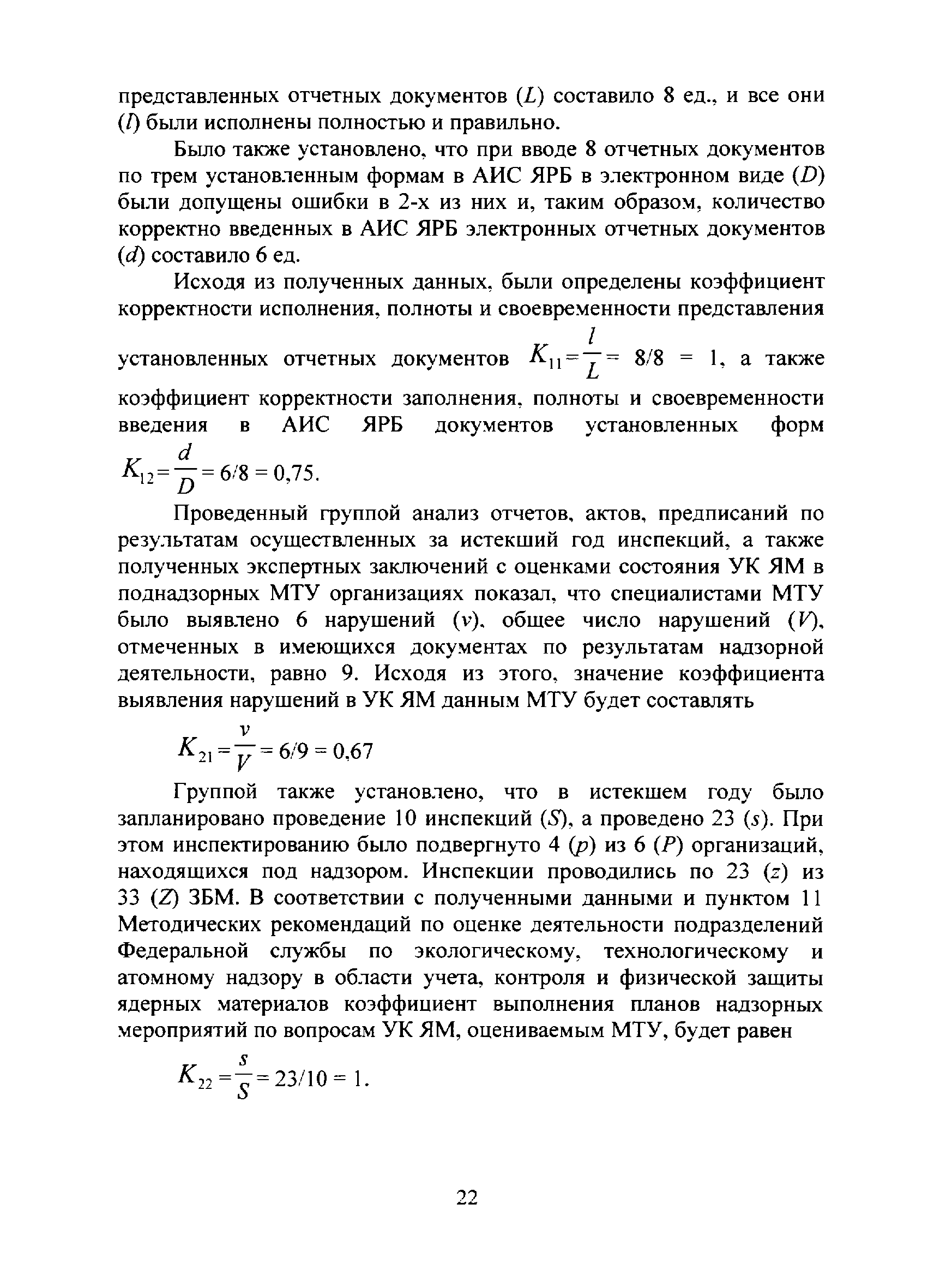 | Оглавление: | I. Общие положения II. Система показателей деятельности подразделений Ростехнадзора в области надзора за учетом, контролем и физической защитой ядерных материалов и основные расчетные зависимости для их определения III. Оценка деятельности подразделения Ростехнадзора в области надзора за учетом, контролем и физической защитой ядерных материалов IV. Исходные данные для проведения оценки деятельности подразделения Ростехнадзора в области учета и контроля или физической защиты ядерных материалов и порядок их получения Приложение №1 Значения коэффициентов весомости характеристик деятельности подразделений Ростехнадзора по вопросам учета и контроля или физической защиты ядерных материалов, используемые при проведении интегральной оценки Приложение №2 Примеры расчета интегрального показателя деятельности подразделения Ростехнадзора в области учета и контроля ядерных материалов |