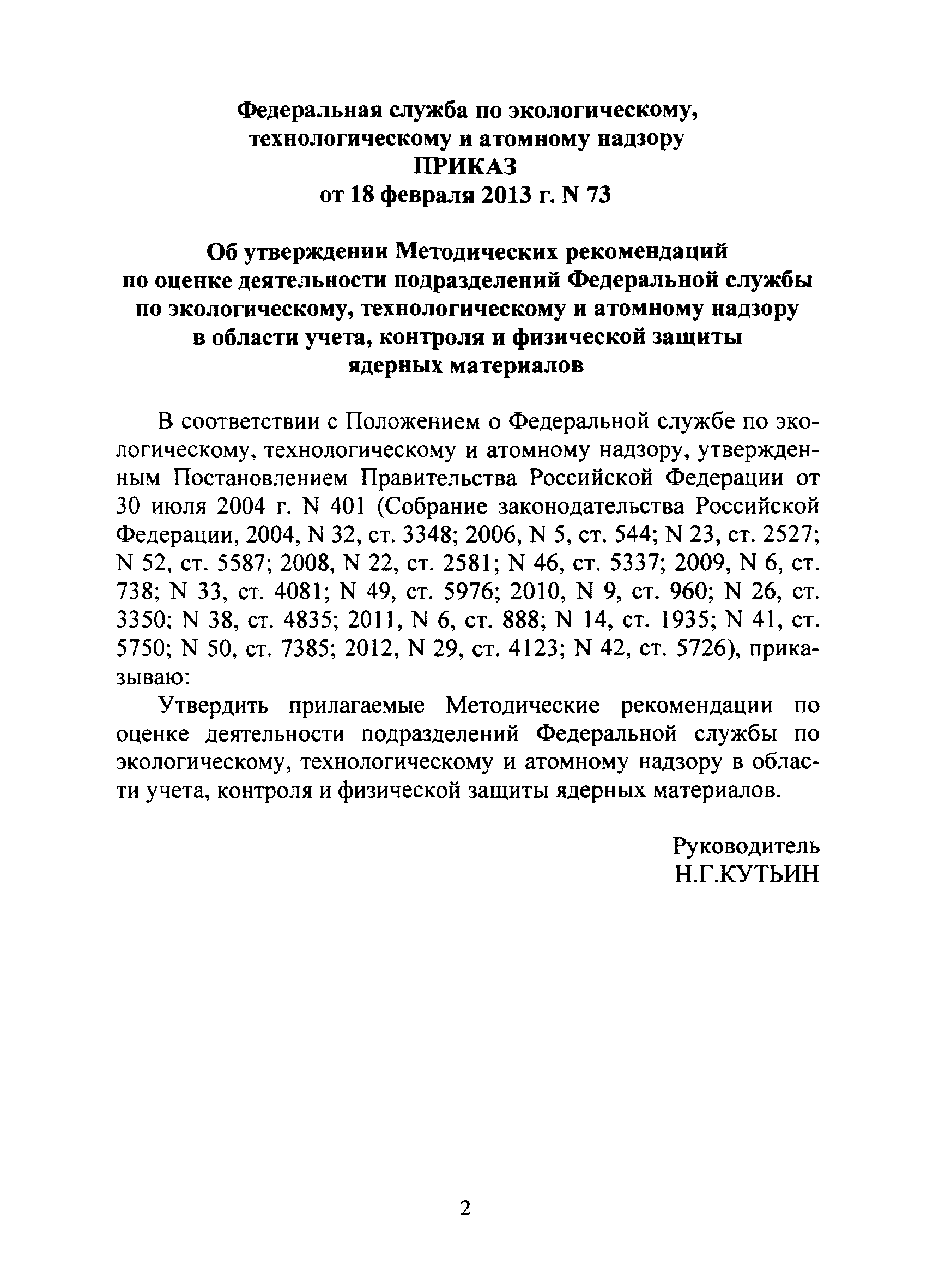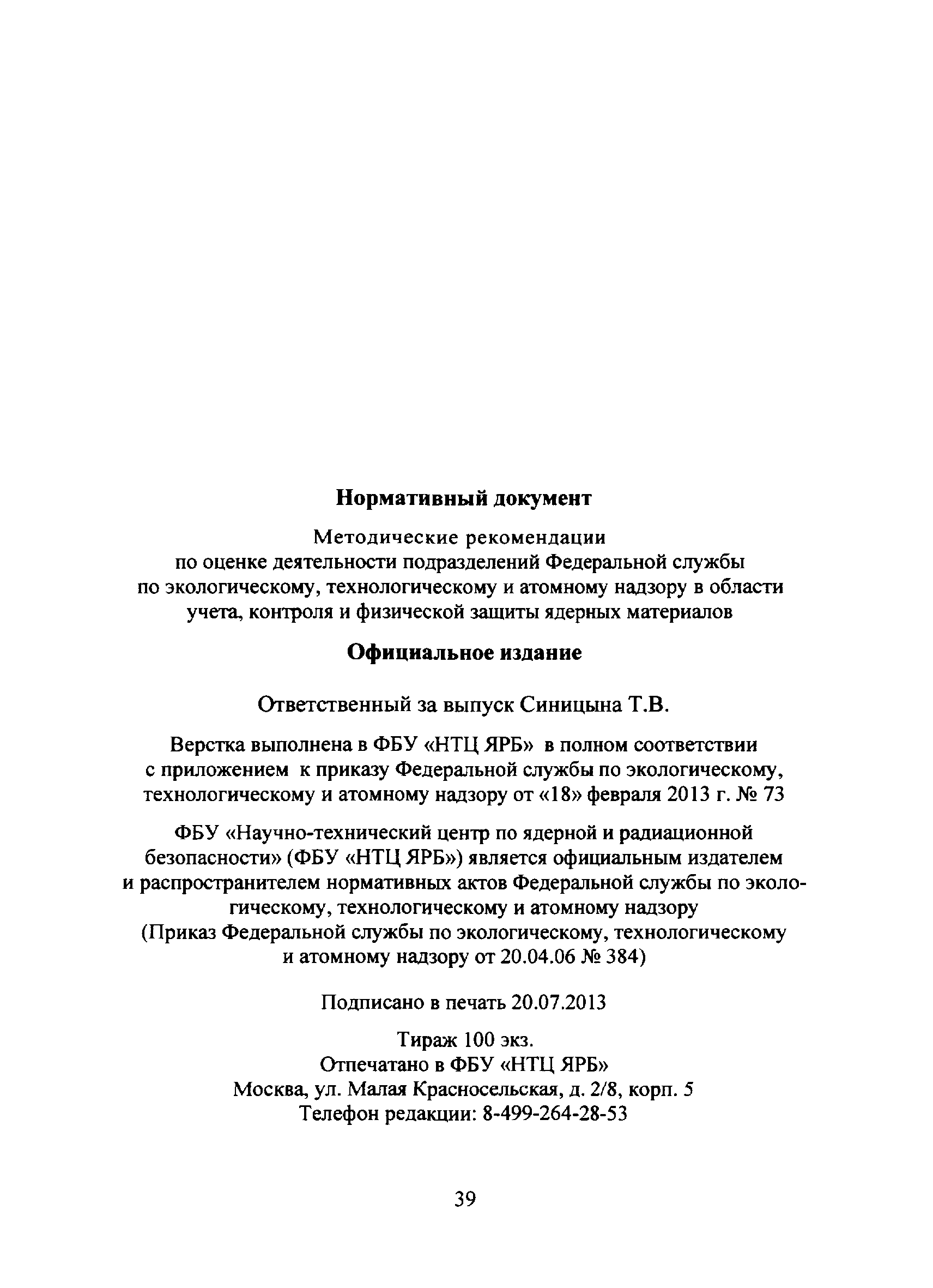 | Утверждён: | 18.02.2013 Федеральная служба по экологическому, технологическому и атомному надзору (73) |