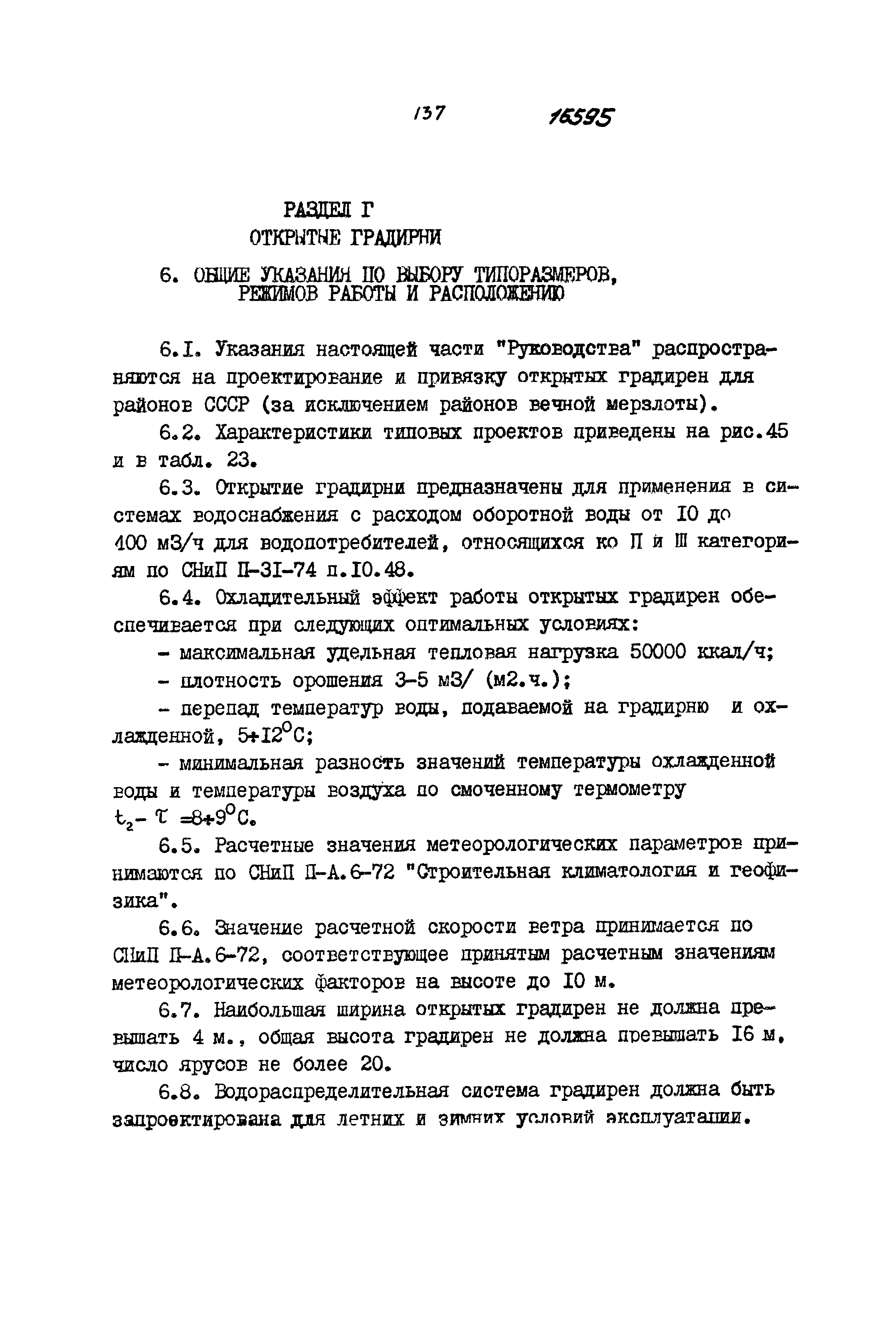 | Оглавление: | Раздел А. Общие положения Раздел Б. Вентиляторные градирни Общие указания по выбору типов, режимов работы и расположению Тепловой и аэродинамический расчеты вентиляторных градирен Указания по строительному проектированию вентиляторных градирен Раздел В. Башенные градирни Общие указания по выбору типо-размеров, режимов работы и расположению Раздел Г. Открытые градирни Общие указания по выбору типо-размеров, режимов работы и расположению Раздел Д. Технико-экономическое обоснование применения различных типов градирен |