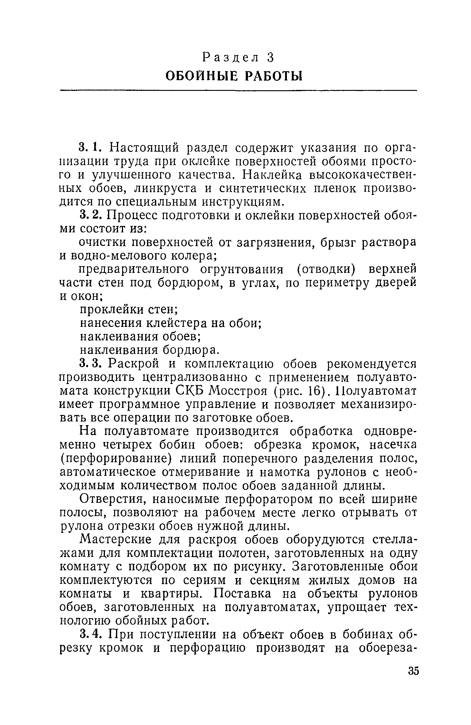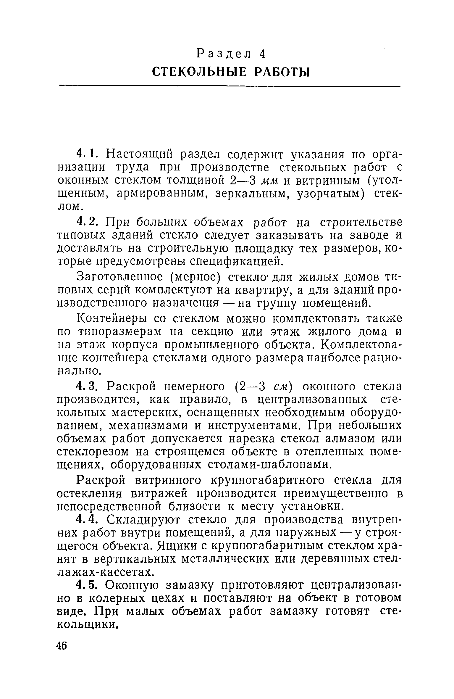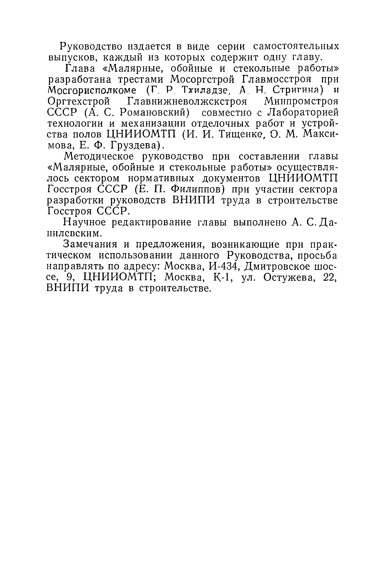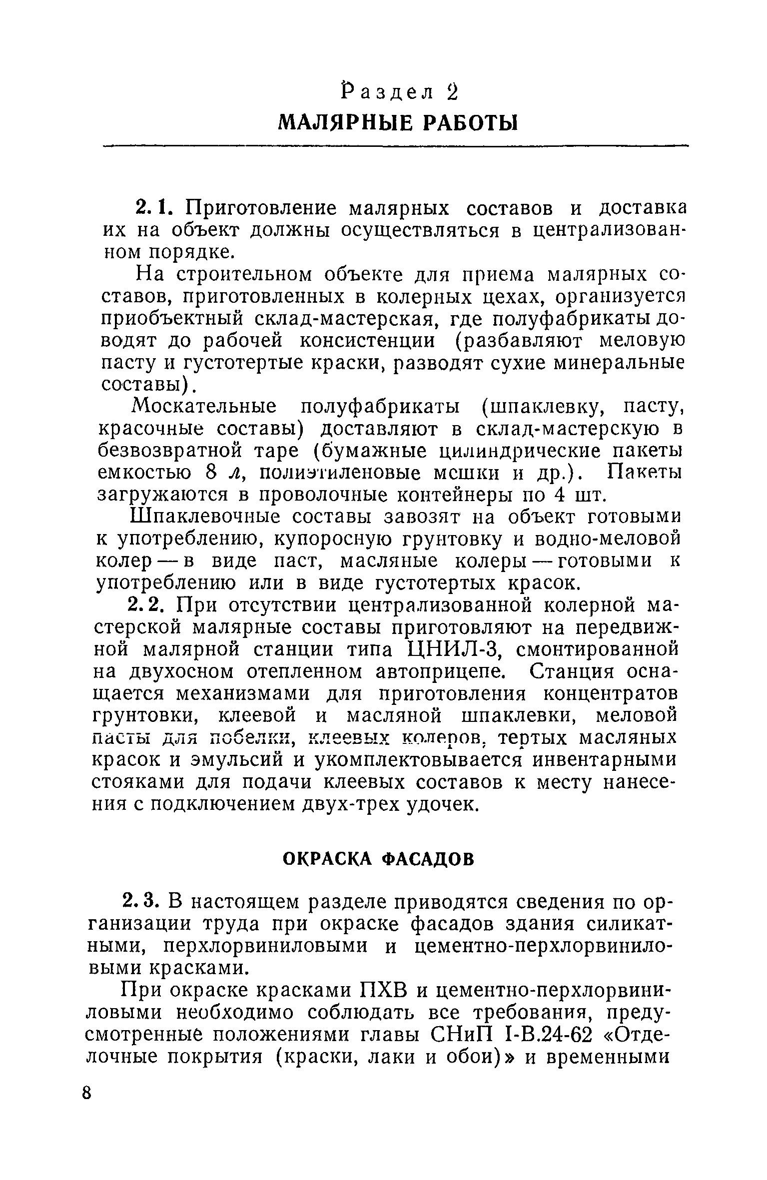 Руководство по организации труда при производстве строительно-монтажных работ. Глава 14. Малярные, обойные и стекольные работы| Статус: | справочные материалы, мп, тпр | | Название рус.: | Руководство по организации труда при производстве строительно-монтажных работ. Глава 14. Малярные, обойные и стекольные работы | | Дата добавления в базу: | 01.10.2014 | | Дата актуализации: | 01.01.2021 | | Область применения: | Руководство содержит рекомендации по рациональному составу звеньев и бригад, оснащению их инструментами. механизмами и приспособлениями, разделению труда по организации и обслуживанию рабочих мест, по методам и приемам труда. Рассчитано на инженерно-технических работников проектных и строительных организаций, занимающихся вопросами организации труда, а также на бригадиров специализированных и комплексных бригад рабочих отделочников. Руководством рекомендуется пользоваться про разработке и привязке к условиям места проектов производства работ, при составлении карт трудовых процессов, технологических карт и производственных инструкций для бригадиров и рабочих, при организации труда непосредственно на объектах строительства. | | Оглавление: | Предисловие Раздел 1. Общие положения Раздел 2. Малярные работы Раздел 3. Обойные работы Раздел 4. Стекольные работы | | Разработан: | ЦНИИОМТП Госстроя СССР