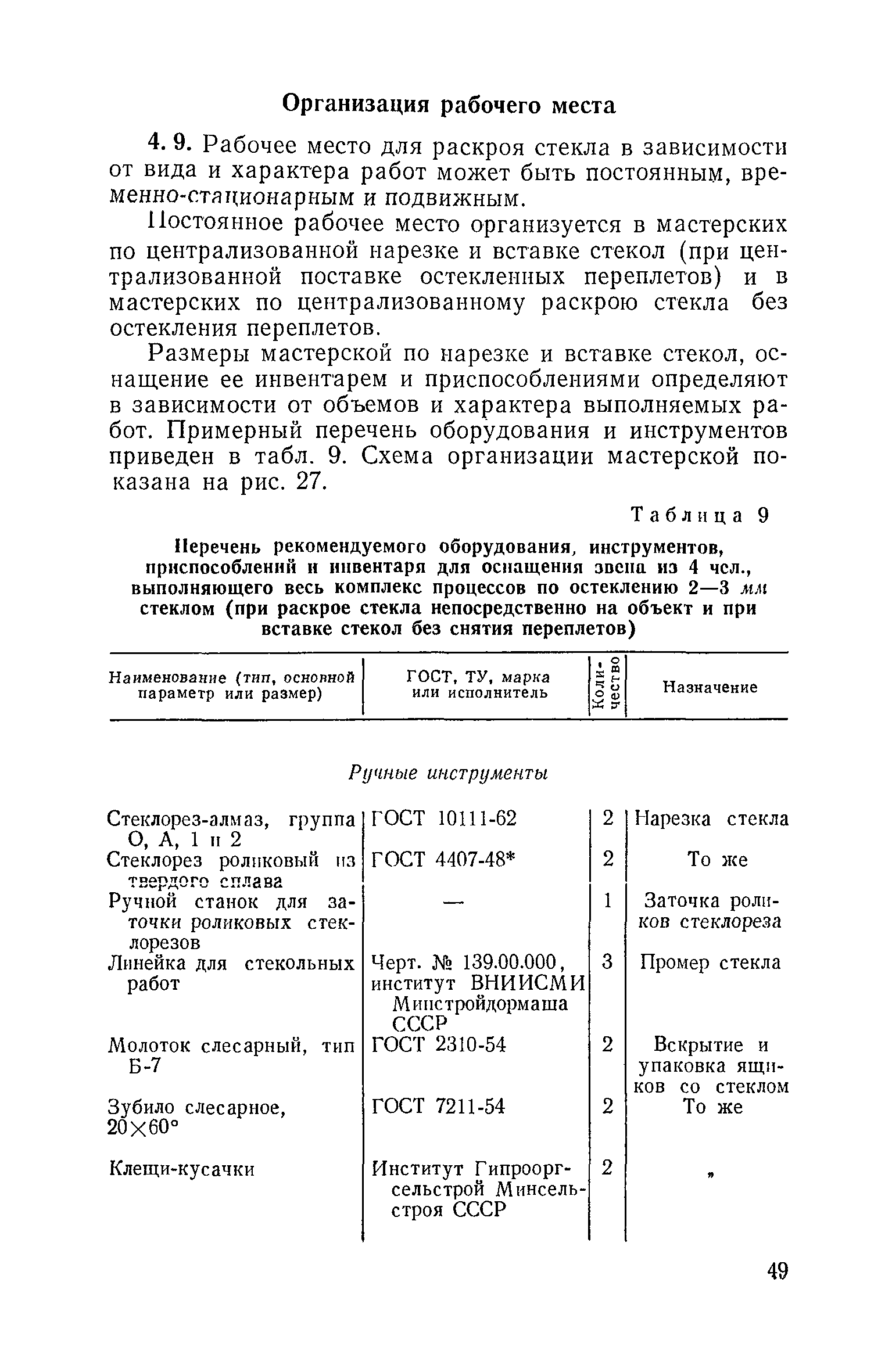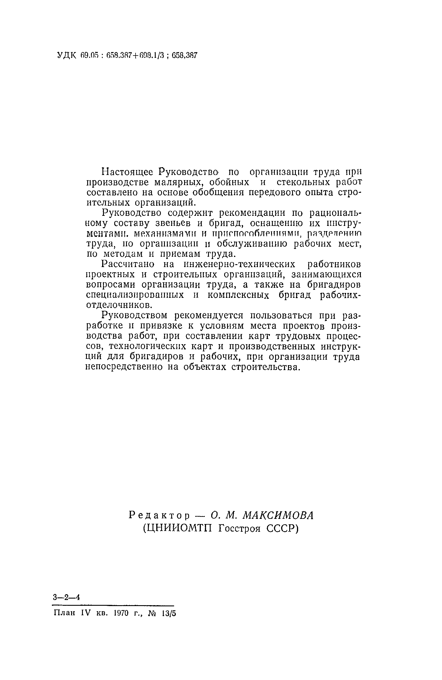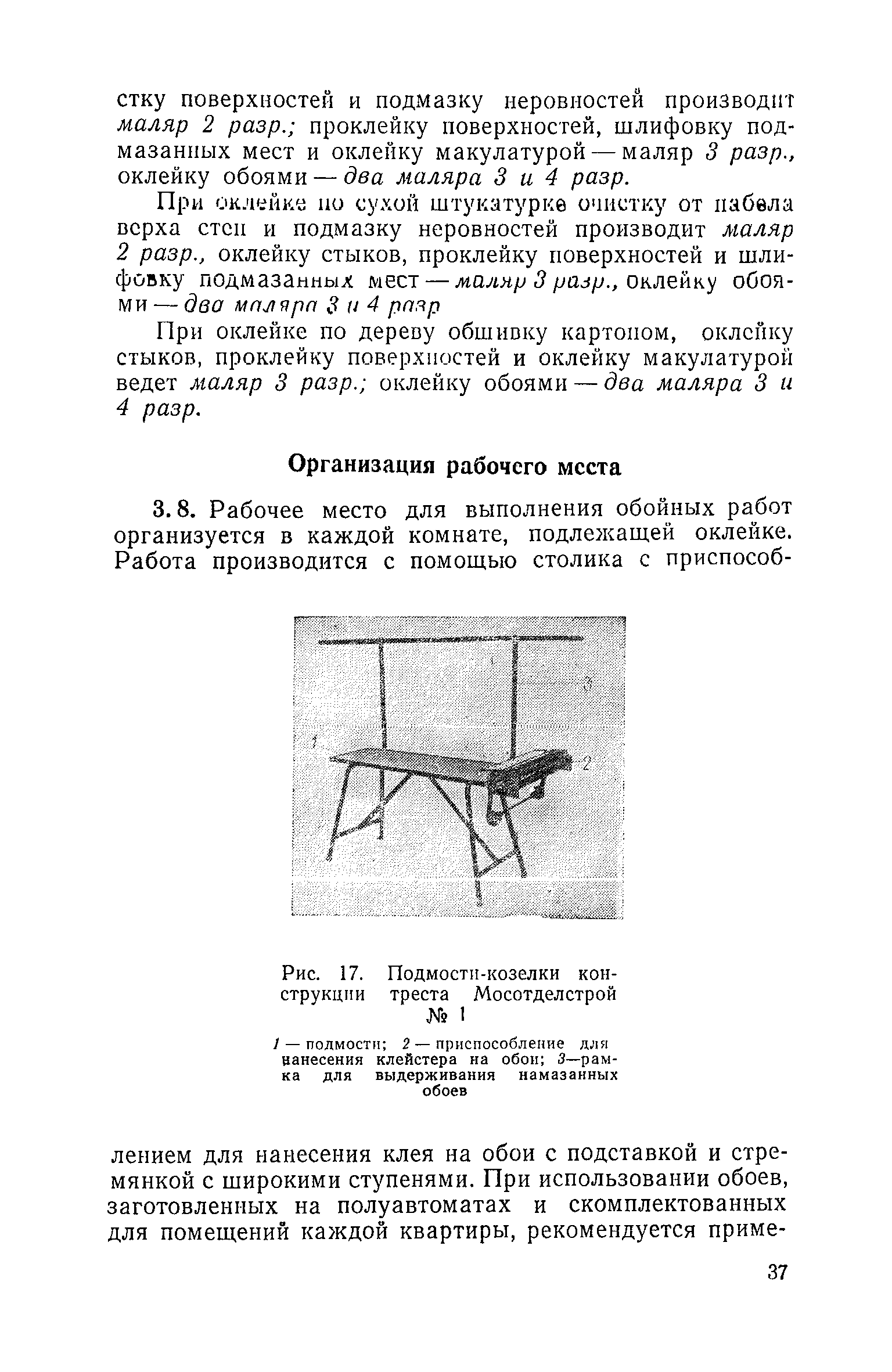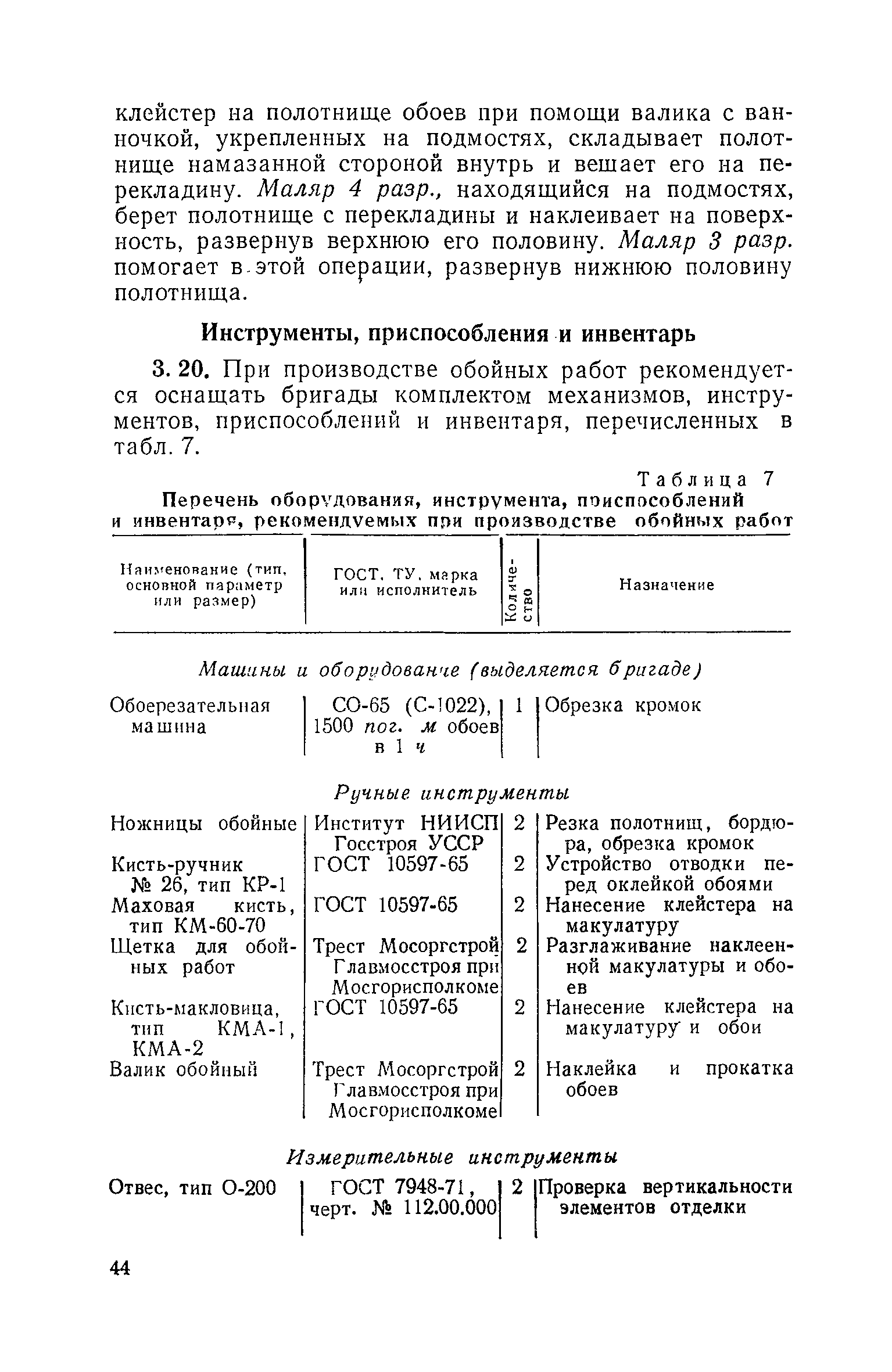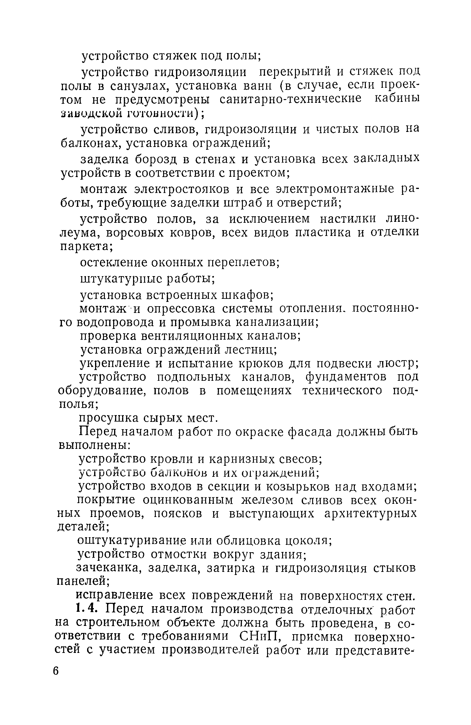 Руководство по организации труда при производстве строительно-монтажных работ. Глава 14. Малярные, обойные и стекольные работы| Статус: | справочные материалы, мп, тпр | | Название рус.: | Руководство по организации труда при производстве строительно-монтажных работ. Глава 14. Малярные, обойные и стекольные работы | | Дата добавления в базу: | 01.10.2014 | | Дата актуализации: | 01.01.2021 | | Область применения: | Руководство содержит рекомендации по рациональному составу звеньев и бригад, оснащению их инструментами. механизмами и приспособлениями, разделению труда по организации и обслуживанию рабочих мест, по методам и приемам труда. Рассчитано на инженерно-технических работников проектных и строительных организаций, занимающихся вопросами организации труда, а также на бригадиров специализированных и комплексных бригад рабочих отделочников. Руководством рекомендуется пользоваться про разработке и привязке к условиям места проектов производства работ, при составлении карт трудовых процессов, технологических карт и производственных инструкций для бригадиров и рабочих, при организации труда непосредственно на объектах строительства. | | Оглавление: | Предисловие Раздел 1. Общие положения Раздел 2. Малярные работы Раздел 3. Обойные работы Раздел 4. Стекольные работы | | Разработан: | ЦНИИОМТП Госстроя СССР