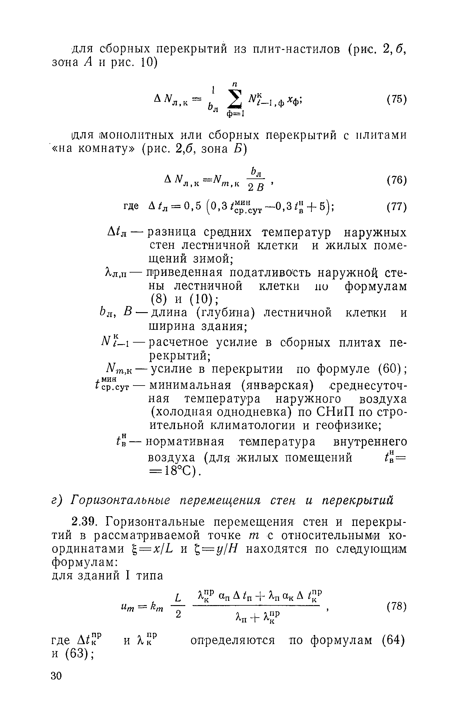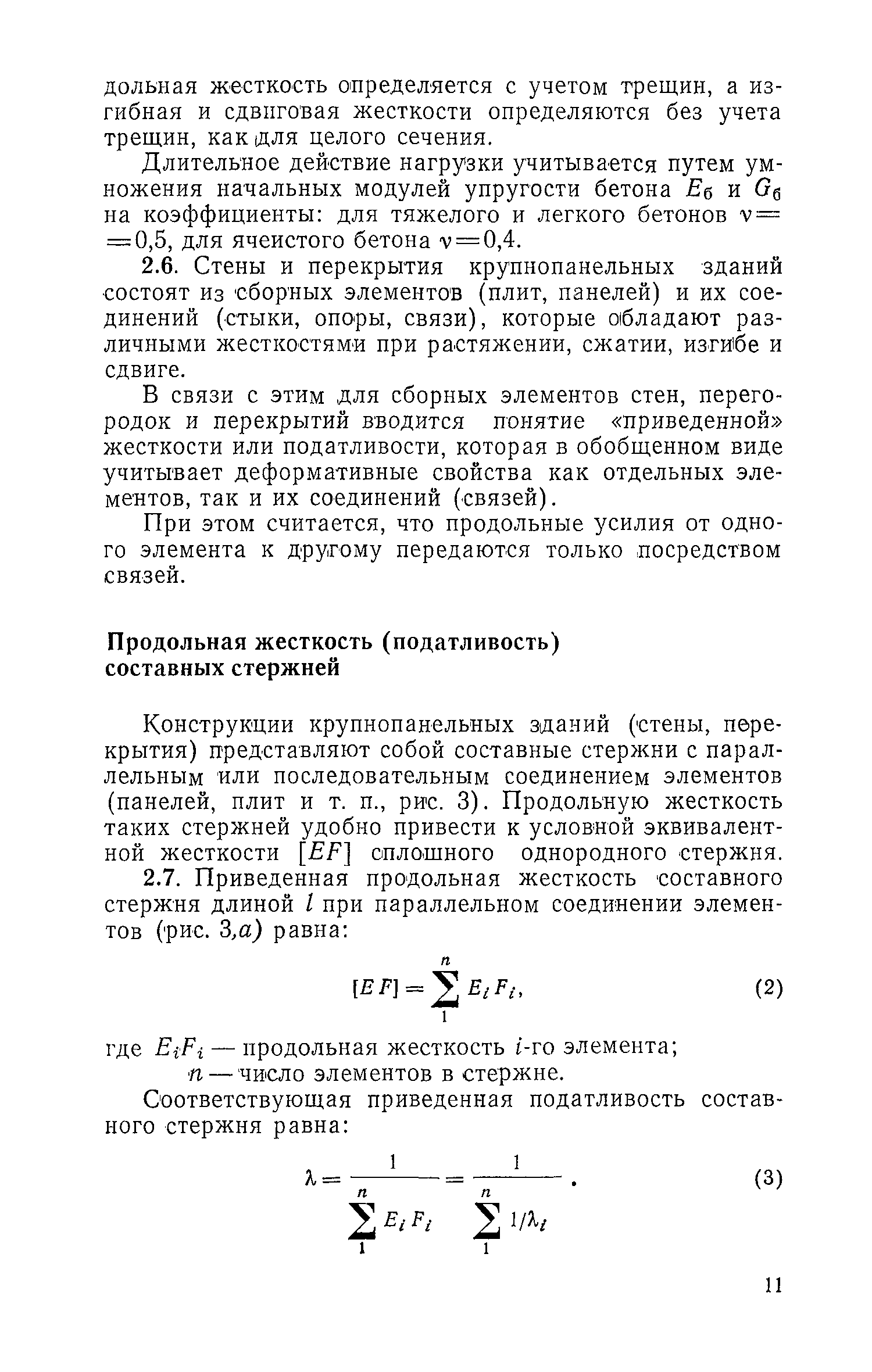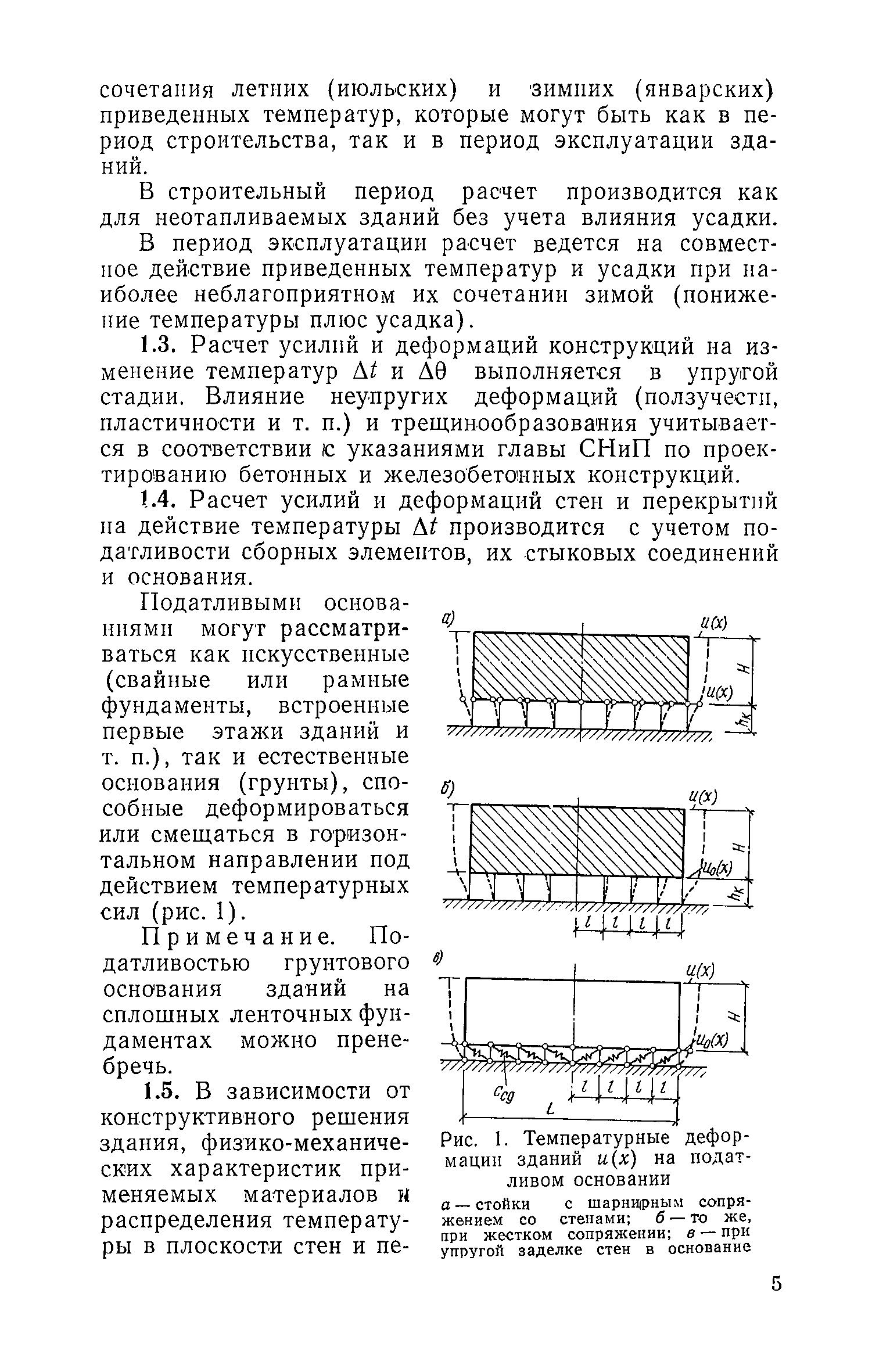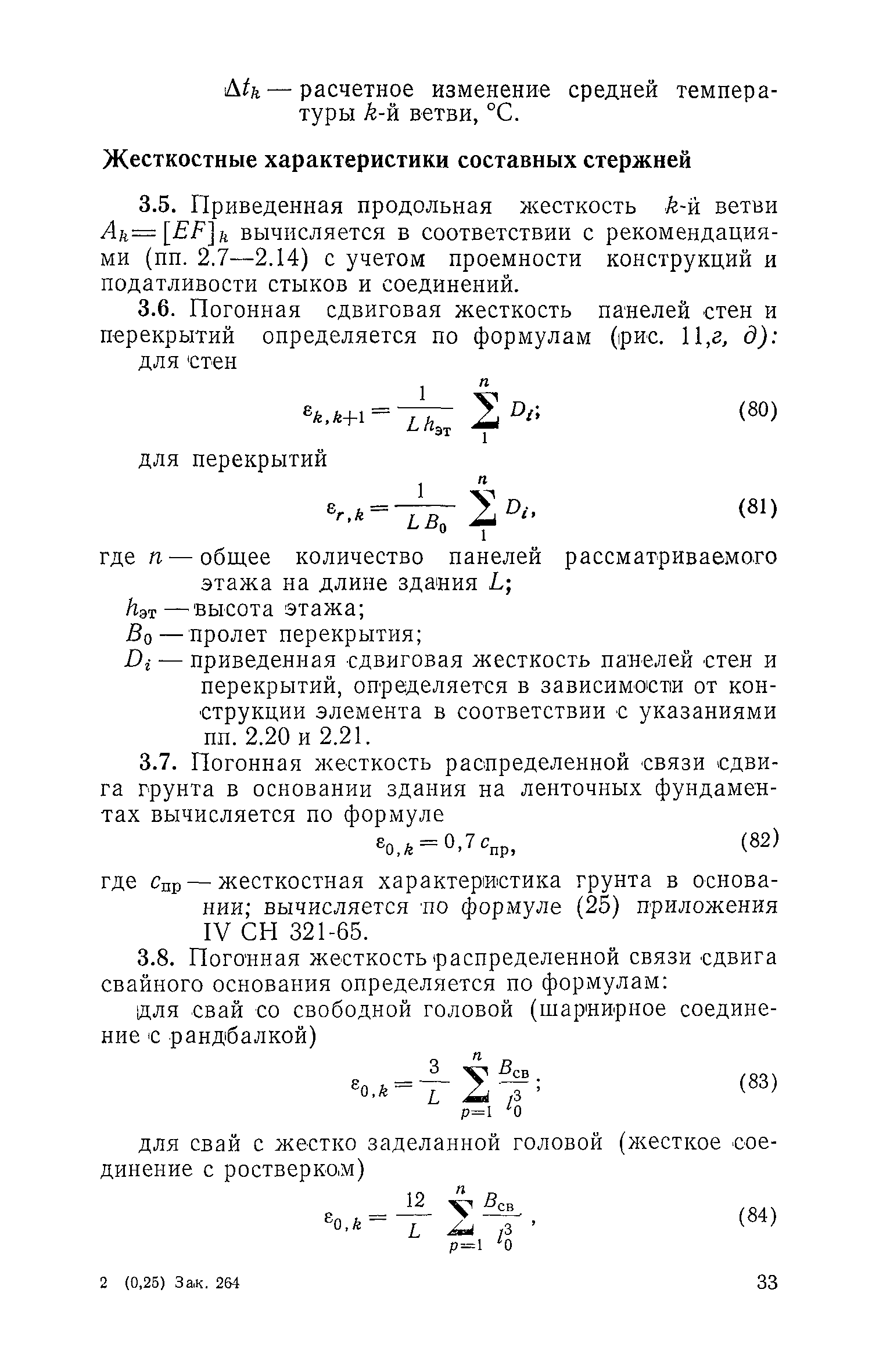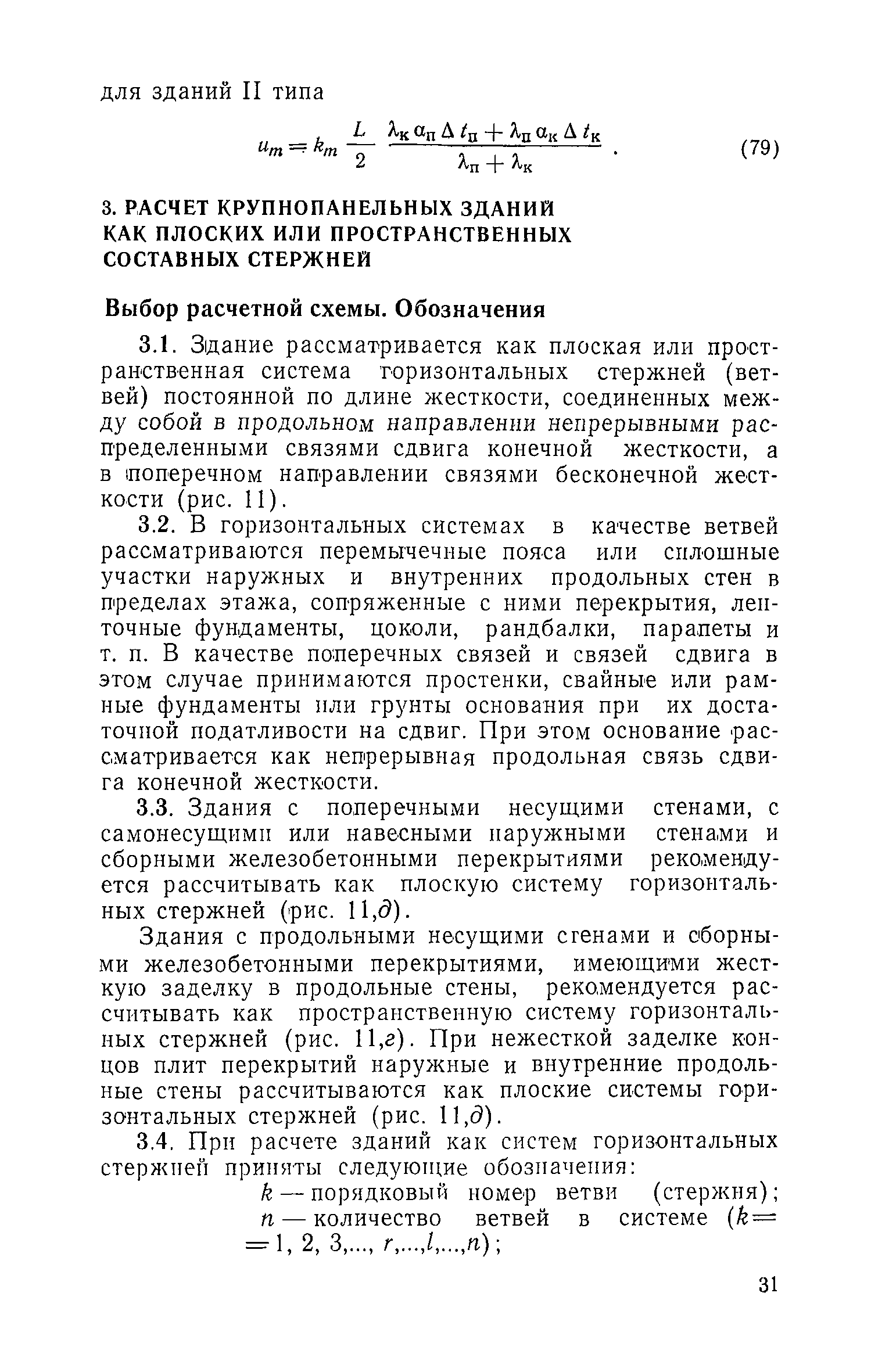 | Оглавление: | Предисловие 1. Расчет крупнопанельных зданий на температурно-влажностные воздействия и усадку Основные положения 2. Расчет крупнопанельных зданий как однослойных и многослойных пластинок на действие температуры Выбор расчетной схемы Жесткостные характеристики Продольная жесткость (податливость) составных стержней Продольная жесткость элементов стен и перекрытий Средняя жесткость Расчетного сечения стены или перекрытия в пределах этажа Средняя жесткость расчетного сечения этажа Изгибная жесткость Сдвиговая жесткость Приведенные высоты этажей и здания Температурные усилия и перемещения стен и перекрытий при действии температуры 3. Расчет крупнопанельных зданий как плоских или пространственных составных стержней Выбор расчетной схемы. Обозначения Жесткостные характеристики составных стержней Дифференциальные уравнения для горизонтального составного стержня и их решение 4. Расчет наружных стен при наличии перепада температуры по толщине Температурные усилия в панелях и связях Прогибы и углы поворота панелей и стыков Раскрытие стыков и панелей Приложение 1. Расчетные значения приведенных средних температур однослойных и многослойных конструкций зданий с учетом радиации, влажности и усадки Приложение 2. Пример расчета на действие температуры крупнопанельного жилого дома с поперечными несущими стенами Приложение 3. Пример расчета на действие температуры крупнопанельного жилого дома с продольными несущими стенами Приложение 4. Пример расчета на действие температуры крупнопанельного здания с продольными несущими стенами как горизонтального составного стержня |
