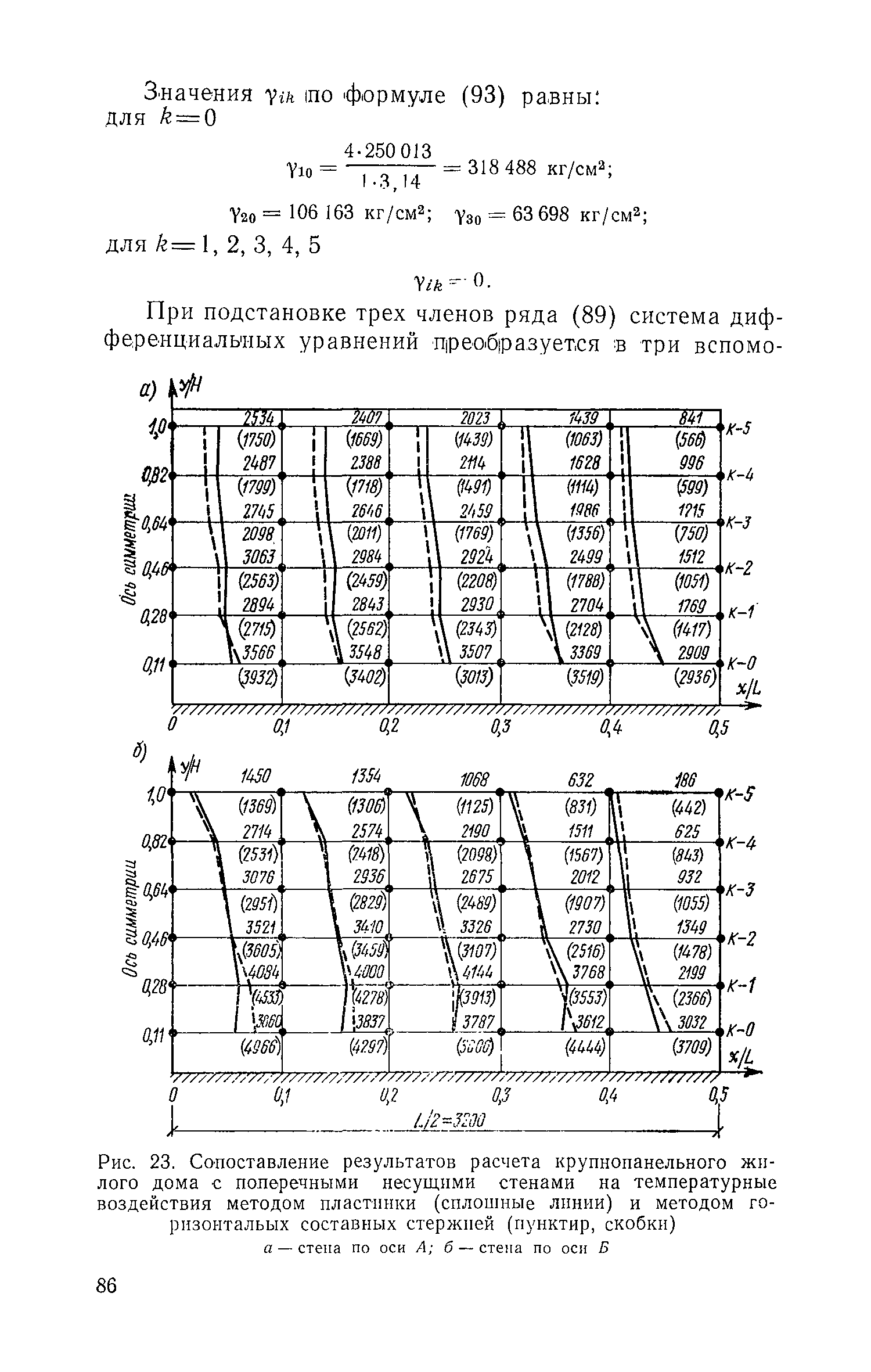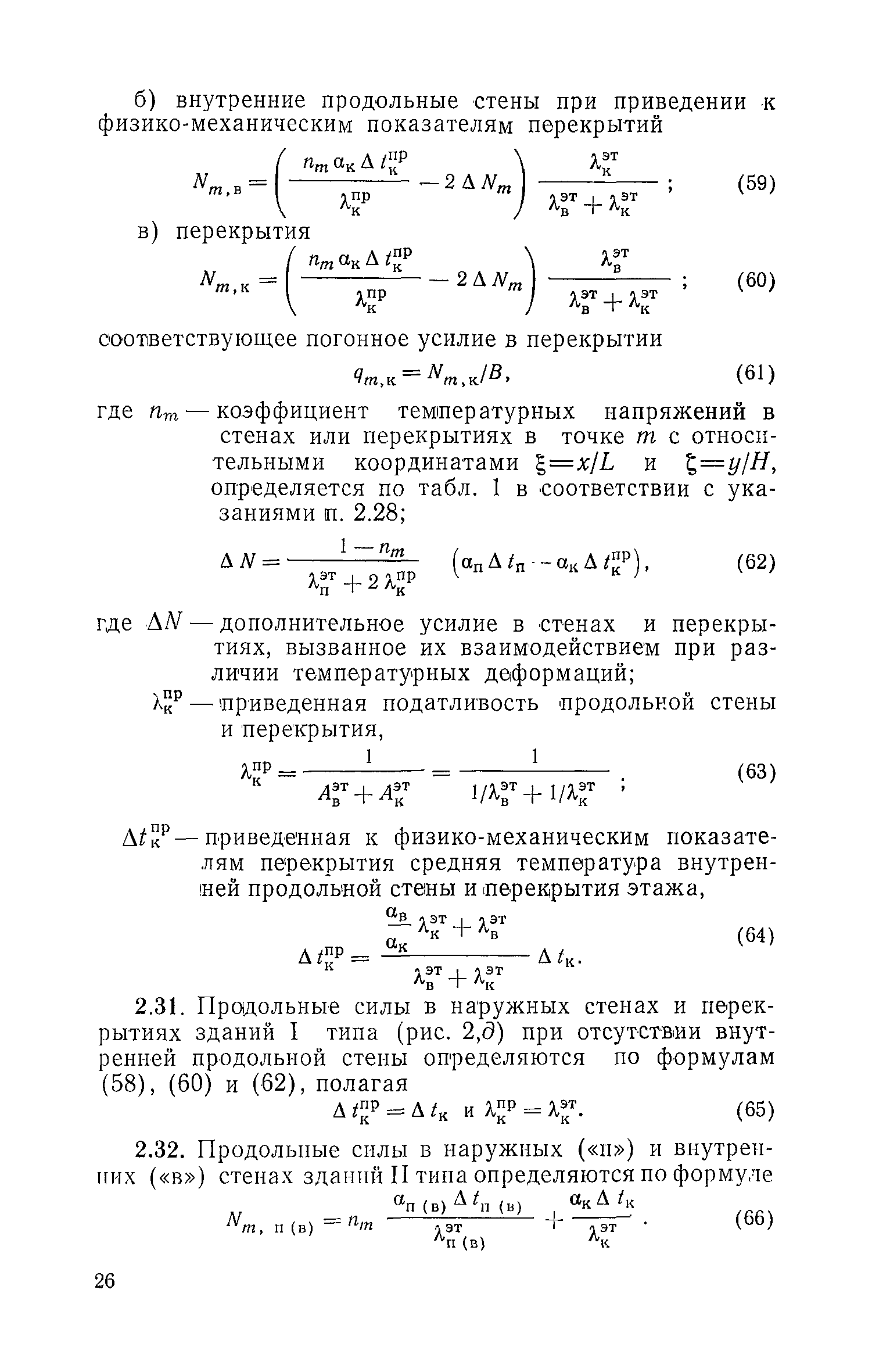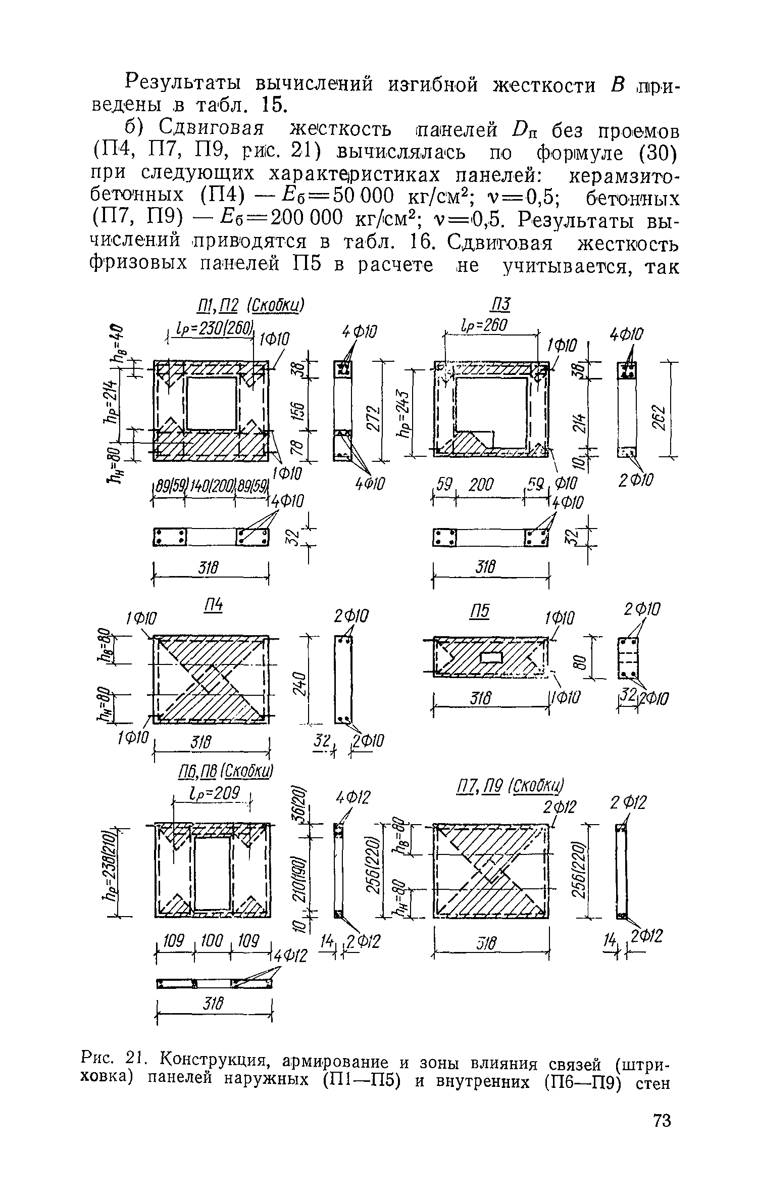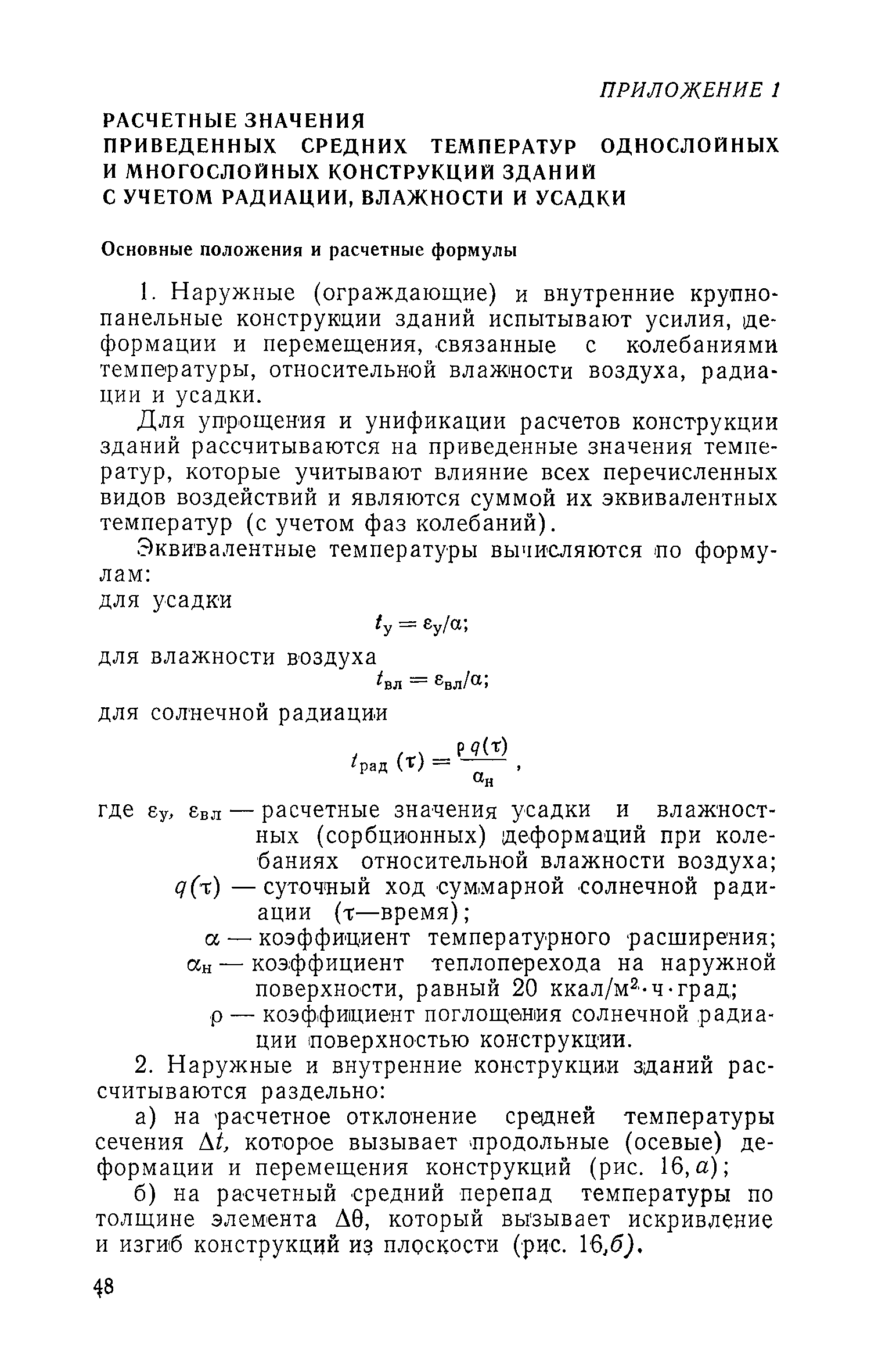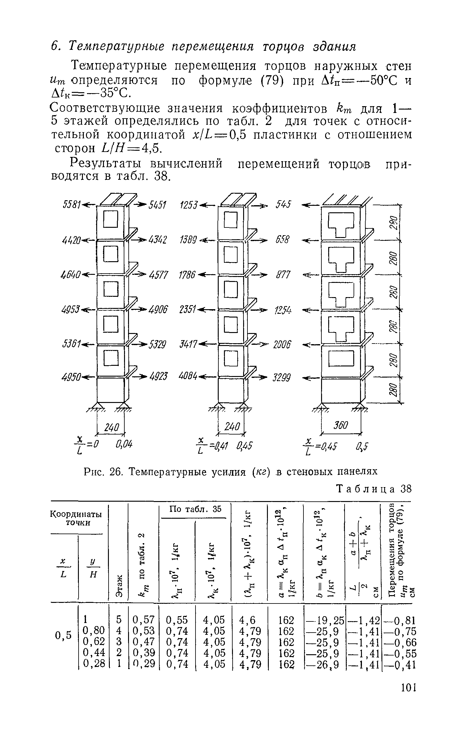 | Оглавление: | Предисловие 1. Расчет крупнопанельных зданий на температурно-влажностные воздействия и усадку Основные положения 2. Расчет крупнопанельных зданий как однослойных и многослойных пластинок на действие температуры Выбор расчетной схемы Жесткостные характеристики Продольная жесткость (податливость) составных стержней Продольная жесткость элементов стен и перекрытий Средняя жесткость Расчетного сечения стены или перекрытия в пределах этажа Средняя жесткость расчетного сечения этажа Изгибная жесткость Сдвиговая жесткость Приведенные высоты этажей и здания Температурные усилия и перемещения стен и перекрытий при действии температуры 3. Расчет крупнопанельных зданий как плоских или пространственных составных стержней Выбор расчетной схемы. Обозначения Жесткостные характеристики составных стержней Дифференциальные уравнения для горизонтального составного стержня и их решение 4. Расчет наружных стен при наличии перепада температуры по толщине Температурные усилия в панелях и связях Прогибы и углы поворота панелей и стыков Раскрытие стыков и панелей Приложение 1. Расчетные значения приведенных средних температур однослойных и многослойных конструкций зданий с учетом радиации, влажности и усадки Приложение 2. Пример расчета на действие температуры крупнопанельного жилого дома с поперечными несущими стенами Приложение 3. Пример расчета на действие температуры крупнопанельного жилого дома с продольными несущими стенами Приложение 4. Пример расчета на действие температуры крупнопанельного здания с продольными несущими стенами как горизонтального составного стержня |