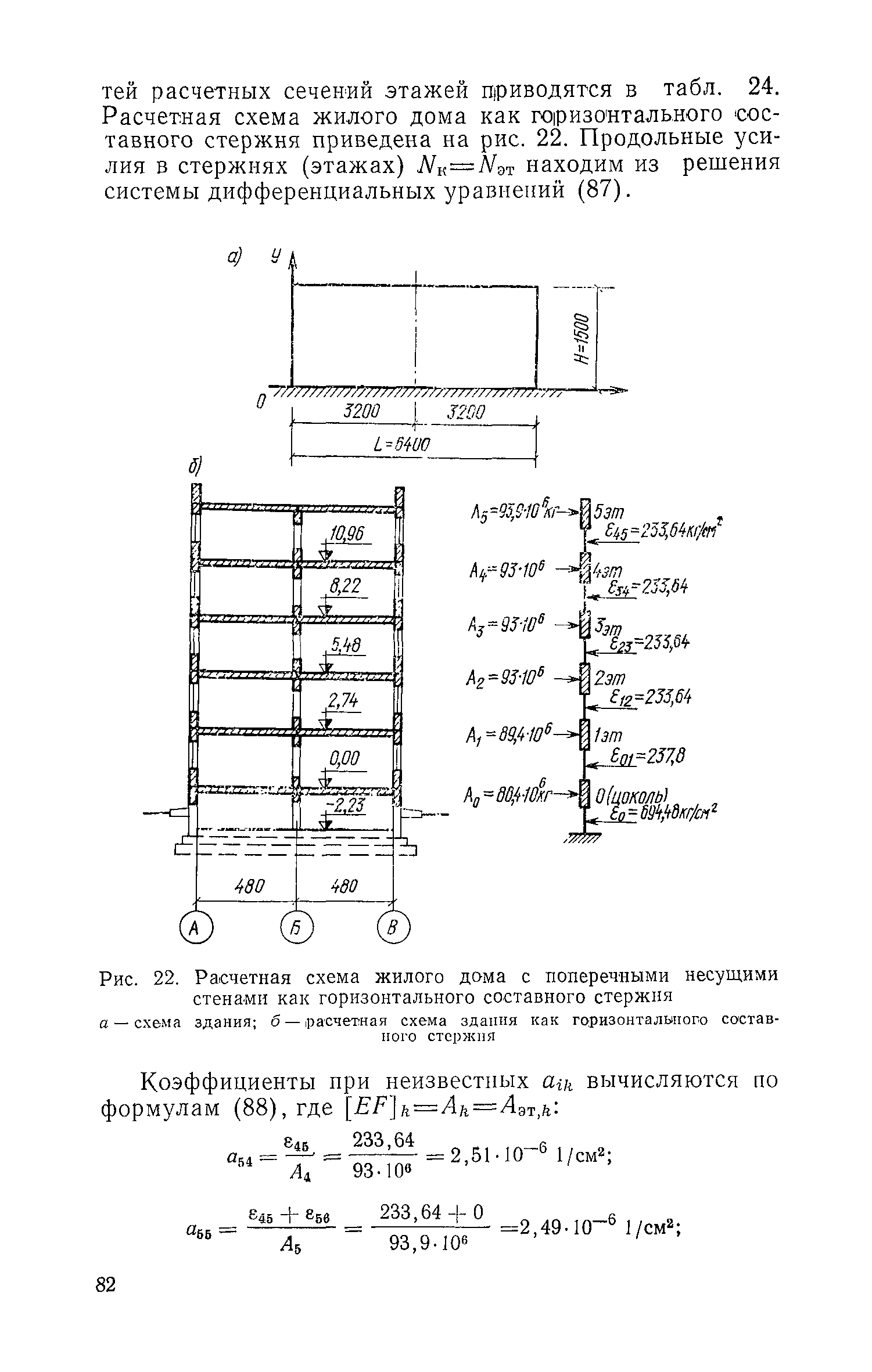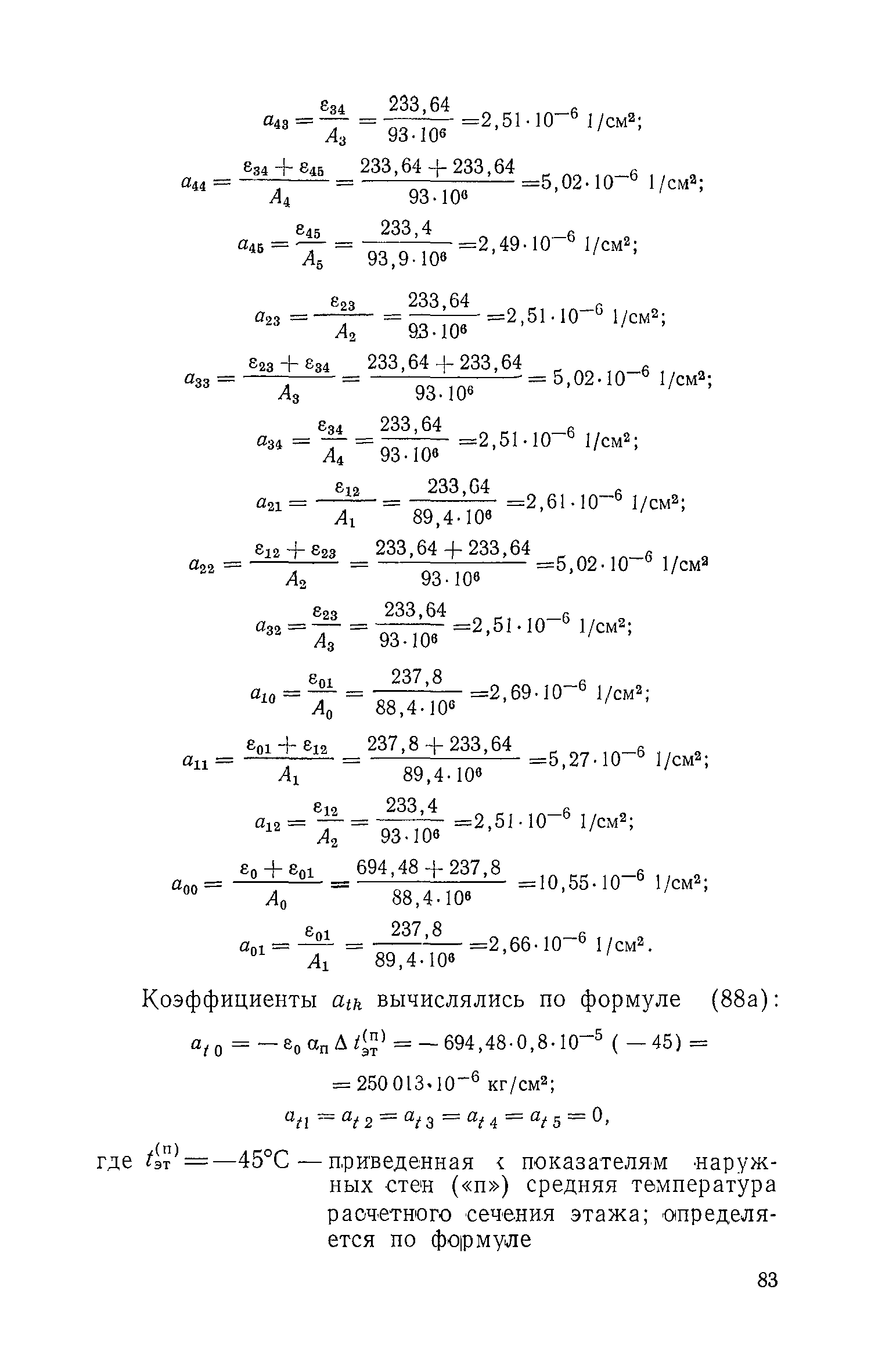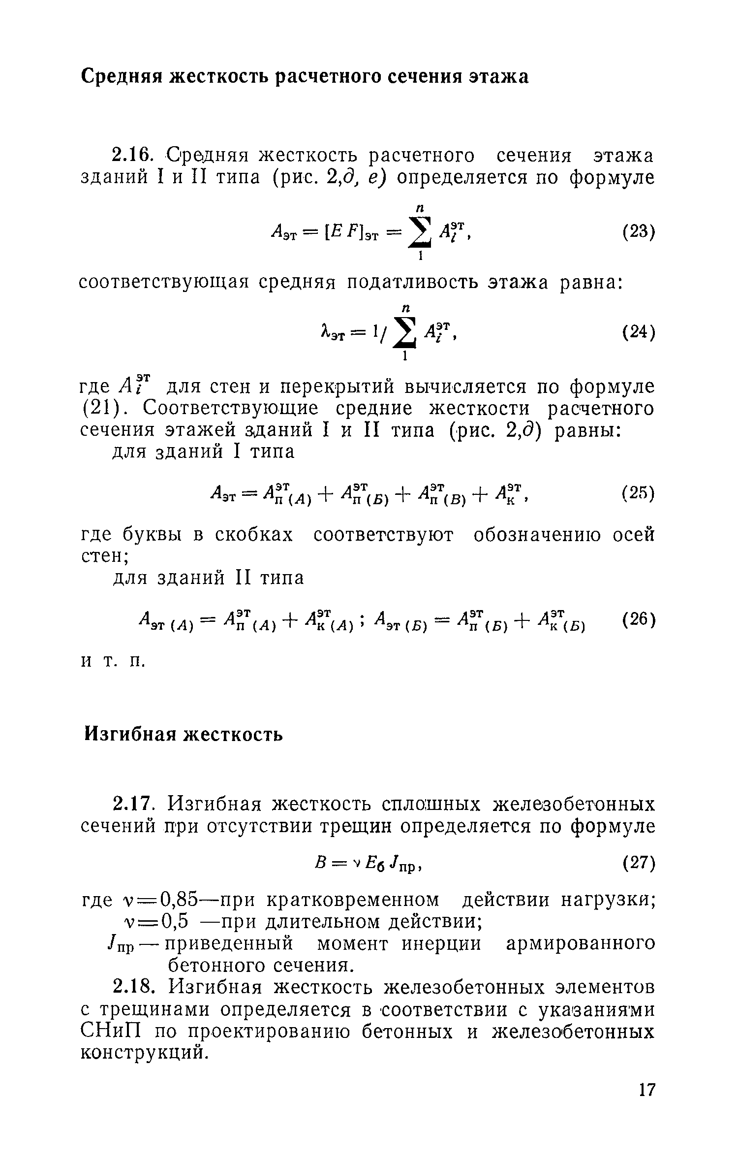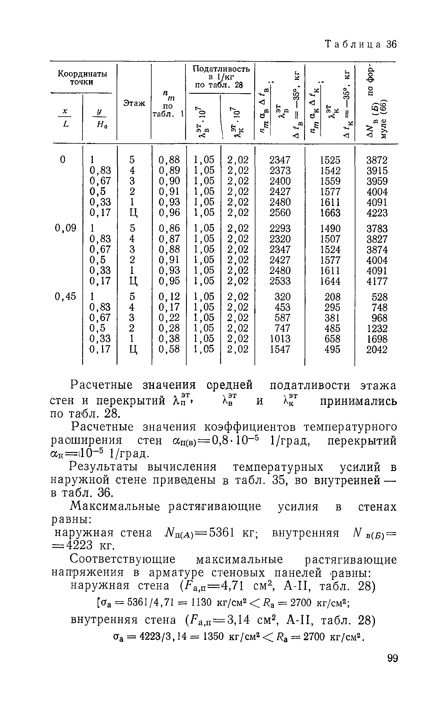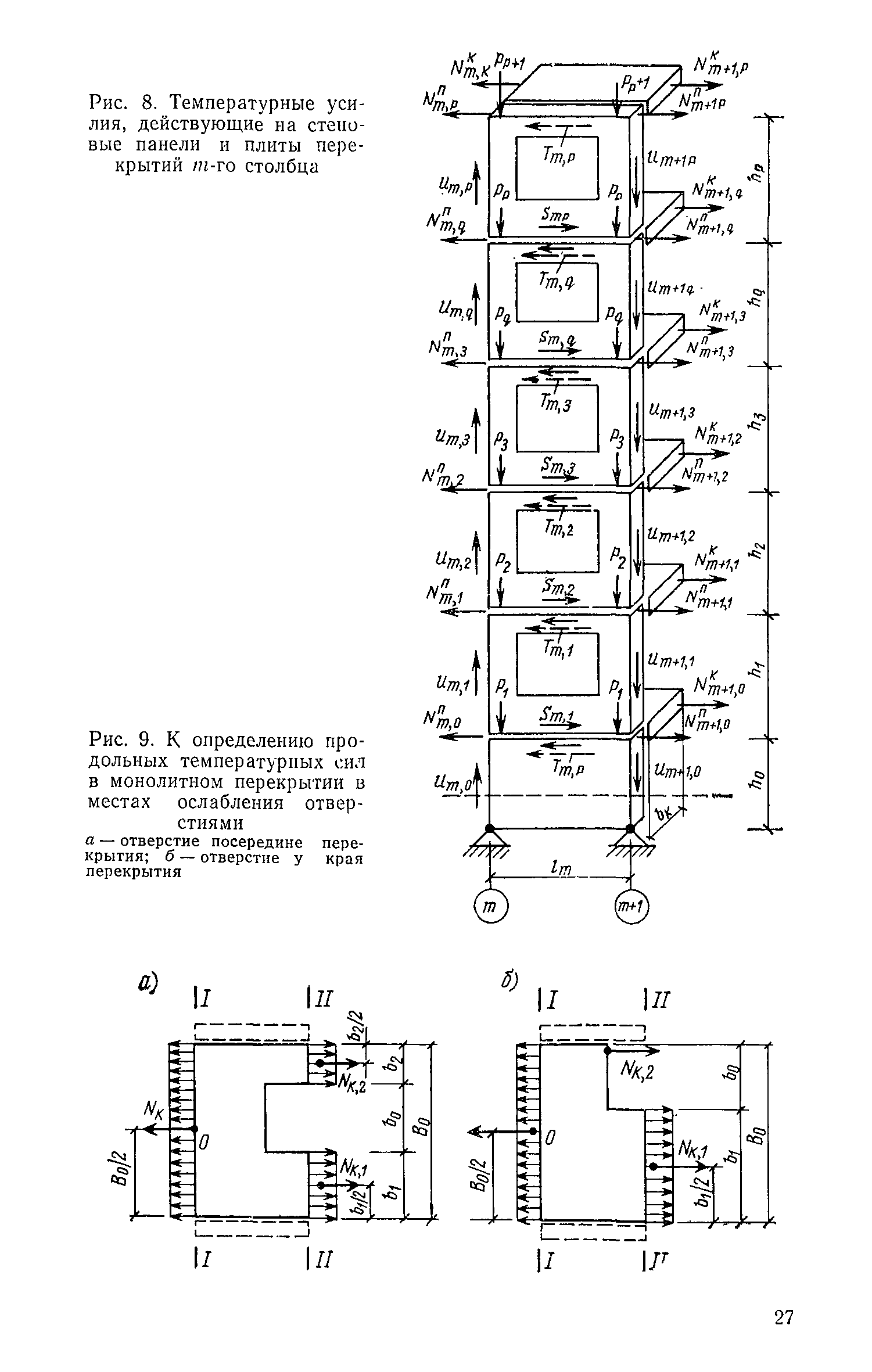 | Оглавление: | Предисловие 1. Расчет крупнопанельных зданий на температурно-влажностные воздействия и усадку Основные положения 2. Расчет крупнопанельных зданий как однослойных и многослойных пластинок на действие температуры Выбор расчетной схемы Жесткостные характеристики Продольная жесткость (податливость) составных стержней Продольная жесткость элементов стен и перекрытий Средняя жесткость Расчетного сечения стены или перекрытия в пределах этажа Средняя жесткость расчетного сечения этажа Изгибная жесткость Сдвиговая жесткость Приведенные высоты этажей и здания Температурные усилия и перемещения стен и перекрытий при действии температуры 3. Расчет крупнопанельных зданий как плоских или пространственных составных стержней Выбор расчетной схемы. Обозначения Жесткостные характеристики составных стержней Дифференциальные уравнения для горизонтального составного стержня и их решение 4. Расчет наружных стен при наличии перепада температуры по толщине Температурные усилия в панелях и связях Прогибы и углы поворота панелей и стыков Раскрытие стыков и панелей Приложение 1. Расчетные значения приведенных средних температур однослойных и многослойных конструкций зданий с учетом радиации, влажности и усадки Приложение 2. Пример расчета на действие температуры крупнопанельного жилого дома с поперечными несущими стенами Приложение 3. Пример расчета на действие температуры крупнопанельного жилого дома с продольными несущими стенами Приложение 4. Пример расчета на действие температуры крупнопанельного здания с продольными несущими стенами как горизонтального составного стержня |