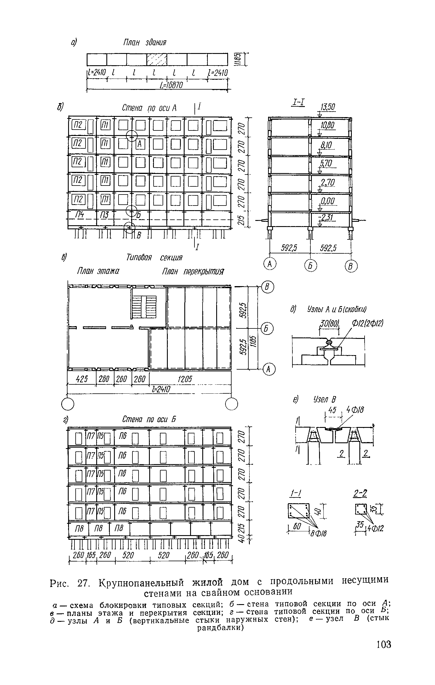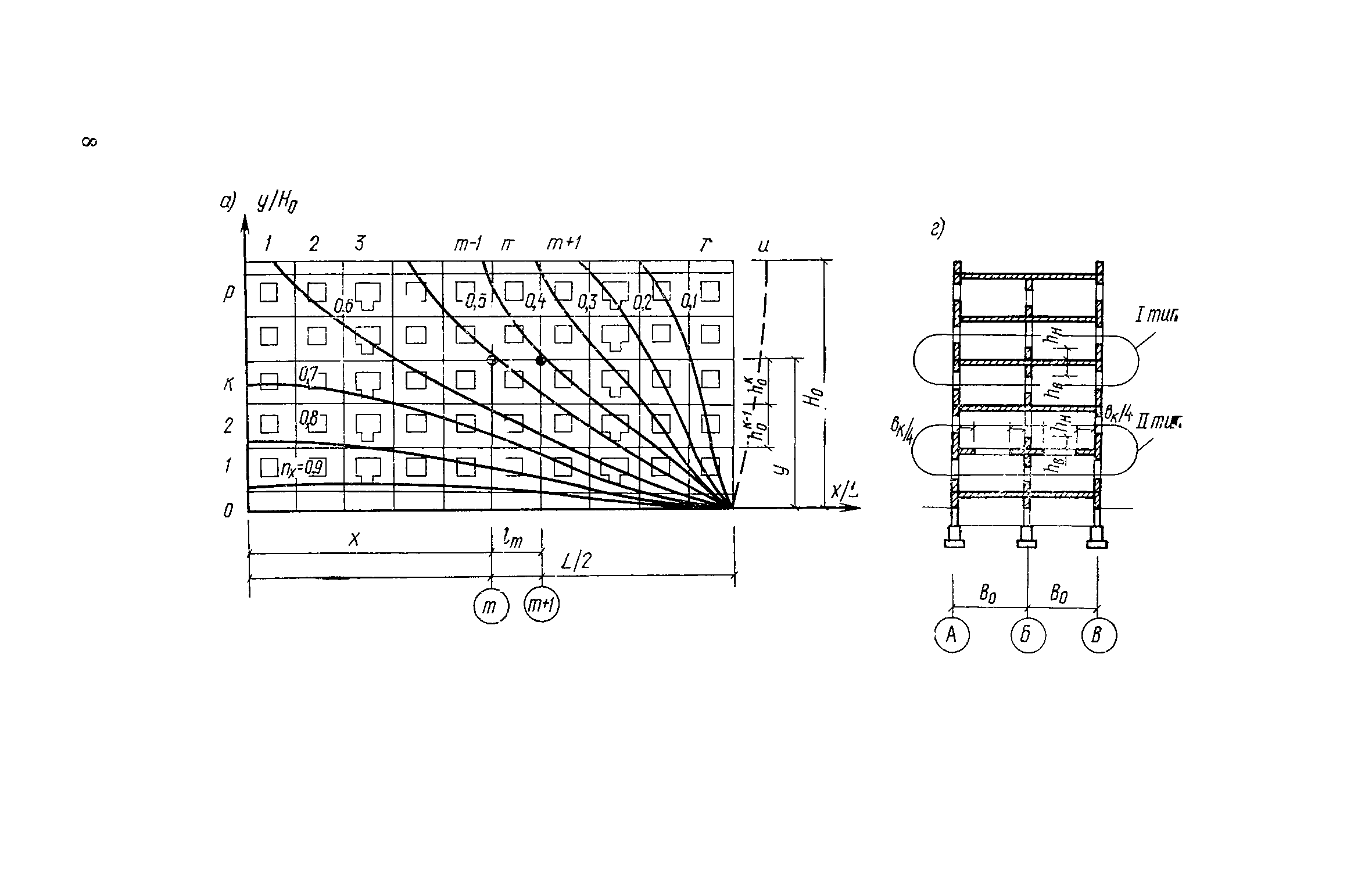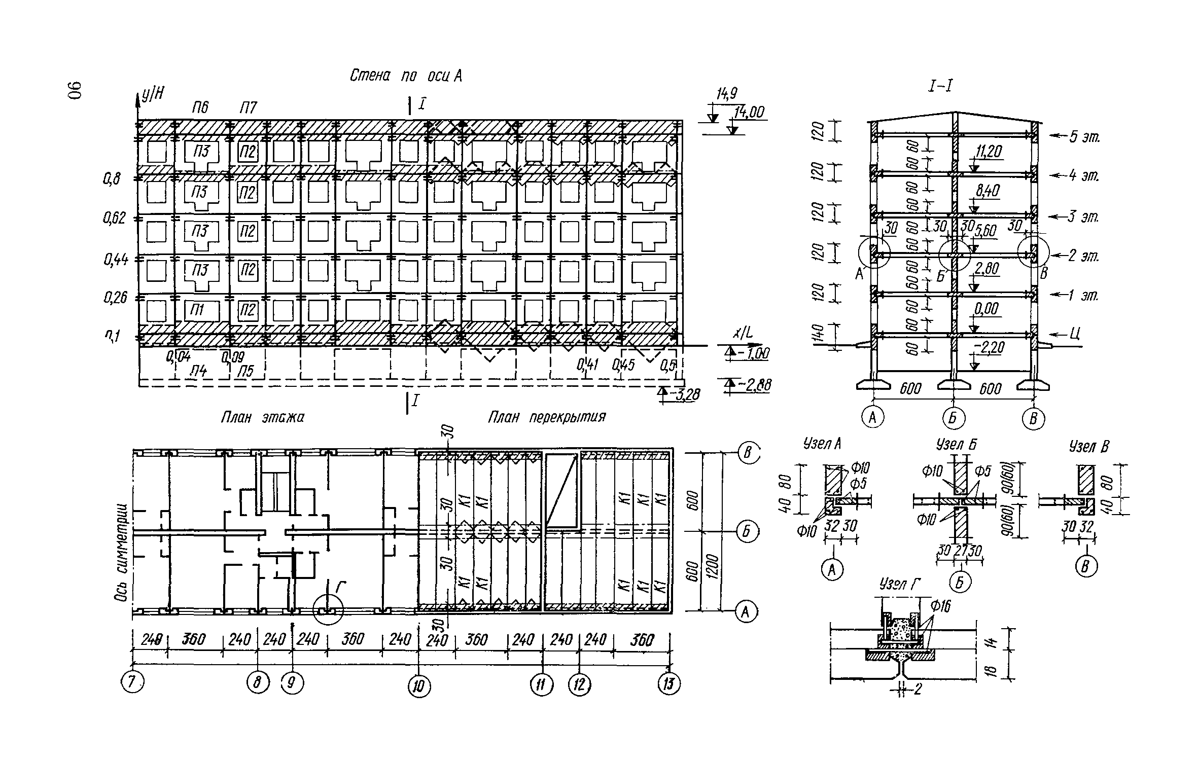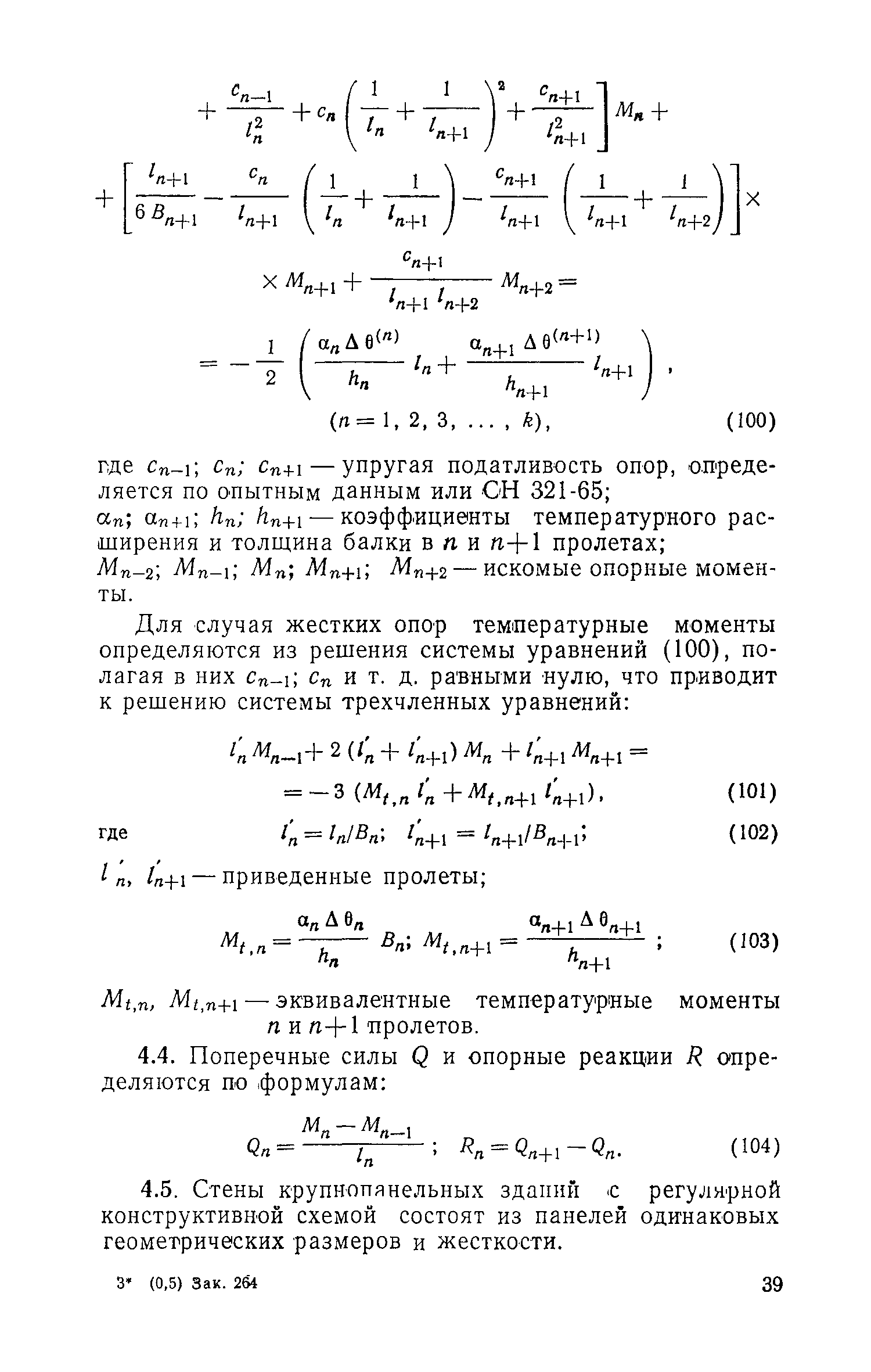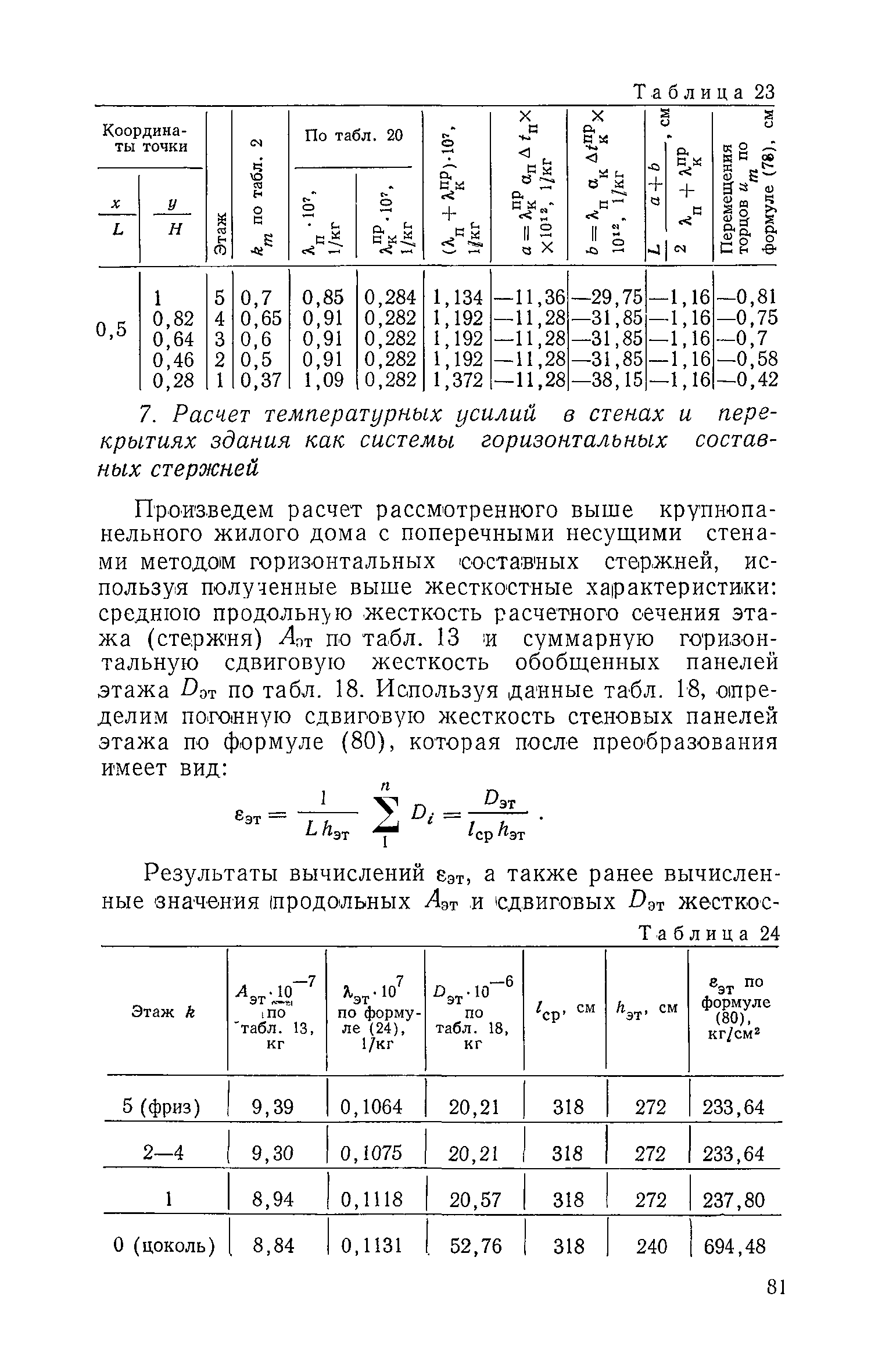 | Оглавление: | Предисловие 1. Расчет крупнопанельных зданий на температурно-влажностные воздействия и усадку Основные положения 2. Расчет крупнопанельных зданий как однослойных и многослойных пластинок на действие температуры Выбор расчетной схемы Жесткостные характеристики Продольная жесткость (податливость) составных стержней Продольная жесткость элементов стен и перекрытий Средняя жесткость Расчетного сечения стены или перекрытия в пределах этажа Средняя жесткость расчетного сечения этажа Изгибная жесткость Сдвиговая жесткость Приведенные высоты этажей и здания Температурные усилия и перемещения стен и перекрытий при действии температуры 3. Расчет крупнопанельных зданий как плоских или пространственных составных стержней Выбор расчетной схемы. Обозначения Жесткостные характеристики составных стержней Дифференциальные уравнения для горизонтального составного стержня и их решение 4. Расчет наружных стен при наличии перепада температуры по толщине Температурные усилия в панелях и связях Прогибы и углы поворота панелей и стыков Раскрытие стыков и панелей Приложение 1. Расчетные значения приведенных средних температур однослойных и многослойных конструкций зданий с учетом радиации, влажности и усадки Приложение 2. Пример расчета на действие температуры крупнопанельного жилого дома с поперечными несущими стенами Приложение 3. Пример расчета на действие температуры крупнопанельного жилого дома с продольными несущими стенами Приложение 4. Пример расчета на действие температуры крупнопанельного здания с продольными несущими стенами как горизонтального составного стержня |