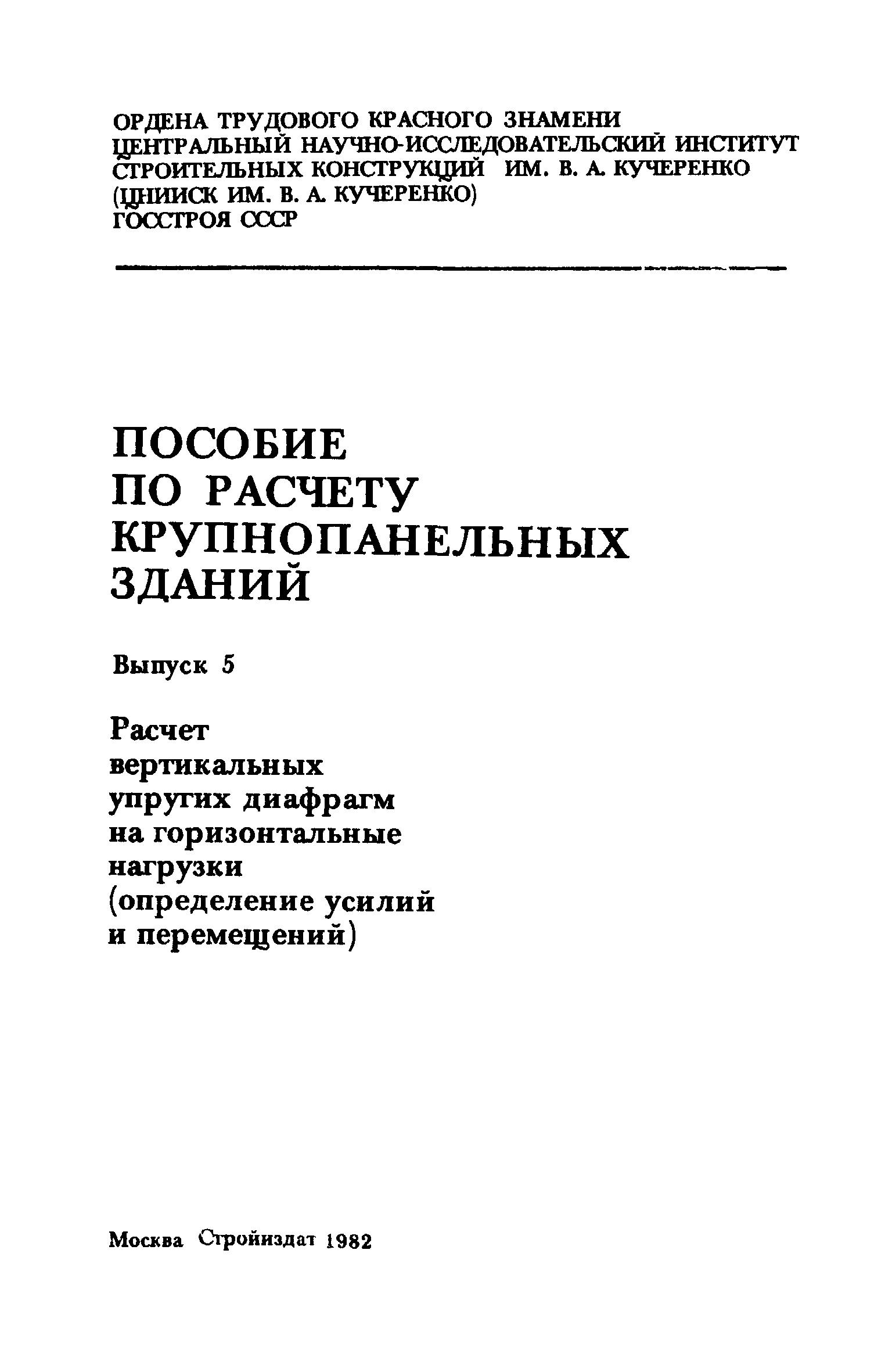 | Название рус.: | Пособие по расчету крупнопанельных зданий. Выпуск 5. Расчет вертикальных упругих диафрагм на горизонтальные нагрузки (определение усилий и перемещений) |