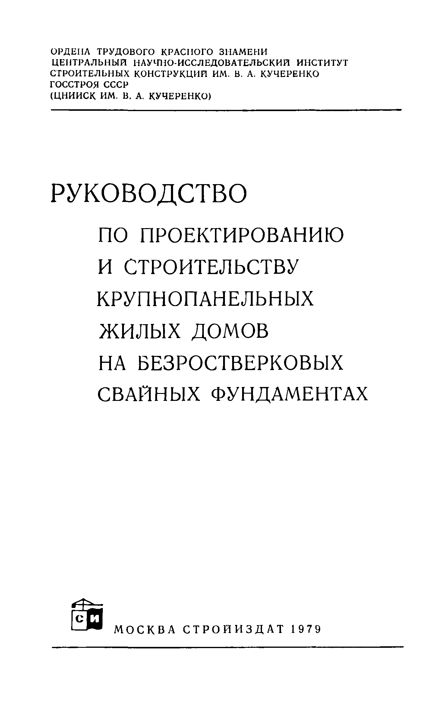 | Название рус.: | Руководство по проектированию и строительству крупнопанельных жилых домов на безростверковых свайных фундаментах |