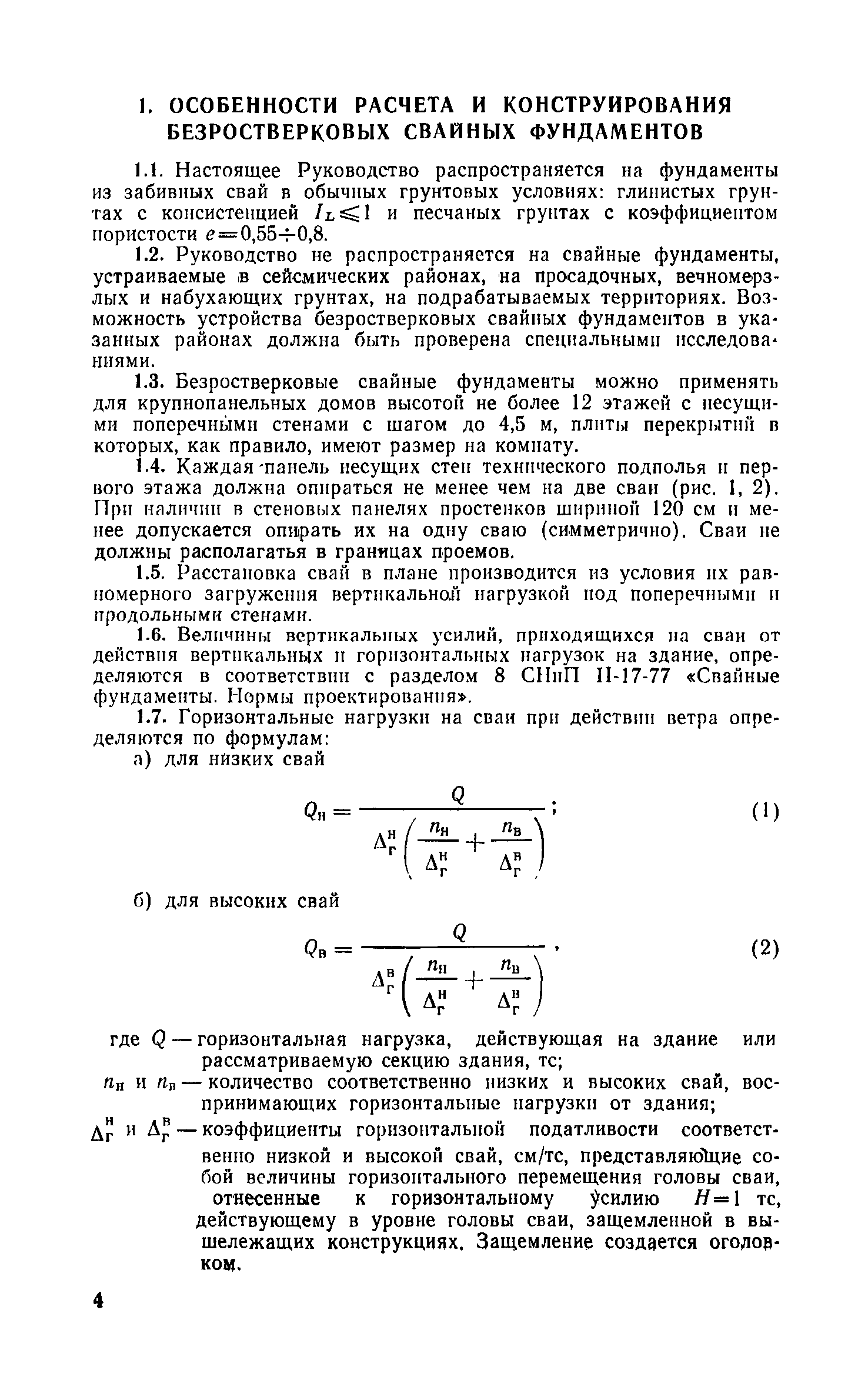 | Оглавление: | Предисловие 1. Особенности расчета и конструирования безростверковых свайных фундаментов 2. Расчет и конструирование элементов крупнопанельного издания, опирающихся на безростверковые свайные фундаменты 3. Производство работ и контроль качества Приложение 1. Определение величины коэффициентов горизонтальной податливости свай Приложение 2. Расчет свай на совместное действие вертикальных и горизонтальных нагрузок Приложение 3. Пример расчета конструкций, расположенных на сваях |