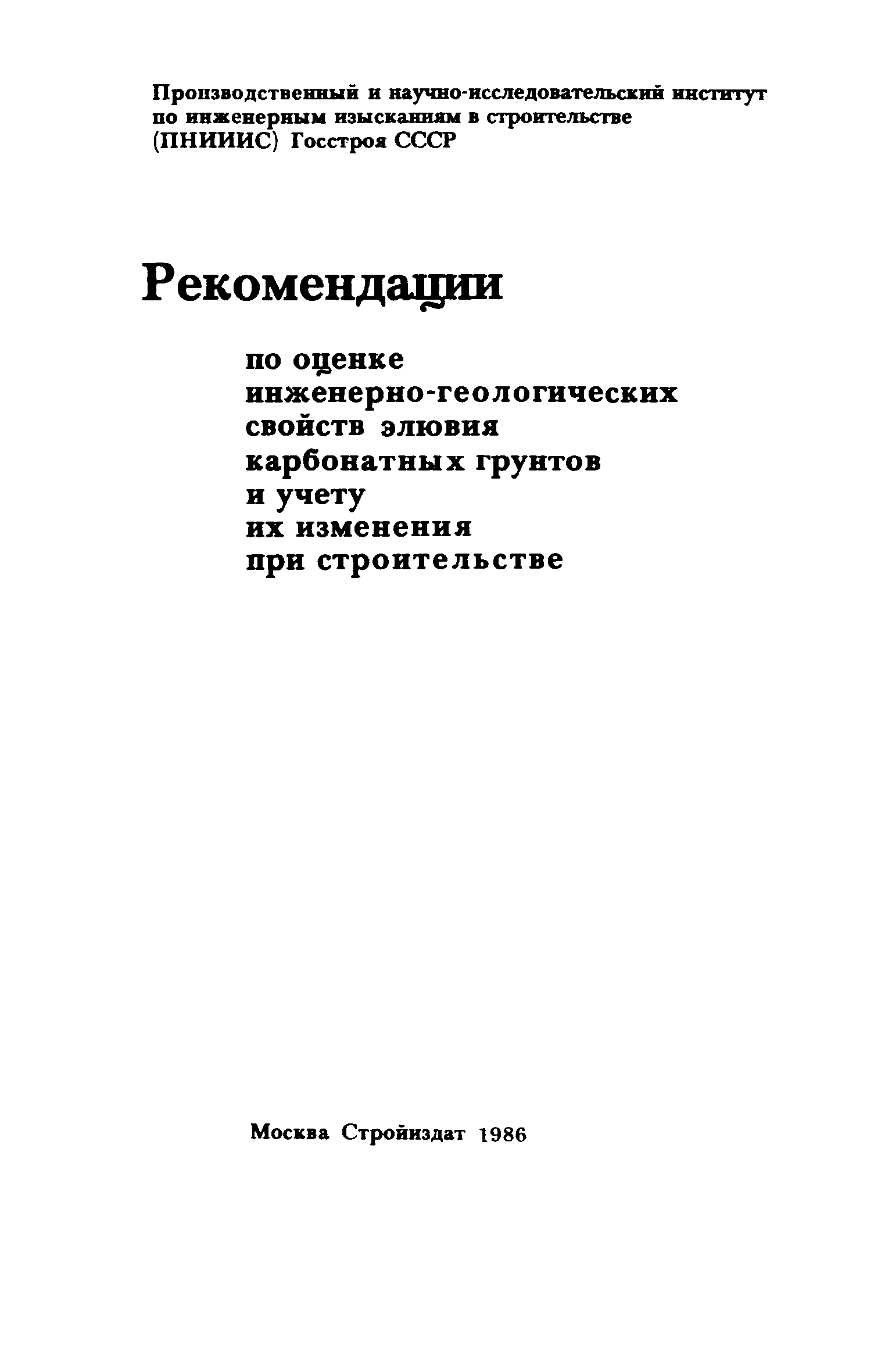 | Название рус.: | Рекомендации по оценке инженерно-геологических свойств элювия карбонатных грунтов и учету их изменения при строительстве |