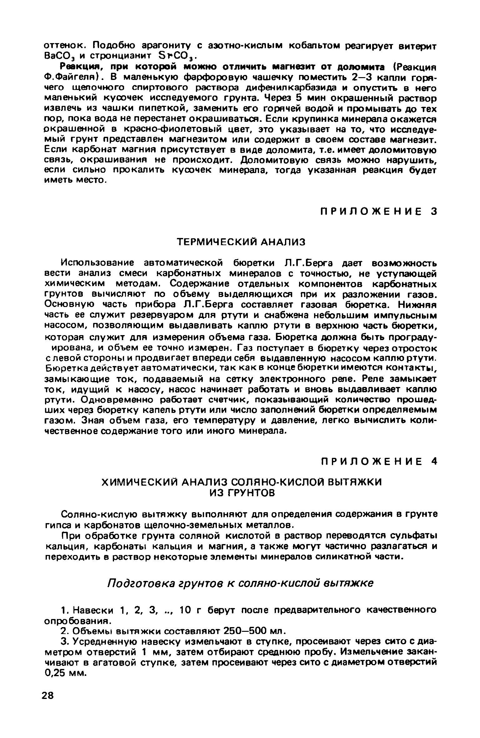 | Оглавление: | 1. Общие положения 2. Номенклатура элювия карбонатных пород по дисперсности и методы исследования дисперсного состава 3. Номенклатура элювия карбонатных пород по минеральному составу и методы исследования химико-минерального состава 4. Особенности исследования физических свойств элювиальных мелкозернистых карбонатных грунтов 5. Методы исследования деформационных свойств мелкозернистого карбонатного элювия 6. Методы исследования прочностных свойств мелкозернистого карбонатного элювия 7. Методы исследования крупнообломочного карбонатного элювия 8. Прогноз изменения состава и физико-механических свойств элювия карбонатных пород в процессе выветривания на застраиваемых территориях Приложение 1. Ориентировочное определение состава карбонатных пород (по Л.Б. Рухину и Г. Теодоровичу) Приложение 2. Хроматографические реакции Приложение З. Термический анализ Приложение 4. Химический анализ соляно-кислой вытяжки из грунтов. Приложение 5. Определение плотности (удельного веса) частиц грунтов |