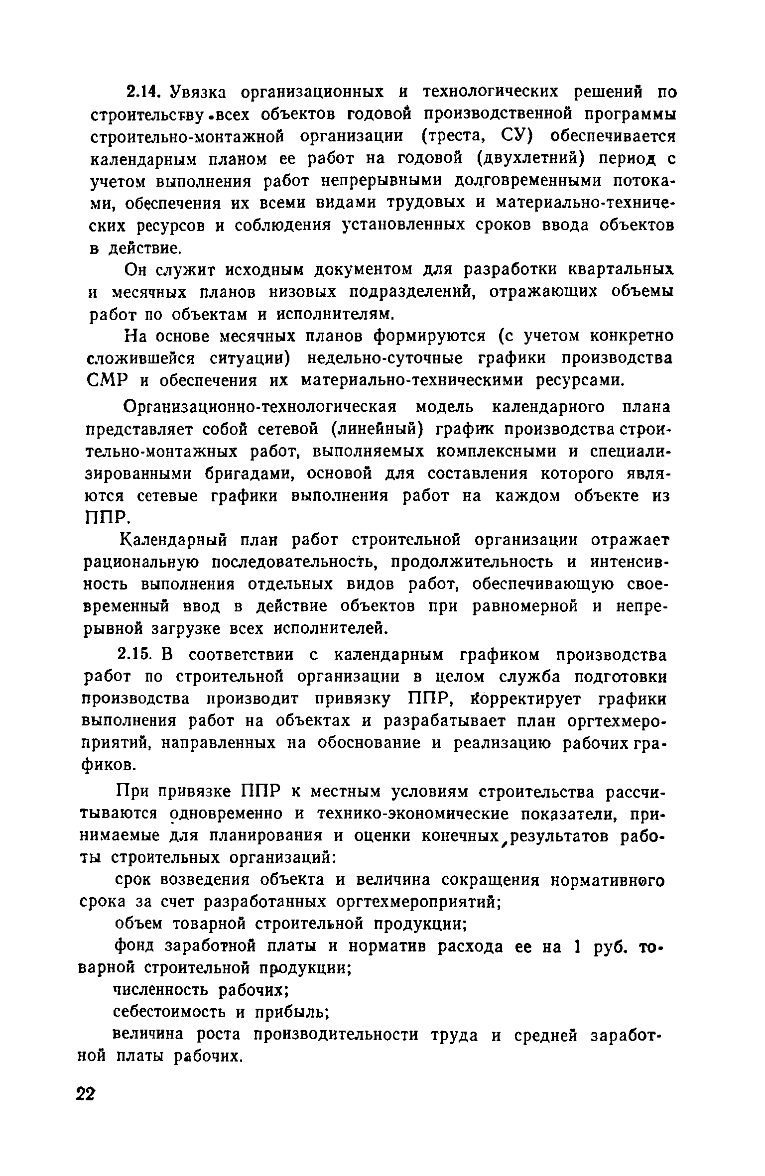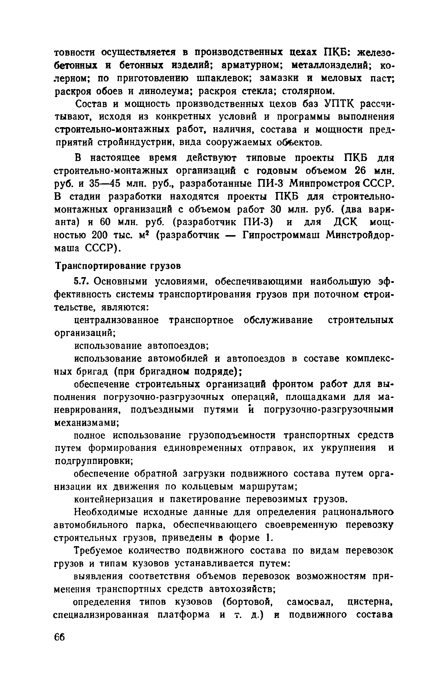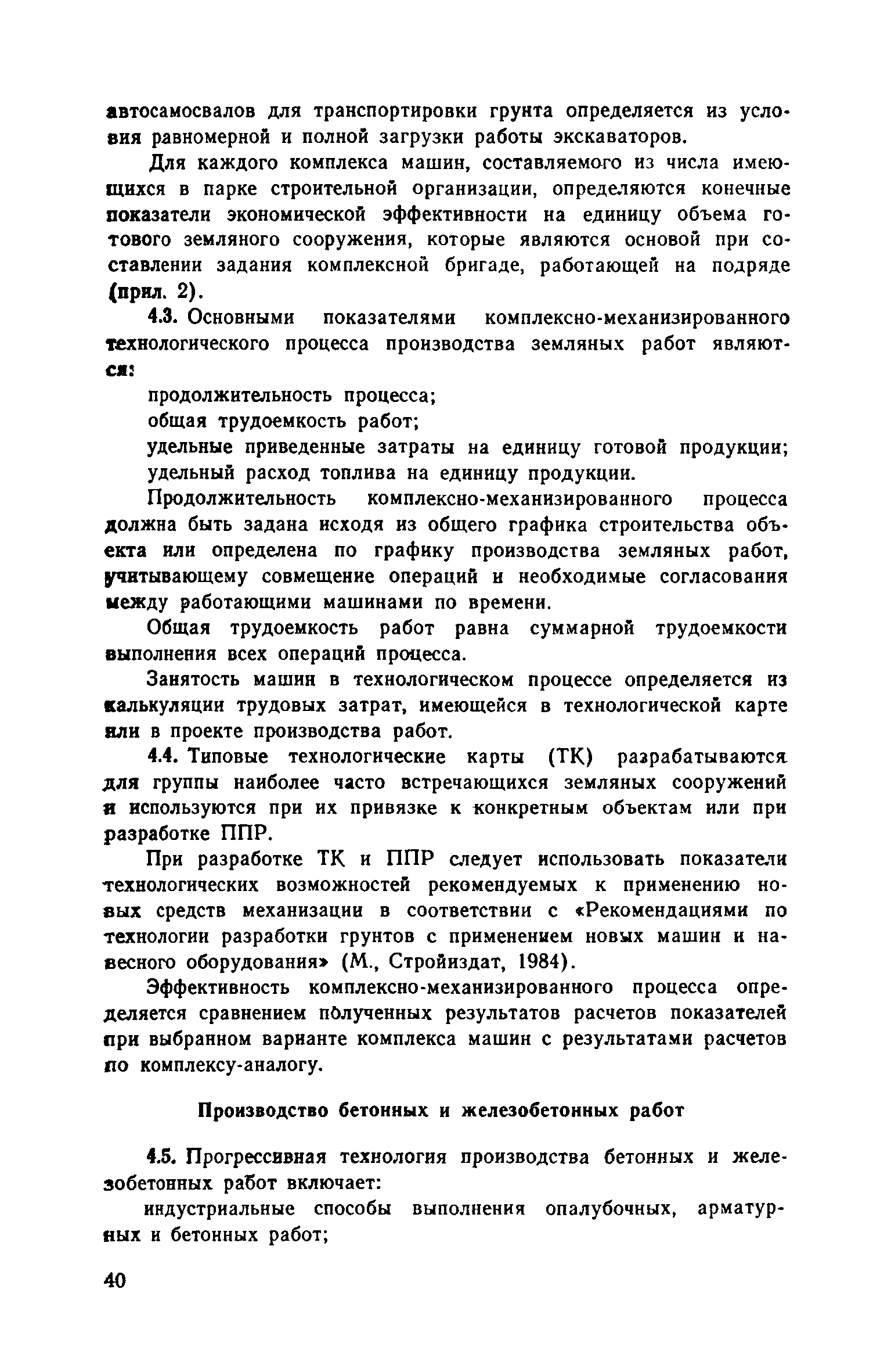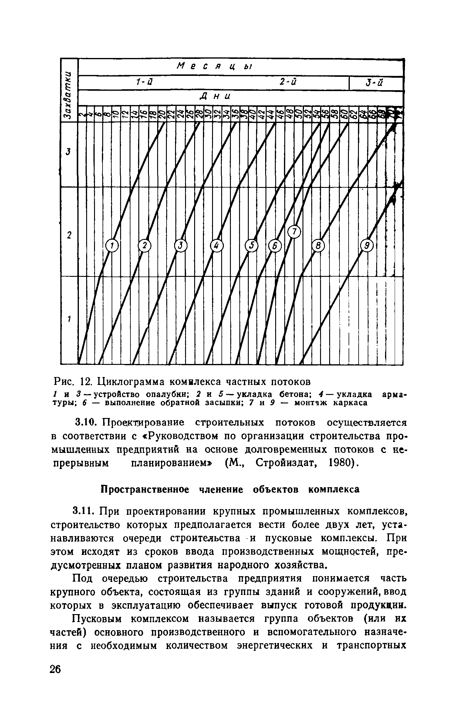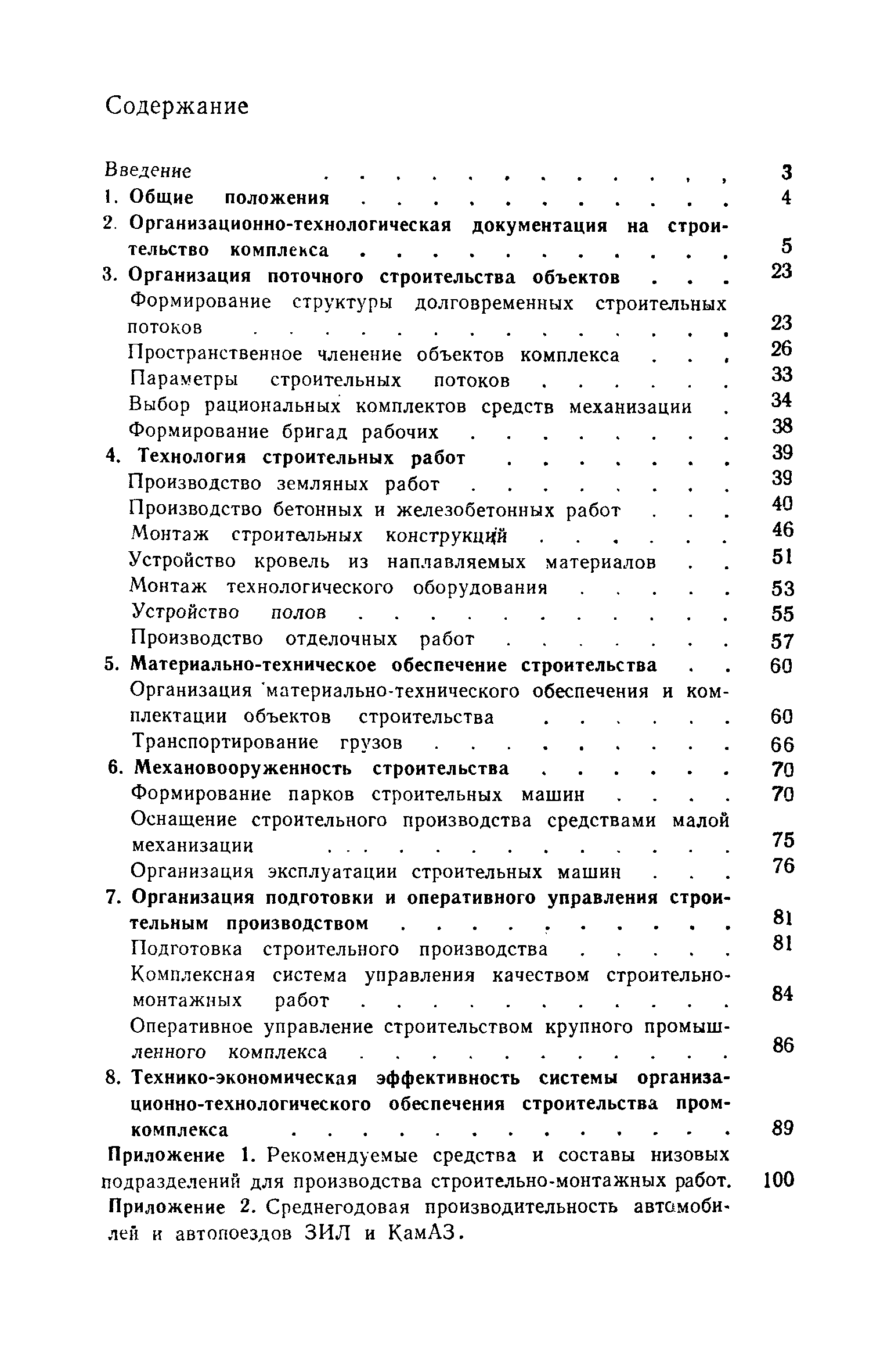 | Оглавление: | Введение 1. Общие положения 2. Организационно-технологическая документация на строительство комплекса 3. Организация поточного строительства объектов Формирование структуры долговременных строительных потоков Пространственное членение объектов комплекса Параметры строительных потоков Выбор рациональных комплектов средств механизации Формирование бригад рабочих 4. Технология строительных работ Производство земляных работ Производство бетонных и железобетонных работ Монтаж строительных конструкций Устройство кровель из наплавляемых материалов Монтаж технологического оборудования Устройство полов Производство отделочных работ 5. Материально-техническое обеспечение строительства Организация материально-технического обеспечения и комплектации объектов строительства Транспортирование грузов 6. Механовооруженность строительства Формирование парков строительных машин Оснащение строительного производства средствами малой механизации Организация эксплуатации строительных машин 7. Организация подготовки и оперативного управления строительным производством Подготовка строительного производства Комплексная система управления качеством строительно-монтажных работ Оперативное управление строительством крупного промышленного комплекса 8. Технико-экономическая эффективность системы организационно-технологического обеспечения строительства промкомплекса Приложение 1. Рекомендуемые средства и составы низовых подразделений для производства строительно-монтажных работ Приложение 2. Среднегодовая производительность автомобилей и автопоездов ЗИЛ и КамАЗ |
