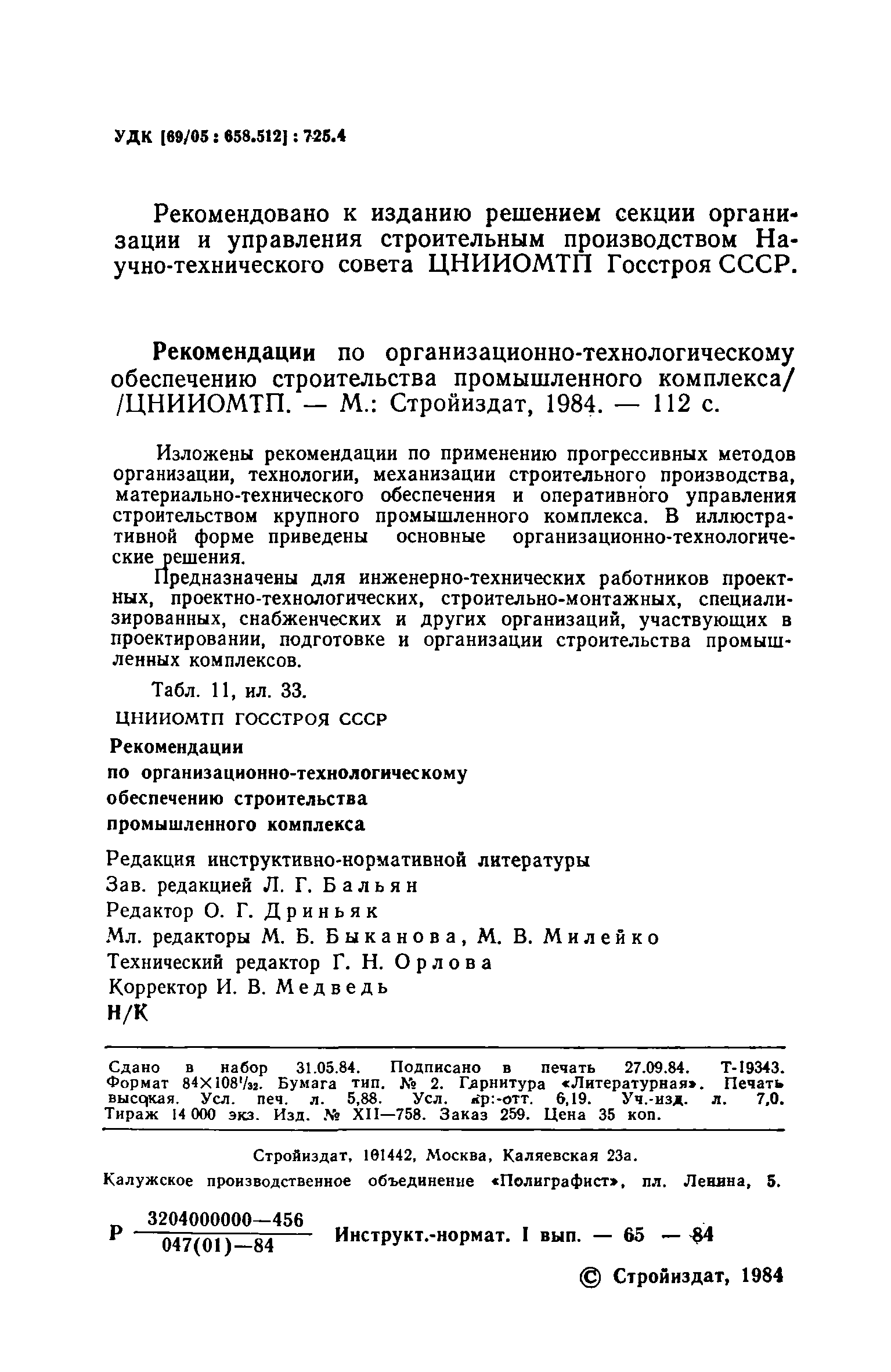 | Название рус.: | Рекомендации по организационно-технологическому обеспечению строительства промышленного комплекса |
