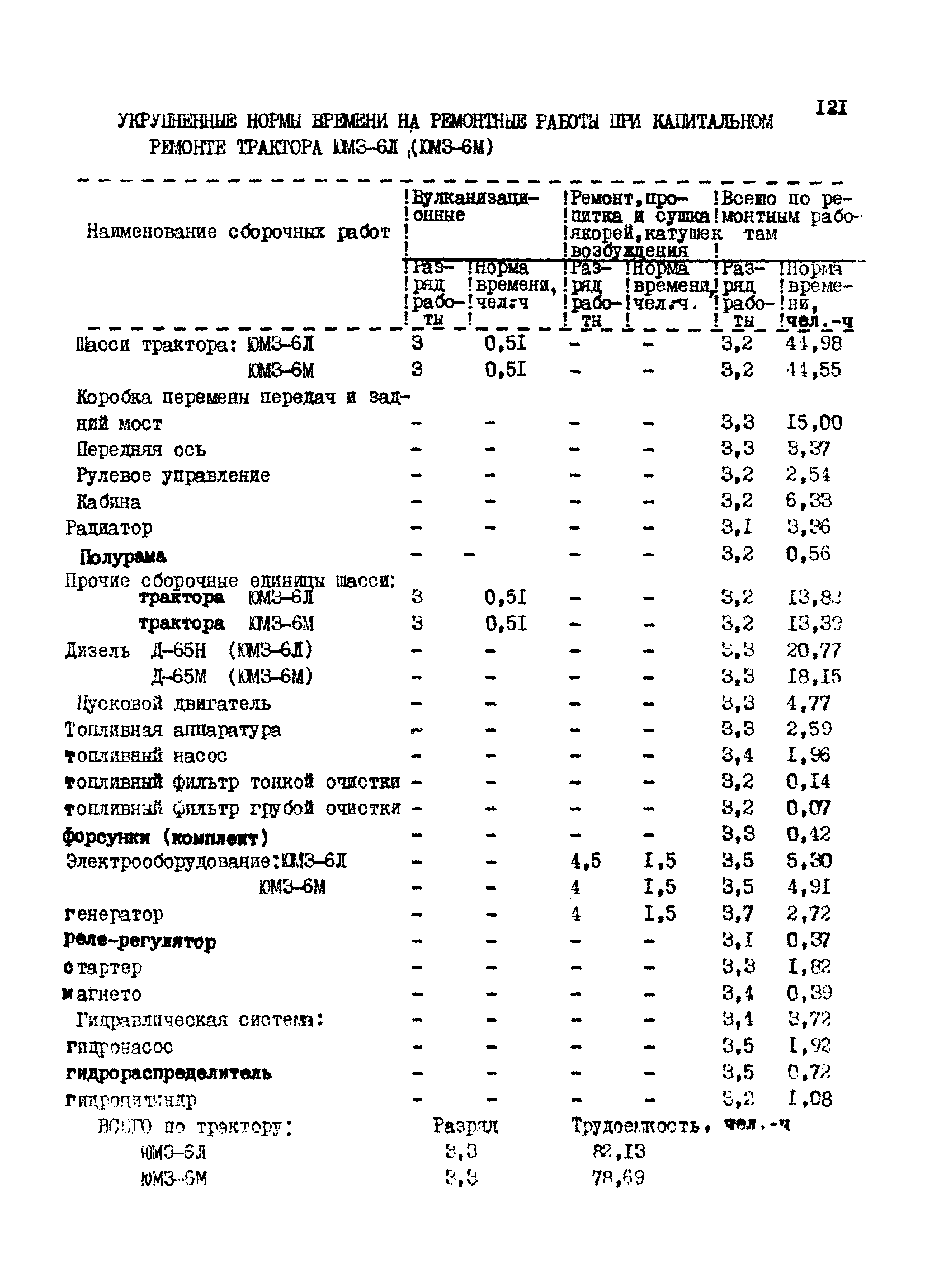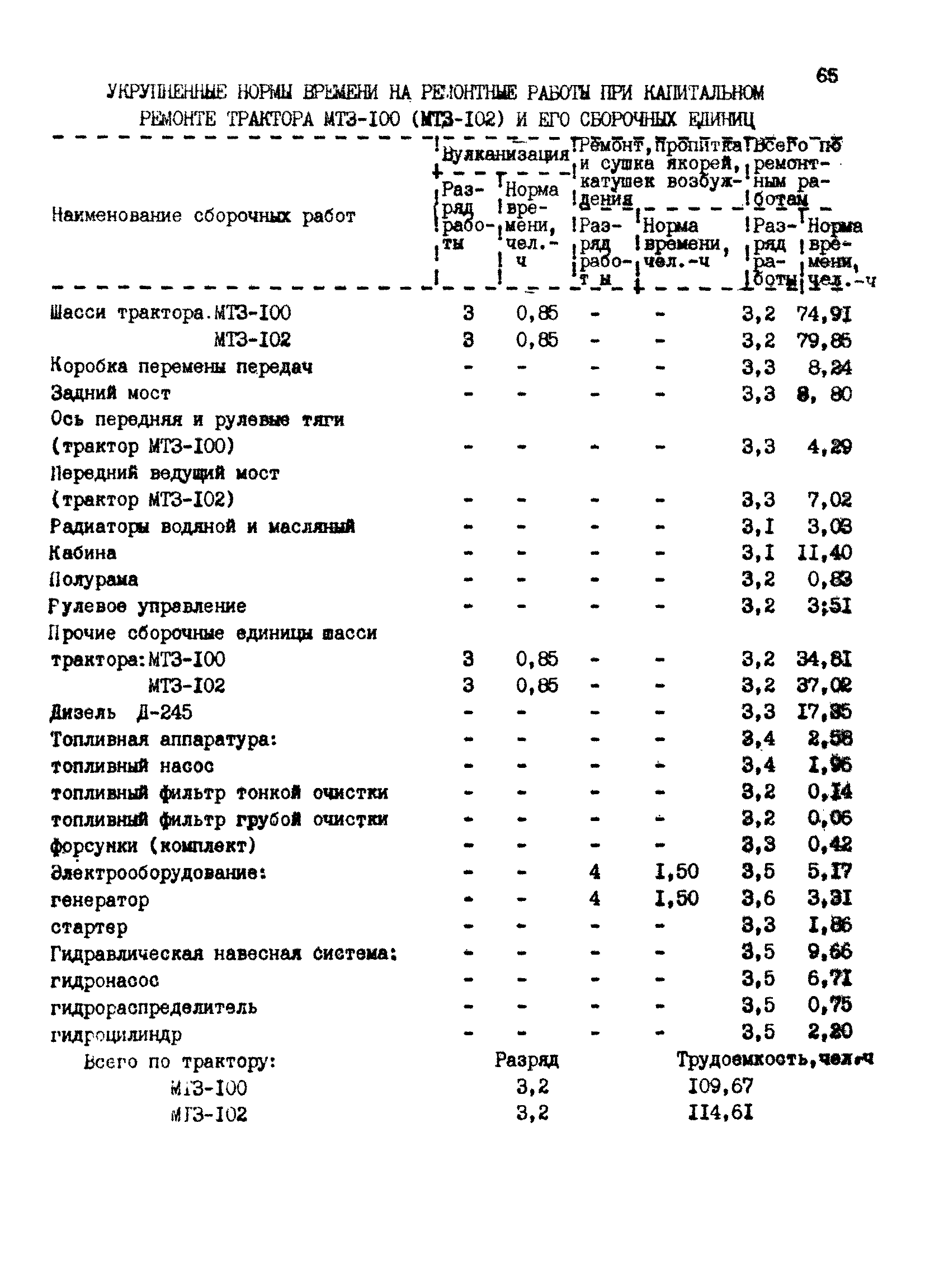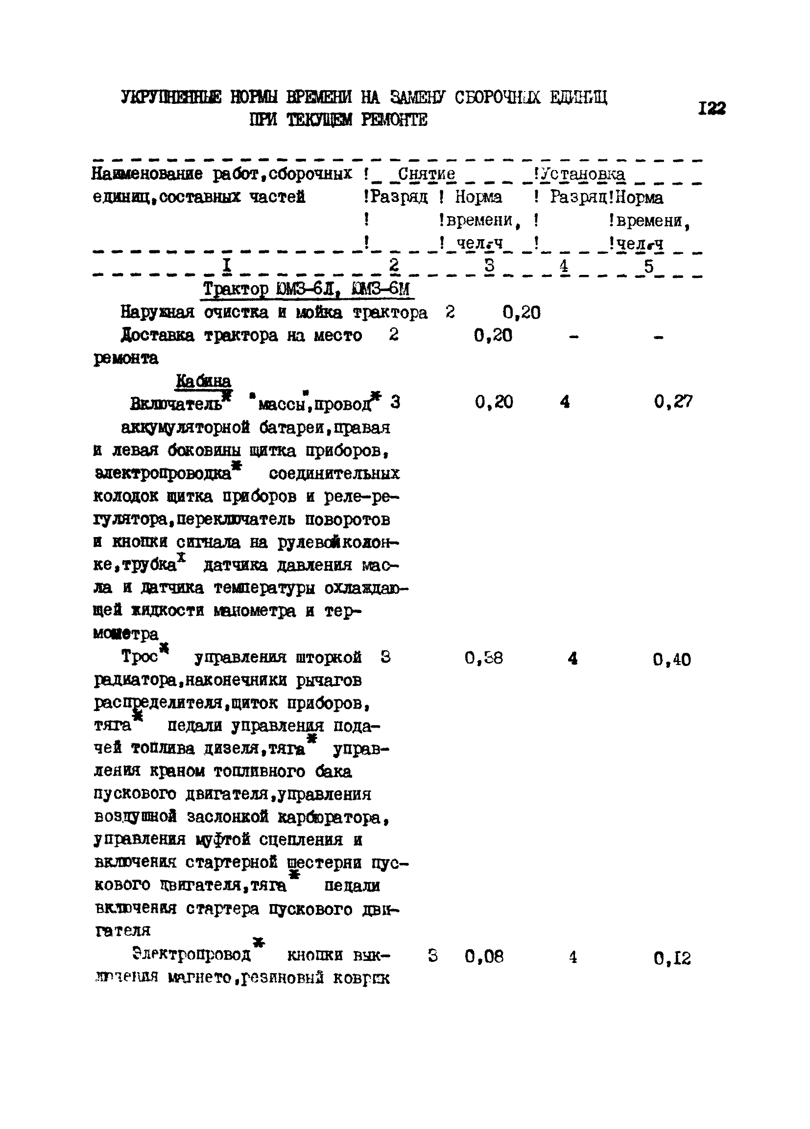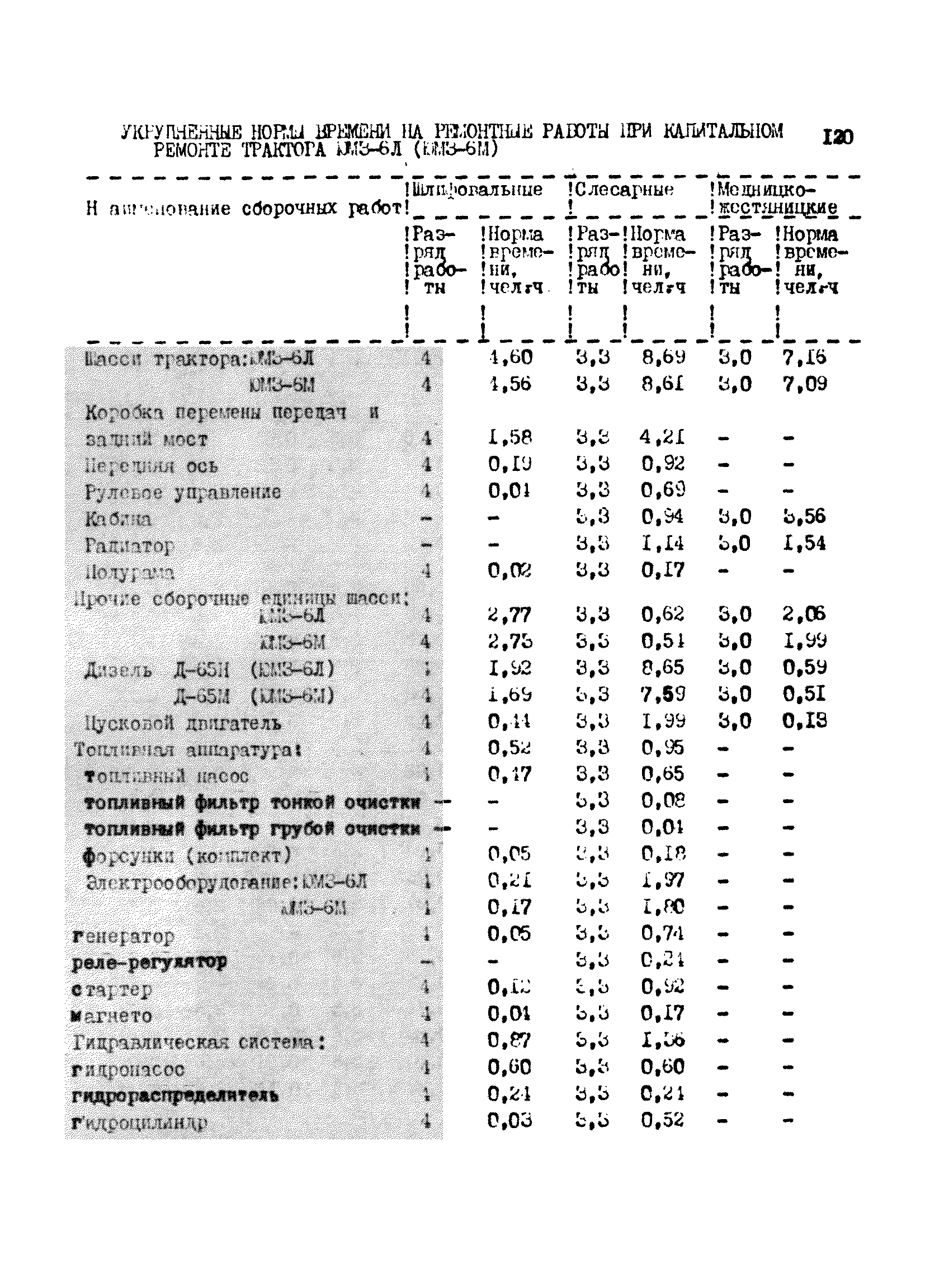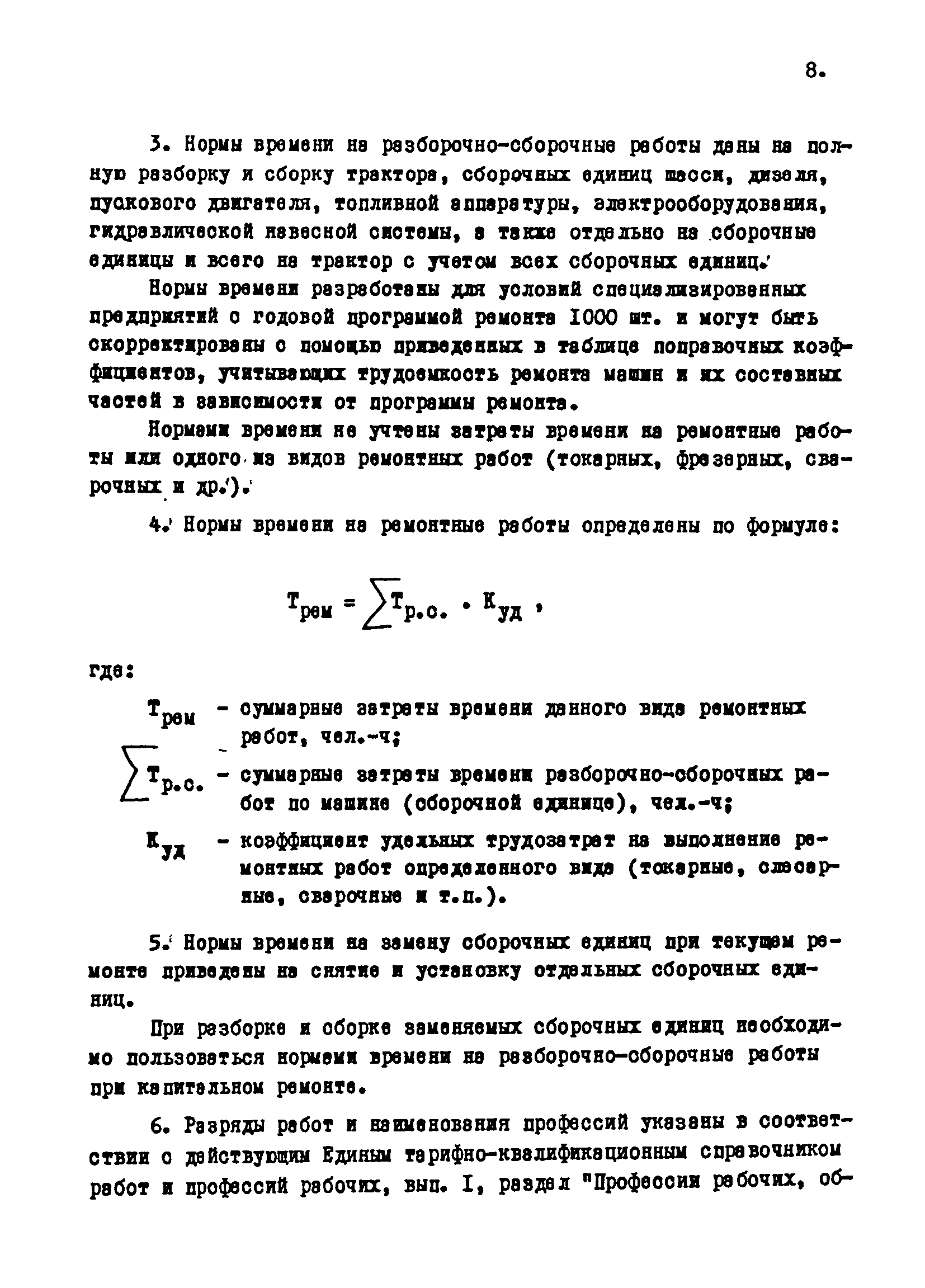 Межотраслевые укрупненные нормы времени на ремонт тракторов (гусеничных, колесных) с тяговым усилием от 0,6 тс (6 кН) до 2 тс (20 кН)| Статус: | не установлен срок действия | | Название рус.: | Межотраслевые укрупненные нормы времени на ремонт тракторов (гусеничных, колесных) с тяговым усилием от 0,6 тс (6 кН) до 2 тс (20 кН) | | Дата добавления в базу: | 01.10.2014 | | Дата актуализации: | 01.01.2021 | | Область применения: | Нормы рекомендуются для применения на всех предприятиях, в подразделениях, входящих в состав предприятий и организаций, занимающихся ремонтом тракторов, независимо от их ведомственной подчиненности, форм собственности и хозяйствования | | Оглавление: | Общая часть Организация труда Санитарно-гигиенические и производственно-эстетические условия выполнения ремонтно-обслуживающих работ Перечень оборудования и приспособлений Часть 1. Нормы времени на капитальный и текущий ремонт тракторов с тяговым от 2 тс (20кН) до 0,6 тс (6 кН) | | Разработан: | ЦБНТ
