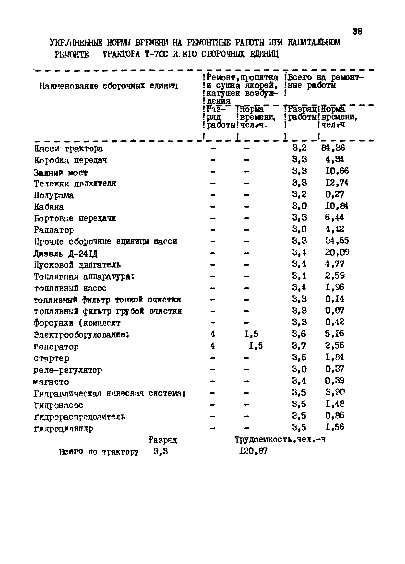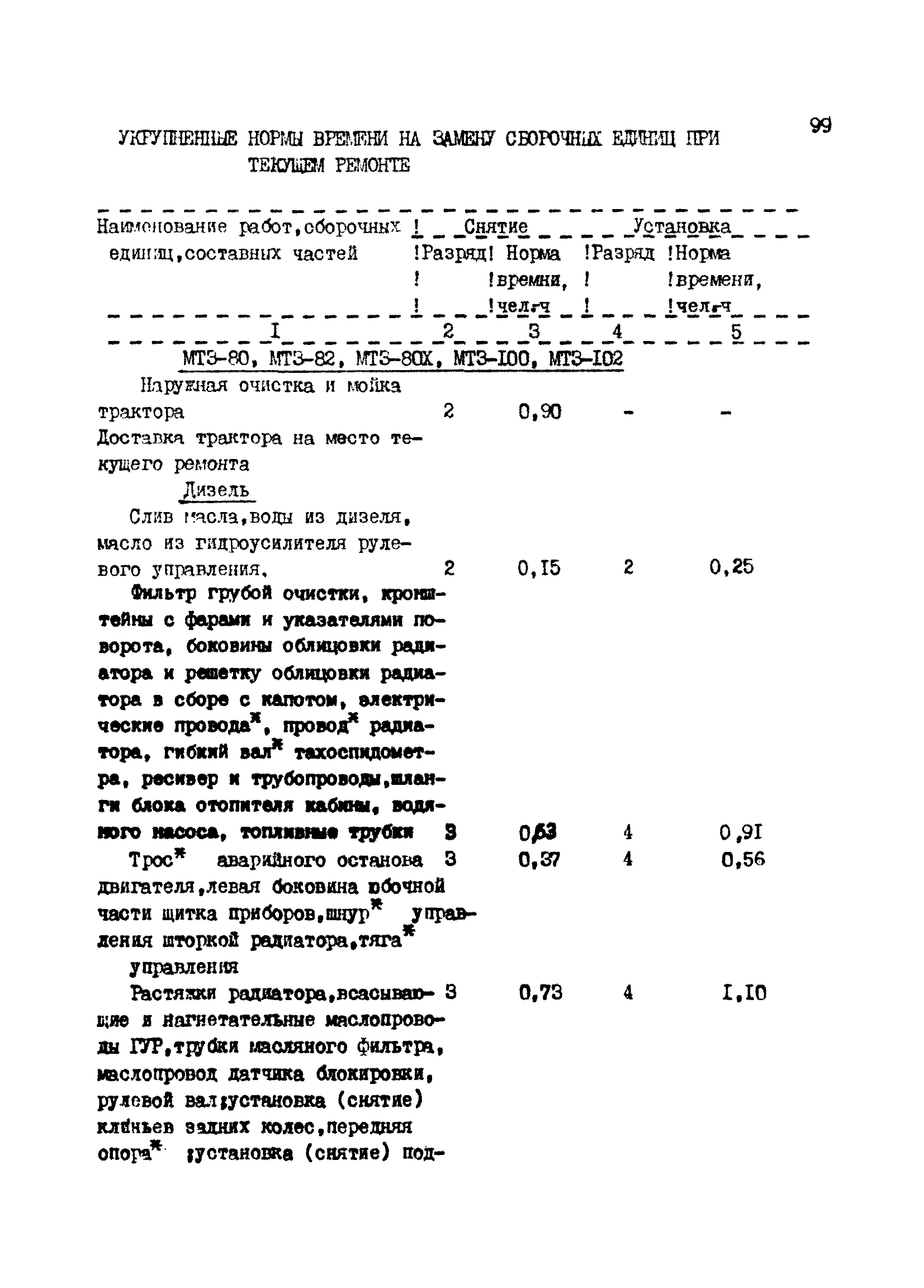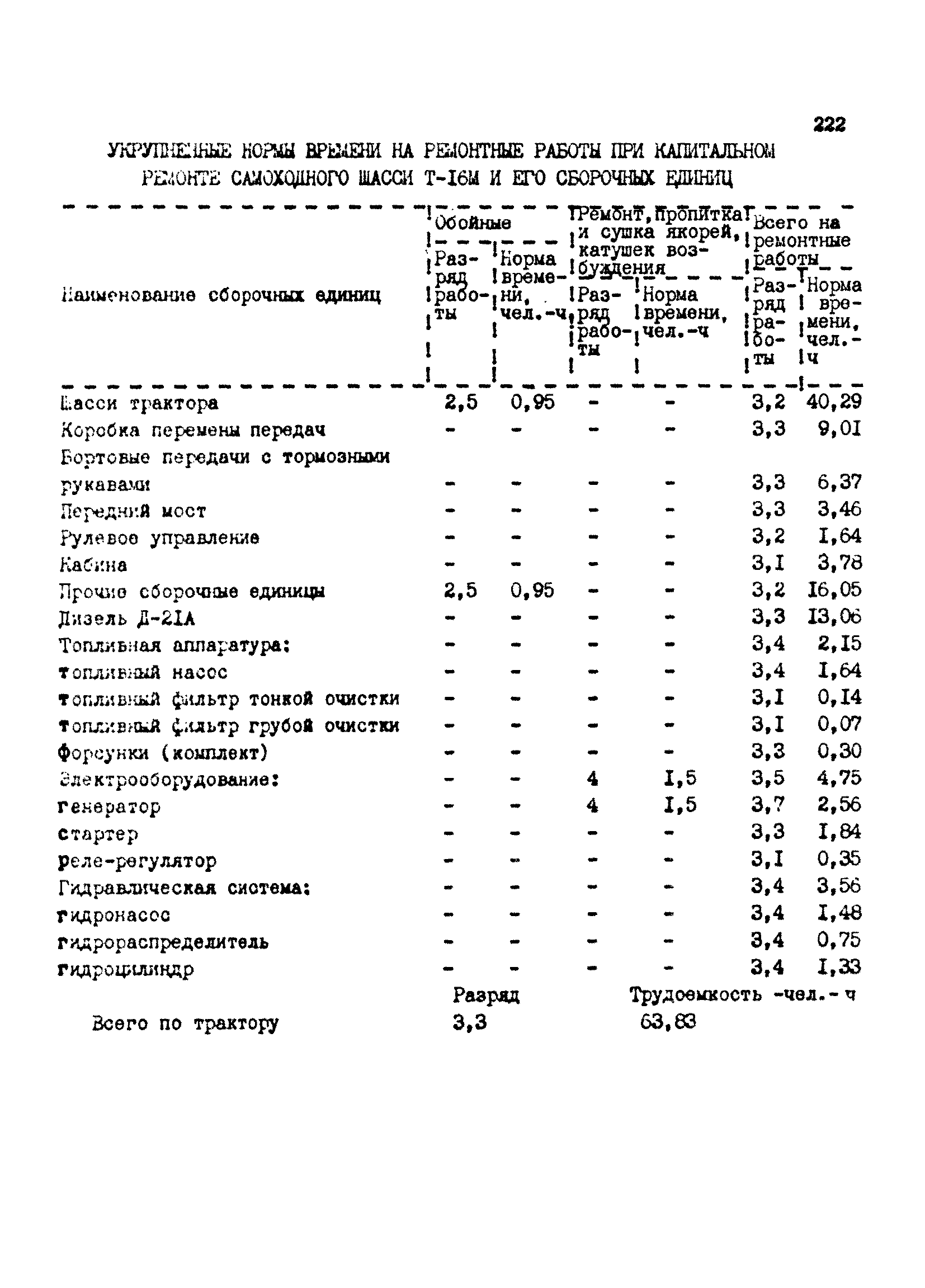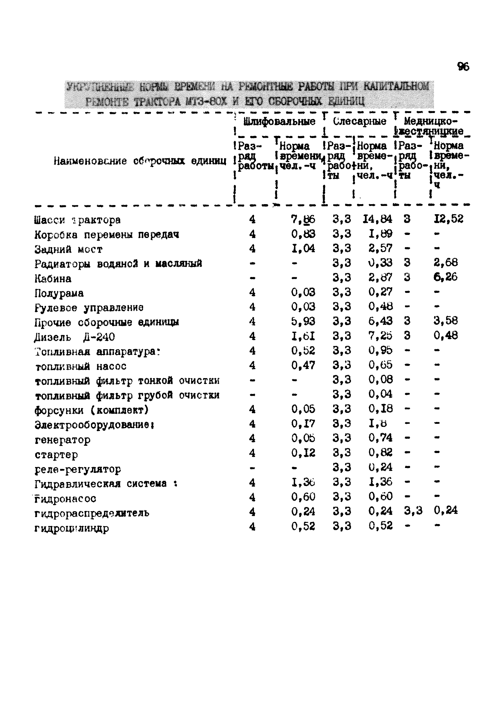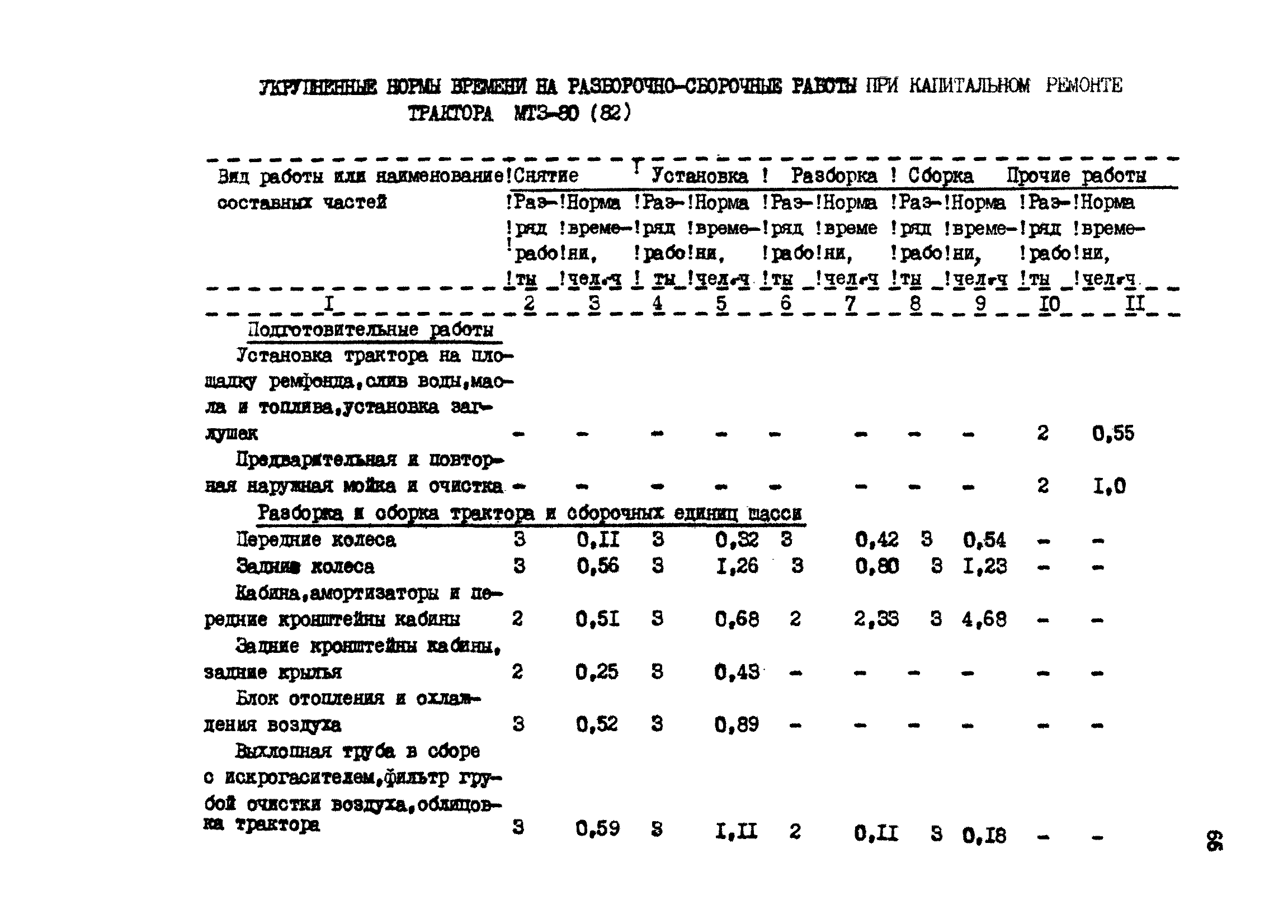 Межотраслевые укрупненные нормы времени на ремонт тракторов (гусеничных, колесных) с тяговым усилием от 0,6 тс (6 кН) до 2 тс (20 кН)| Статус: | не установлен срок действия | | Название рус.: | Межотраслевые укрупненные нормы времени на ремонт тракторов (гусеничных, колесных) с тяговым усилием от 0,6 тс (6 кН) до 2 тс (20 кН) | | Дата добавления в базу: | 01.10.2014 | | Дата актуализации: | 01.01.2021 | | Область применения: | Нормы рекомендуются для применения на всех предприятиях, в подразделениях, входящих в состав предприятий и организаций, занимающихся ремонтом тракторов, независимо от их ведомственной подчиненности, форм собственности и хозяйствования | | Оглавление: | Общая часть Организация труда Санитарно-гигиенические и производственно-эстетические условия выполнения ремонтно-обслуживающих работ Перечень оборудования и приспособлений Часть 1. Нормы времени на капитальный и текущий ремонт тракторов с тяговым от 2 тс (20кН) до 0,6 тс (6 кН) | | Разработан: | ЦБНТ