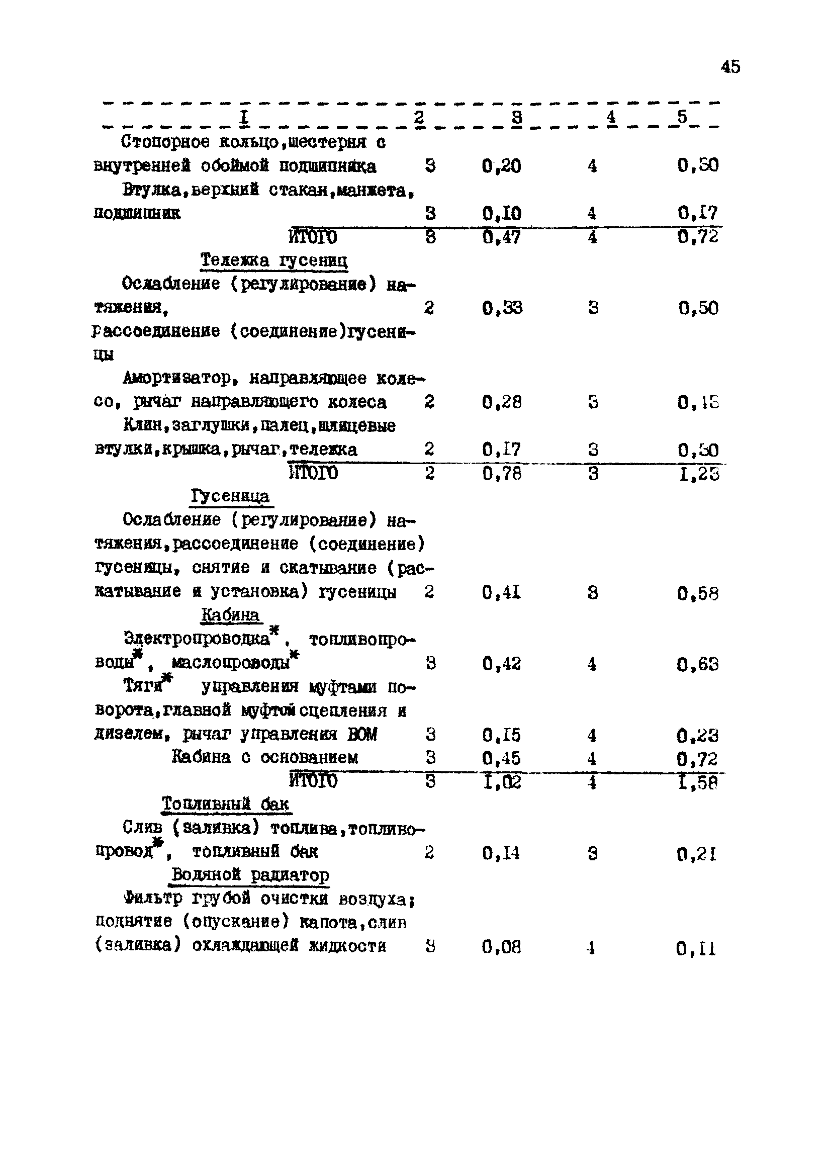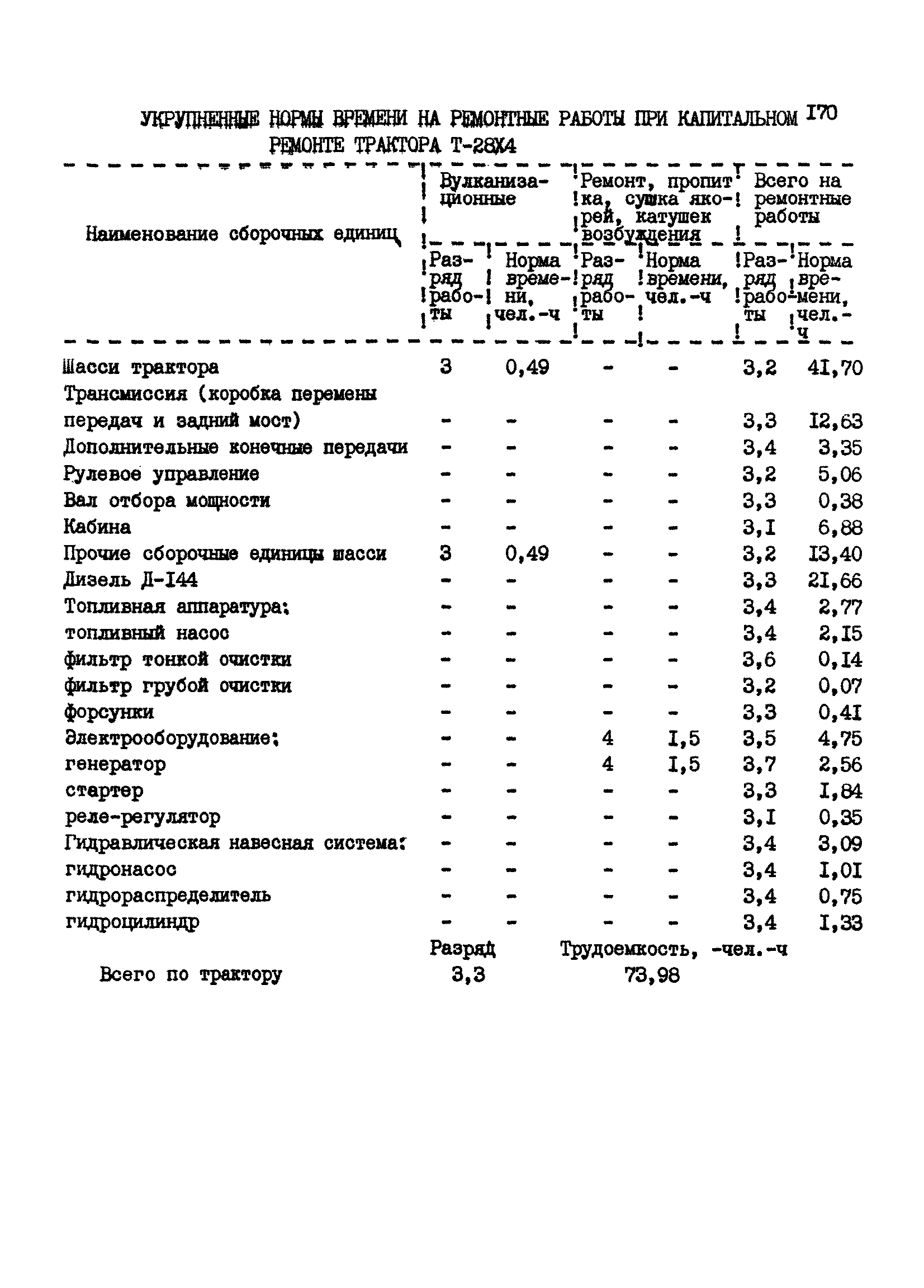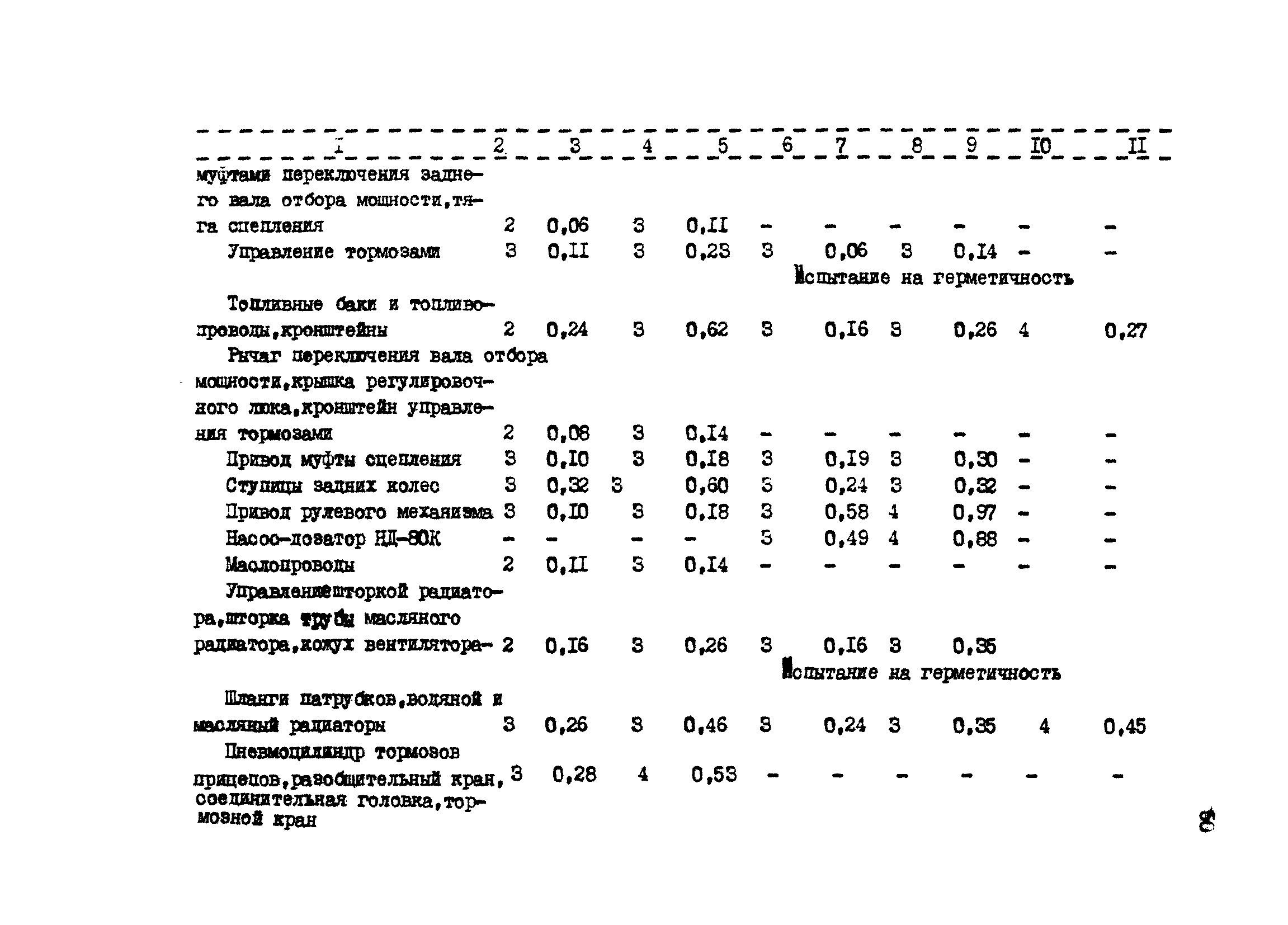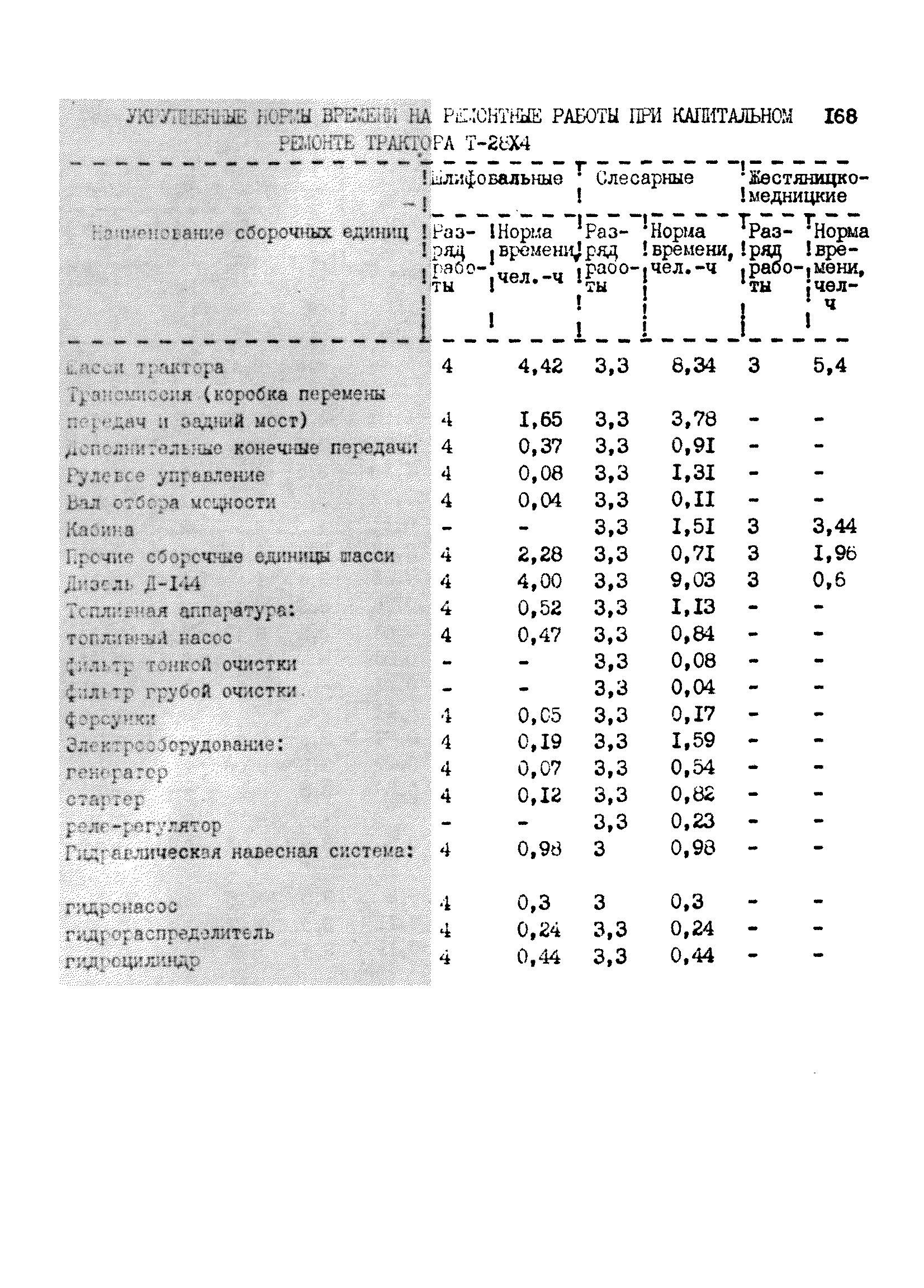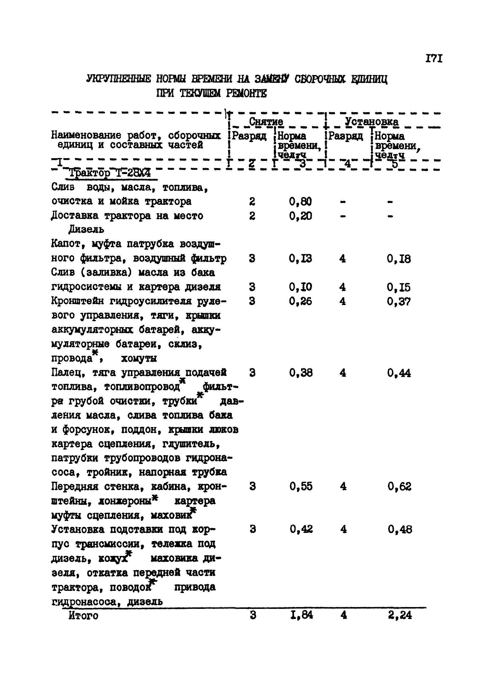 Межотраслевые укрупненные нормы времени на ремонт тракторов (гусеничных, колесных) с тяговым усилием от 0,6 тс (6 кН) до 2 тс (20 кН)| Статус: | не установлен срок действия | | Название рус.: | Межотраслевые укрупненные нормы времени на ремонт тракторов (гусеничных, колесных) с тяговым усилием от 0,6 тс (6 кН) до 2 тс (20 кН) | | Дата добавления в базу: | 01.10.2014 | | Дата актуализации: | 01.01.2021 | | Область применения: | Нормы рекомендуются для применения на всех предприятиях, в подразделениях, входящих в состав предприятий и организаций, занимающихся ремонтом тракторов, независимо от их ведомственной подчиненности, форм собственности и хозяйствования | | Оглавление: | Общая часть Организация труда Санитарно-гигиенические и производственно-эстетические условия выполнения ремонтно-обслуживающих работ Перечень оборудования и приспособлений Часть 1. Нормы времени на капитальный и текущий ремонт тракторов с тяговым от 2 тс (20кН) до 0,6 тс (6 кН) | | Разработан: | ЦБНТ