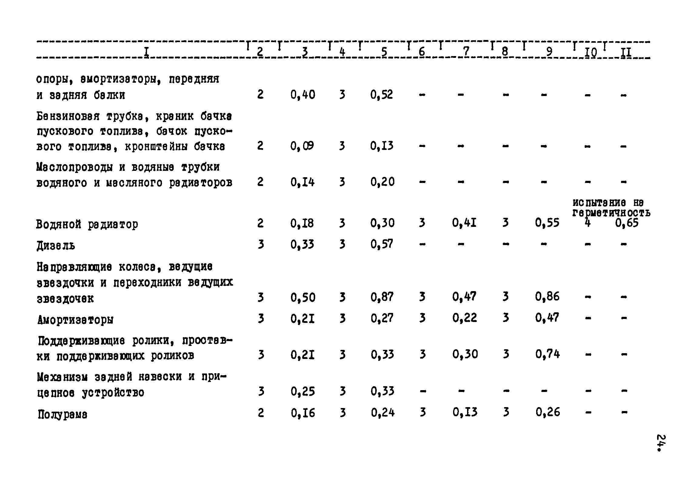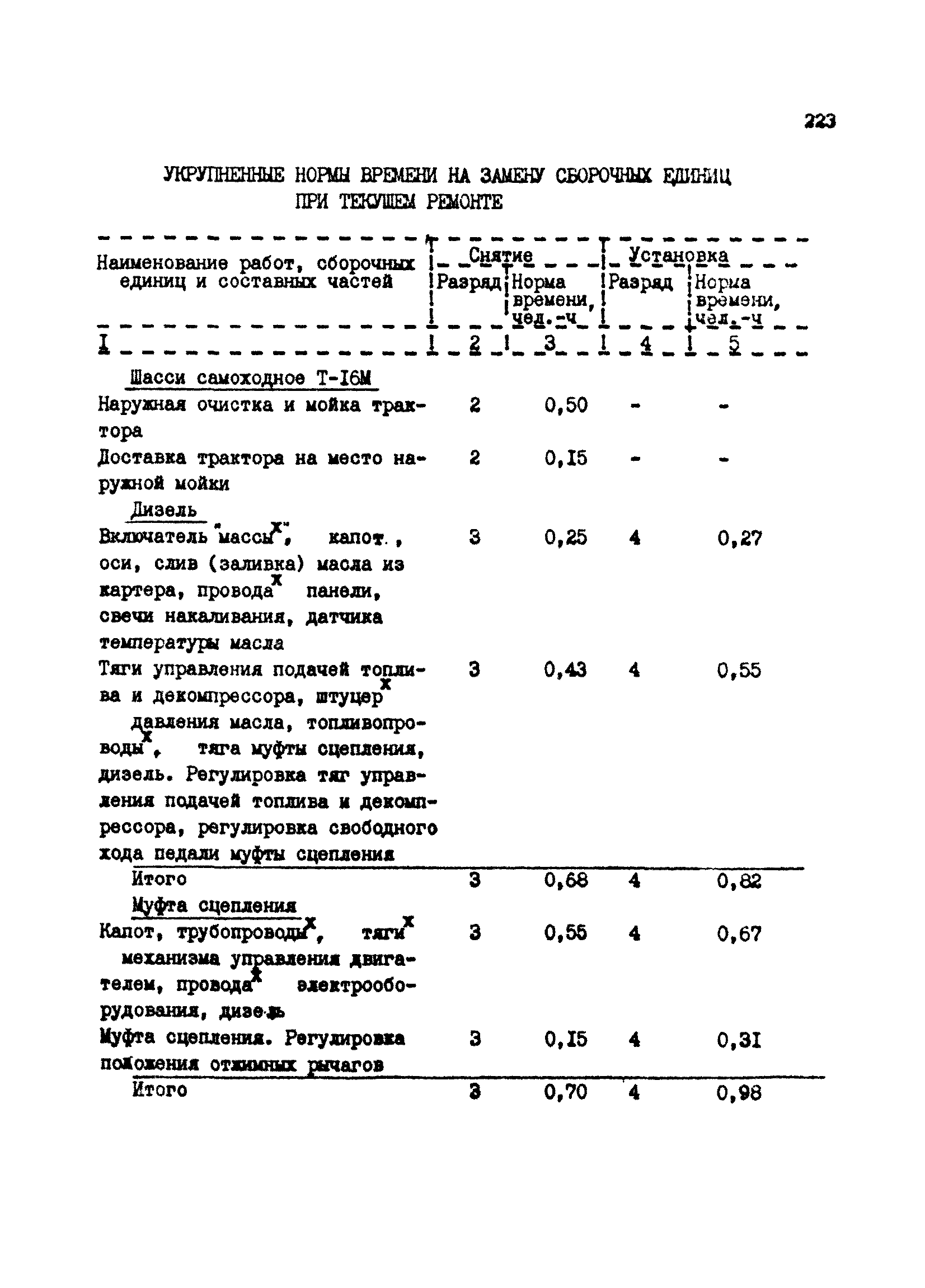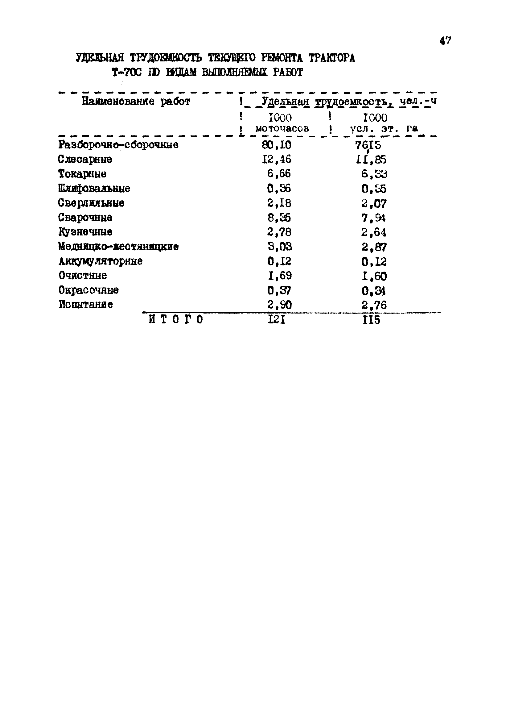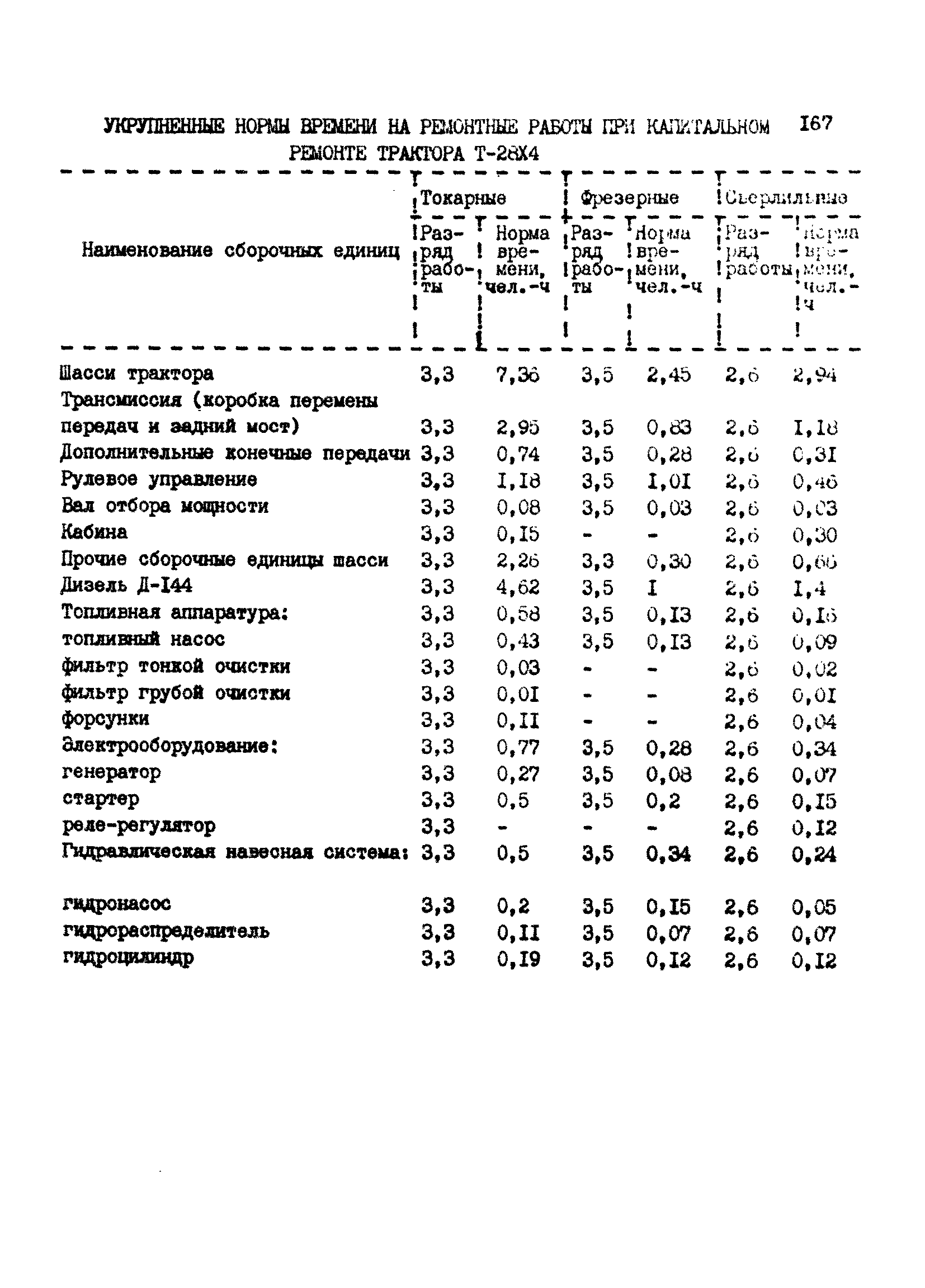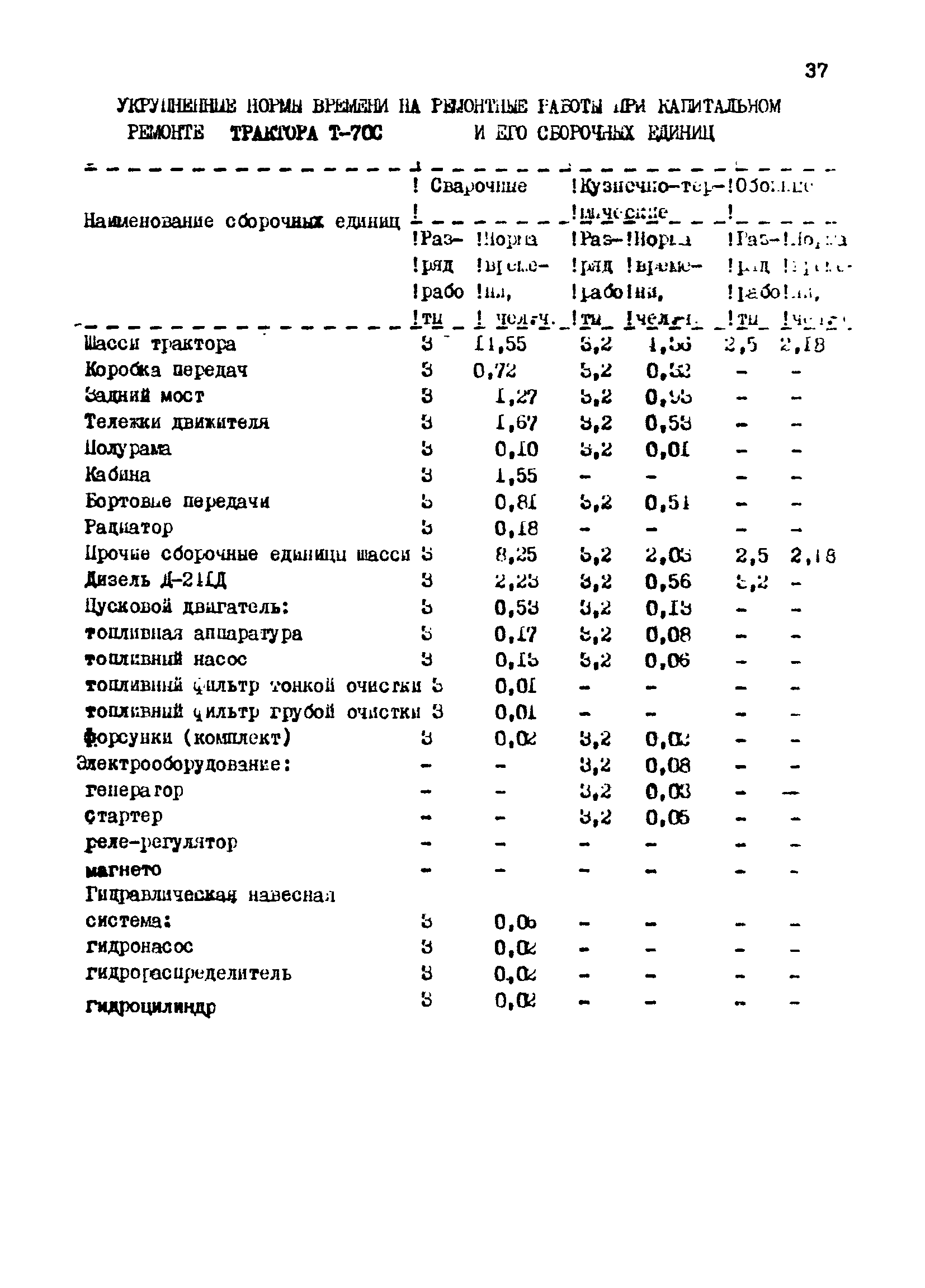 Межотраслевые укрупненные нормы времени на ремонт тракторов (гусеничных, колесных) с тяговым усилием от 0,6 тс (6 кН) до 2 тс (20 кН)| Статус: | не установлен срок действия | | Название рус.: | Межотраслевые укрупненные нормы времени на ремонт тракторов (гусеничных, колесных) с тяговым усилием от 0,6 тс (6 кН) до 2 тс (20 кН) | | Дата добавления в базу: | 01.10.2014 | | Дата актуализации: | 01.01.2021 | | Область применения: | Нормы рекомендуются для применения на всех предприятиях, в подразделениях, входящих в состав предприятий и организаций, занимающихся ремонтом тракторов, независимо от их ведомственной подчиненности, форм собственности и хозяйствования | | Оглавление: | Общая часть Организация труда Санитарно-гигиенические и производственно-эстетические условия выполнения ремонтно-обслуживающих работ Перечень оборудования и приспособлений Часть 1. Нормы времени на капитальный и текущий ремонт тракторов с тяговым от 2 тс (20кН) до 0,6 тс (6 кН) | | Разработан: | ЦБНТ