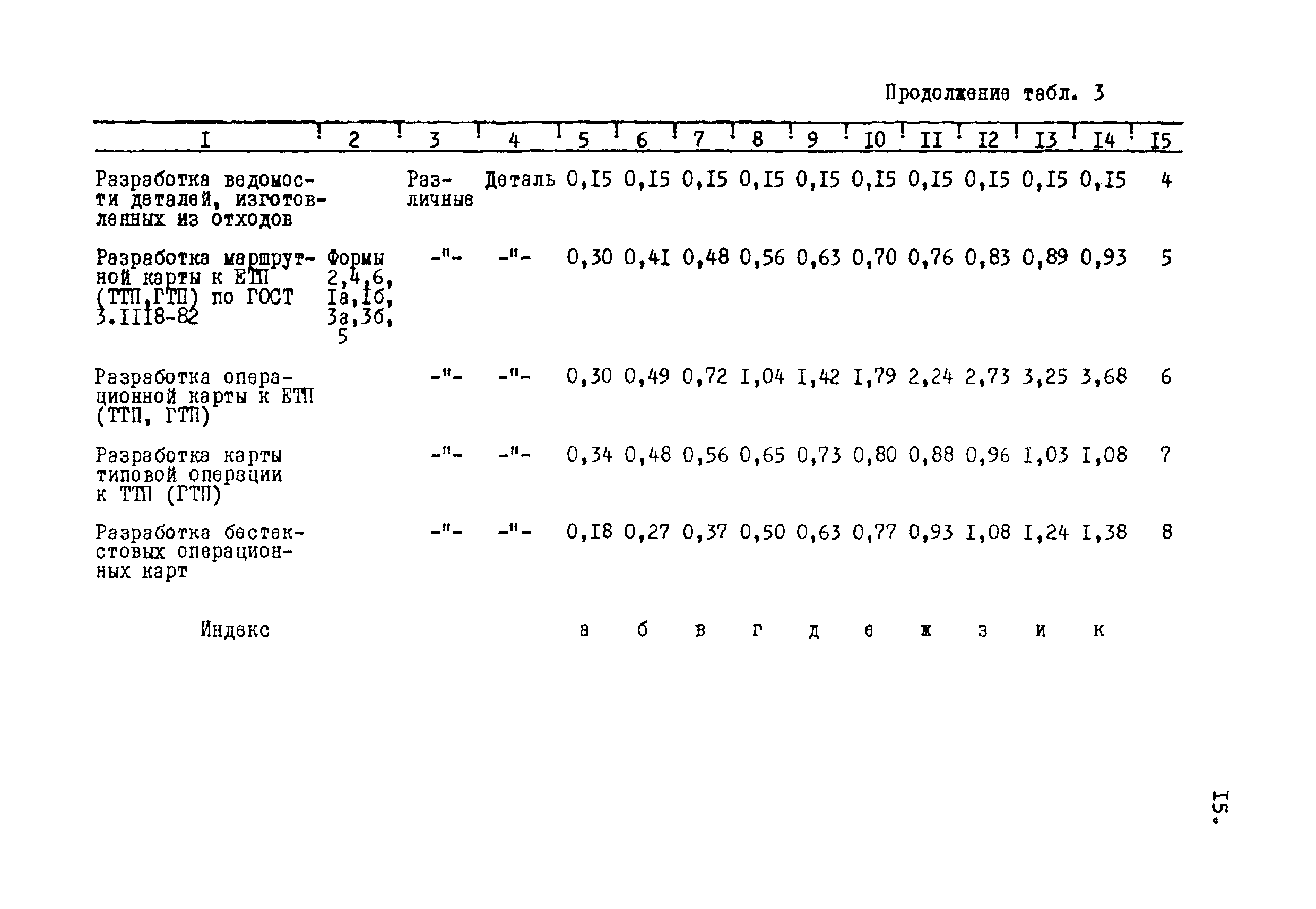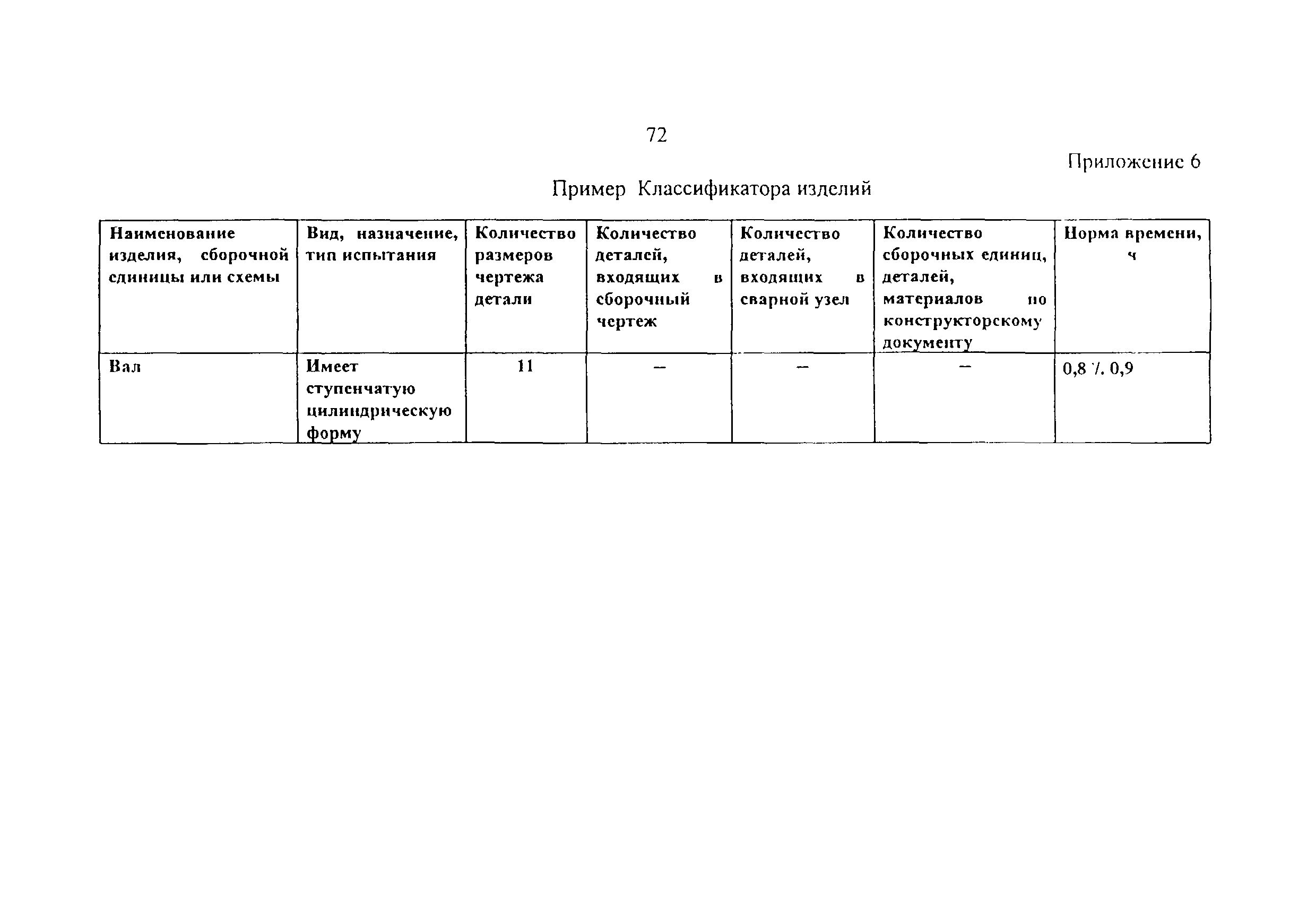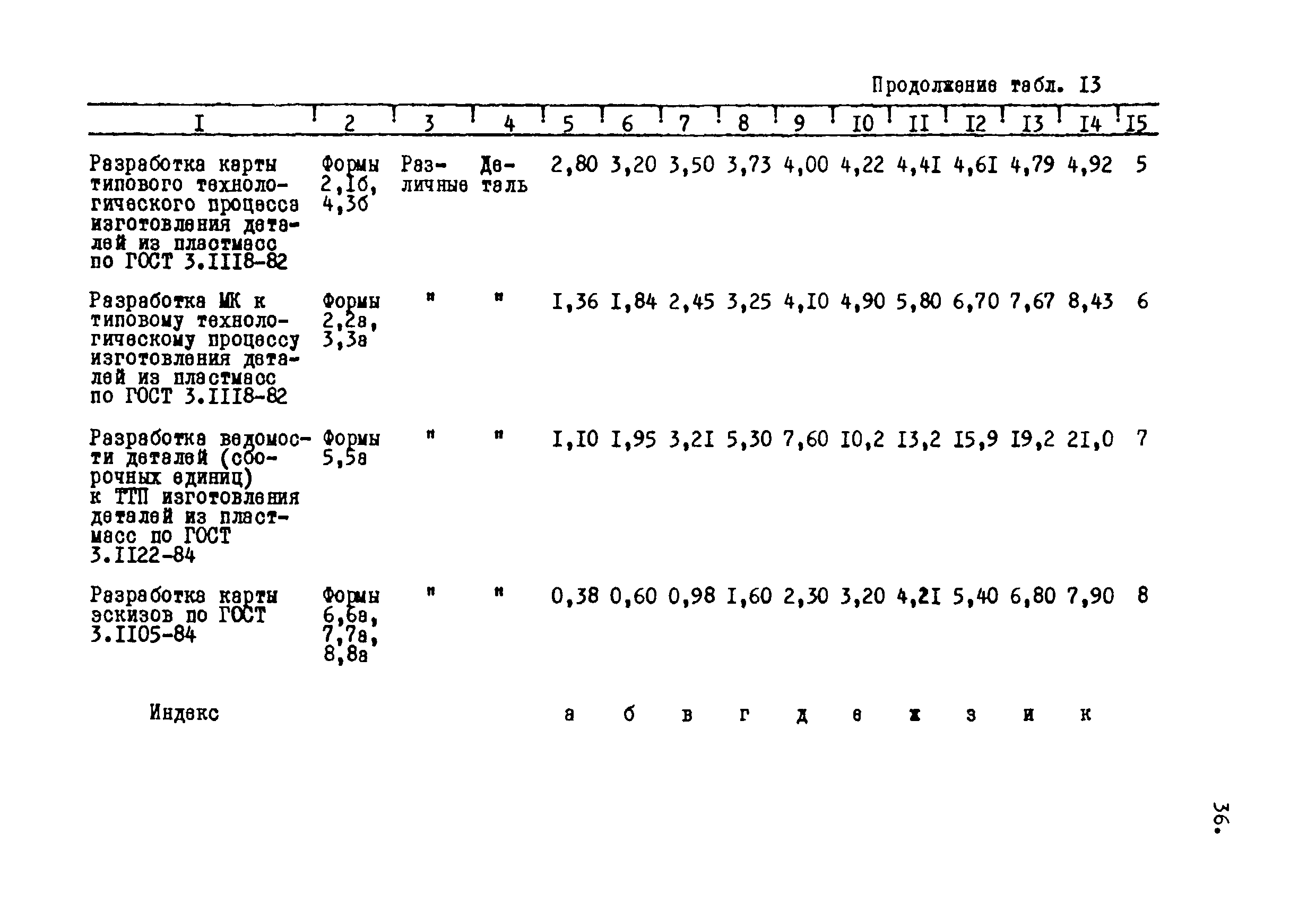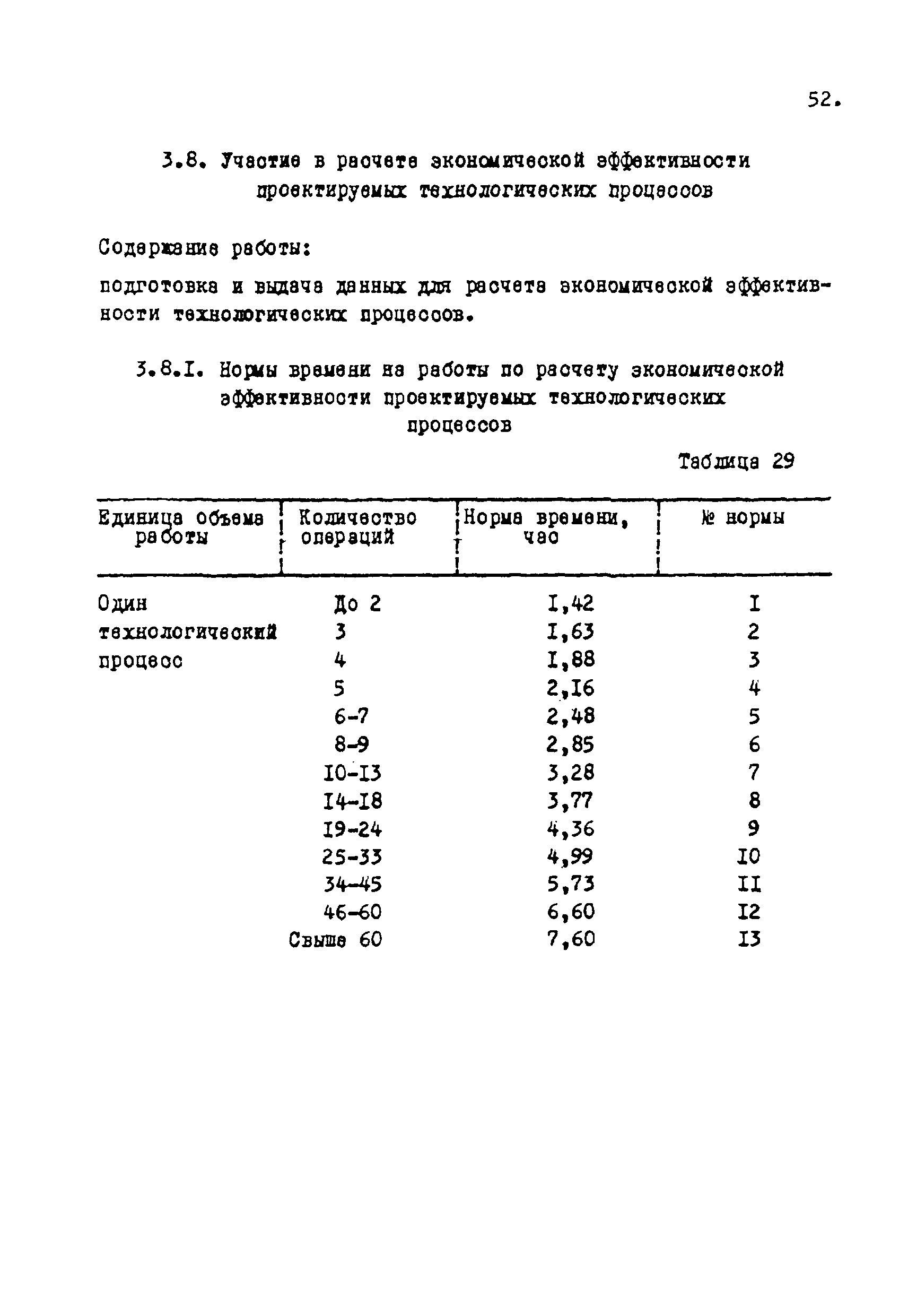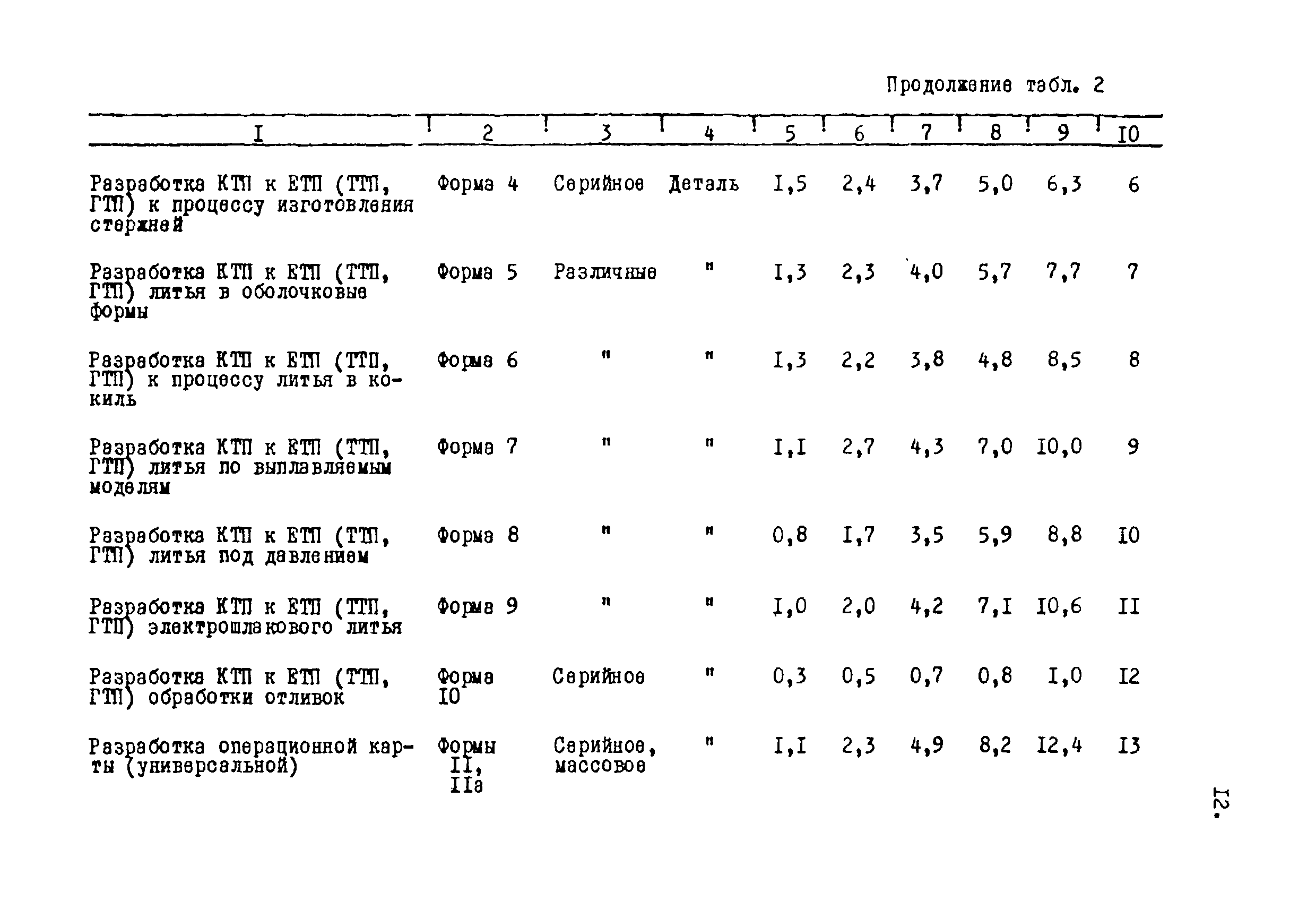 Укрупненные нормы времени на разработку технологической документации| Статус: | не установлен срок действия | | Название рус.: | Укрупненные нормы времени на разработку технологической документации | | Дата добавления в базу: | 01.10.2014 | | Дата актуализации: | 01.01.2021 | | Область применения: | Укрупненные нормы времени (стандартное время) на разработку технологической документация предназначены для регламентации труда технологов, техников, определения их численности, выдачи нормированных заданий, подготовки должностных инструкций и штатных расписаний и рекомендуются для применения конструкторских, технологических и других организациях науки и научного обслуживания, в научно-производственных объединениях, комбинатах и предприятиях при проектировании машин, оборудования, приспособлений и технологической оснастки и т.п., а также для технологической подготовки производства. | | Оглавление: | 1 Общая часть 2 Организация труда 3 Нормативная часть 3.1. Этапы разработки технологических процессов 3.2. Разработка специальной документации на технологические процессы 3.3. Разработка документов технического контроля 3.4. Контроль за соблюдением технологической дисциплины в цехах (на участках) и правильной эксплуатации оборудования 3.5. Разработка методов технического контроля и испытаний продукции в целях повышения качества и предупреждения брака 3.6. Внесение изменений в технологическую документацию в связи с корректировкой разработанных технологических процессов 3.7. Участие в составлении заявок на техническое оснащение 3.8. Участие в расчете экономической эффективности проектируемых технологических процессов 3.9. Участие в реализации мероприятий по повышению эффективности производства 3.10. Рассмотрение рационализаторских предложений по совершенствованию технологических процессов Приложение 1 Иллюстрированный классификатор отливок, изготавливаемых в обычные песчано-земляные формы, кокили, под давлением и по выплавляемым моделям по грунтам сложности. Описание конструкторско-технологических признаков отливок по группам сложности Приложение 2. Пример нормирования разработки технологической документации Приложение 3. Пример условного распределения видов технологических работ между исполнителями Приложение 4. Примерный перечень средств оснащения рабочего места технолога Приложение 5. Пример расчета численности технологов технического отдела Приложение 6. Пример Классификатора изделий | | Разработан: | ЦБНТ