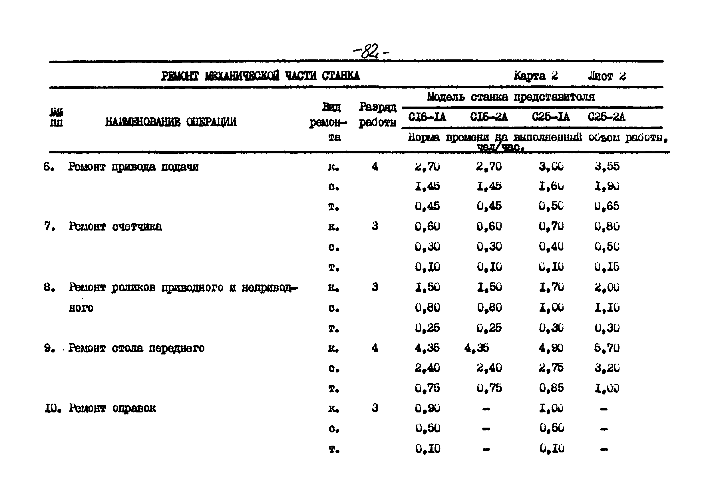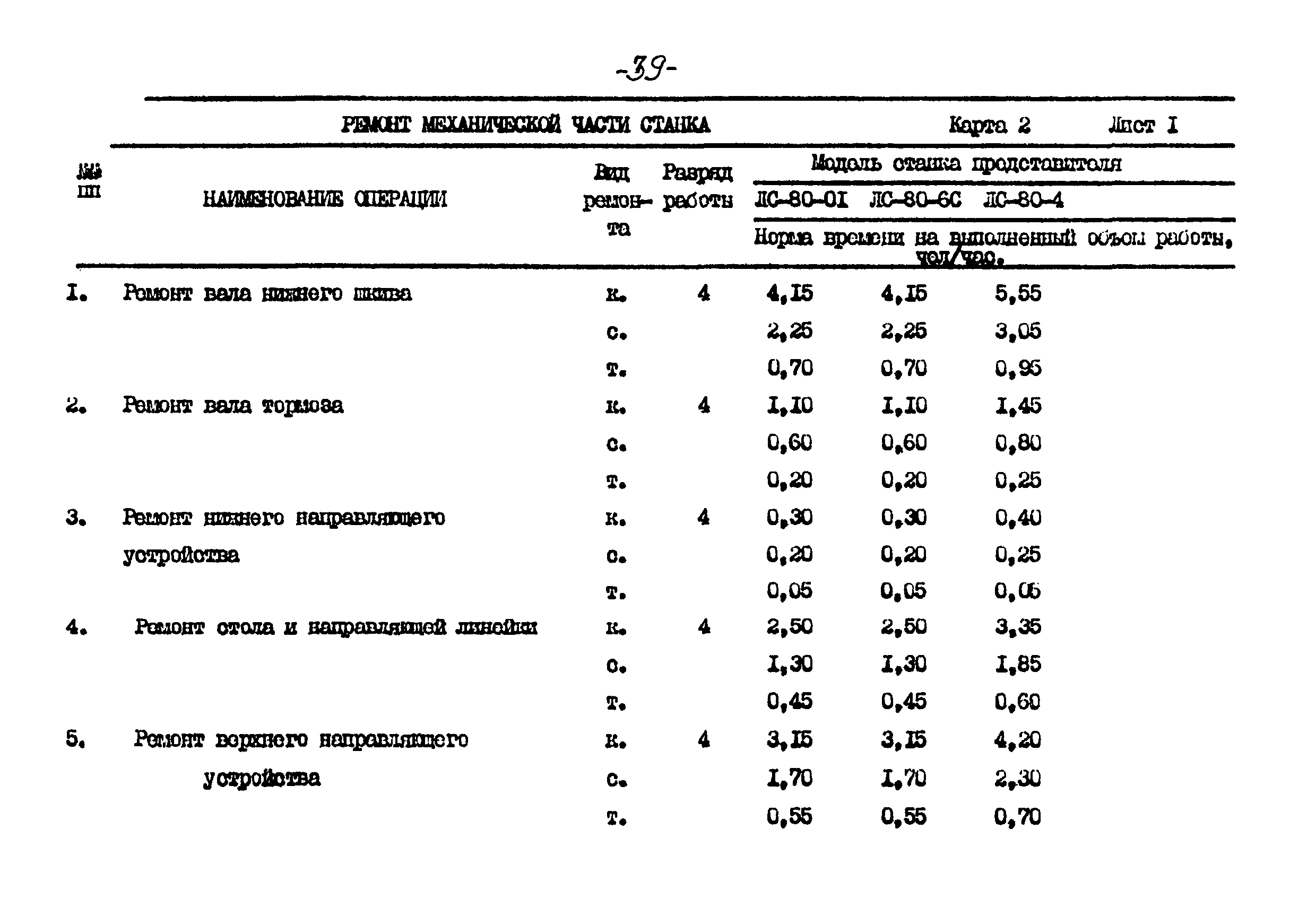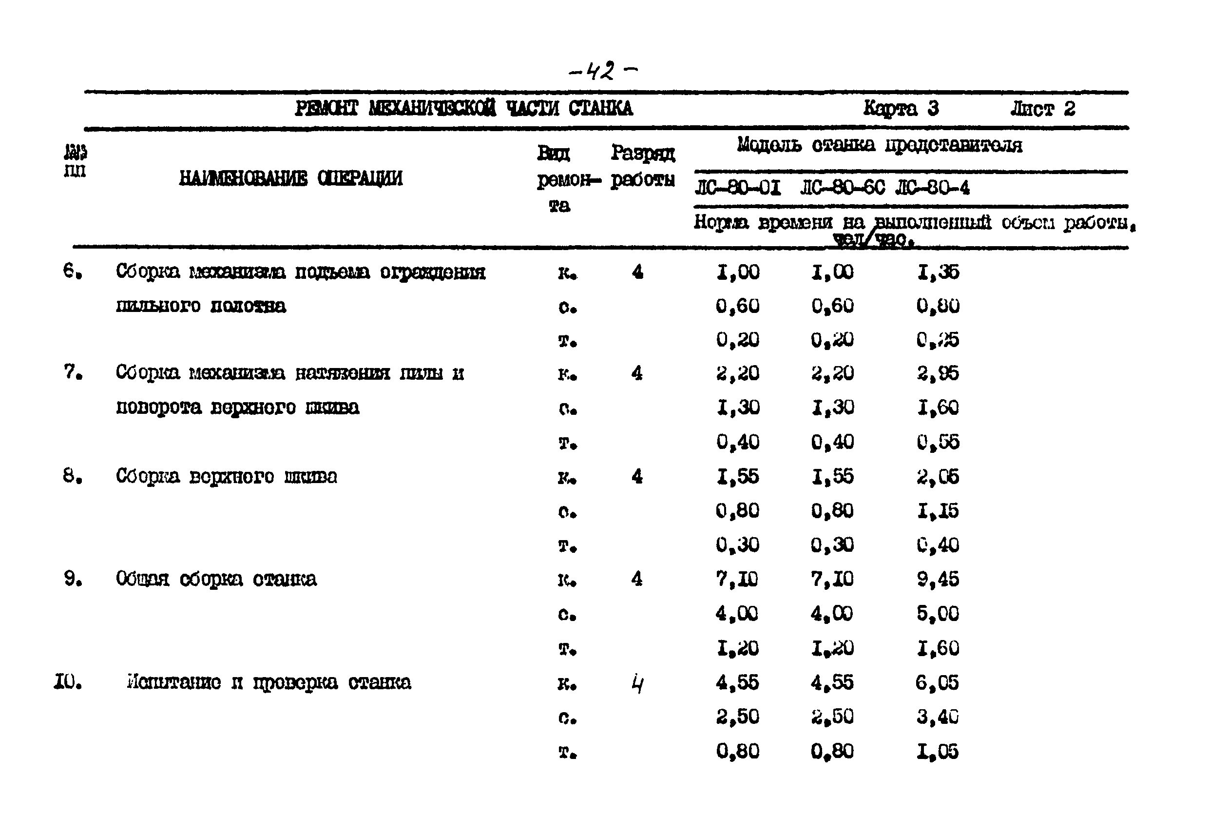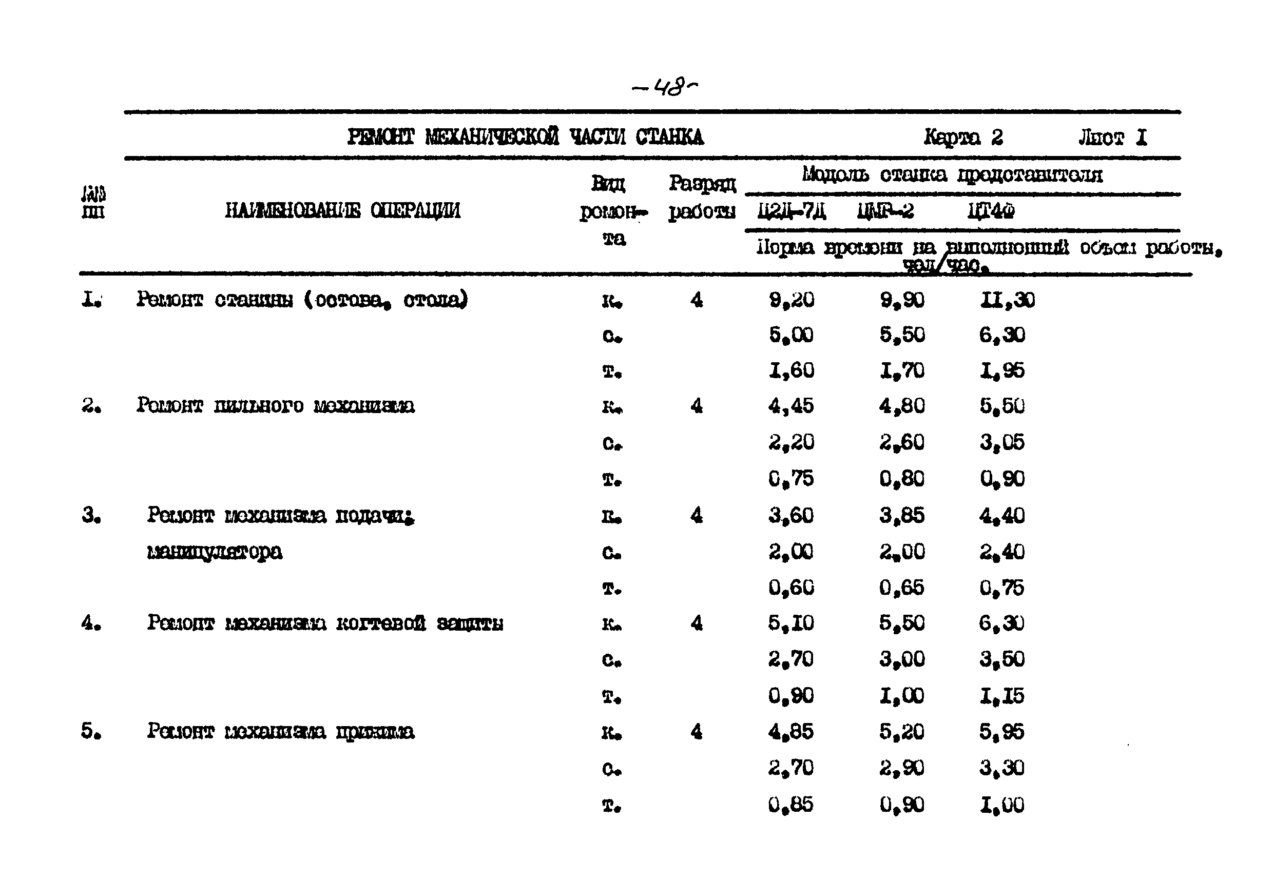 | Оглавление: | Общая часть Организация труда Характеристика оборудования приспособлений и инструмента, рекомендуемых для применения при ремонте Нормативная часть 1 Лесопильные рамы Р63-4А, Р63-4Б, Р63-6, РК 2 Ленточнопильные станки ЛС-80-01, ЛС-80-6С, ЛС-80-4 3 Круглопильные станки ЦМР-2, Ц2Д-7Д, ЦТ4Ф 4 Фрезерные одношпиндельные станки ФС-1, ФСШ-1 5 Шипорезные станки ШПК-40, ШО16-4, ШД16-8 6 Сверлильные-пазовальные СВПГ-2, СВПГ-3 7 Строгальные станки С16-1А, С16-2А, С25-1А, С25-2А 8 Шлифовальные станки ШлПС-6, ШлПС-9, ШлПС-10, Шл2В 9. Цепно-долбежные ДЦА-3, ДЦА-4 |