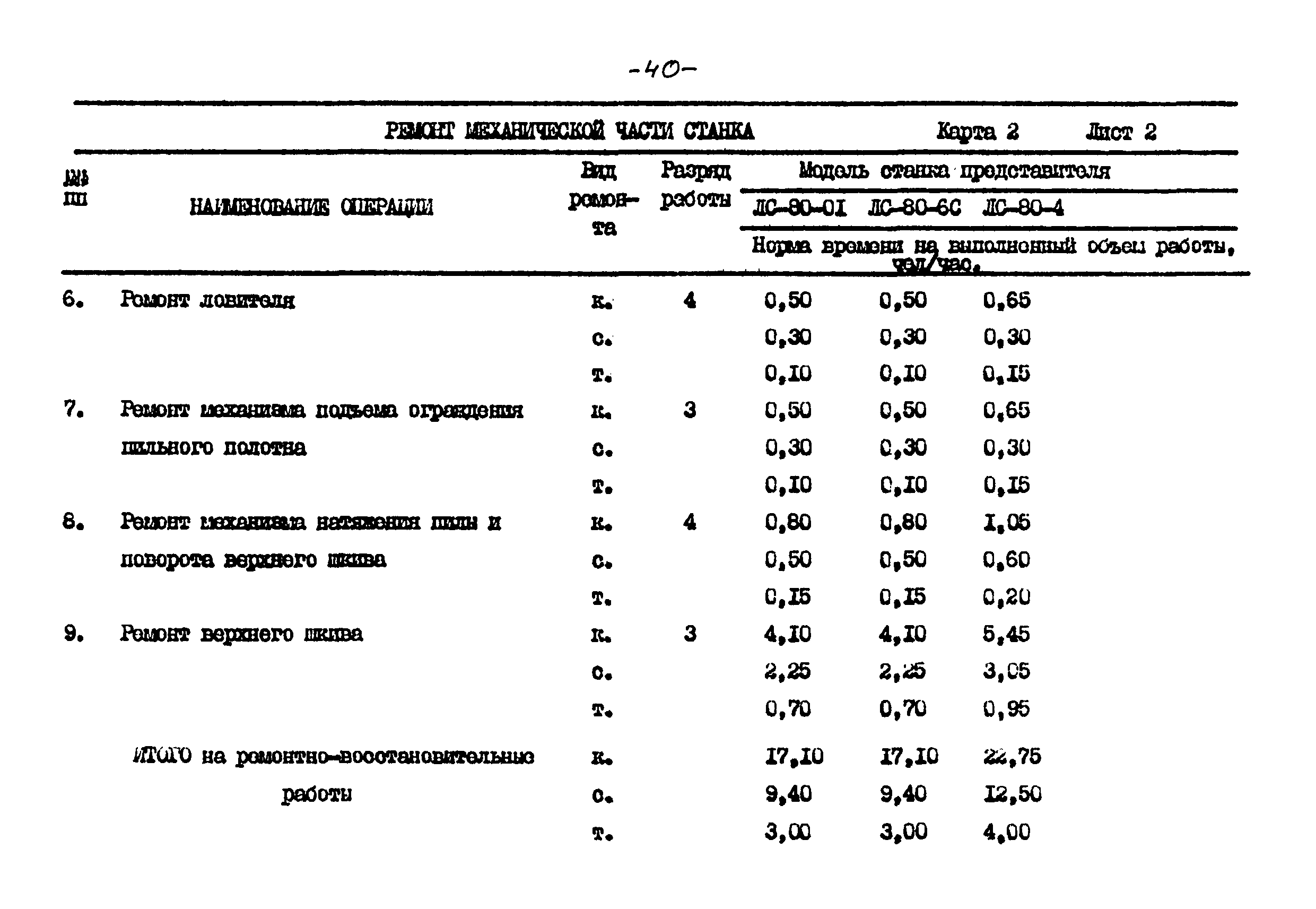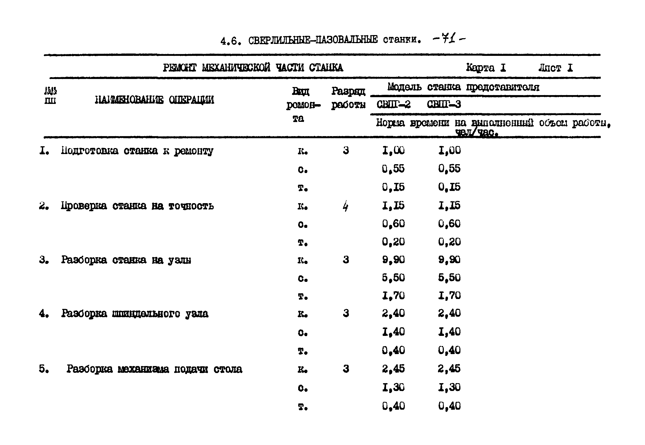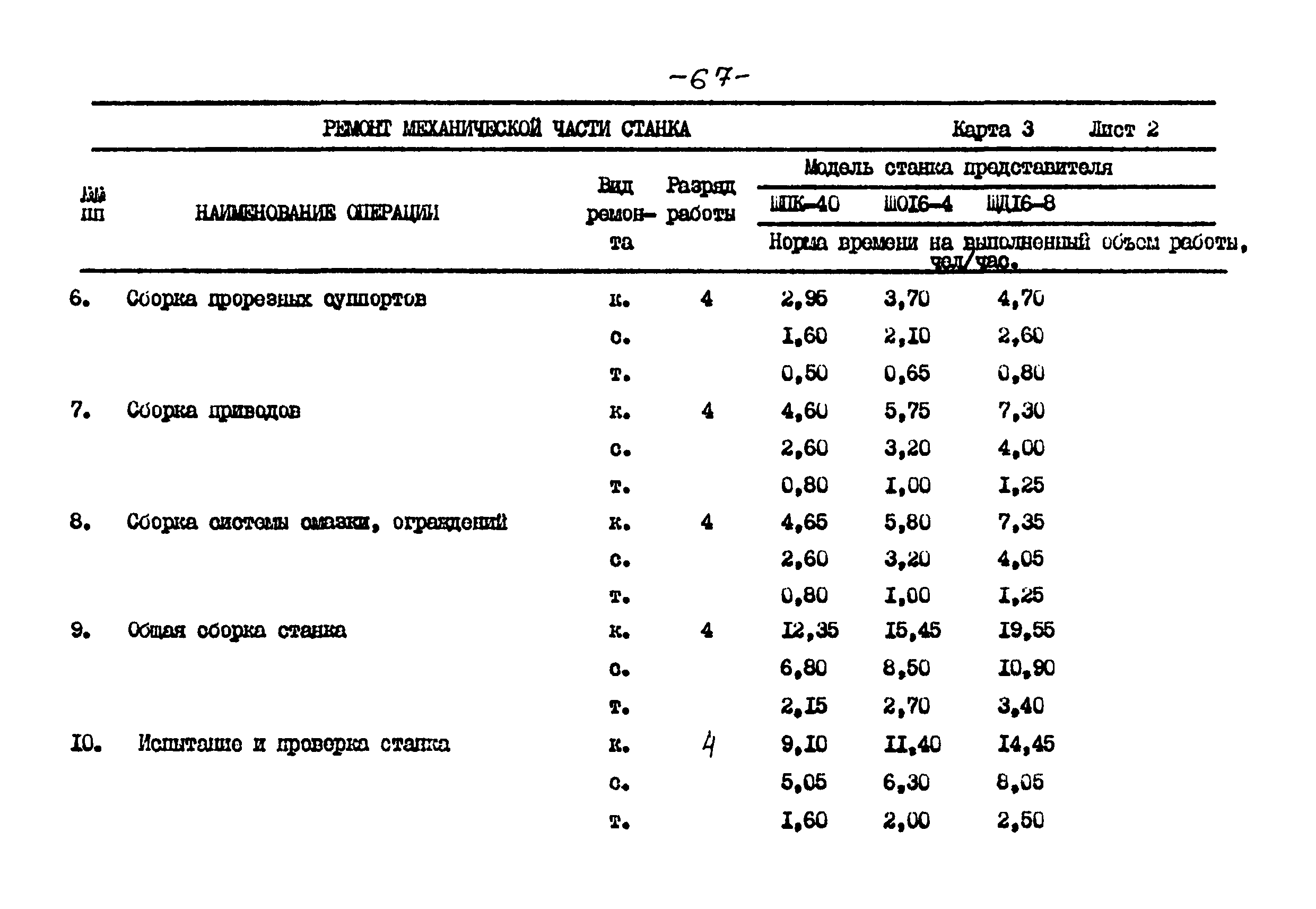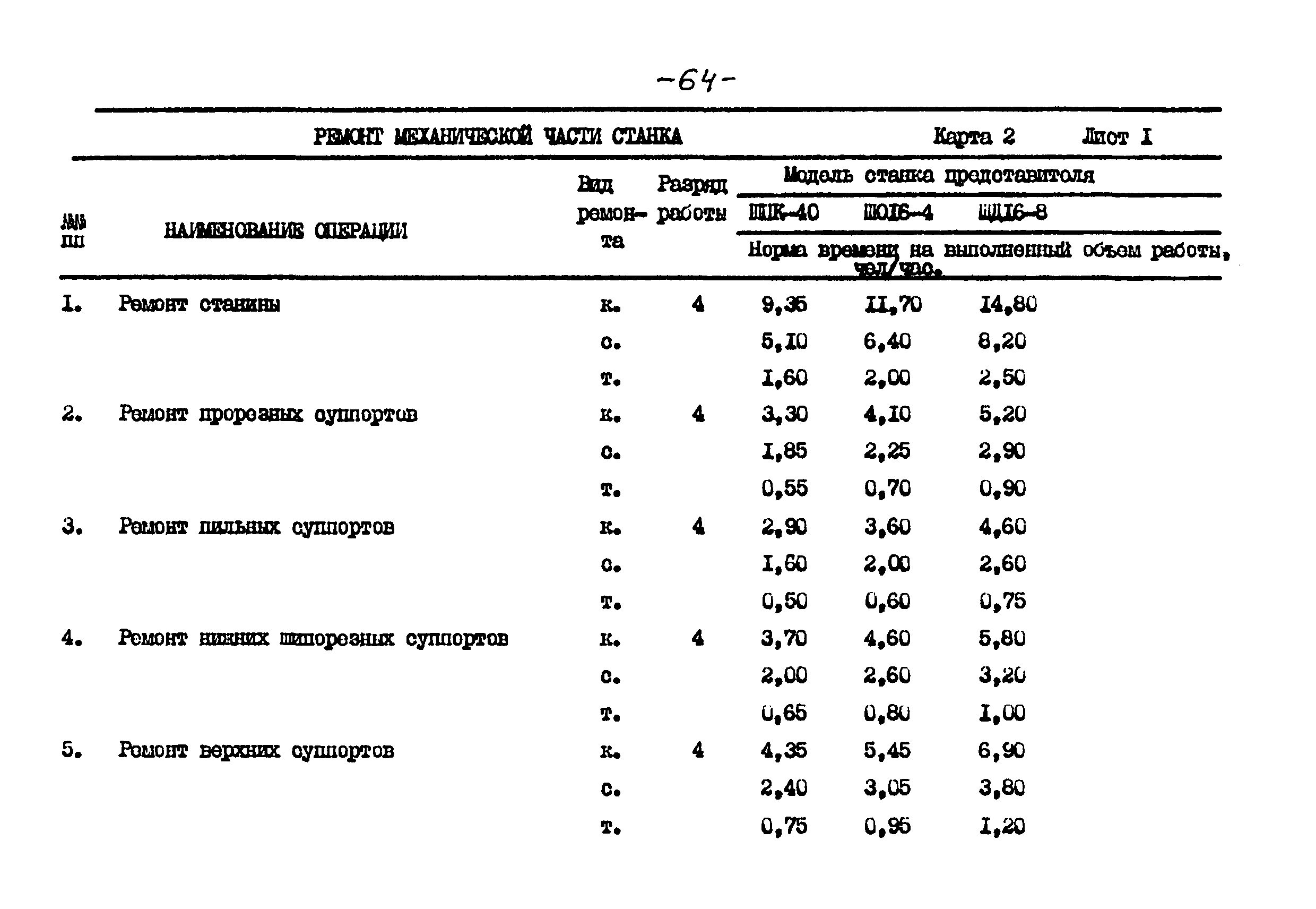 | Оглавление: | Общая часть Организация труда Характеристика оборудования приспособлений и инструмента, рекомендуемых для применения при ремонте Нормативная часть 1 Лесопильные рамы Р63-4А, Р63-4Б, Р63-6, РК 2 Ленточнопильные станки ЛС-80-01, ЛС-80-6С, ЛС-80-4 3 Круглопильные станки ЦМР-2, Ц2Д-7Д, ЦТ4Ф 4 Фрезерные одношпиндельные станки ФС-1, ФСШ-1 5 Шипорезные станки ШПК-40, ШО16-4, ШД16-8 6 Сверлильные-пазовальные СВПГ-2, СВПГ-3 7 Строгальные станки С16-1А, С16-2А, С25-1А, С25-2А 8 Шлифовальные станки ШлПС-6, ШлПС-9, ШлПС-10, Шл2В 9. Цепно-долбежные ДЦА-3, ДЦА-4 |