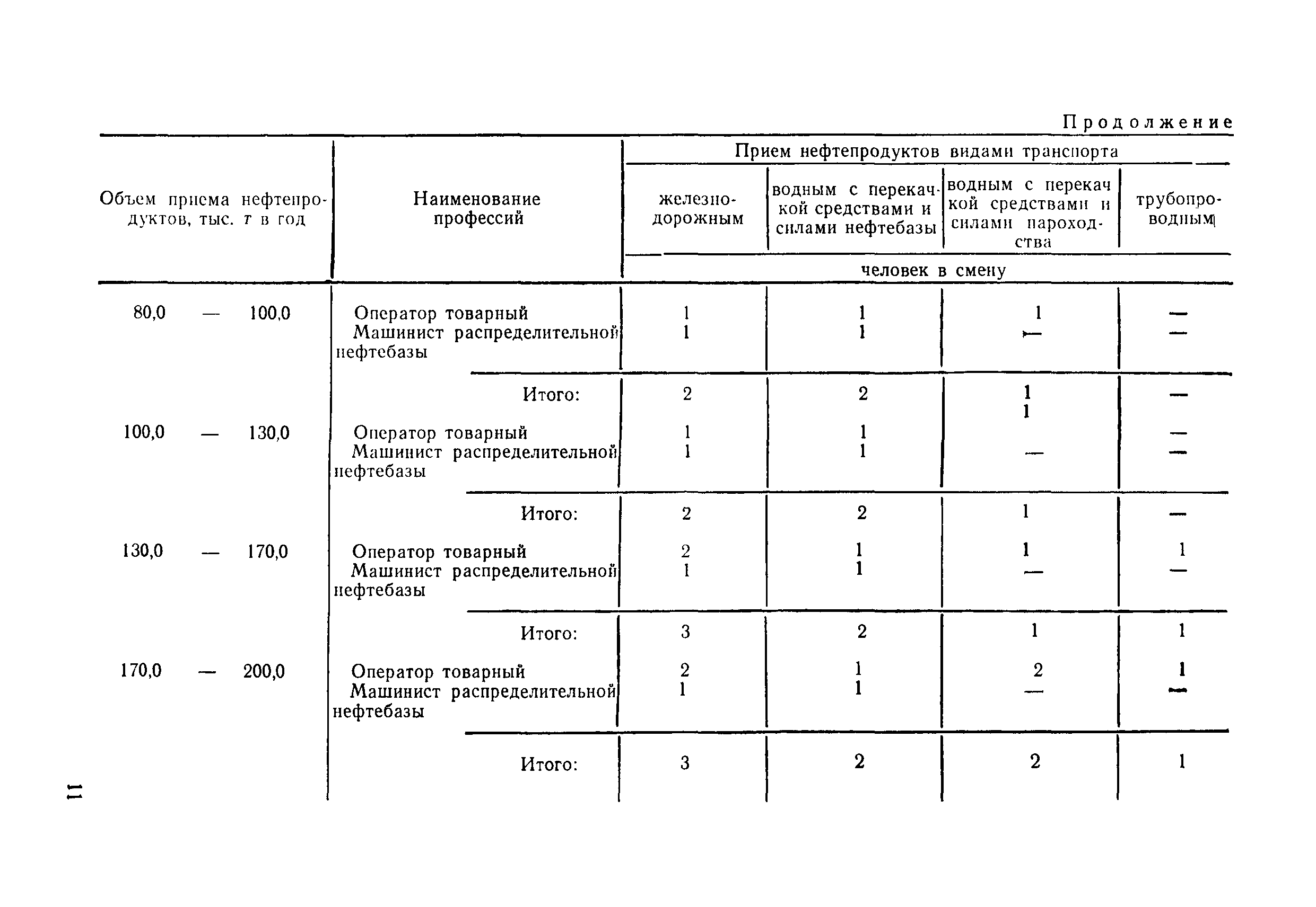 | Название рус.: | Нормативы численности рабочих для распределительных нефтебаз |