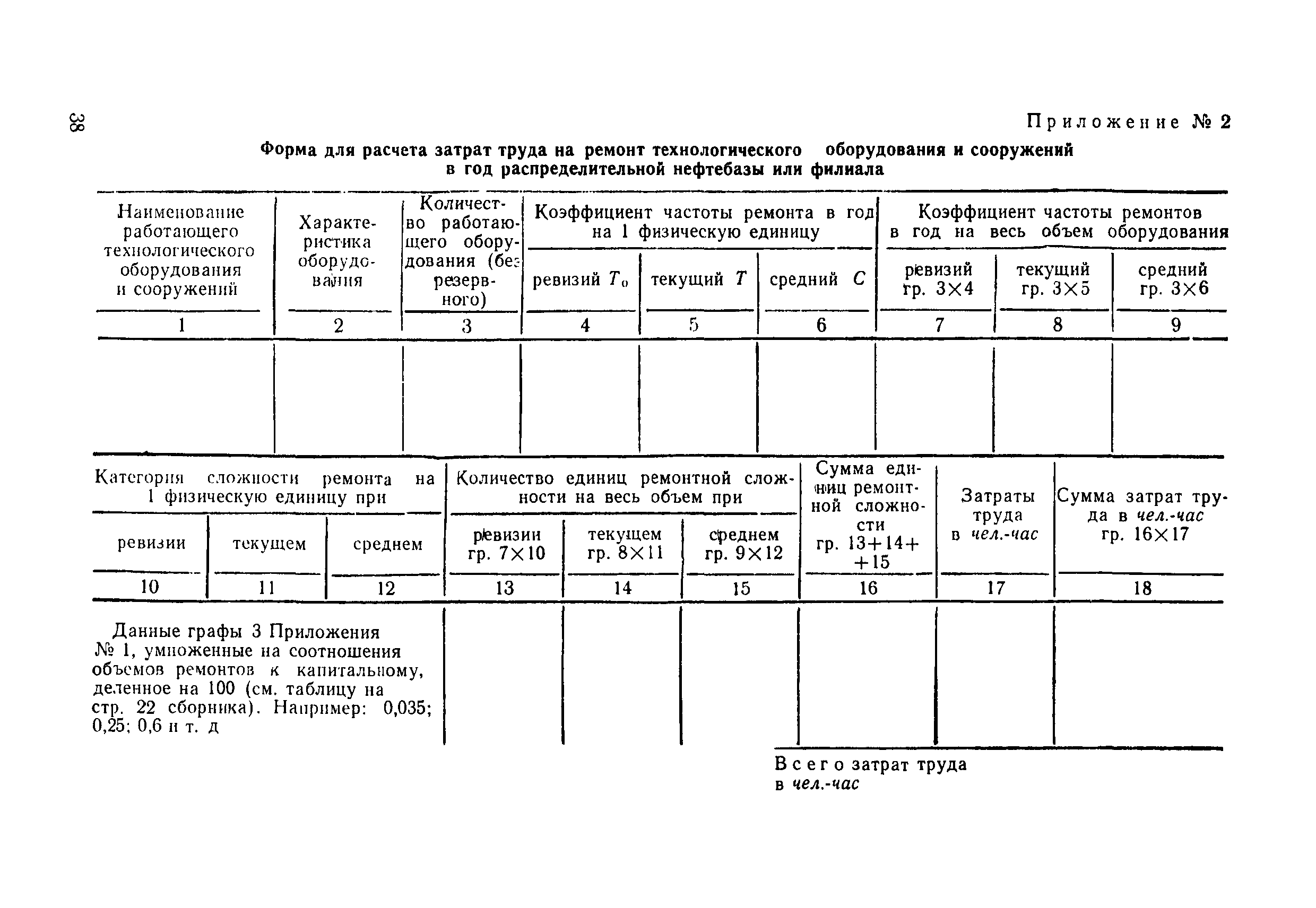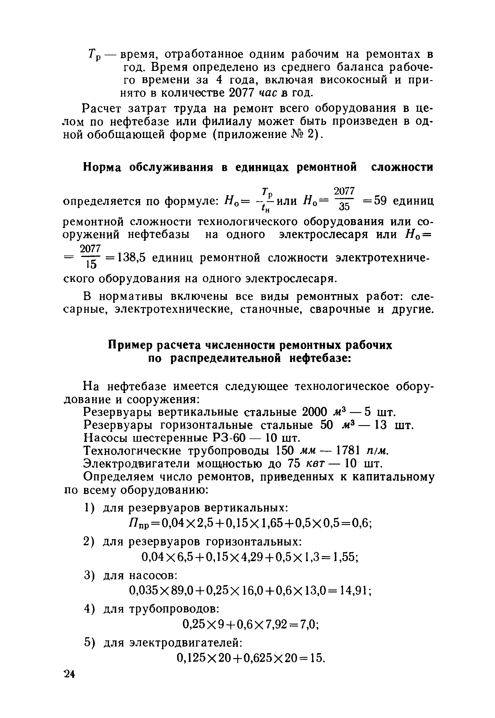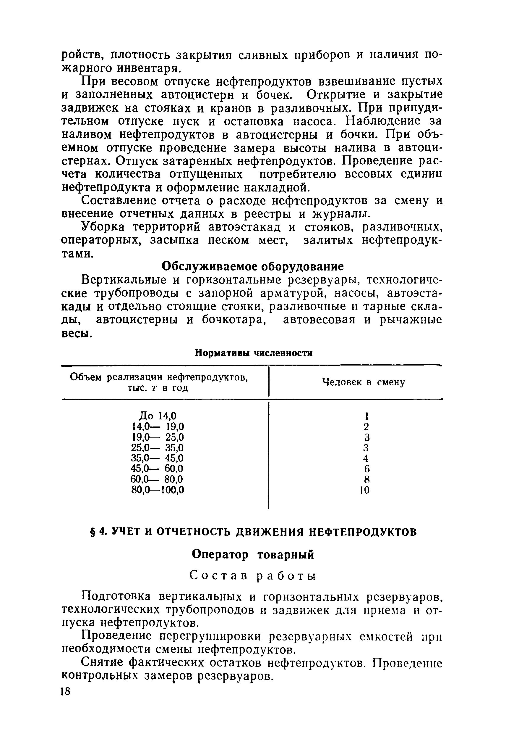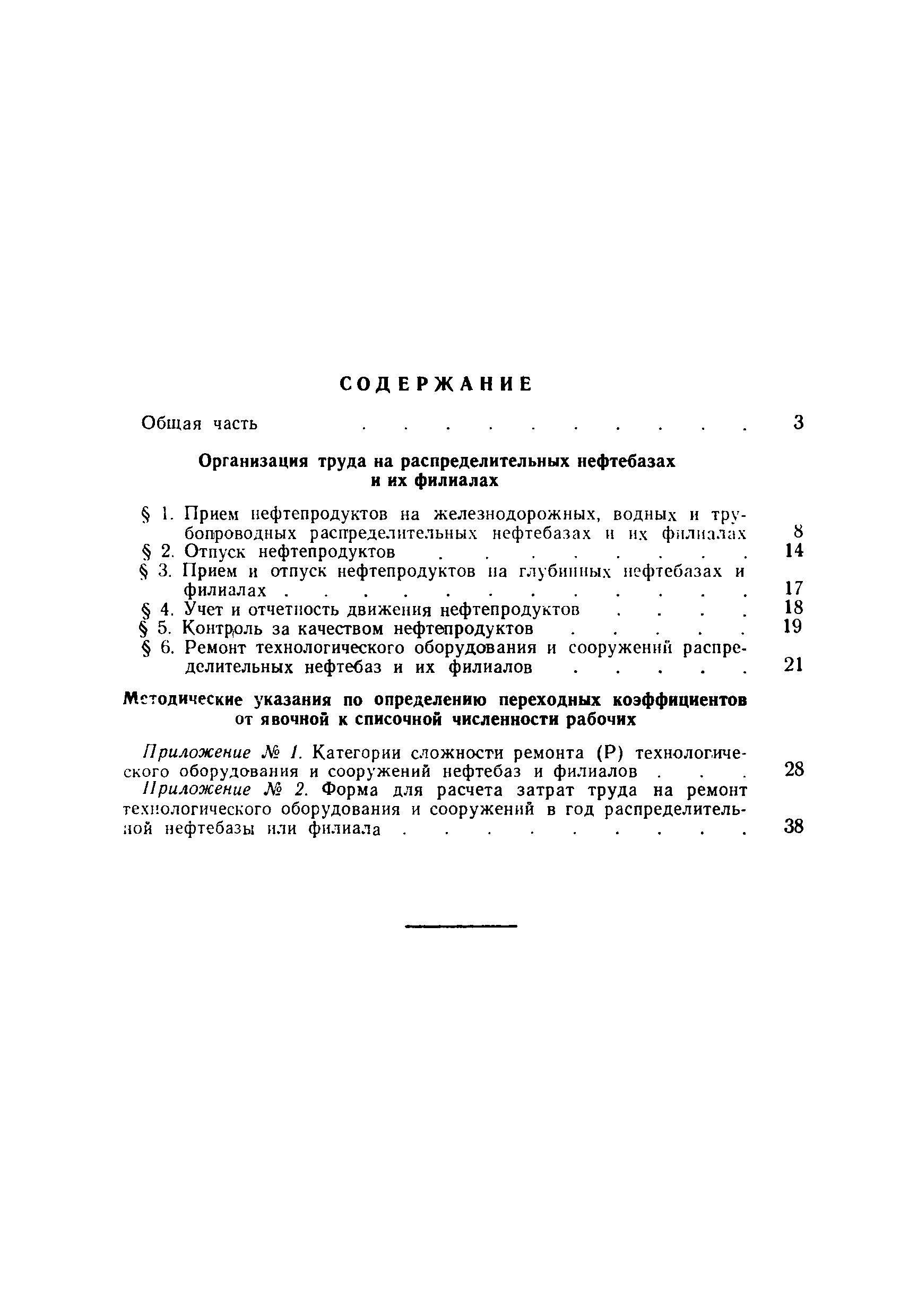 | Оглавление: | Общая часть Организация труда на распределительных нефтебазах и их филиалах 1. Прием нефтепродуктов на железнодорожных, водных и трубопроводных распределительных нефтебазах и их филиалах 2. Отпуск нефтепродуктов 3. Прием и отпуск нефтепродуктов на глубинных нефтебазах и филиалах 4. Учет и отчетность движения нефтепродуктов 5. Контроль за качеством нефтепродуктов 6. Ремонт технологического оборудования и сооружений распределительных нефтебаз и их филиалов Методические указания по определению переходных коэффициентов от явочной к списочной численности рабочих Приложение 1. Категории сложности ремонта (Р) технологического оборудования и сооружений нефтебаз и филиалов Приложение 2. Форма для расчета затрат труда на ремонт технологического оборудования и сооружений в год распределительной нефтебазы или филиала |