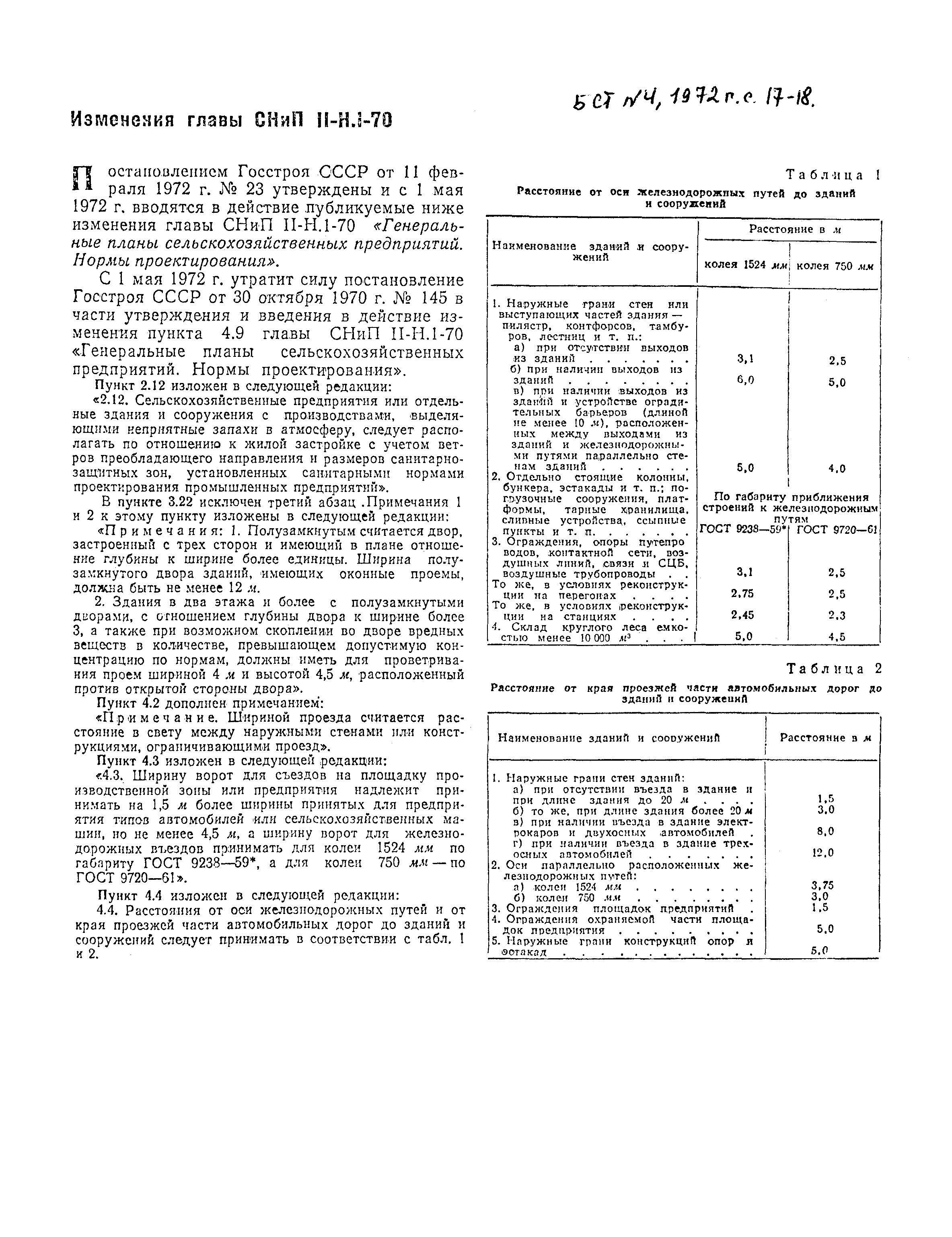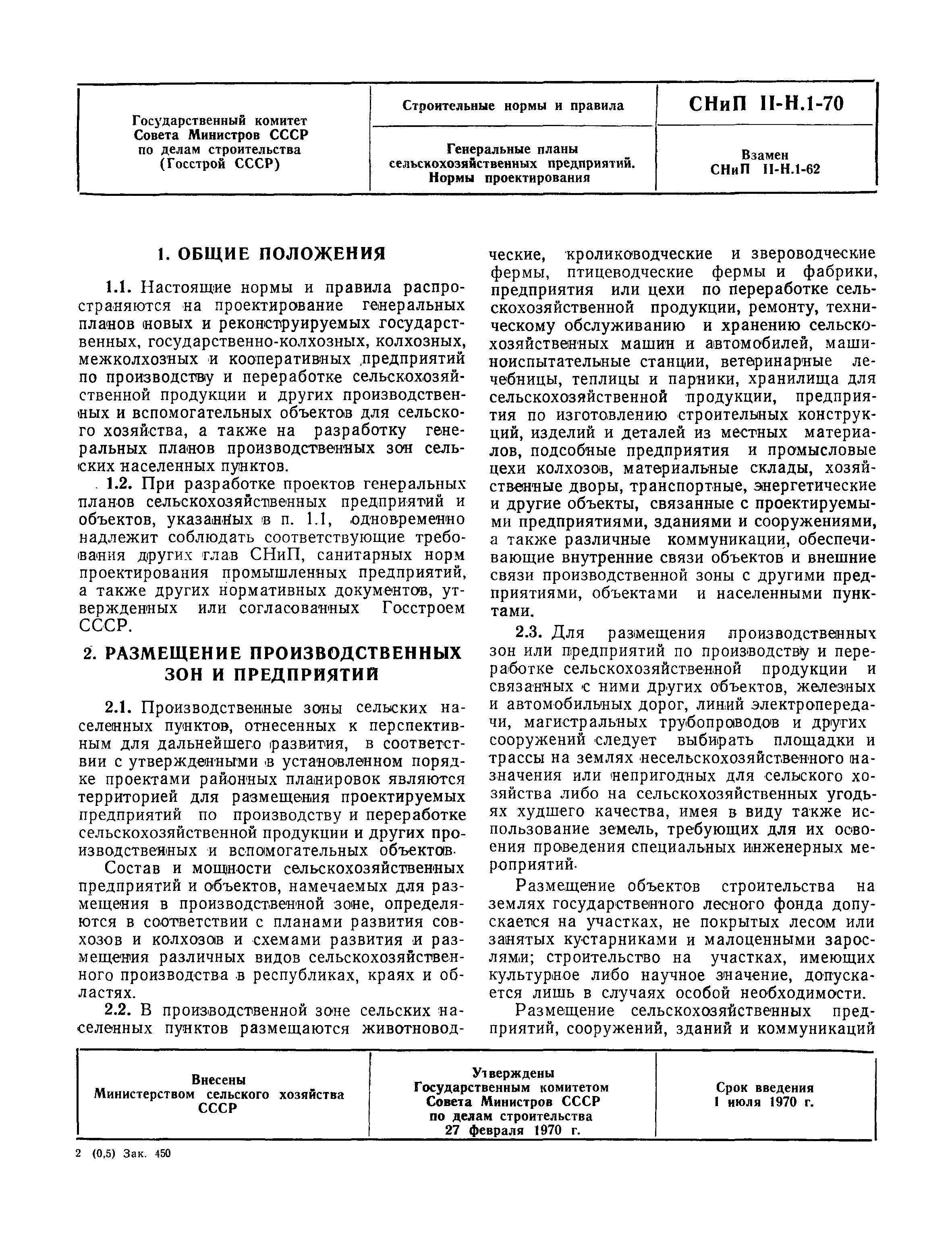 | Область применения: | Нормы и правила распространяются на проектирование генеральных планов новых и реконструируемых государственных, государственно-колхозных, колхозных, межколхозных и кооперативных предприятий по производству и переработке сельскохозяйственной продукции и других производственных и вспомогательных объектов для сельского хозяйства, а также на разработку генеральных планов производственных зон сельских населенных пунктов. |