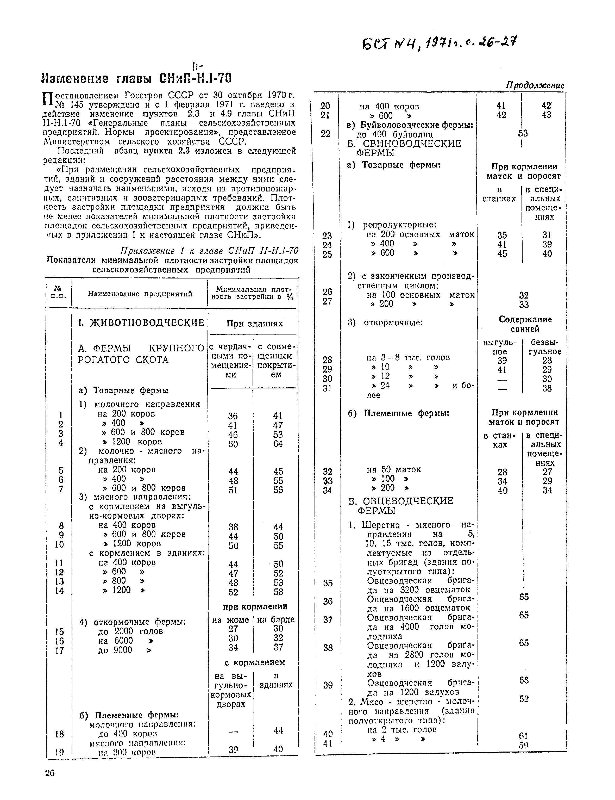 Скачать СНиП II-Н.1-70 Генеральные планы сельскохозяйственных предприятий. Нормы проектированияДата актуализации: 01.01.2021