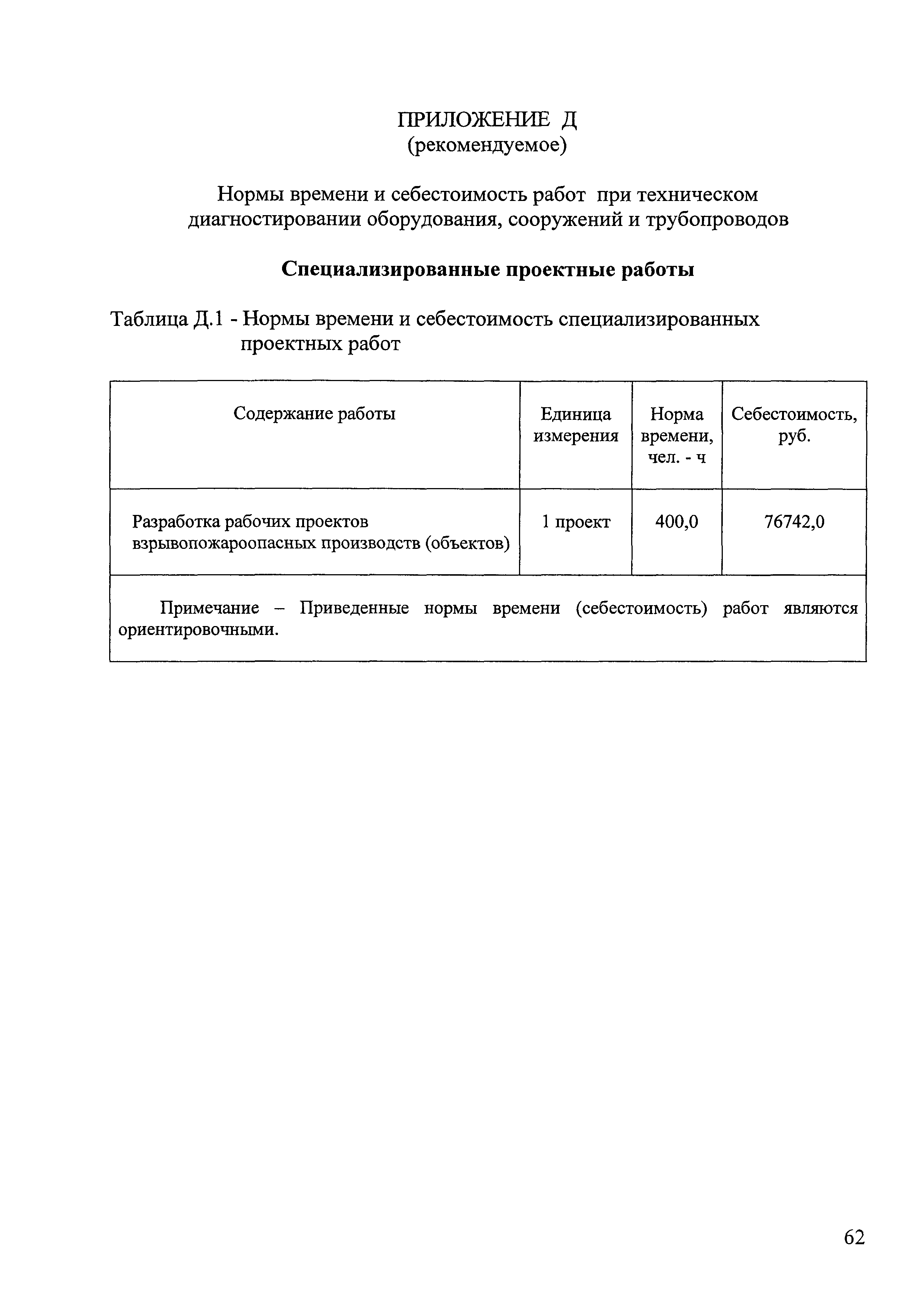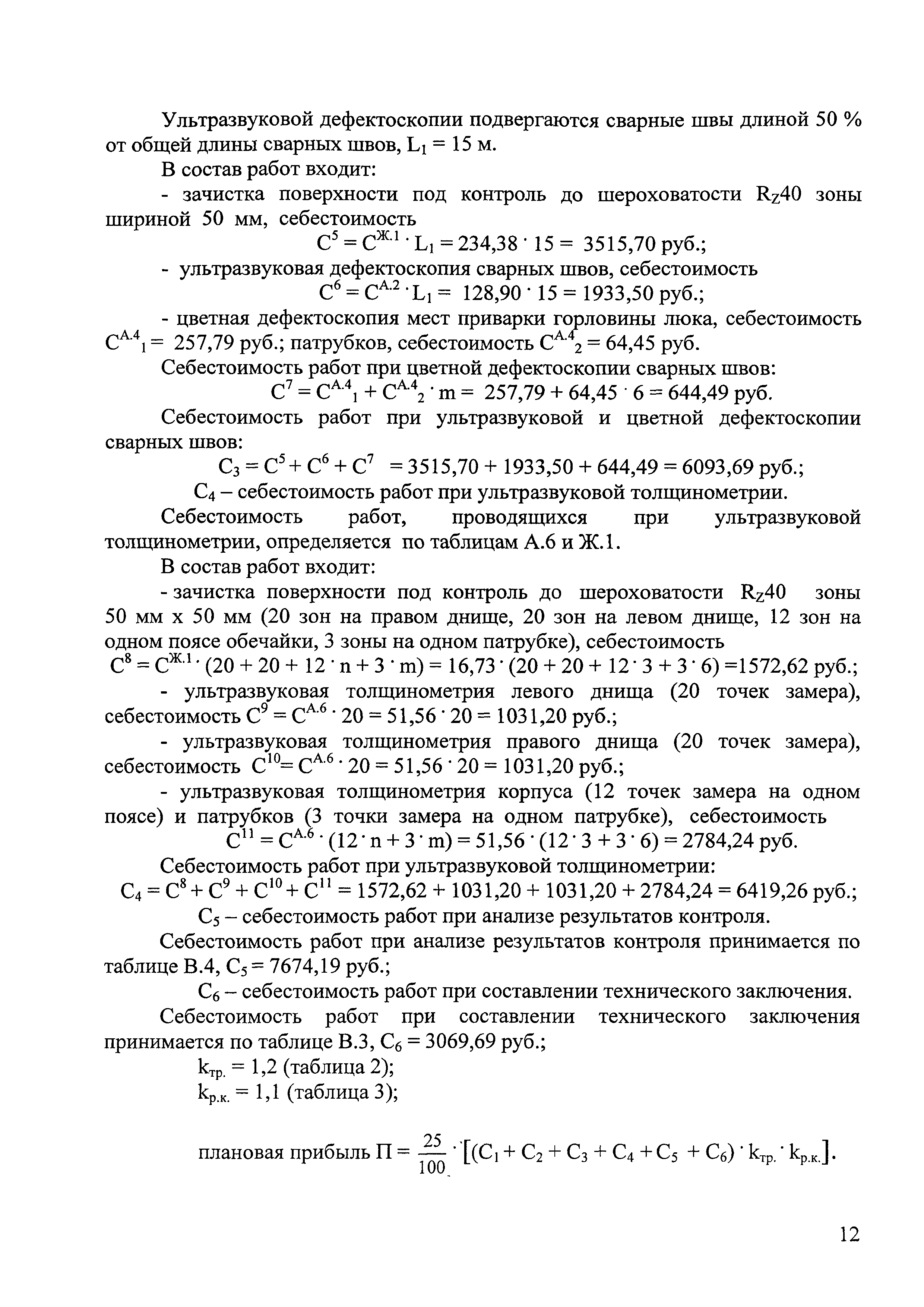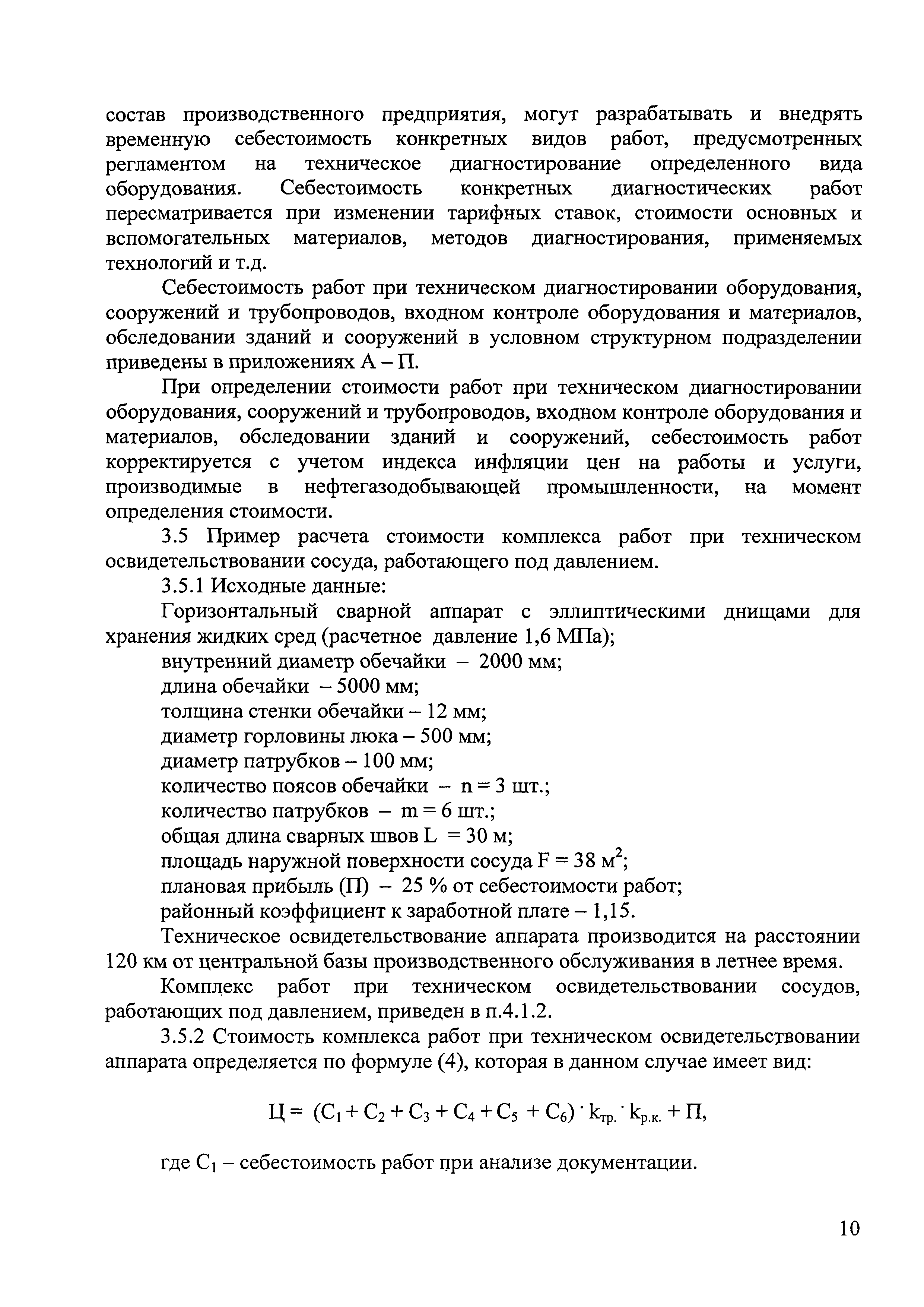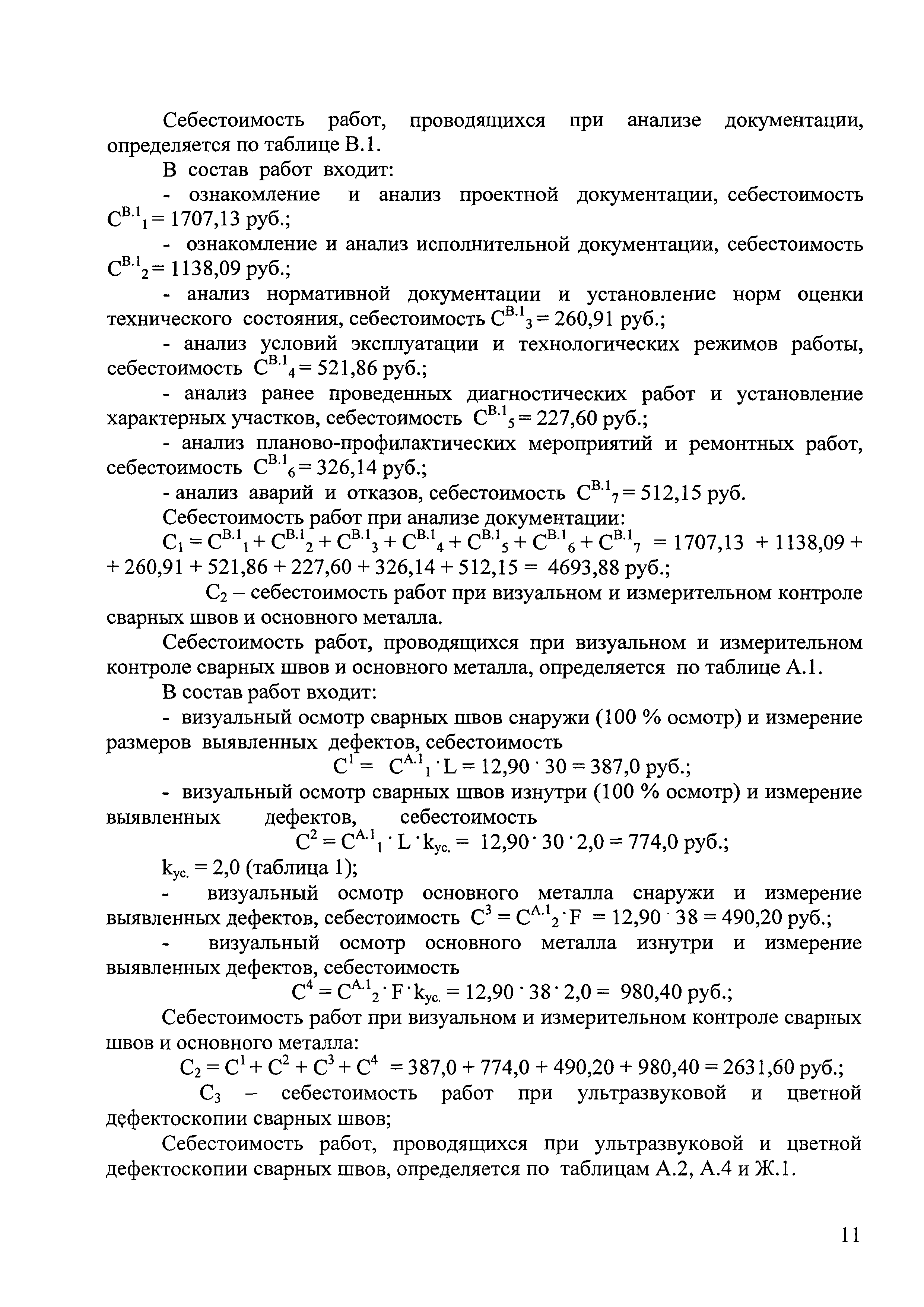 | Оглавление: | 1 Общие положения 2 Расчет норм времени на выполнение работ и организационно-технические условия при техническом диагностировании оборудования, сооружений и трубопроводов 3 Расчет стоимости работ при техническом диагностировании оборудования, сооружений и трубопроводов 4 Комплекс работ, перечень применяемого оборудования и нормы времени на выполнение работ при техническом диагностировании оборудования, сооружений и трубопроводов Нормативно-техническая документация, используемая при разработке ЕниР Приложение А. Нормы времени и себестоимость работ при техническом диагностировании оборудования, сооружений и трубопроводов. Неразрушающие методы контроля Приложение Б. Нормы времени и себестоимость работ при техническом диагностировании оборудования, сооружений и трубопроводов. Разрушающие методы контроля Приложение В. Нормы времени и себестоимость работ при техническом диагностировании оборудования, сооружений и трубопроводов. Камеральные работы Приложение Г. Нормы времени и себестоимость работ при техническом диагностировании оборудования, сооружений и трубопроводов. Экспертные работы Приложение Д. Нормы времени и себестоимость работ при техническом диагностировании оборудования, сооружений и трубопроводов. Специализированные проектные работы Нормы времени и себестоимость работ при техническом диагностировании оборудования, сооружений и трубопроводов. Испытательные работы Нормы времени и себестоимость Приложение Е. Нормы времени и себестоимость работ при техническом диагностировании оборудования, сооружений и трубопроводов. Испытательные работы Приложение Ж. Нормы времени и себестоимость работ при техническом диагностировании оборудования, сооружений и трубопроводов. Вспомогательные работы Приложение И. Нормы времени и себестоимость работ при техническом диагностировании оборудования, сооружений и трубопроводов. Вибродиагностика Приложение К. Нормы времени и себестоимость работ при техническом диагностировании оборудования, сооружений и трубопроводов. Изыскательские и исследовательские работы Приложение Л. Себестоимость работ при обследовании зданий и сооружений промышленного назначения Приложение М. Нормы времени и себестоимость работ по обследованию, испытанию, наладке вентиляционных установок Приложение Н. Нормы времени и себестоимость работ по обследованию, испытанию, наладке вентиляционных систем Приложение П. Себестоимость работ при входном контроле оборудования и материалов Приложение Р. Себестоимость работы аварийной бригады Приложение С. Себестоимость учебно-аттестационной работы |