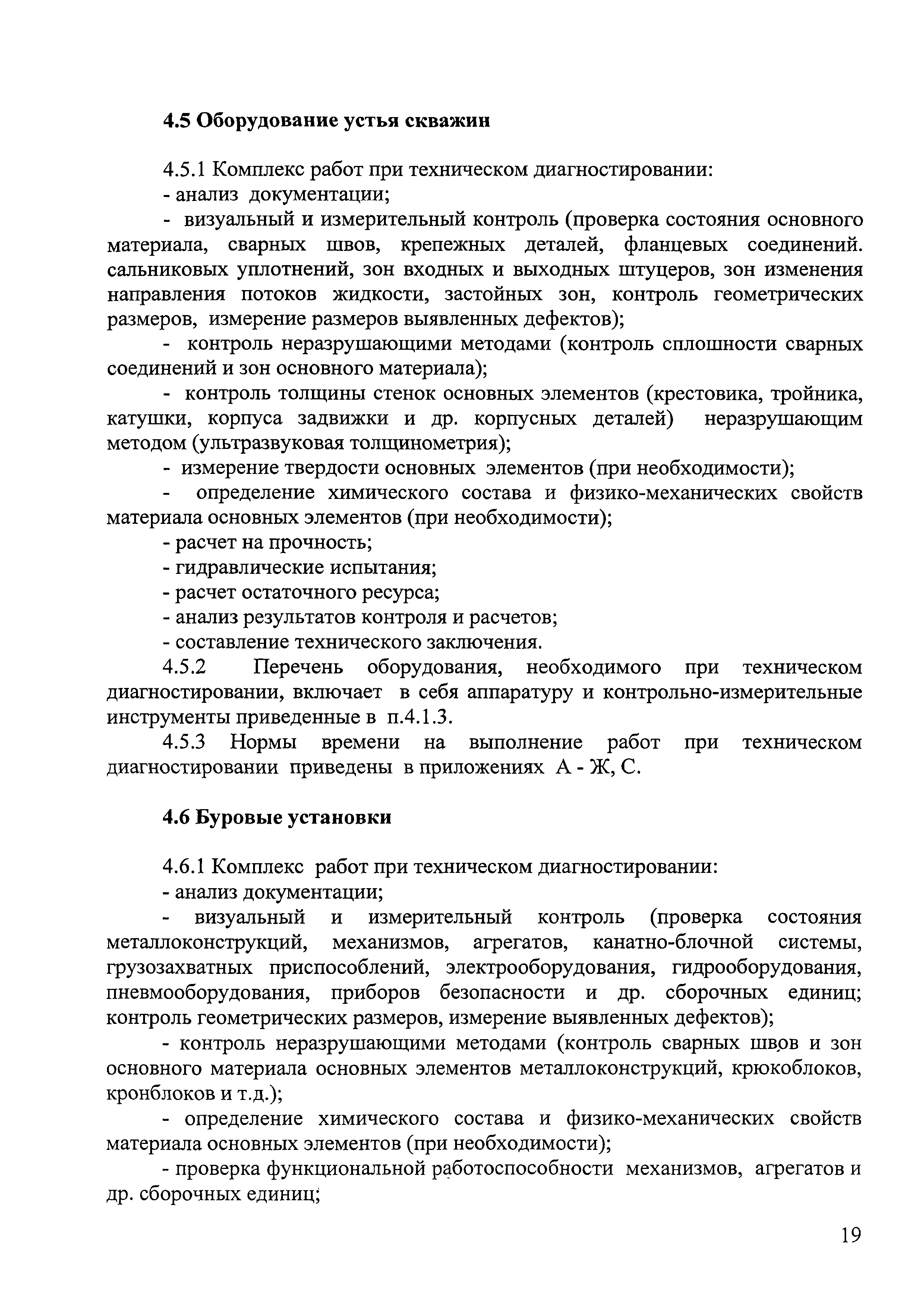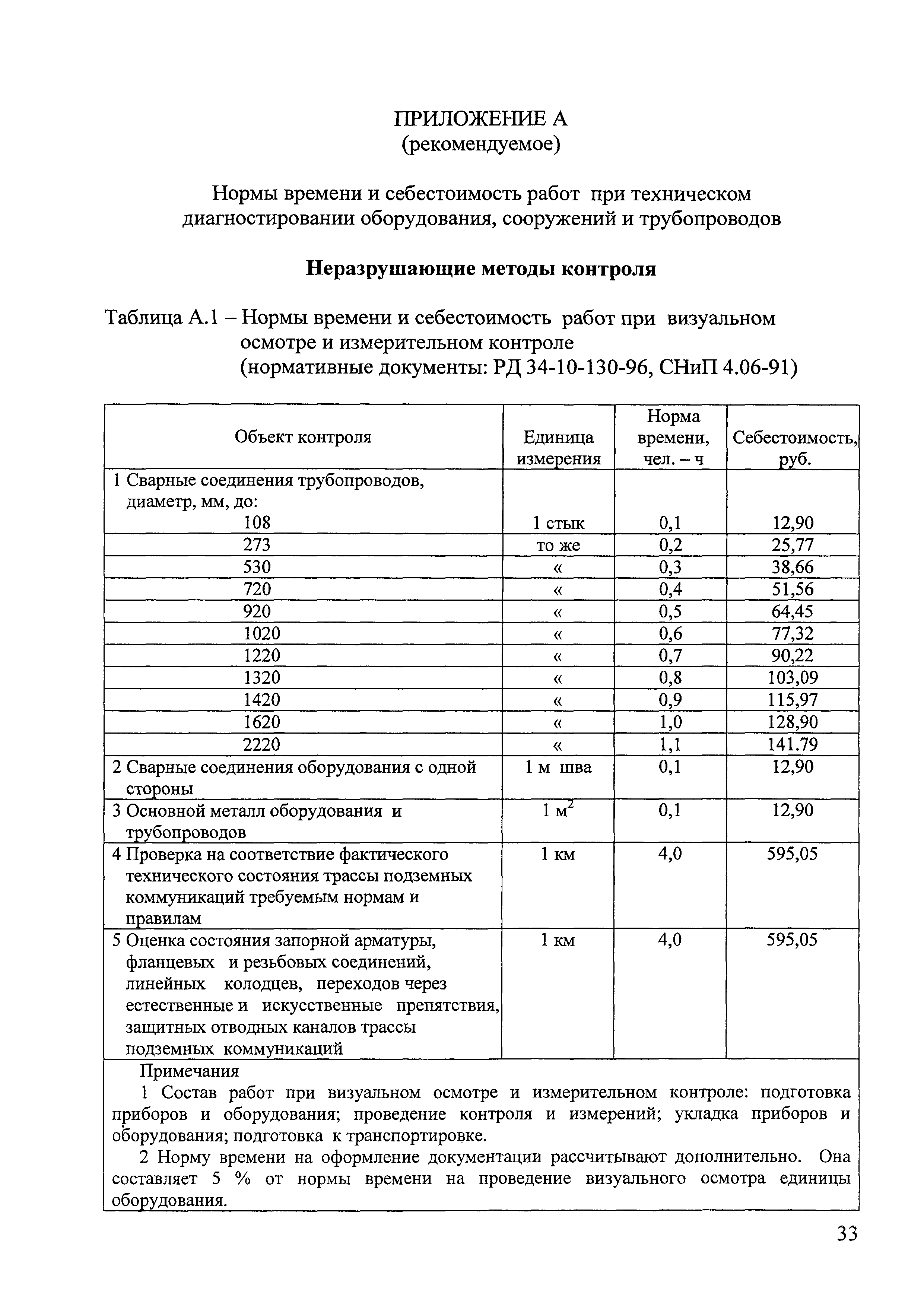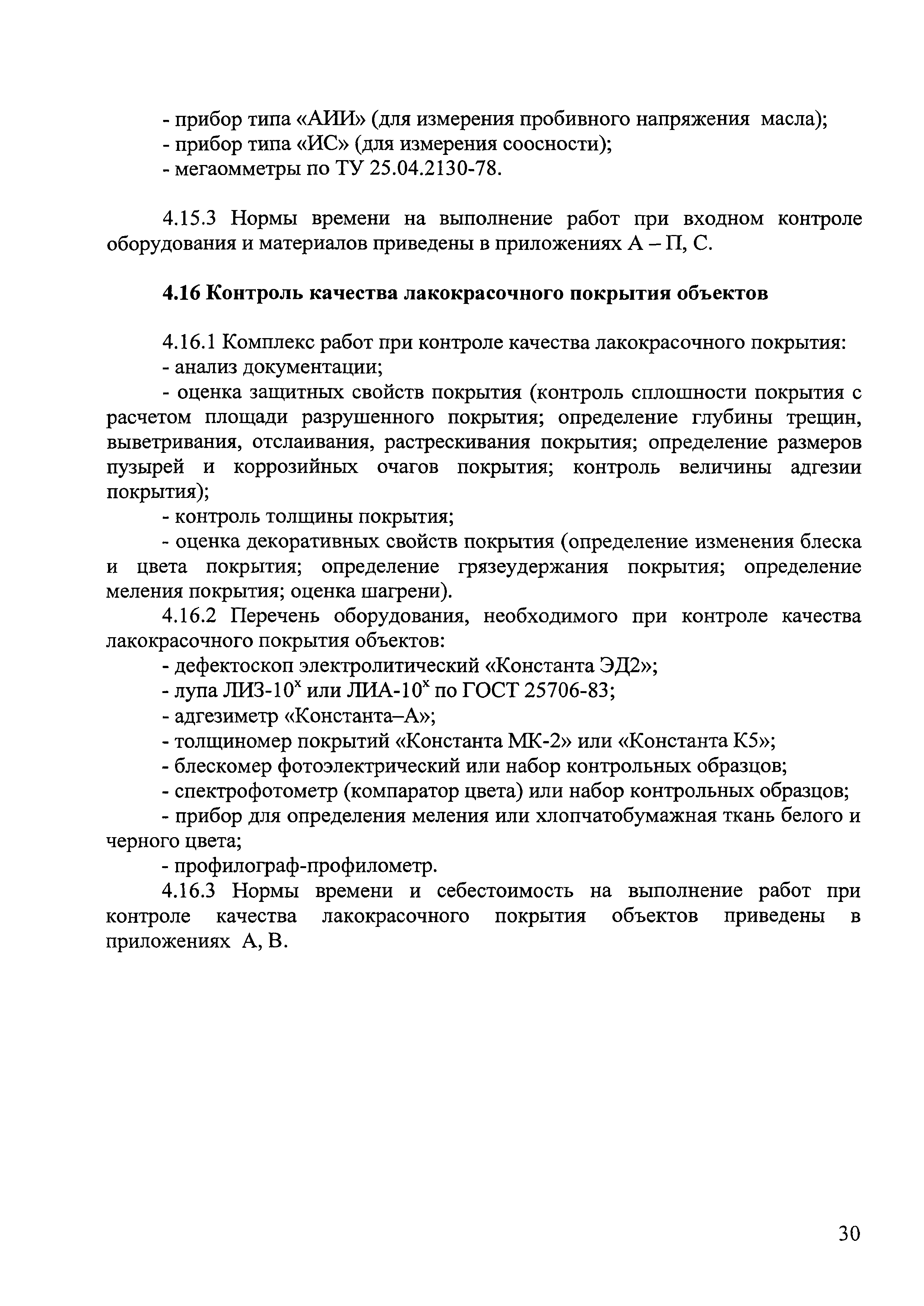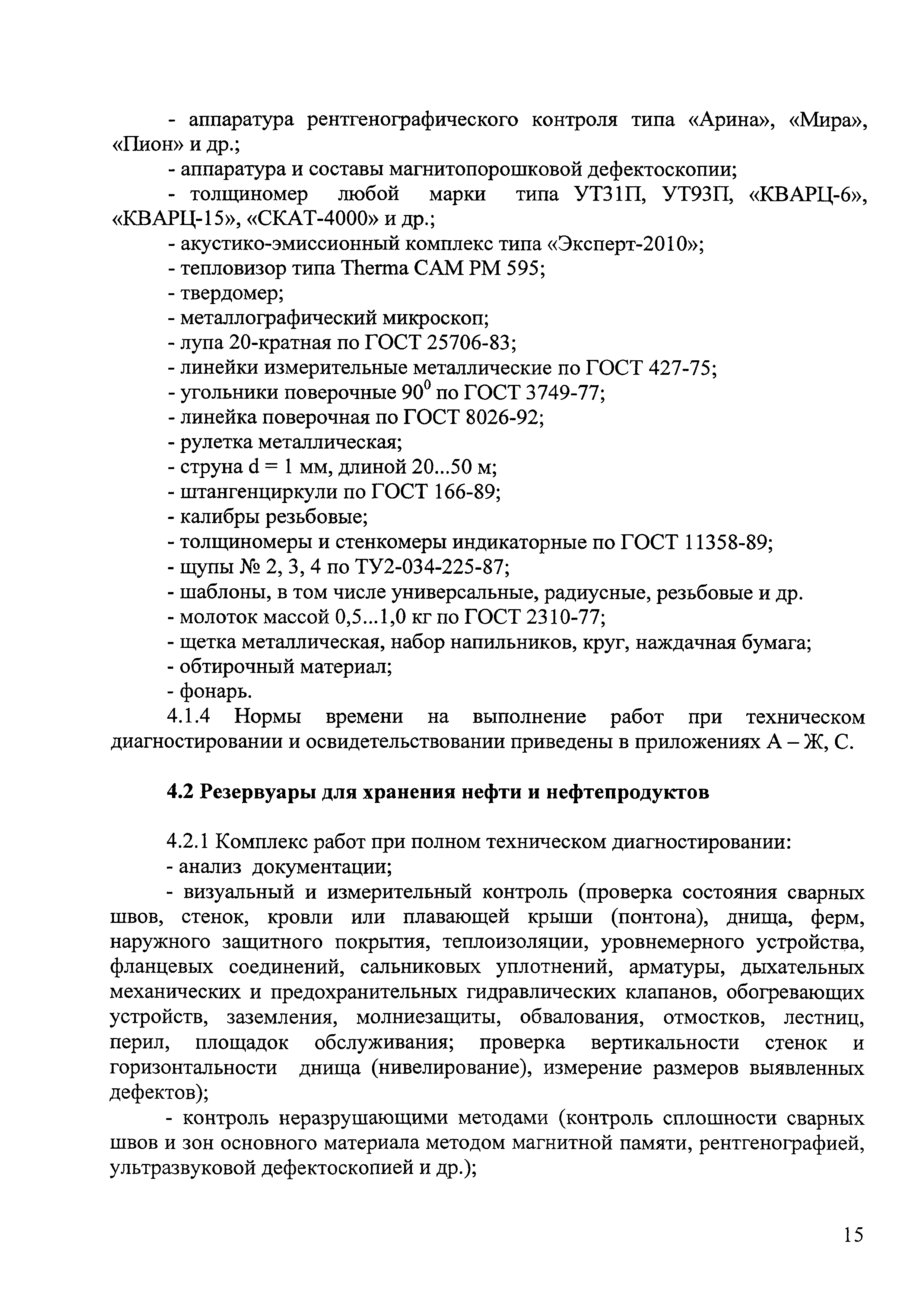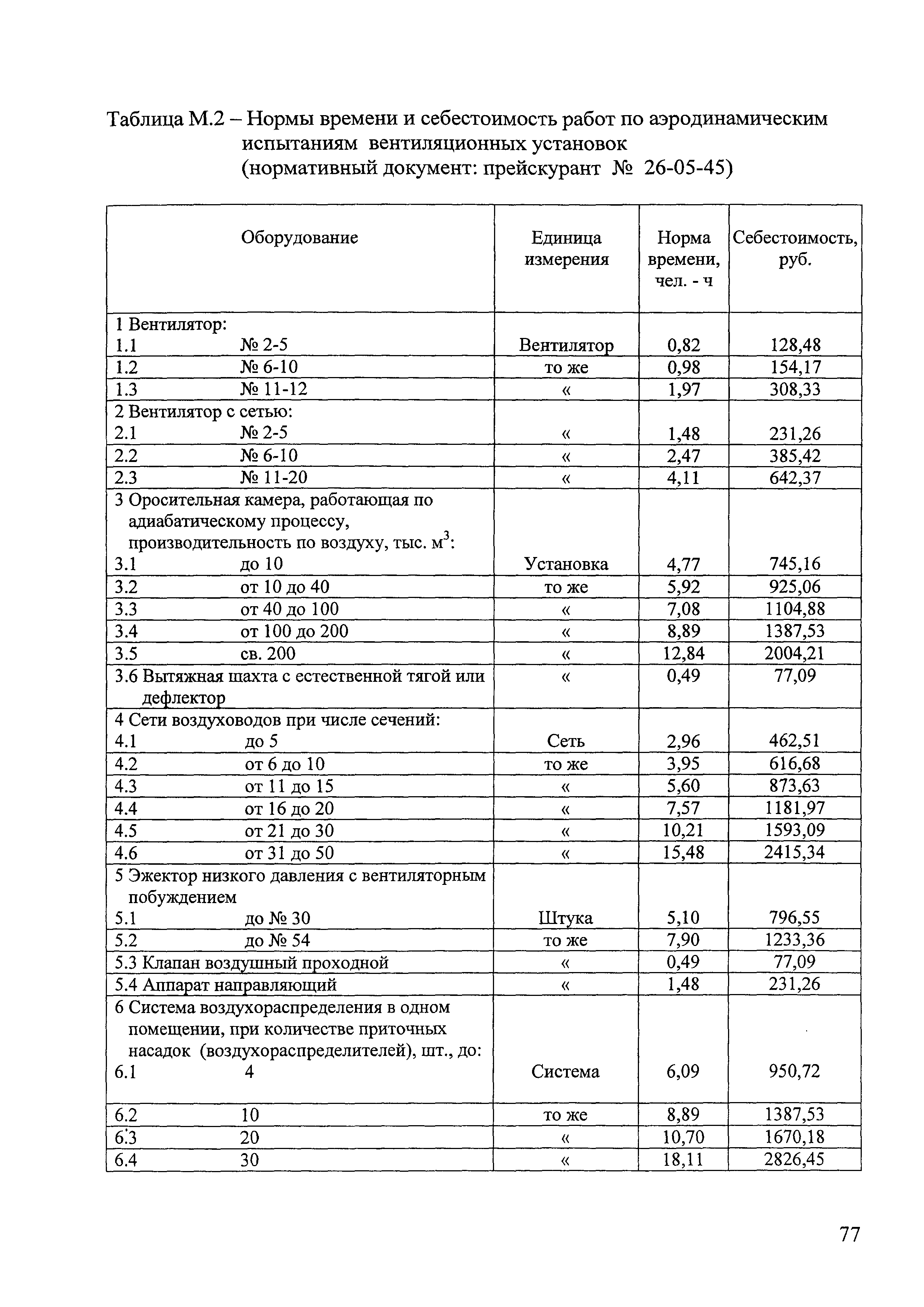 | Оглавление: | 1 Общие положения 2 Расчет норм времени на выполнение работ и организационно-технические условия при техническом диагностировании оборудования, сооружений и трубопроводов 3 Расчет стоимости работ при техническом диагностировании оборудования, сооружений и трубопроводов 4 Комплекс работ, перечень применяемого оборудования и нормы времени на выполнение работ при техническом диагностировании оборудования, сооружений и трубопроводов Нормативно-техническая документация, используемая при разработке ЕниР Приложение А. Нормы времени и себестоимость работ при техническом диагностировании оборудования, сооружений и трубопроводов. Неразрушающие методы контроля Приложение Б. Нормы времени и себестоимость работ при техническом диагностировании оборудования, сооружений и трубопроводов. Разрушающие методы контроля Приложение В. Нормы времени и себестоимость работ при техническом диагностировании оборудования, сооружений и трубопроводов. Камеральные работы Приложение Г. Нормы времени и себестоимость работ при техническом диагностировании оборудования, сооружений и трубопроводов. Экспертные работы Приложение Д. Нормы времени и себестоимость работ при техническом диагностировании оборудования, сооружений и трубопроводов. Специализированные проектные работы Нормы времени и себестоимость работ при техническом диагностировании оборудования, сооружений и трубопроводов. Испытательные работы Нормы времени и себестоимость Приложение Е. Нормы времени и себестоимость работ при техническом диагностировании оборудования, сооружений и трубопроводов. Испытательные работы Приложение Ж. Нормы времени и себестоимость работ при техническом диагностировании оборудования, сооружений и трубопроводов. Вспомогательные работы Приложение И. Нормы времени и себестоимость работ при техническом диагностировании оборудования, сооружений и трубопроводов. Вибродиагностика Приложение К. Нормы времени и себестоимость работ при техническом диагностировании оборудования, сооружений и трубопроводов. Изыскательские и исследовательские работы Приложение Л. Себестоимость работ при обследовании зданий и сооружений промышленного назначения Приложение М. Нормы времени и себестоимость работ по обследованию, испытанию, наладке вентиляционных установок Приложение Н. Нормы времени и себестоимость работ по обследованию, испытанию, наладке вентиляционных систем Приложение П. Себестоимость работ при входном контроле оборудования и материалов Приложение Р. Себестоимость работы аварийной бригады Приложение С. Себестоимость учебно-аттестационной работы |