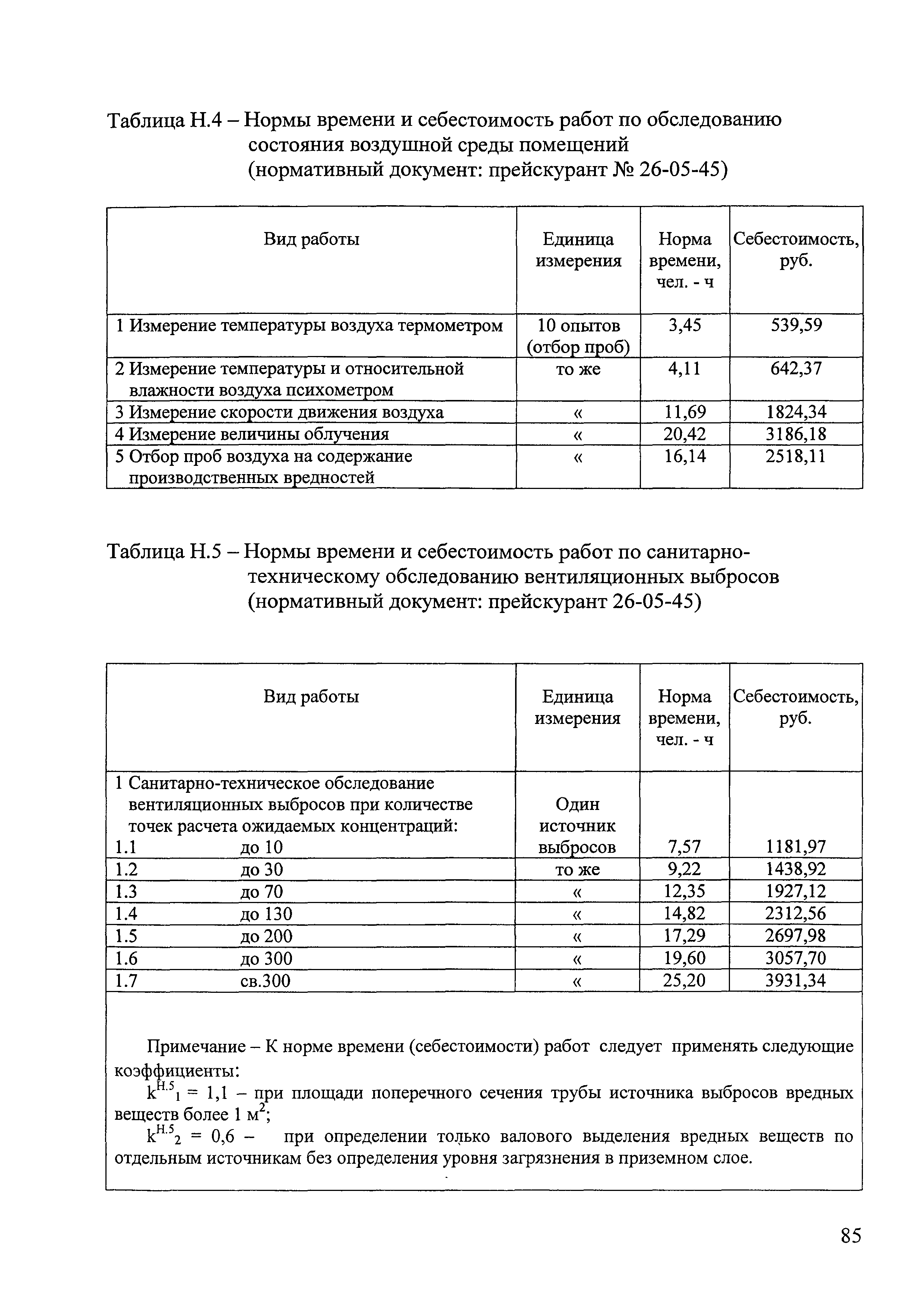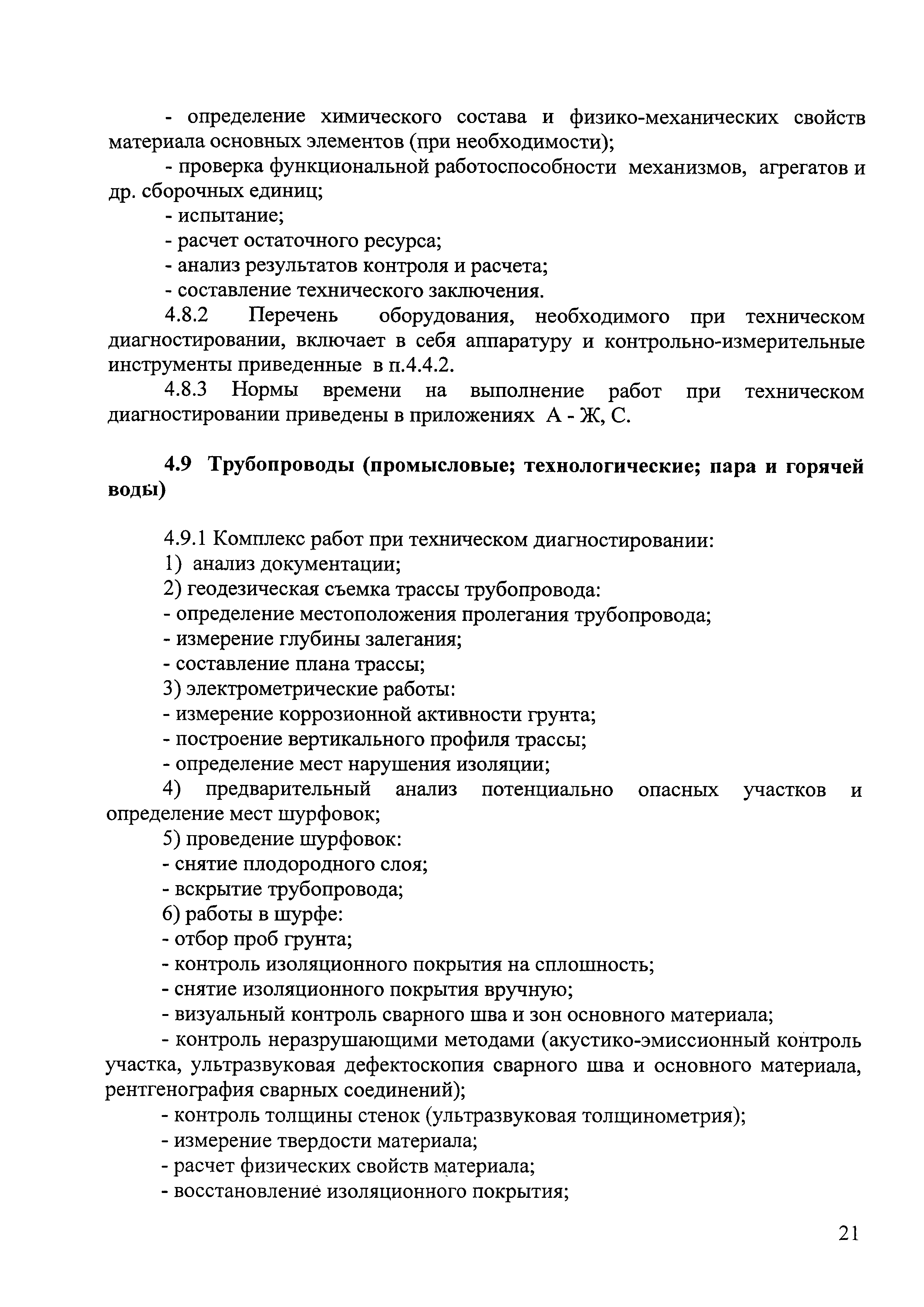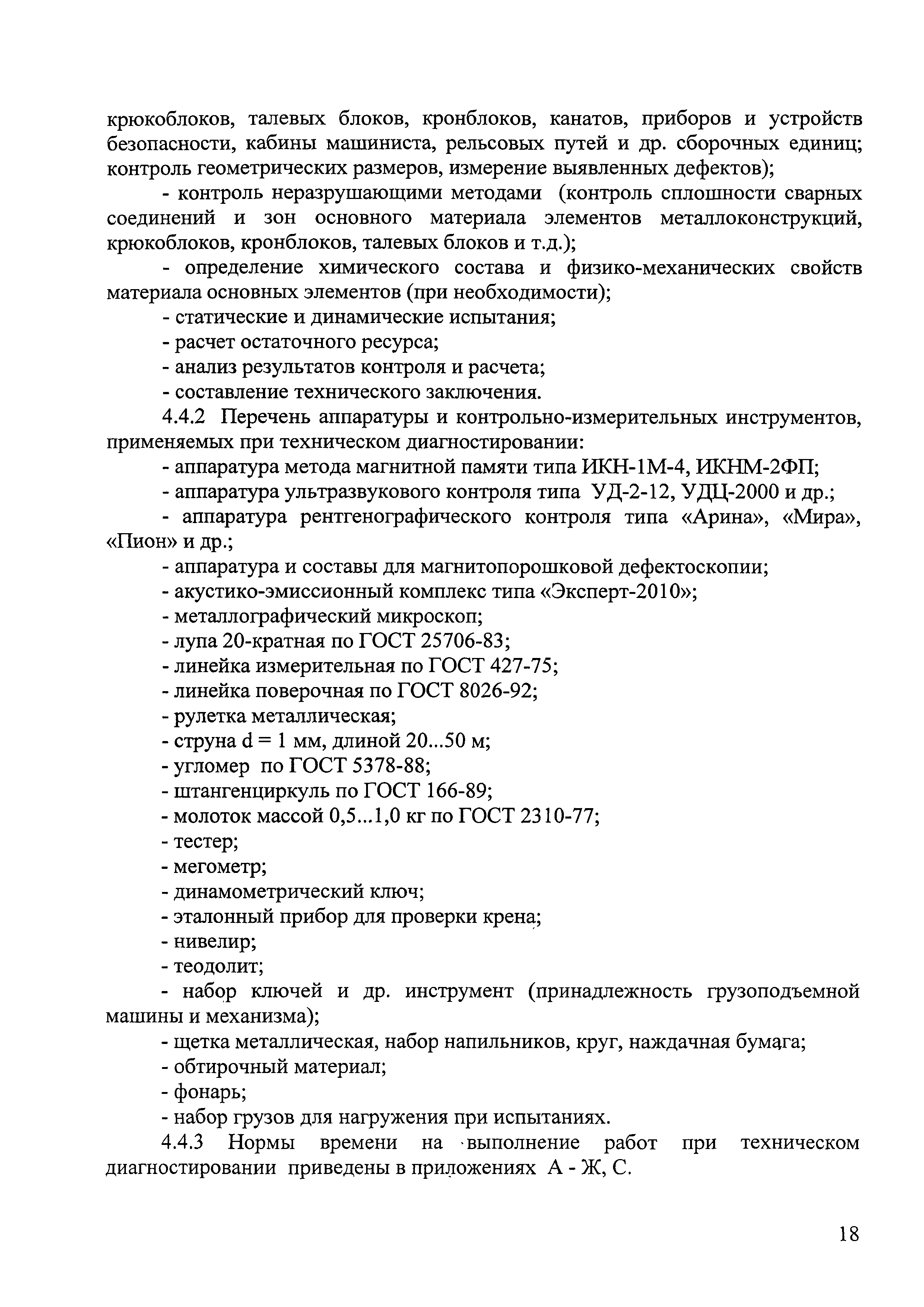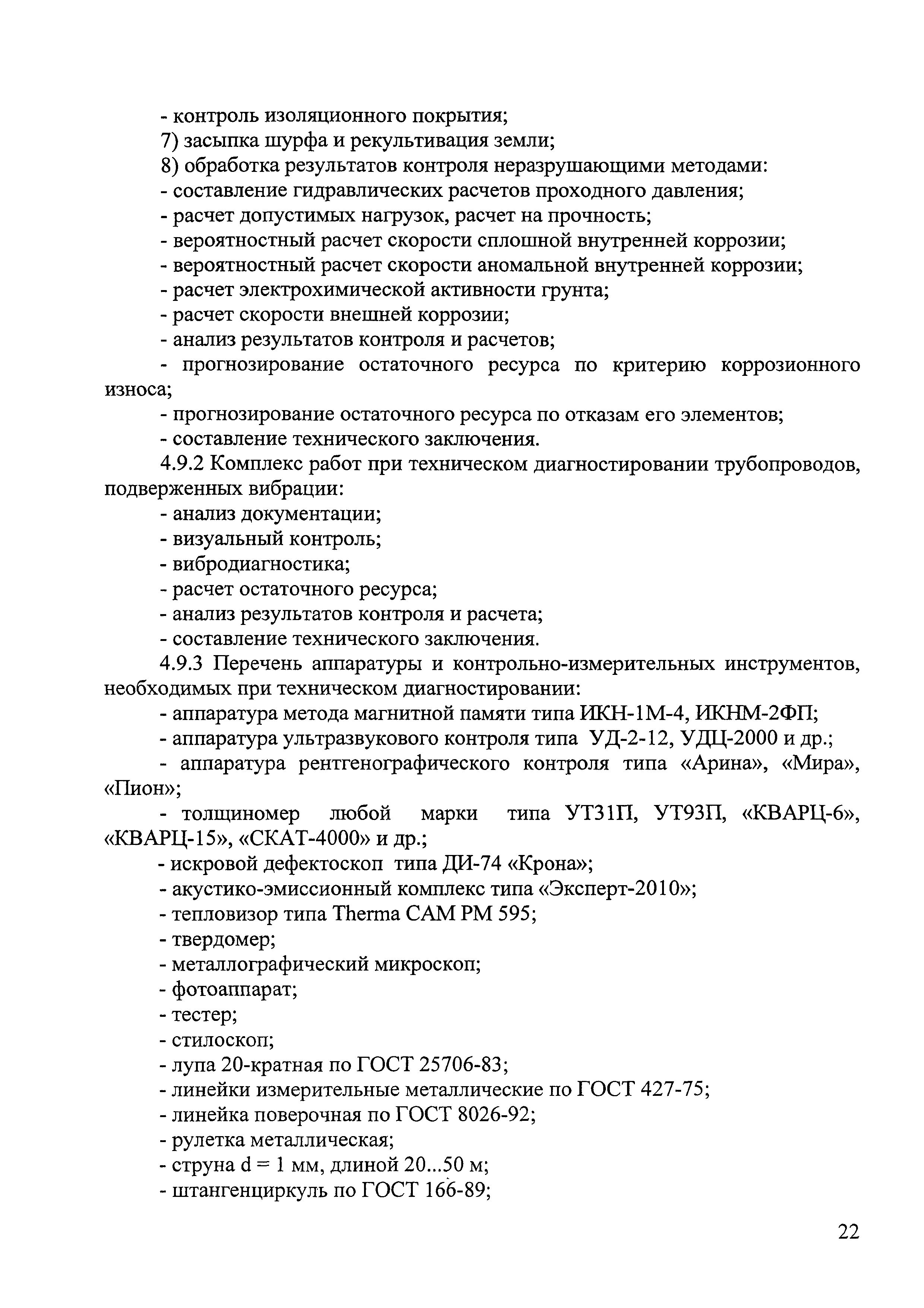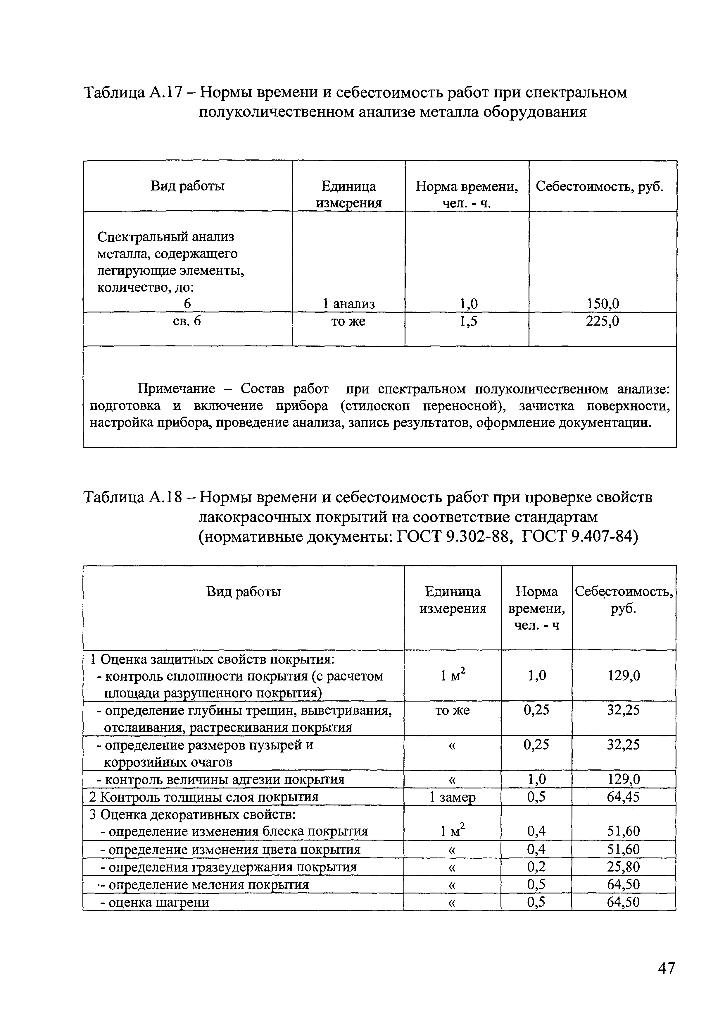 | Оглавление: | 1 Общие положения 2 Расчет норм времени на выполнение работ и организационно-технические условия при техническом диагностировании оборудования, сооружений и трубопроводов 3 Расчет стоимости работ при техническом диагностировании оборудования, сооружений и трубопроводов 4 Комплекс работ, перечень применяемого оборудования и нормы времени на выполнение работ при техническом диагностировании оборудования, сооружений и трубопроводов Нормативно-техническая документация, используемая при разработке ЕниР Приложение А. Нормы времени и себестоимость работ при техническом диагностировании оборудования, сооружений и трубопроводов. Неразрушающие методы контроля Приложение Б. Нормы времени и себестоимость работ при техническом диагностировании оборудования, сооружений и трубопроводов. Разрушающие методы контроля Приложение В. Нормы времени и себестоимость работ при техническом диагностировании оборудования, сооружений и трубопроводов. Камеральные работы Приложение Г. Нормы времени и себестоимость работ при техническом диагностировании оборудования, сооружений и трубопроводов. Экспертные работы Приложение Д. Нормы времени и себестоимость работ при техническом диагностировании оборудования, сооружений и трубопроводов. Специализированные проектные работы Нормы времени и себестоимость работ при техническом диагностировании оборудования, сооружений и трубопроводов. Испытательные работы Нормы времени и себестоимость Приложение Е. Нормы времени и себестоимость работ при техническом диагностировании оборудования, сооружений и трубопроводов. Испытательные работы Приложение Ж. Нормы времени и себестоимость работ при техническом диагностировании оборудования, сооружений и трубопроводов. Вспомогательные работы Приложение И. Нормы времени и себестоимость работ при техническом диагностировании оборудования, сооружений и трубопроводов. Вибродиагностика Приложение К. Нормы времени и себестоимость работ при техническом диагностировании оборудования, сооружений и трубопроводов. Изыскательские и исследовательские работы Приложение Л. Себестоимость работ при обследовании зданий и сооружений промышленного назначения Приложение М. Нормы времени и себестоимость работ по обследованию, испытанию, наладке вентиляционных установок Приложение Н. Нормы времени и себестоимость работ по обследованию, испытанию, наладке вентиляционных систем Приложение П. Себестоимость работ при входном контроле оборудования и материалов Приложение Р. Себестоимость работы аварийной бригады Приложение С. Себестоимость учебно-аттестационной работы |