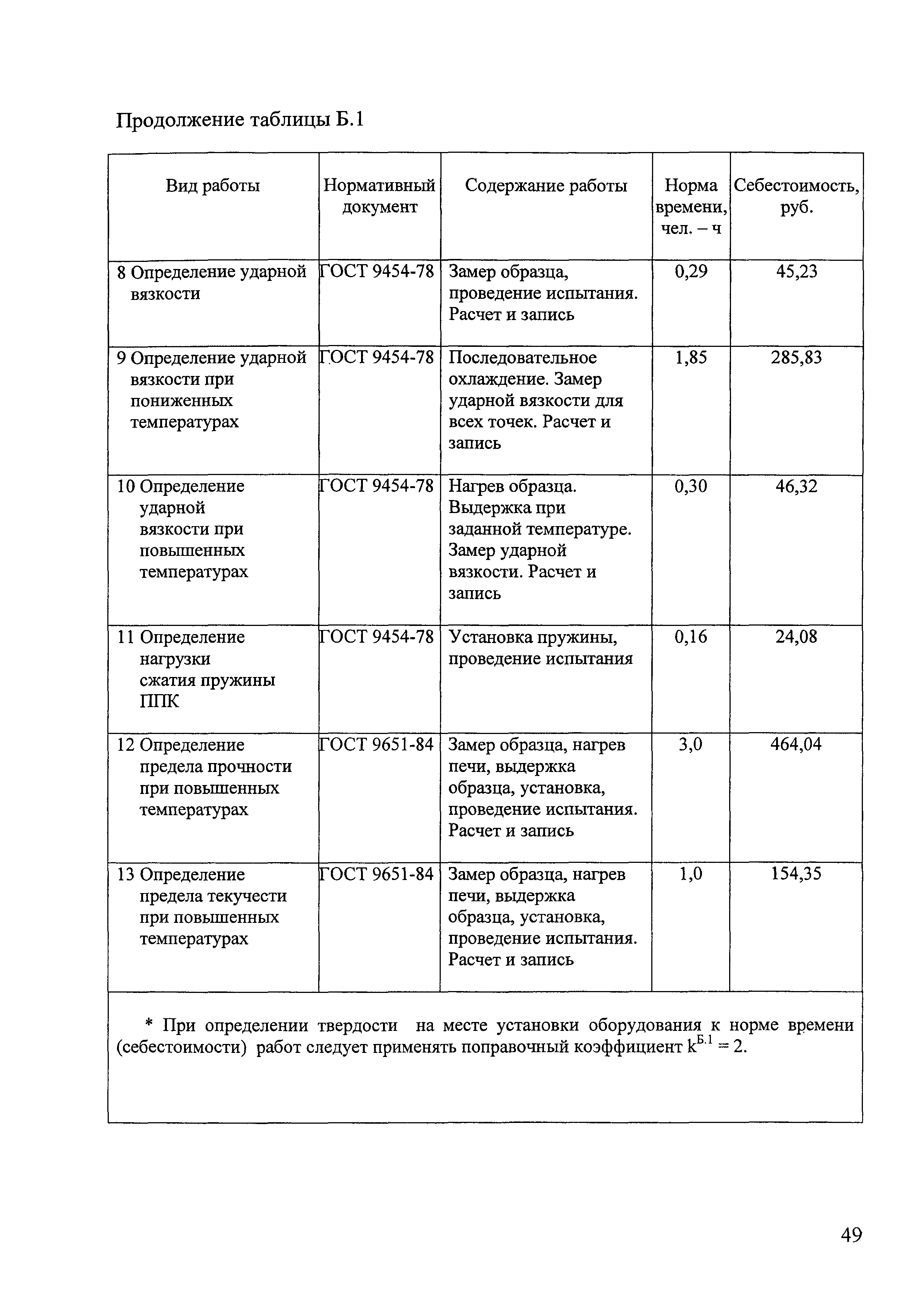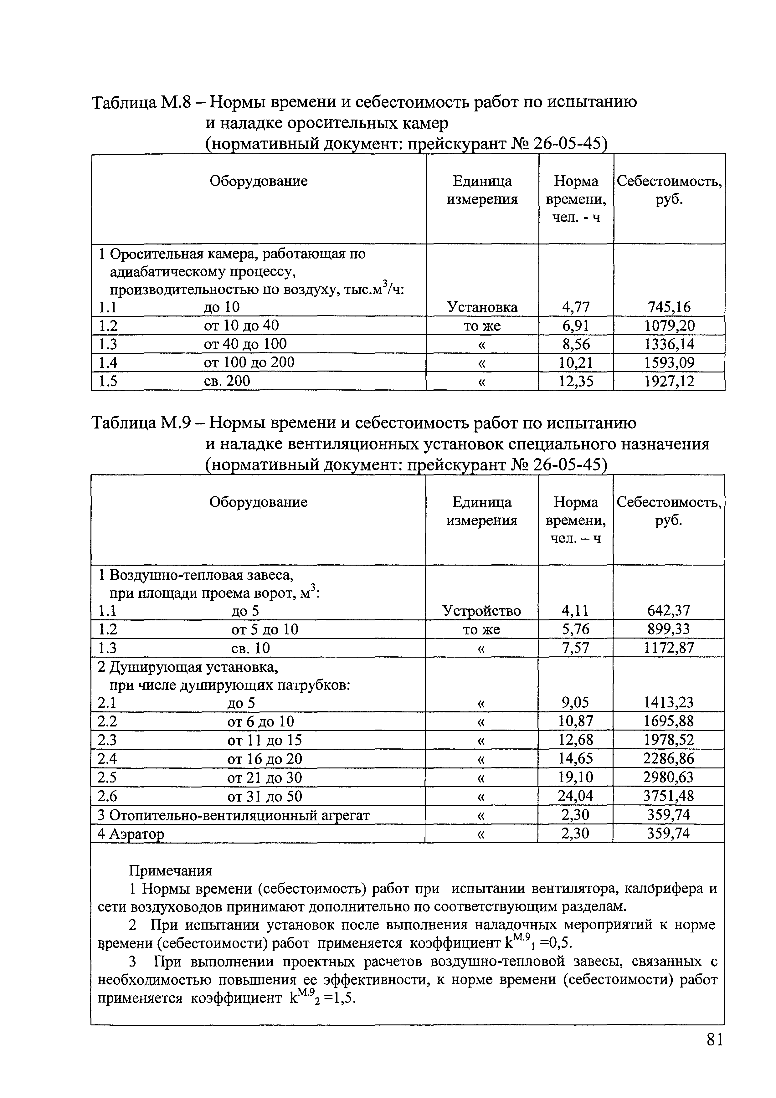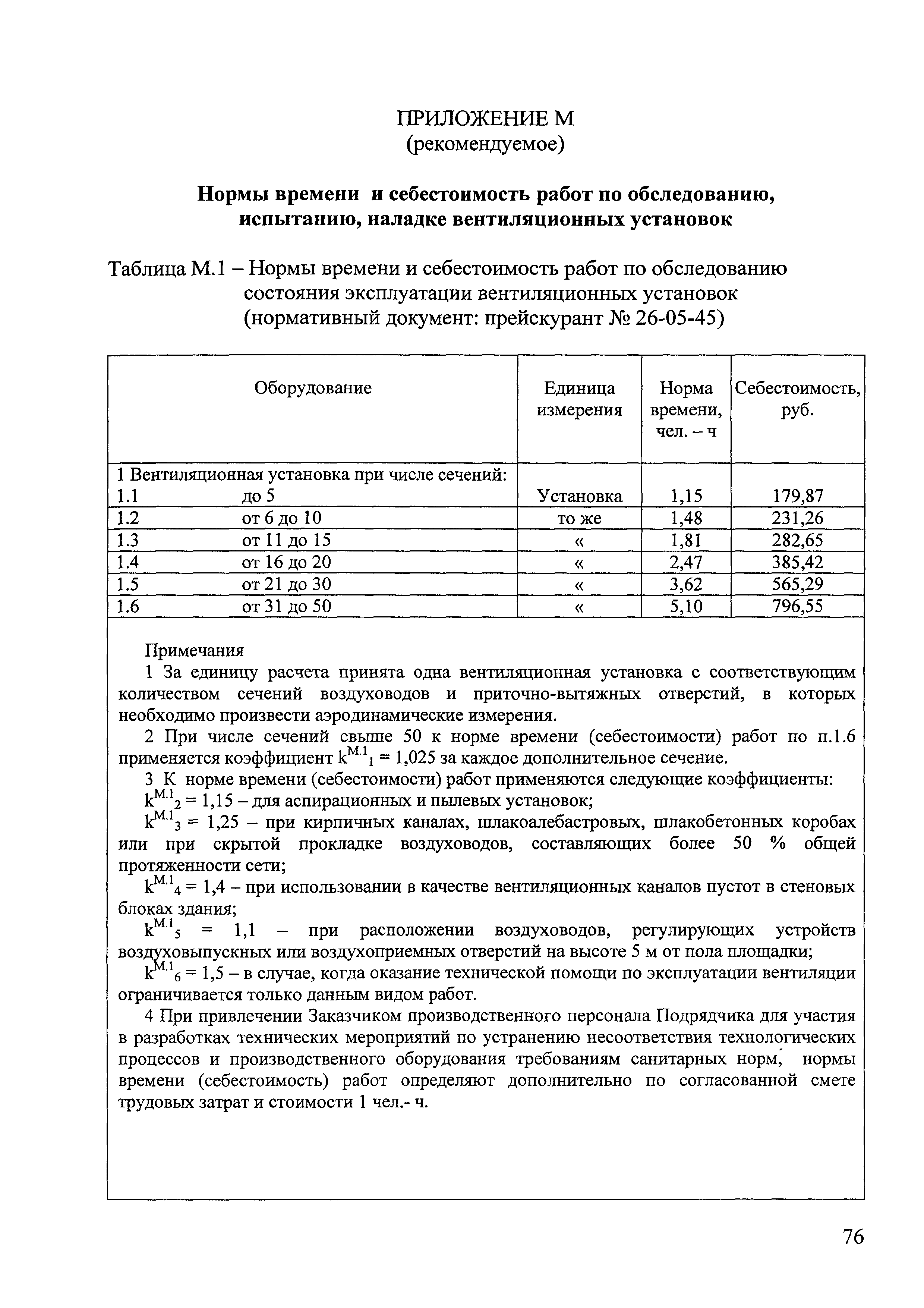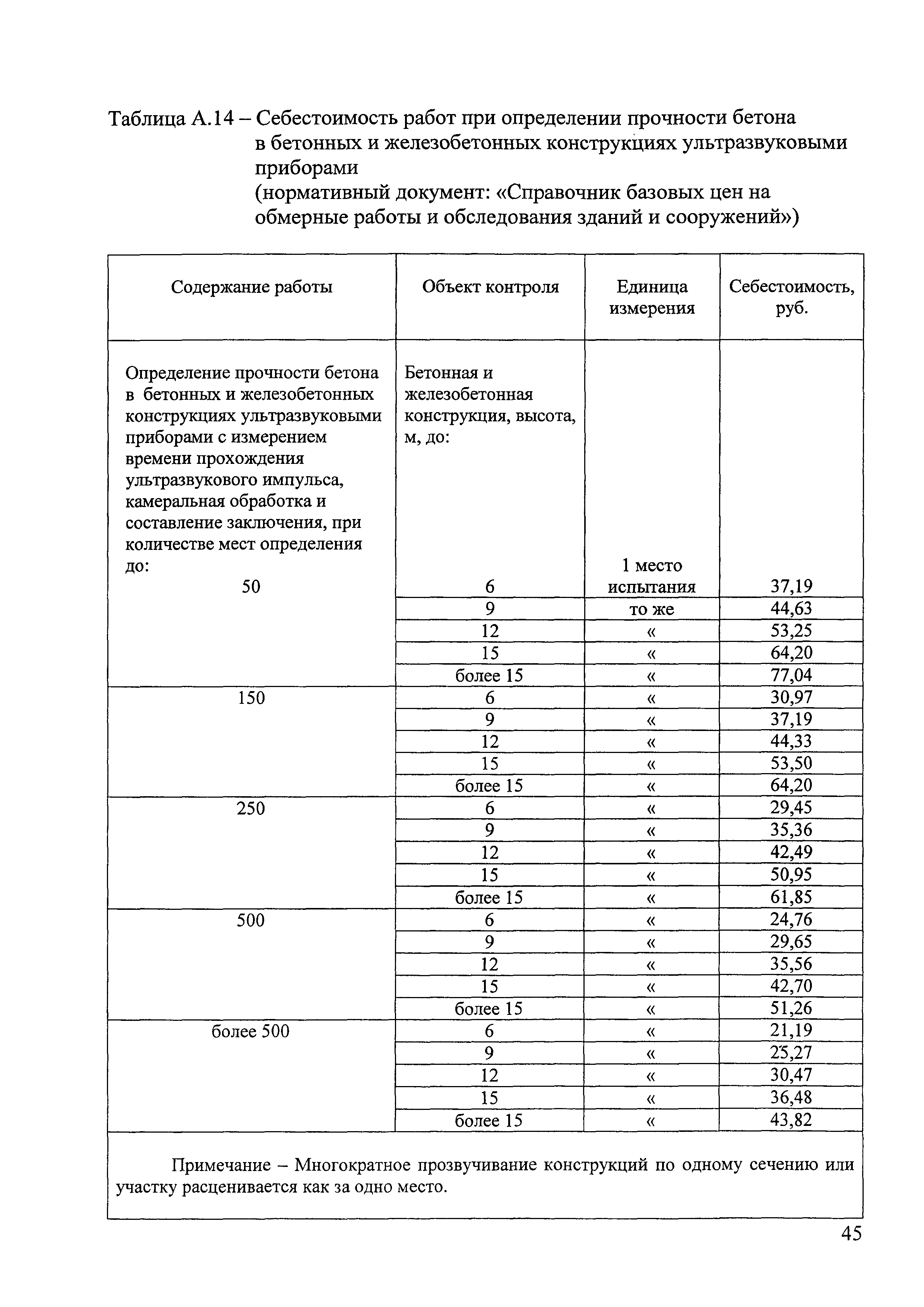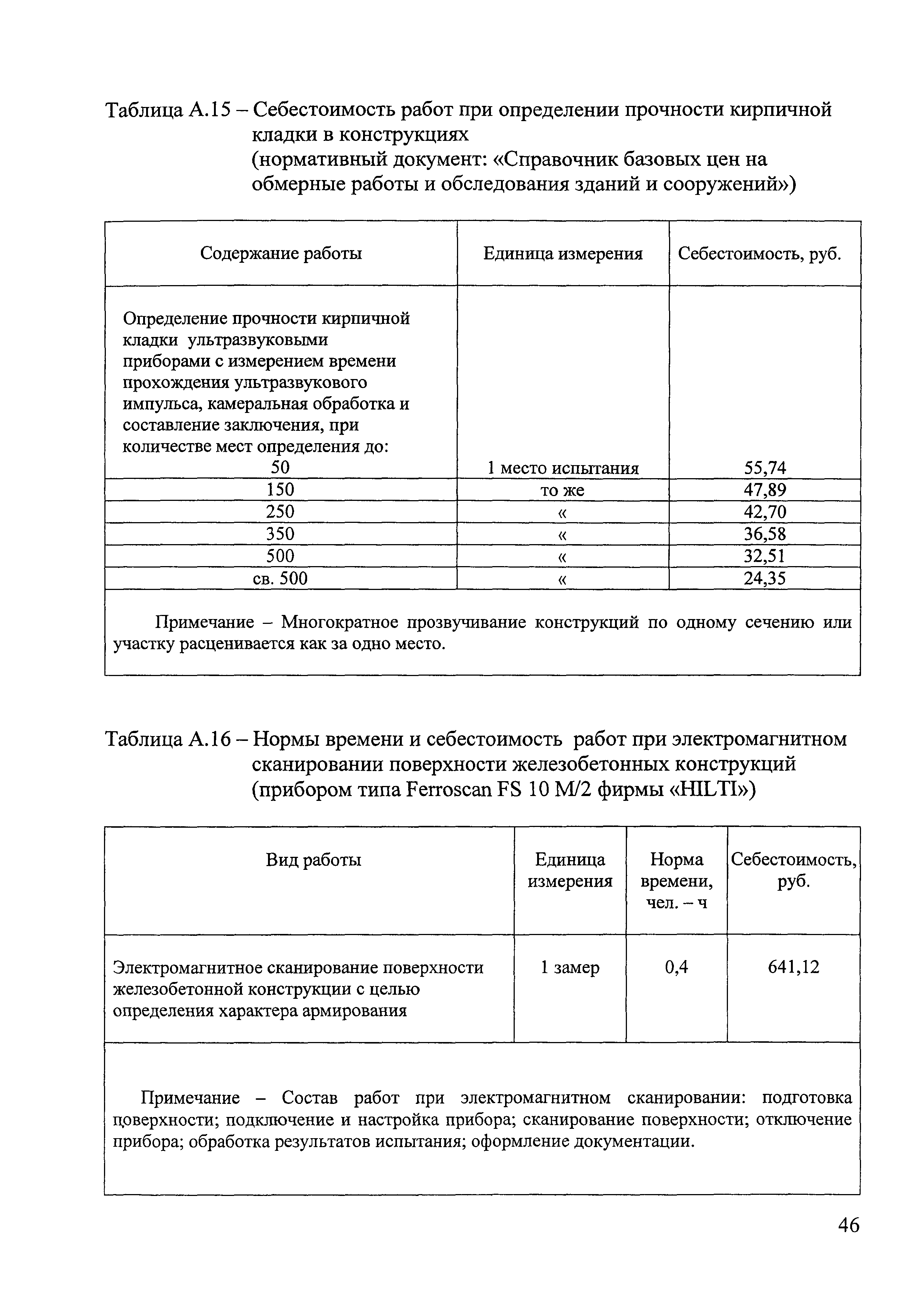 | Оглавление: | 1 Общие положения 2 Расчет норм времени на выполнение работ и организационно-технические условия при техническом диагностировании оборудования, сооружений и трубопроводов 3 Расчет стоимости работ при техническом диагностировании оборудования, сооружений и трубопроводов 4 Комплекс работ, перечень применяемого оборудования и нормы времени на выполнение работ при техническом диагностировании оборудования, сооружений и трубопроводов Нормативно-техническая документация, используемая при разработке ЕниР Приложение А. Нормы времени и себестоимость работ при техническом диагностировании оборудования, сооружений и трубопроводов. Неразрушающие методы контроля Приложение Б. Нормы времени и себестоимость работ при техническом диагностировании оборудования, сооружений и трубопроводов. Разрушающие методы контроля Приложение В. Нормы времени и себестоимость работ при техническом диагностировании оборудования, сооружений и трубопроводов. Камеральные работы Приложение Г. Нормы времени и себестоимость работ при техническом диагностировании оборудования, сооружений и трубопроводов. Экспертные работы Приложение Д. Нормы времени и себестоимость работ при техническом диагностировании оборудования, сооружений и трубопроводов. Специализированные проектные работы Нормы времени и себестоимость работ при техническом диагностировании оборудования, сооружений и трубопроводов. Испытательные работы Нормы времени и себестоимость Приложение Е. Нормы времени и себестоимость работ при техническом диагностировании оборудования, сооружений и трубопроводов. Испытательные работы Приложение Ж. Нормы времени и себестоимость работ при техническом диагностировании оборудования, сооружений и трубопроводов. Вспомогательные работы Приложение И. Нормы времени и себестоимость работ при техническом диагностировании оборудования, сооружений и трубопроводов. Вибродиагностика Приложение К. Нормы времени и себестоимость работ при техническом диагностировании оборудования, сооружений и трубопроводов. Изыскательские и исследовательские работы Приложение Л. Себестоимость работ при обследовании зданий и сооружений промышленного назначения Приложение М. Нормы времени и себестоимость работ по обследованию, испытанию, наладке вентиляционных установок Приложение Н. Нормы времени и себестоимость работ по обследованию, испытанию, наладке вентиляционных систем Приложение П. Себестоимость работ при входном контроле оборудования и материалов Приложение Р. Себестоимость работы аварийной бригады Приложение С. Себестоимость учебно-аттестационной работы |
