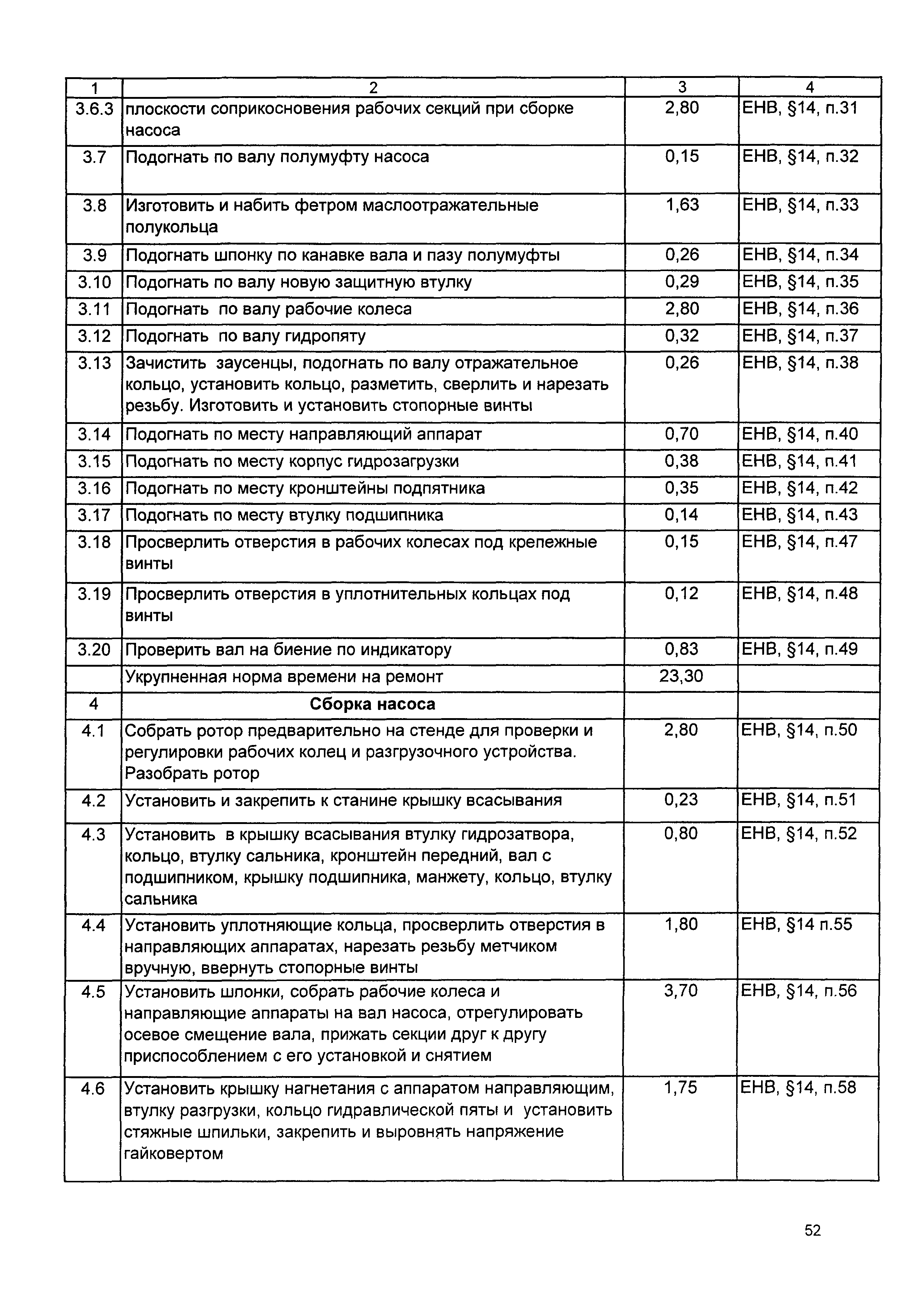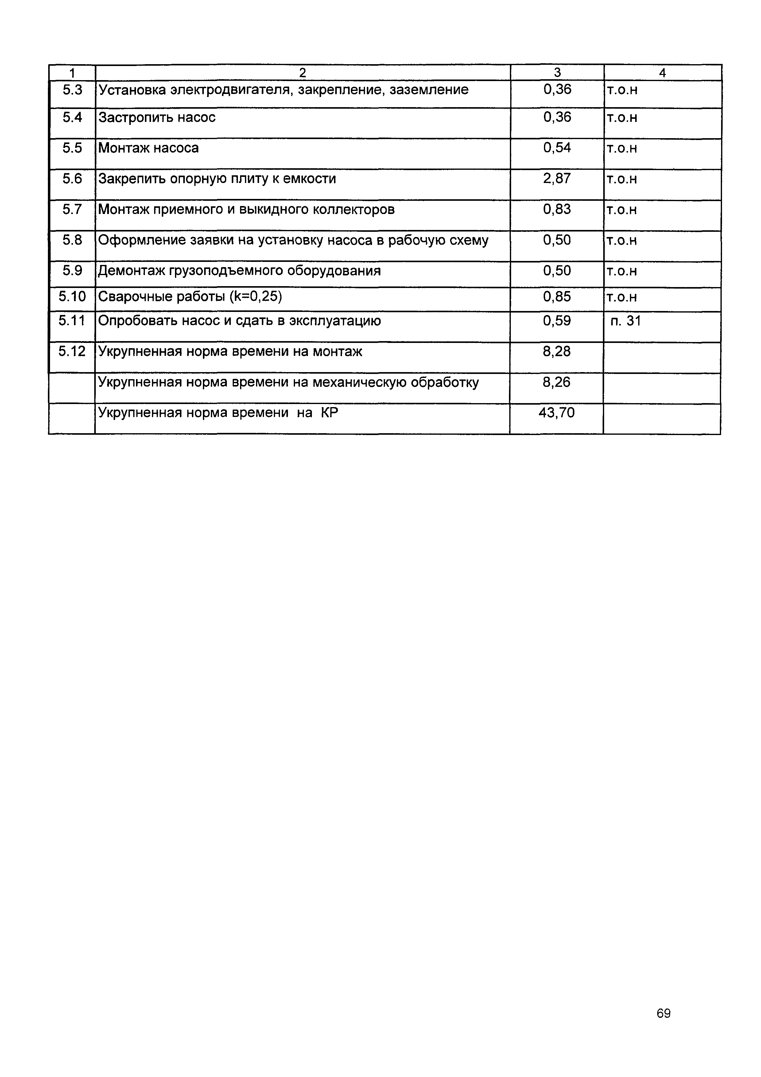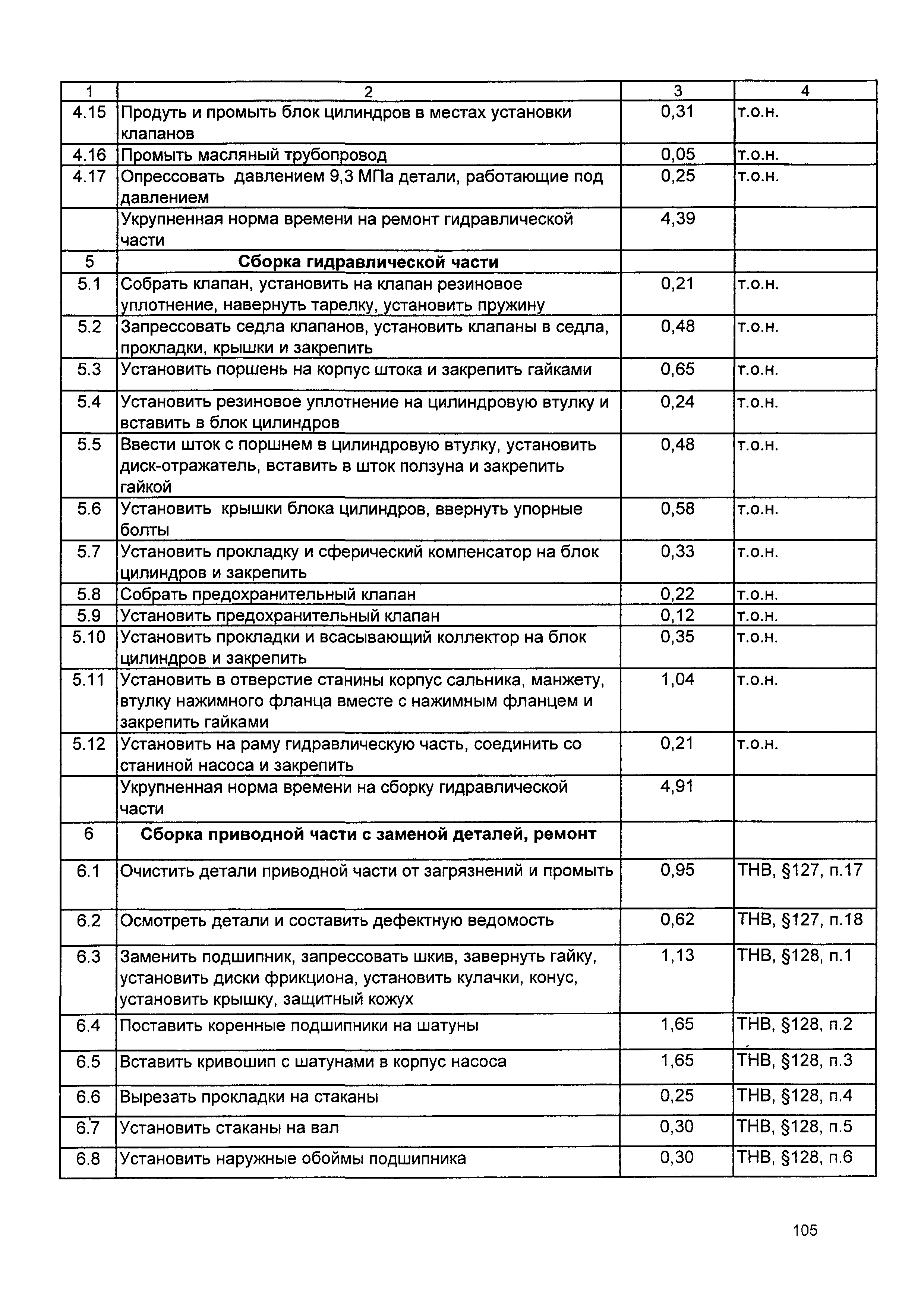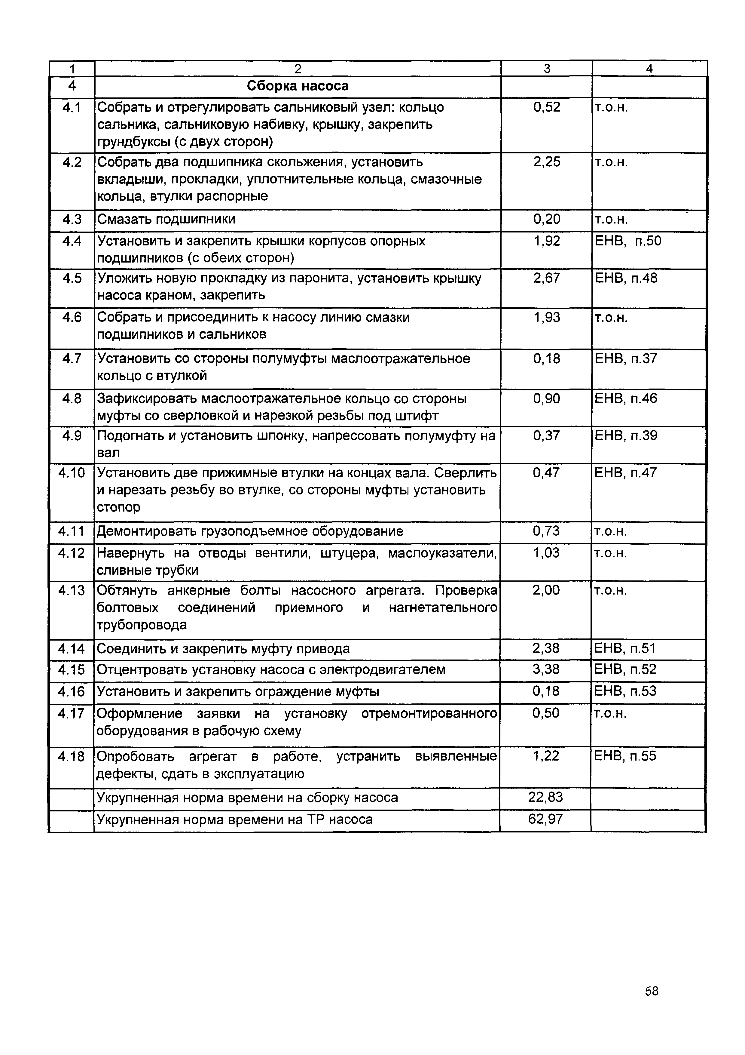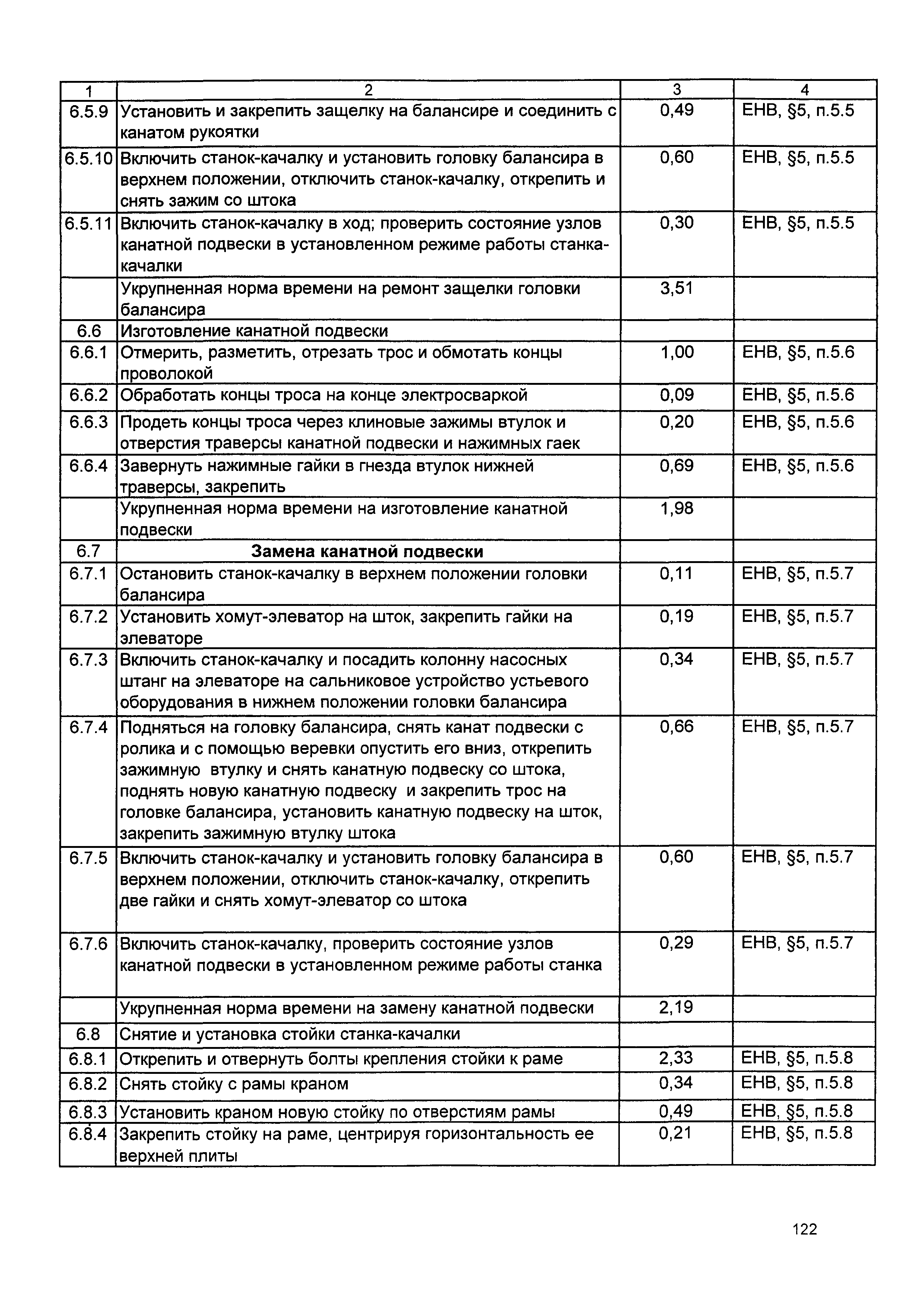 Сборник норм трудоемкости технического обслуживания и ремонтов насосов и станков-качалок. Часть 2| Статус: | действует | | Название рус.: | Сборник норм трудоемкости технического обслуживания и ремонтов насосов и станков-качалок. Часть 2 | | Дата добавления в базу: | 01.10.2014 | | Дата актуализации: | 01.01.2021 | | Область применения: | Сборник является нормативным документом по проведению технического обслуживания и ремонтов (ТО и Р) НПО и служит для: планирования ремонтных работ, определения их объема, составления сметной документации и организации подготовительных работ к ремонту; определения потребности в технических средствах (машинах, механизмах и т.д.) и материальных ресурсах, подбора ремонтного персонала и осуществления контроля за правильным расходованием средств на ремонтные работы. Сборник предназначен для работников структурных подразделений и производственных объектов, занятых планированием, организацией и проведением технического обслуживания и ремонтов (НПО). | | Оглавление: | Общие положения Насос ЦНС 38-44…220 Насос ЦНС 60-66…330 Насос ЦНС 105-98…490 Насосы ЦНС 180-1050. ЦНС 180-1422, ЦНС 180-1900 Насос ЦНС 300-120…600 Насос ЦН 900-310 Насос 12НА-9Х4 Насос 24А-18Х1-1 Насос АХП 45/31-А-СД-П Насос К20/30 Насос Ш5-25 Насос 6Ш8-2 Насос НБ-32 Насос НК 200/210А Станки-качалки СКД8-3-4000, СК8-3,5-4000, 7СК8-3,5-4000 Редукторы Ц2НШ-750А, Ц2НШ-750Б, R-35 ("Вулкан") | | Разработан: | ООО СПКТБ НЕФТЕГАЗМАШ