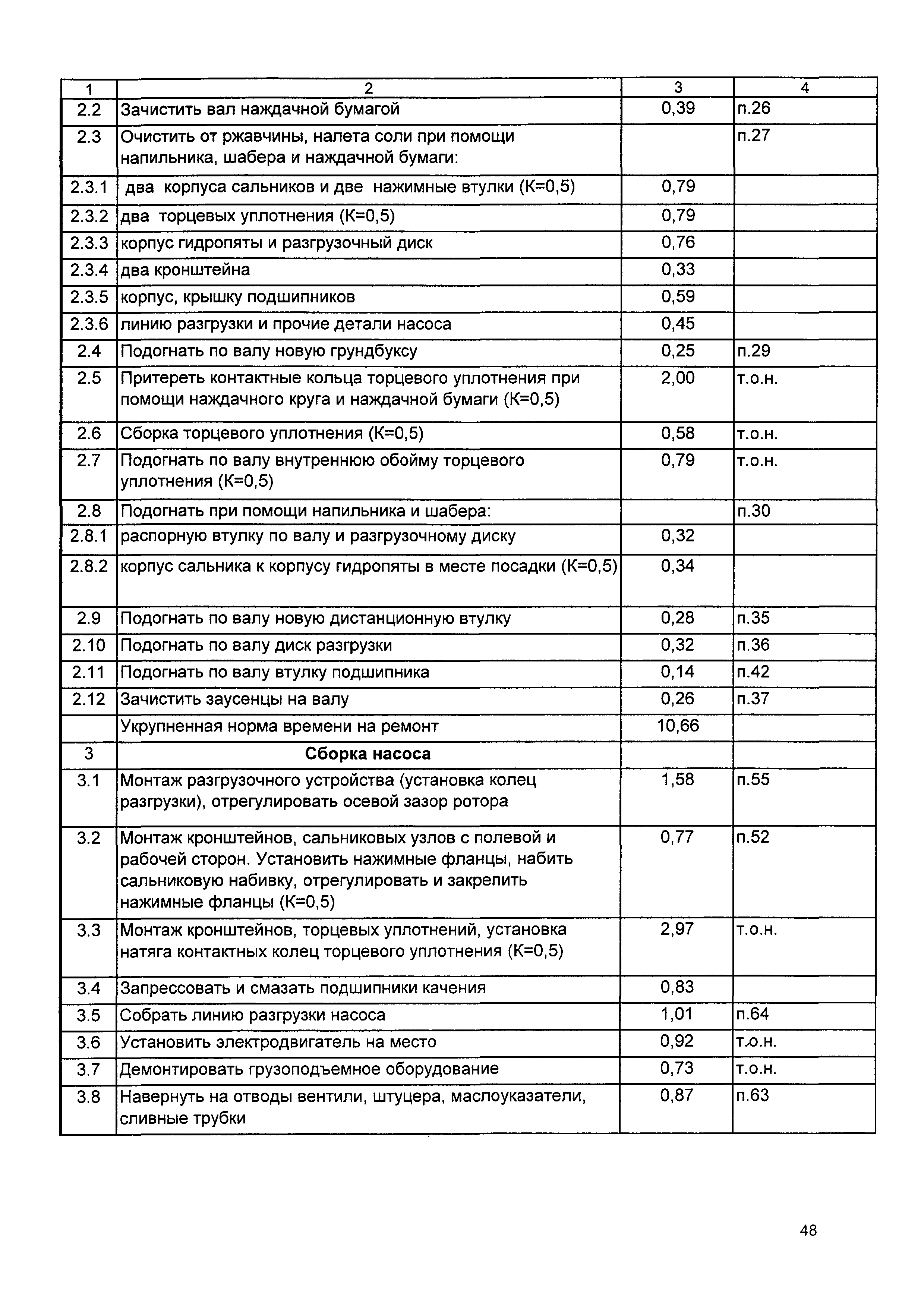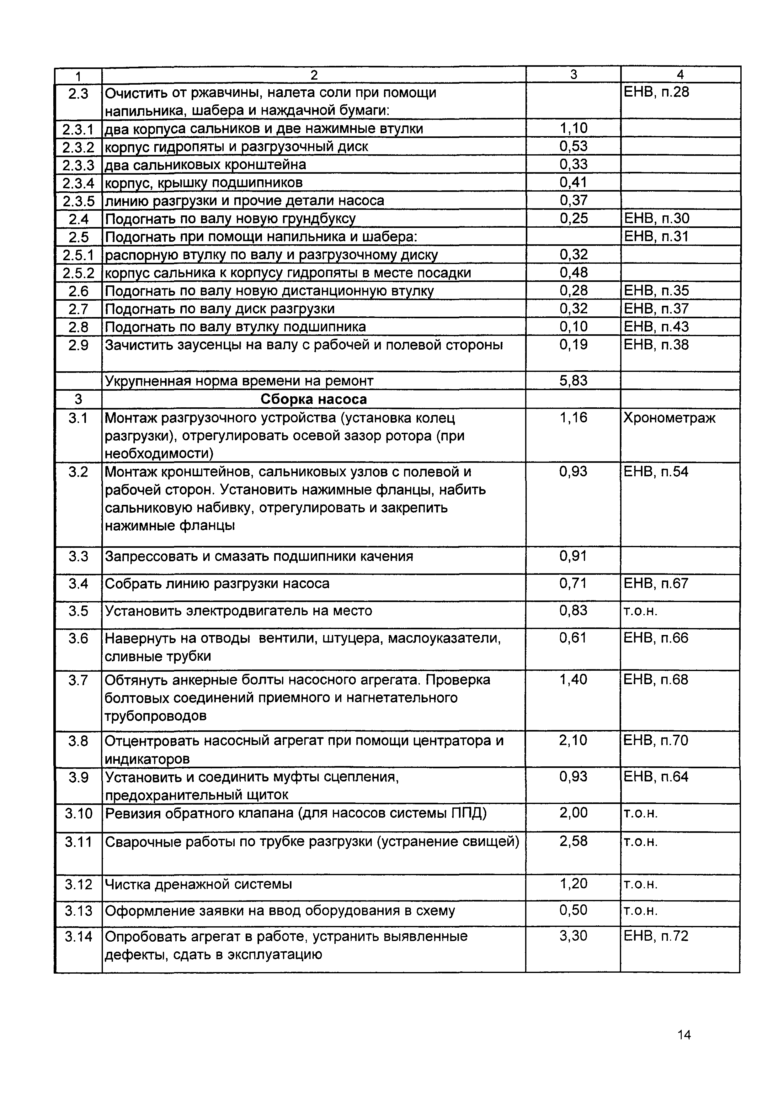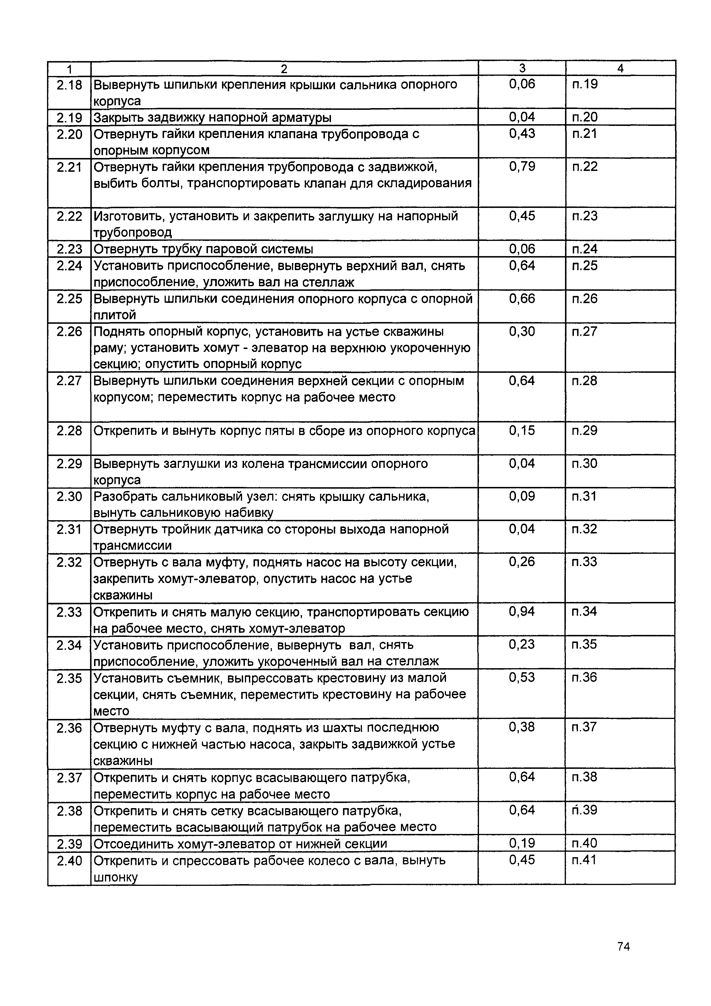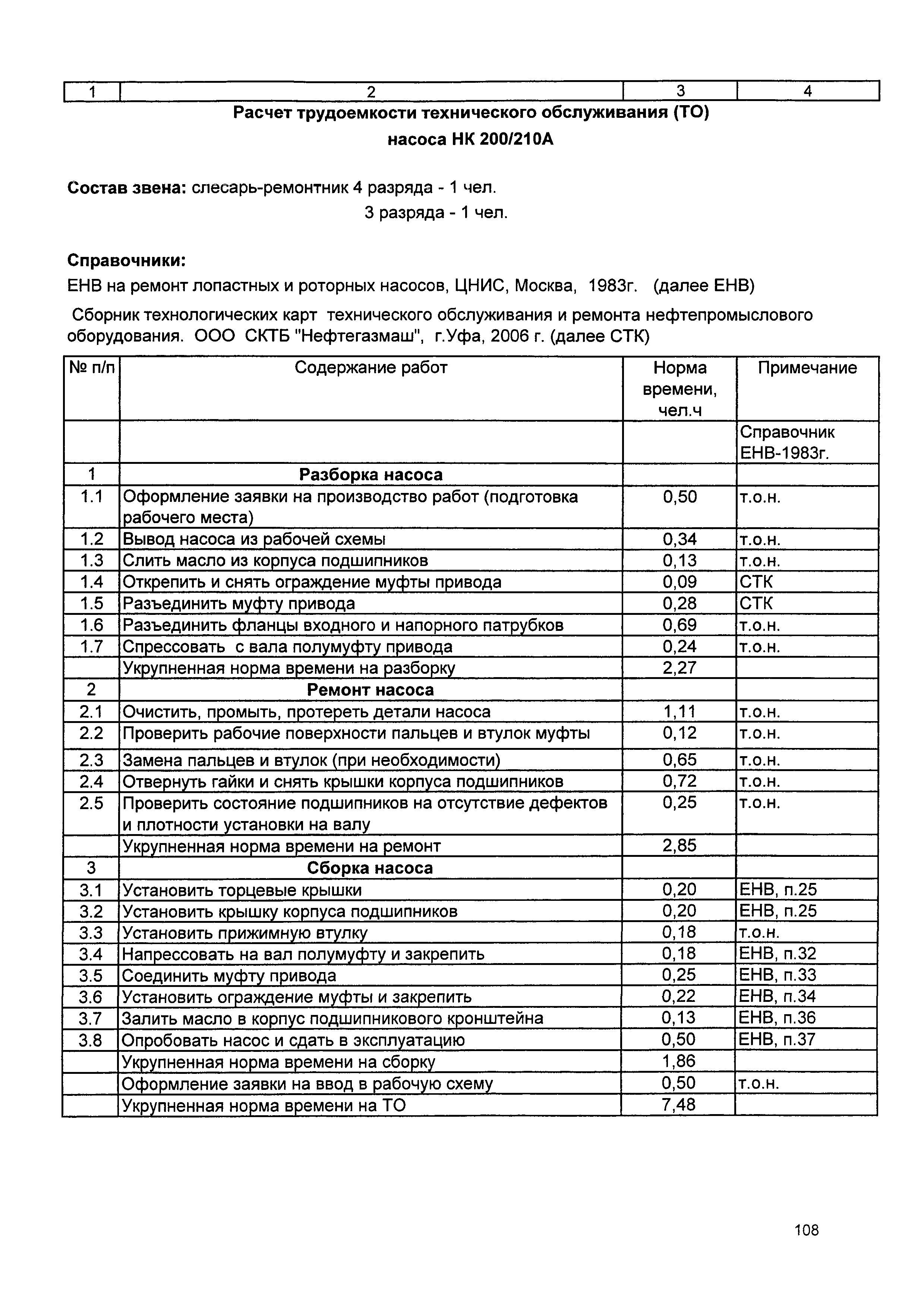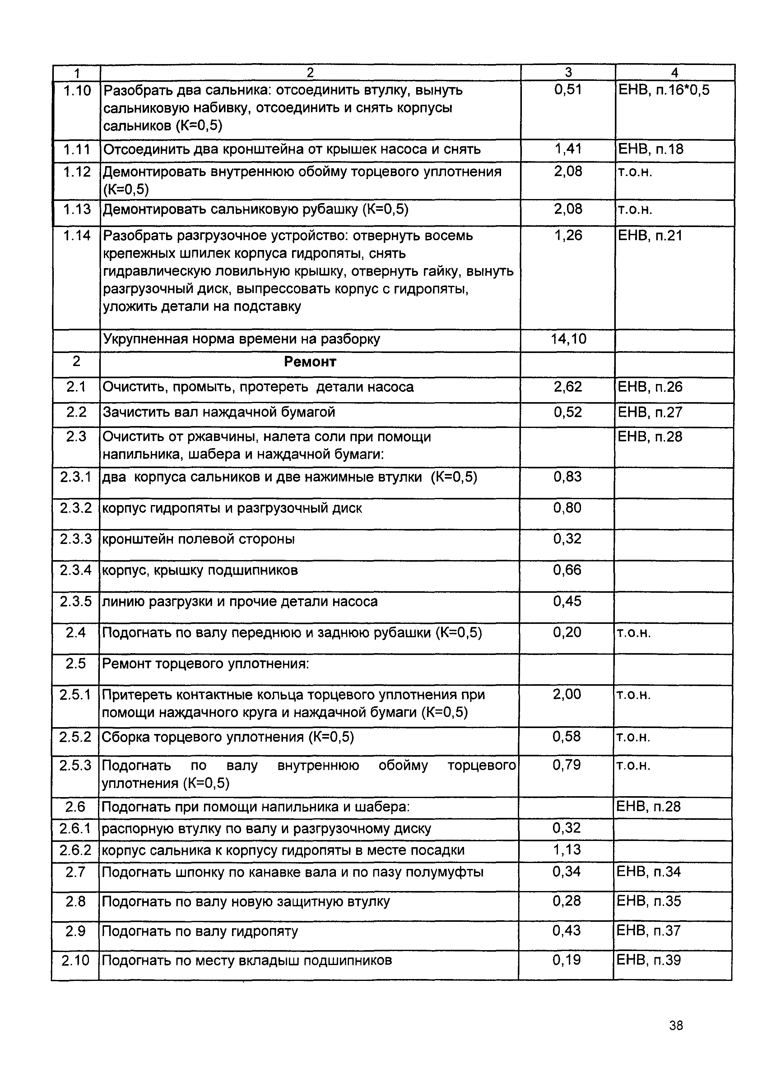 Сборник норм трудоемкости технического обслуживания и ремонтов насосов и станков-качалок. Часть 2| Статус: | действует | | Название рус.: | Сборник норм трудоемкости технического обслуживания и ремонтов насосов и станков-качалок. Часть 2 | | Дата добавления в базу: | 01.10.2014 | | Дата актуализации: | 01.01.2021 | | Область применения: | Сборник является нормативным документом по проведению технического обслуживания и ремонтов (ТО и Р) НПО и служит для: планирования ремонтных работ, определения их объема, составления сметной документации и организации подготовительных работ к ремонту; определения потребности в технических средствах (машинах, механизмах и т.д.) и материальных ресурсах, подбора ремонтного персонала и осуществления контроля за правильным расходованием средств на ремонтные работы. Сборник предназначен для работников структурных подразделений и производственных объектов, занятых планированием, организацией и проведением технического обслуживания и ремонтов (НПО). | | Оглавление: | Общие положения Насос ЦНС 38-44…220 Насос ЦНС 60-66…330 Насос ЦНС 105-98…490 Насосы ЦНС 180-1050. ЦНС 180-1422, ЦНС 180-1900 Насос ЦНС 300-120…600 Насос ЦН 900-310 Насос 12НА-9Х4 Насос 24А-18Х1-1 Насос АХП 45/31-А-СД-П Насос К20/30 Насос Ш5-25 Насос 6Ш8-2 Насос НБ-32 Насос НК 200/210А Станки-качалки СКД8-3-4000, СК8-3,5-4000, 7СК8-3,5-4000 Редукторы Ц2НШ-750А, Ц2НШ-750Б, R-35 ("Вулкан") | | Разработан: | ООО СПКТБ НЕФТЕГАЗМАШ