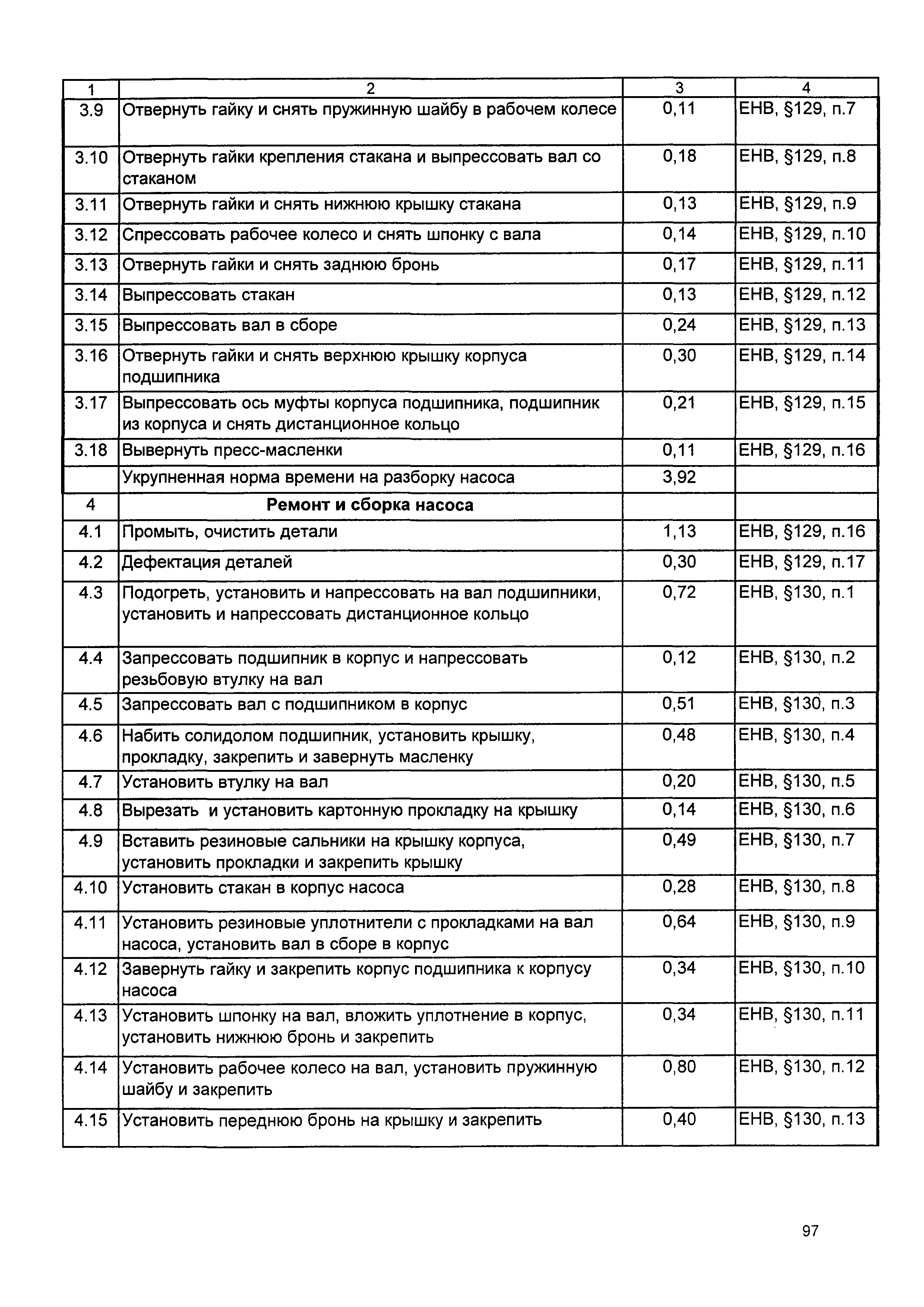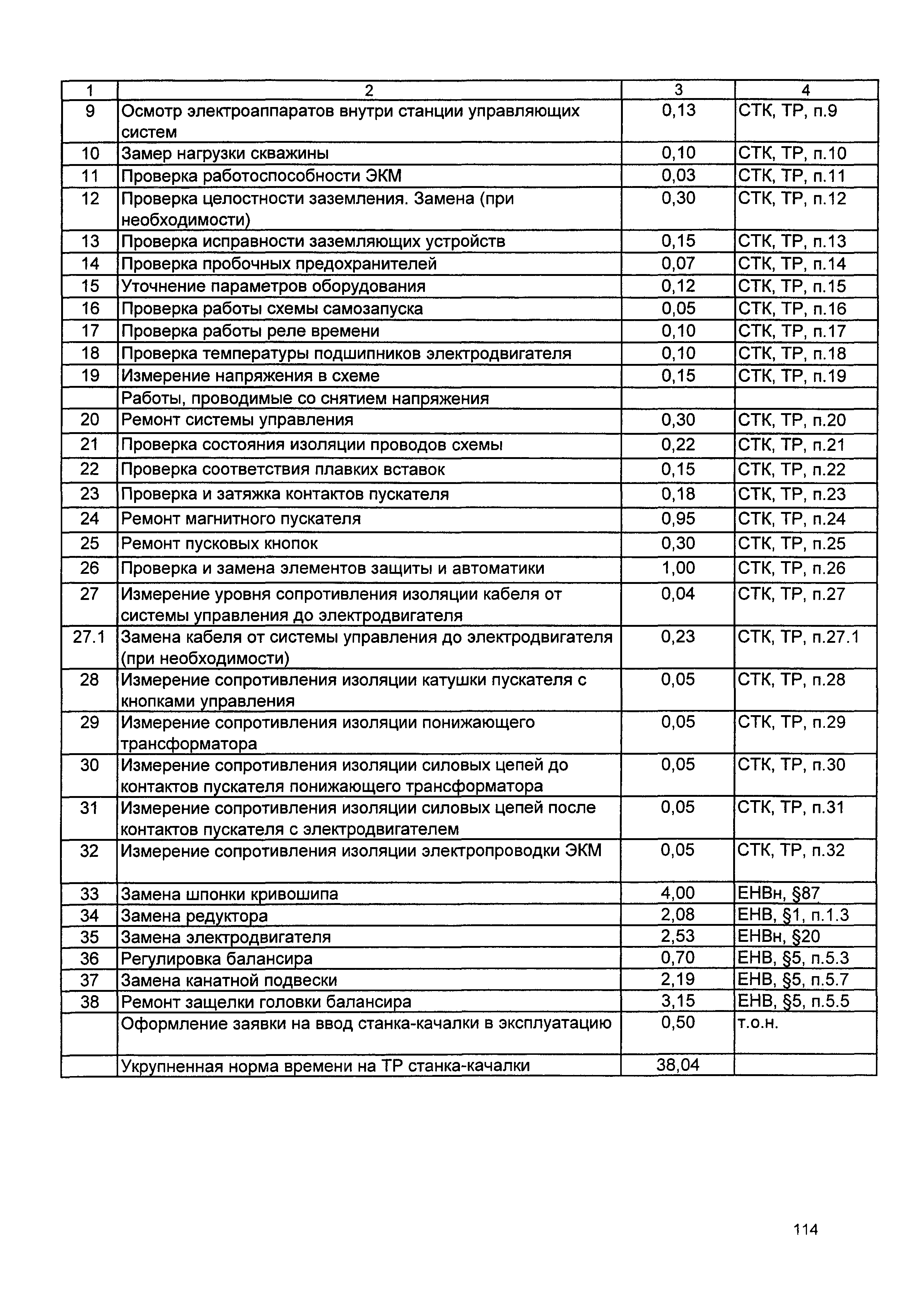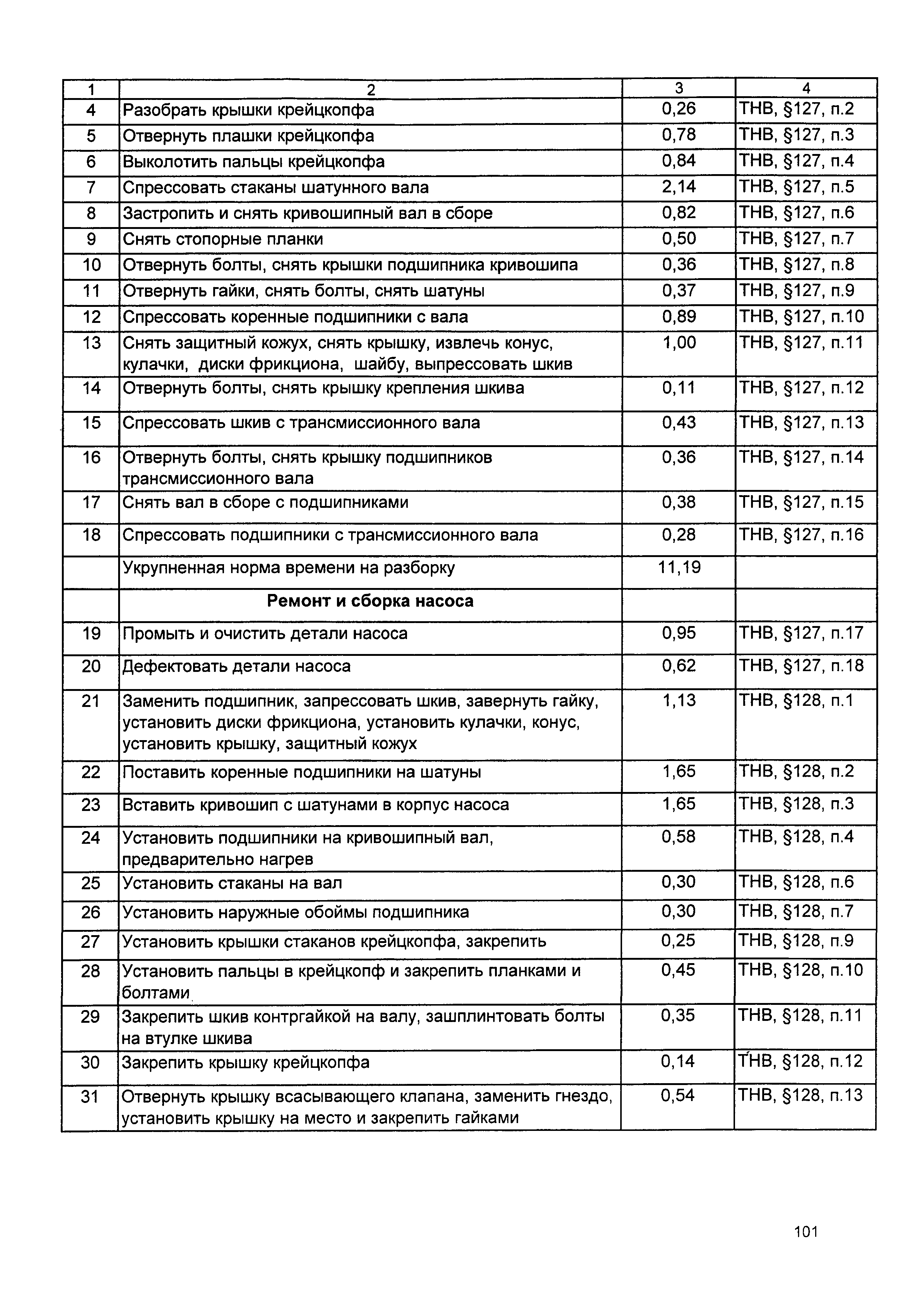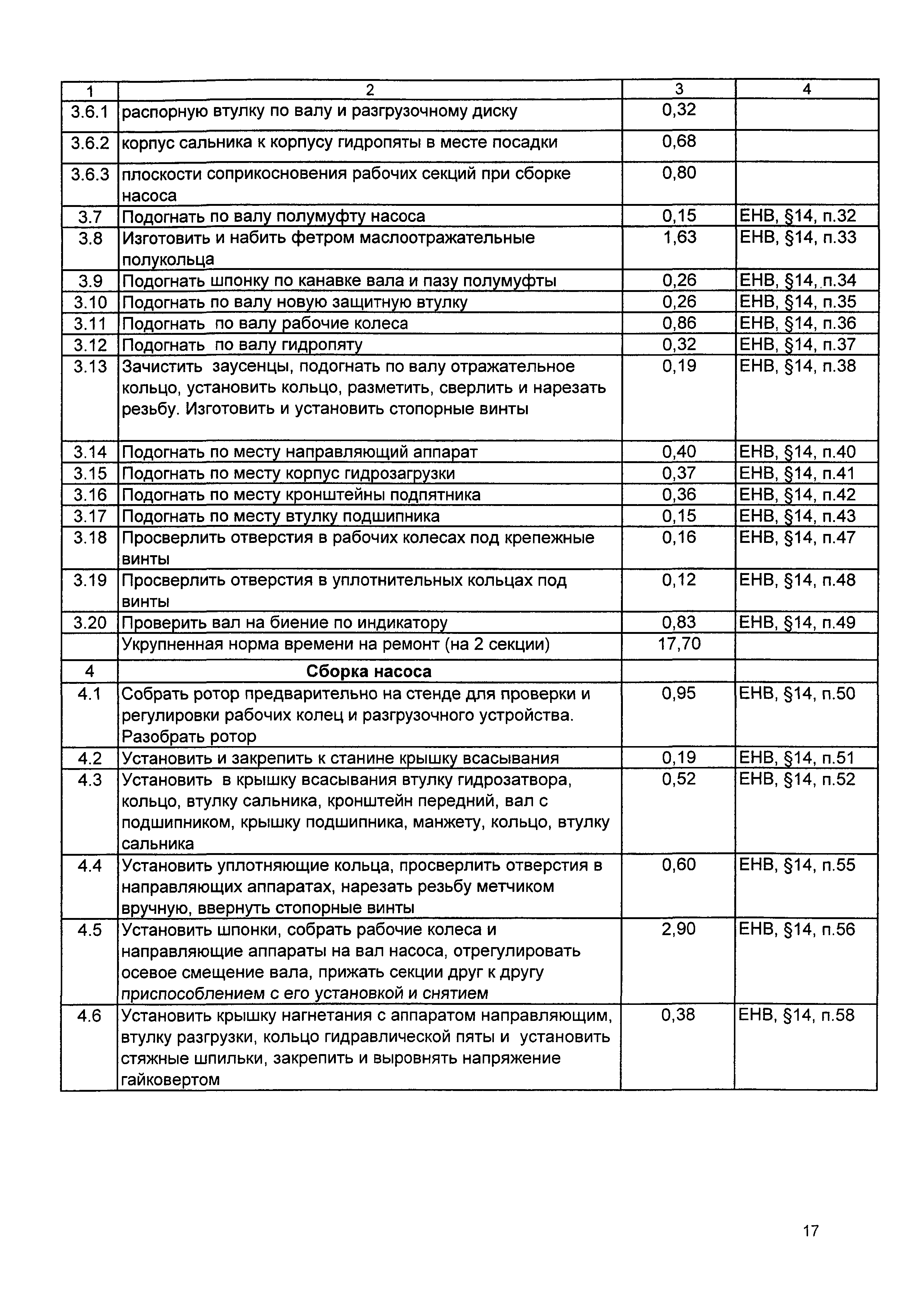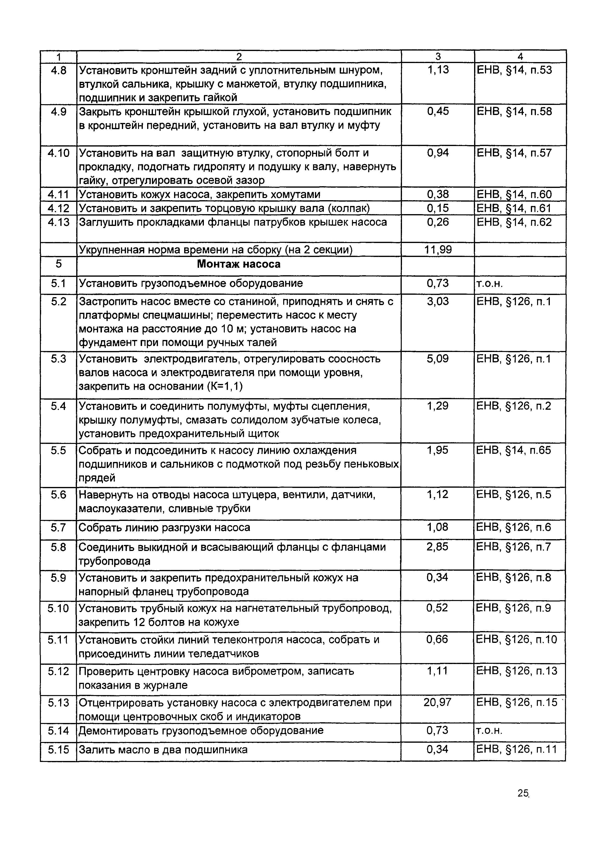 Сборник норм трудоемкости технического обслуживания и ремонтов насосов и станков-качалок. Часть 2| Статус: | действует | | Название рус.: | Сборник норм трудоемкости технического обслуживания и ремонтов насосов и станков-качалок. Часть 2 | | Дата добавления в базу: | 01.10.2014 | | Дата актуализации: | 01.01.2021 | | Область применения: | Сборник является нормативным документом по проведению технического обслуживания и ремонтов (ТО и Р) НПО и служит для: планирования ремонтных работ, определения их объема, составления сметной документации и организации подготовительных работ к ремонту; определения потребности в технических средствах (машинах, механизмах и т.д.) и материальных ресурсах, подбора ремонтного персонала и осуществления контроля за правильным расходованием средств на ремонтные работы. Сборник предназначен для работников структурных подразделений и производственных объектов, занятых планированием, организацией и проведением технического обслуживания и ремонтов (НПО). | | Оглавление: | Общие положения Насос ЦНС 38-44…220 Насос ЦНС 60-66…330 Насос ЦНС 105-98…490 Насосы ЦНС 180-1050. ЦНС 180-1422, ЦНС 180-1900 Насос ЦНС 300-120…600 Насос ЦН 900-310 Насос 12НА-9Х4 Насос 24А-18Х1-1 Насос АХП 45/31-А-СД-П Насос К20/30 Насос Ш5-25 Насос 6Ш8-2 Насос НБ-32 Насос НК 200/210А Станки-качалки СКД8-3-4000, СК8-3,5-4000, 7СК8-3,5-4000 Редукторы Ц2НШ-750А, Ц2НШ-750Б, R-35 ("Вулкан") | | Разработан: | ООО СПКТБ НЕФТЕГАЗМАШ