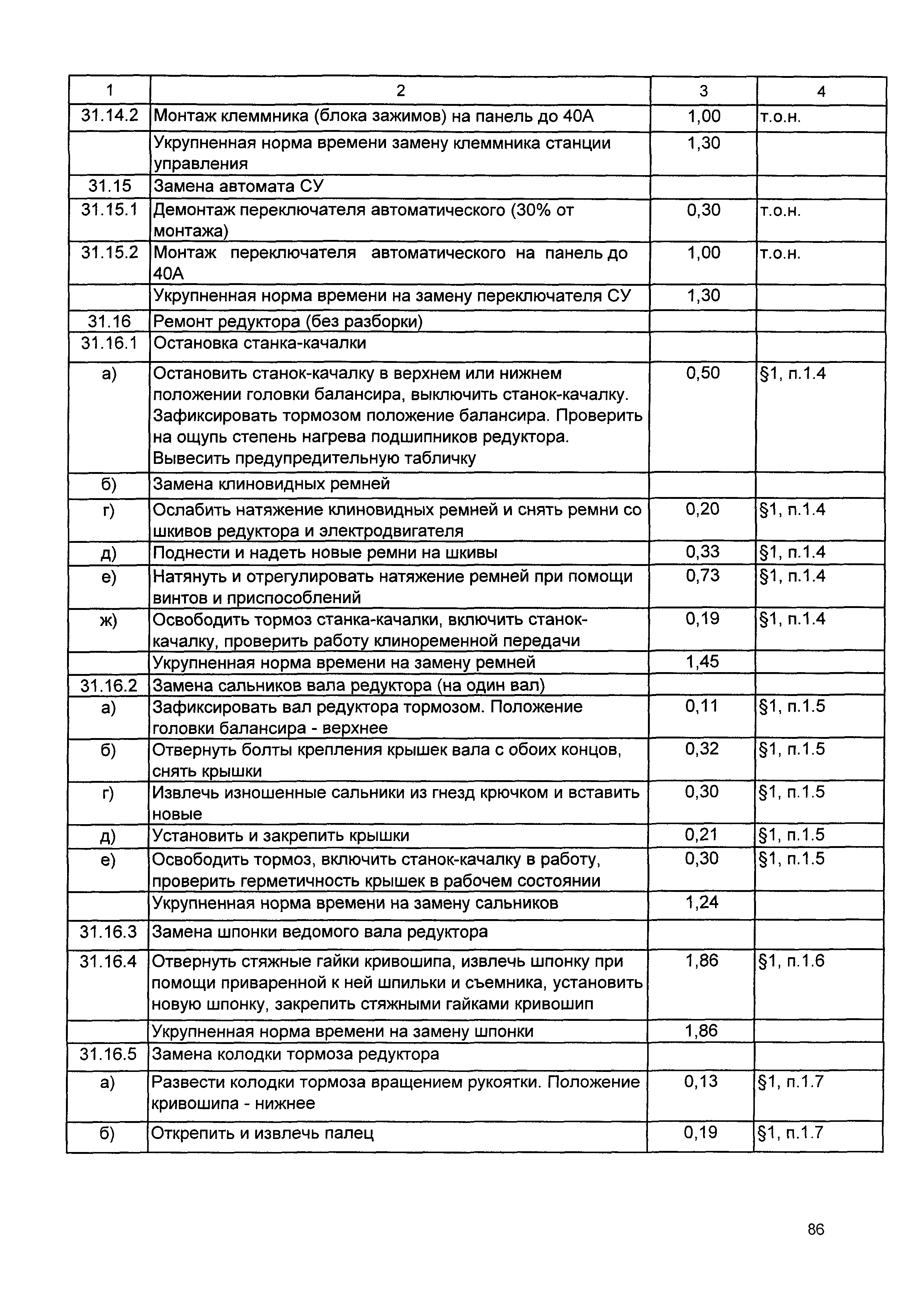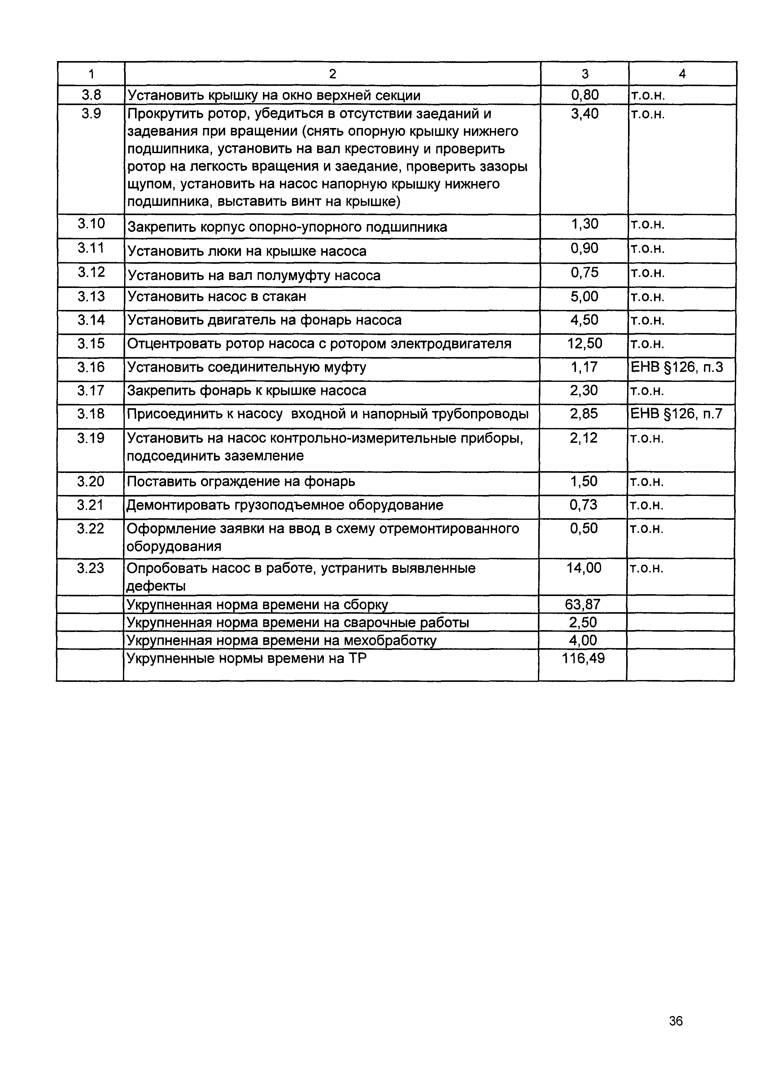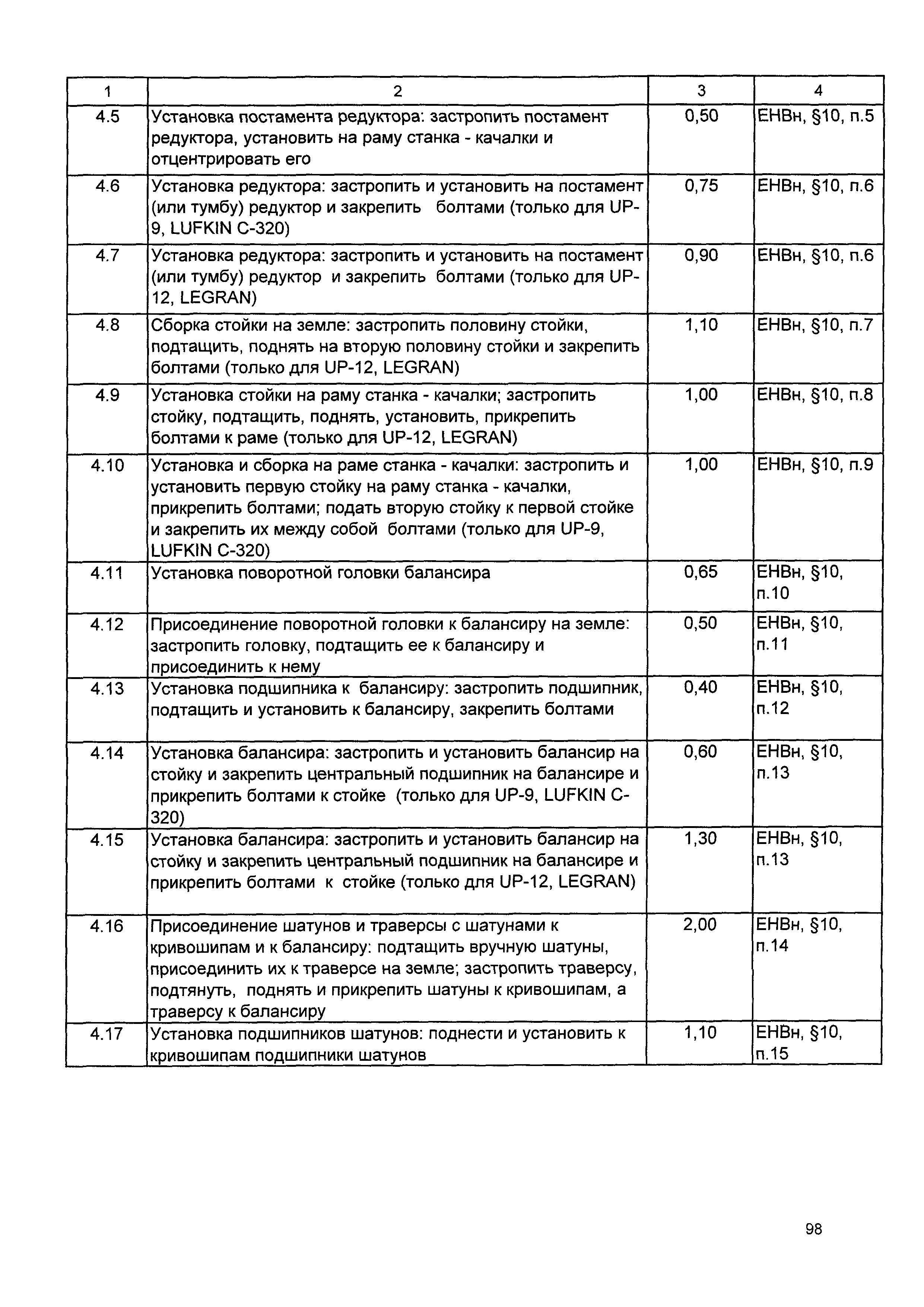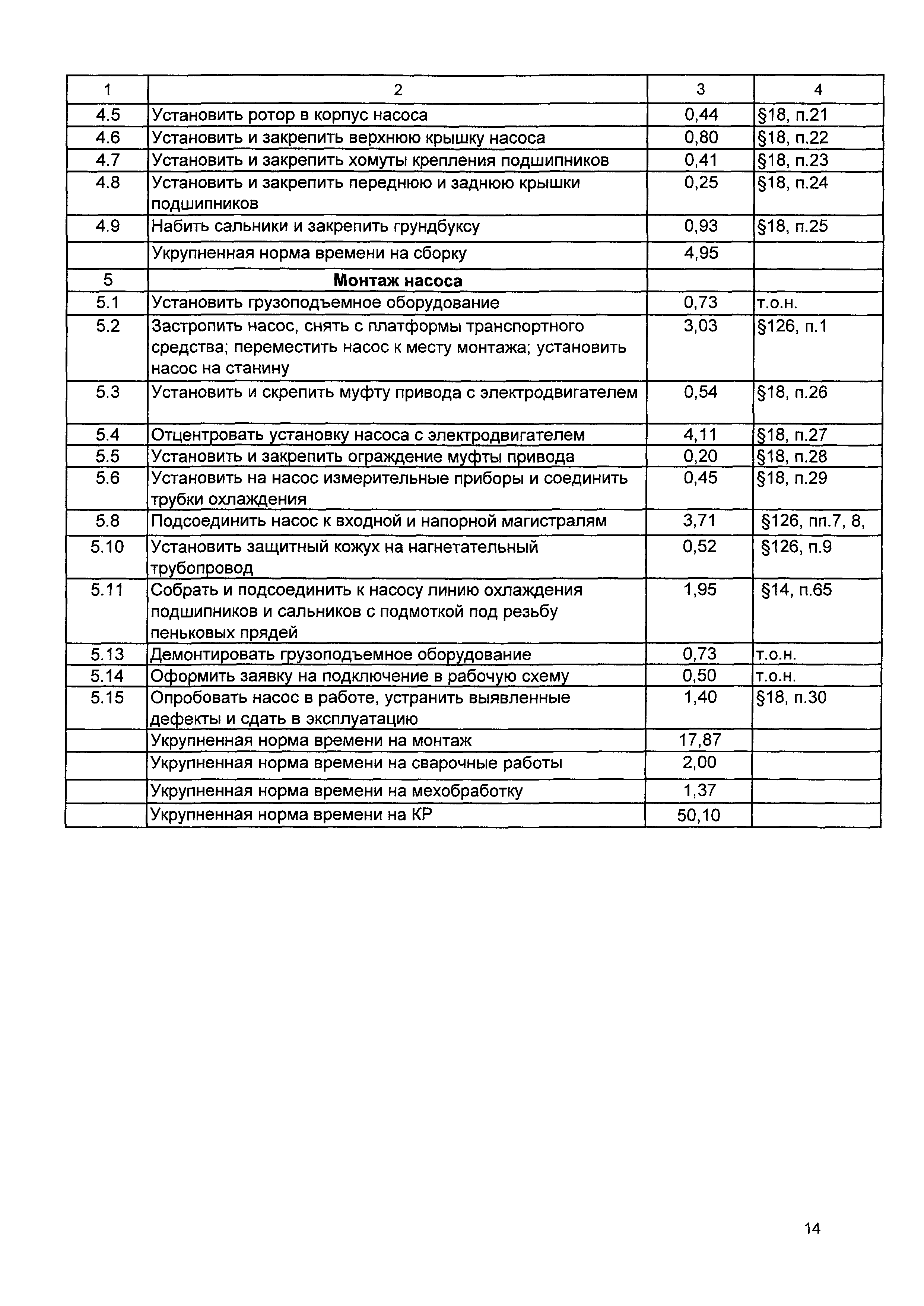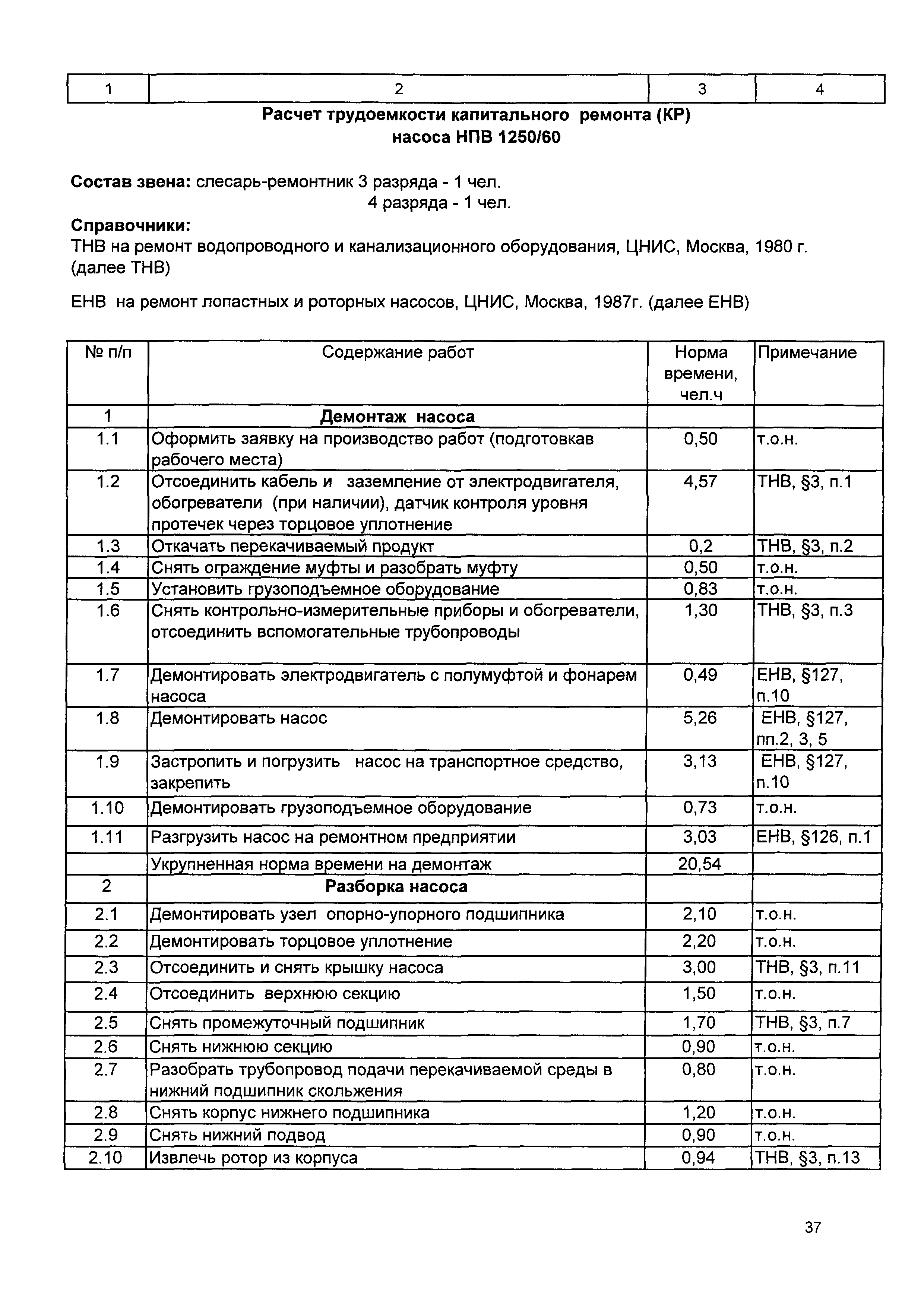 Нормы времени разработаны с учетом ранее действующих единых норм времени (ЕНВ), единого тарифно-квалификационного справочника по нефтяной промышленности и разработанных технологических карт технического обслуживания и ремонтов НПО. | | Оглавление: | Общие положения Насосы К8/18, К50/30 Насосы 1Д315-71, 1Д630-90…125, 1Д250-90…125 Насос НВ 50/50-СД Насосы Н8-25, НМШ5-25, НМШ8-25 Насос НС 160-45 Насос НПВ 1250/60 Насос ЦНС 240-1900 ЗТМ Насосы К80-50-200. К65-50-60, К100-65-200, К100-80-160-С-УХЛ Насос ЦНС 850 Насосы КМН 100-80-160, КМН 80-65-175 Насосы Х80-65-175, АХ65-45-200 Насос НК 210/200 Станки-качалки UP-9T, UP-12T ("VULCAN"), "LEGRAN", C-320 ("LUFKIN") | | Разработан: | ООО СПКТБ НЕФТЕГАЗМАШ