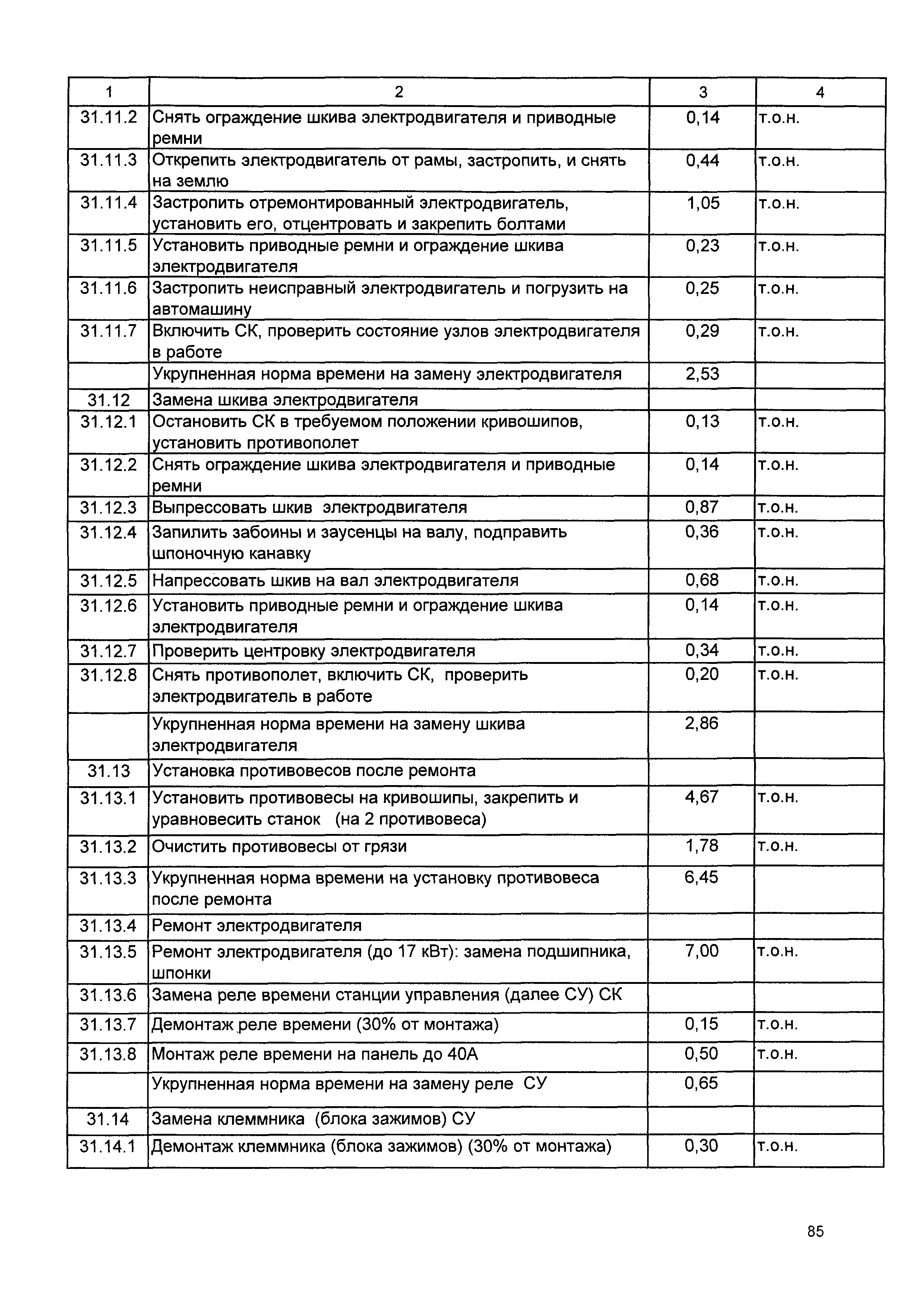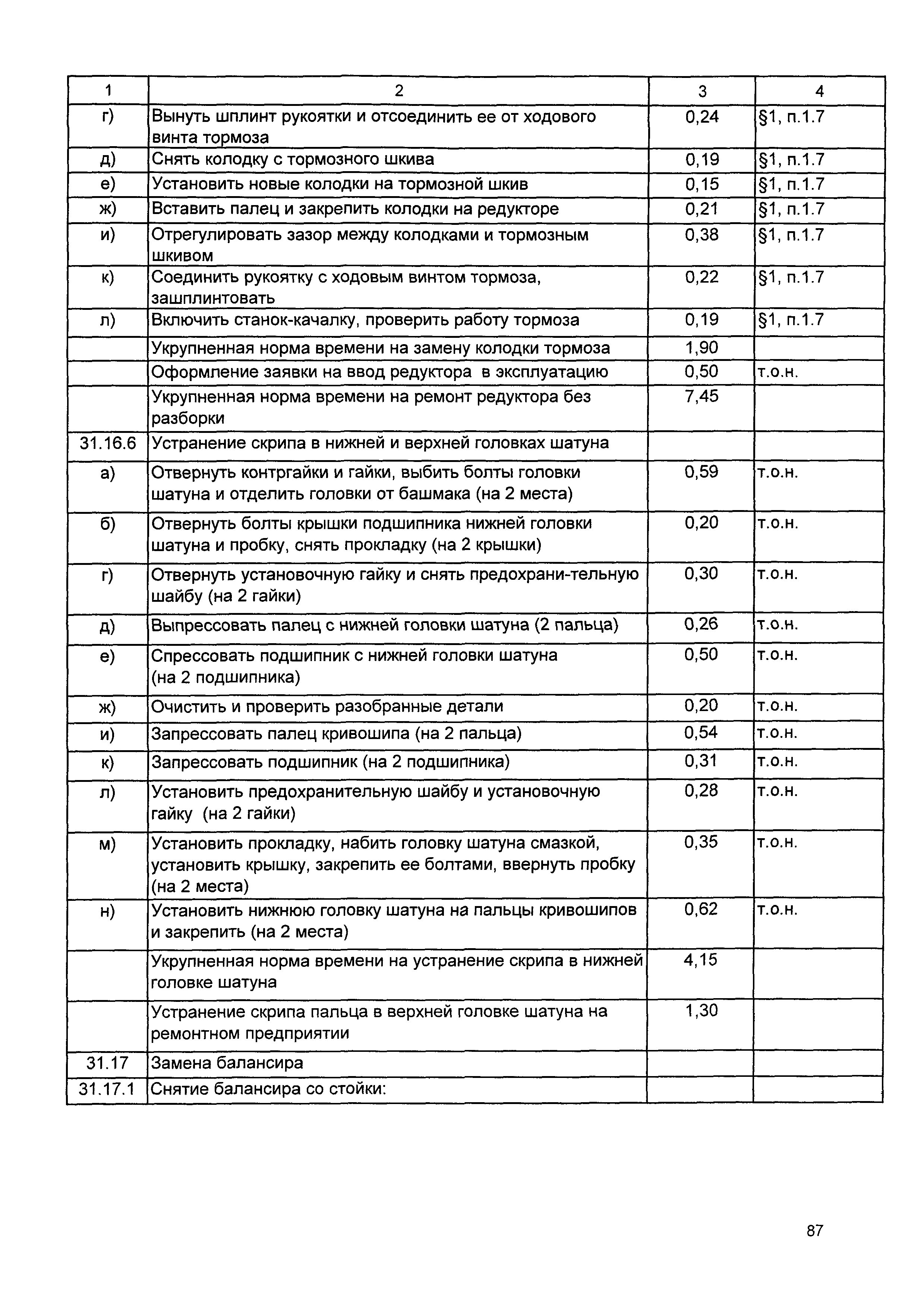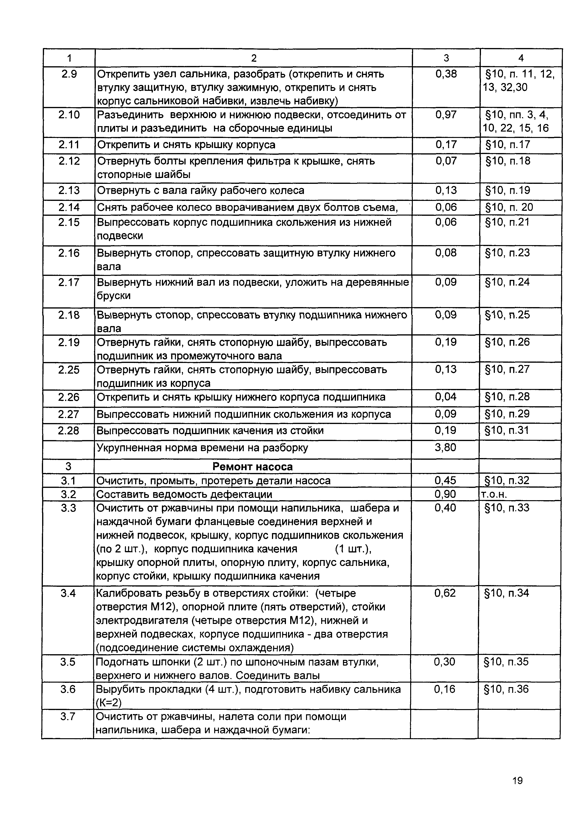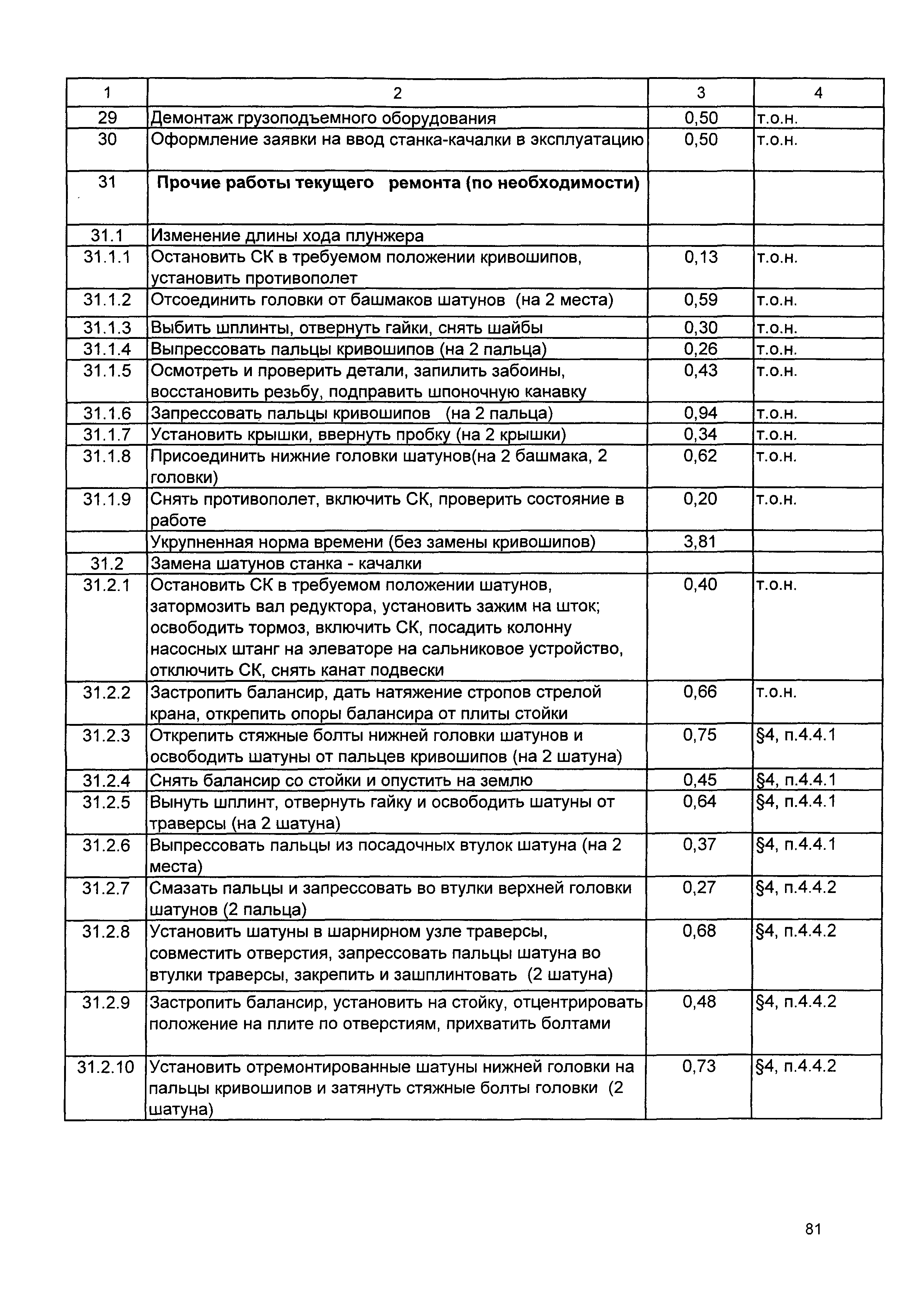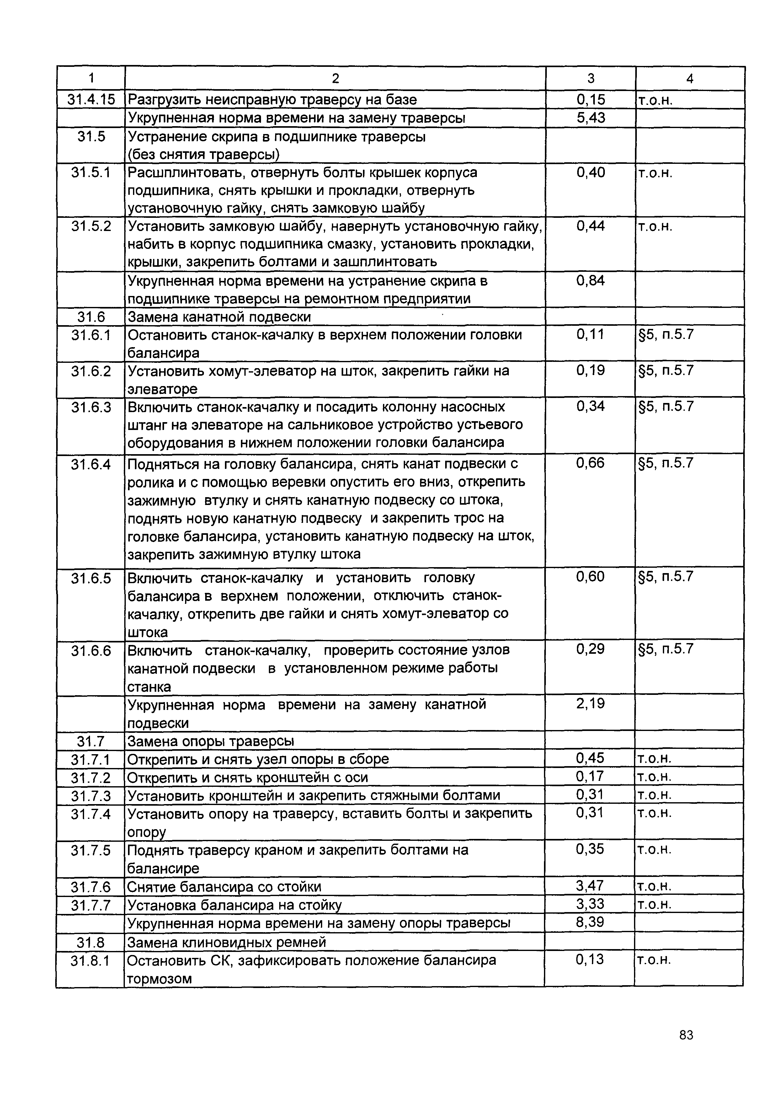 Нормы времени разработаны с учетом ранее действующих единых норм времени (ЕНВ), единого тарифно-квалификационного справочника по нефтяной промышленности и разработанных технологических карт технического обслуживания и ремонтов НПО. | | Оглавление: | Общие положения Насосы К8/18, К50/30 Насосы 1Д315-71, 1Д630-90…125, 1Д250-90…125 Насос НВ 50/50-СД Насосы Н8-25, НМШ5-25, НМШ8-25 Насос НС 160-45 Насос НПВ 1250/60 Насос ЦНС 240-1900 ЗТМ Насосы К80-50-200. К65-50-60, К100-65-200, К100-80-160-С-УХЛ Насос ЦНС 850 Насосы КМН 100-80-160, КМН 80-65-175 Насосы Х80-65-175, АХ65-45-200 Насос НК 210/200 Станки-качалки UP-9T, UP-12T ("VULCAN"), "LEGRAN", C-320 ("LUFKIN") | | Разработан: | ООО СПКТБ НЕФТЕГАЗМАШ