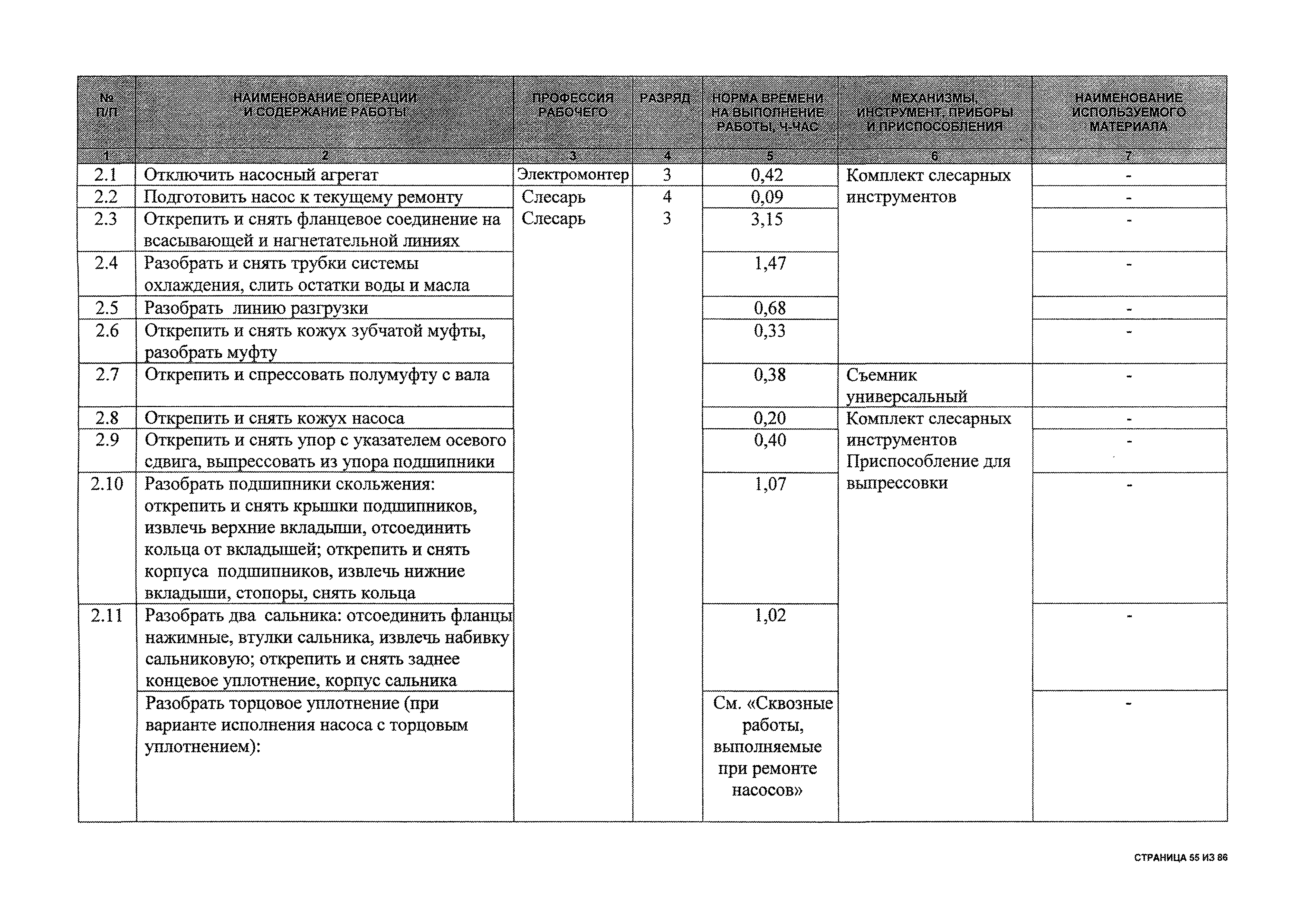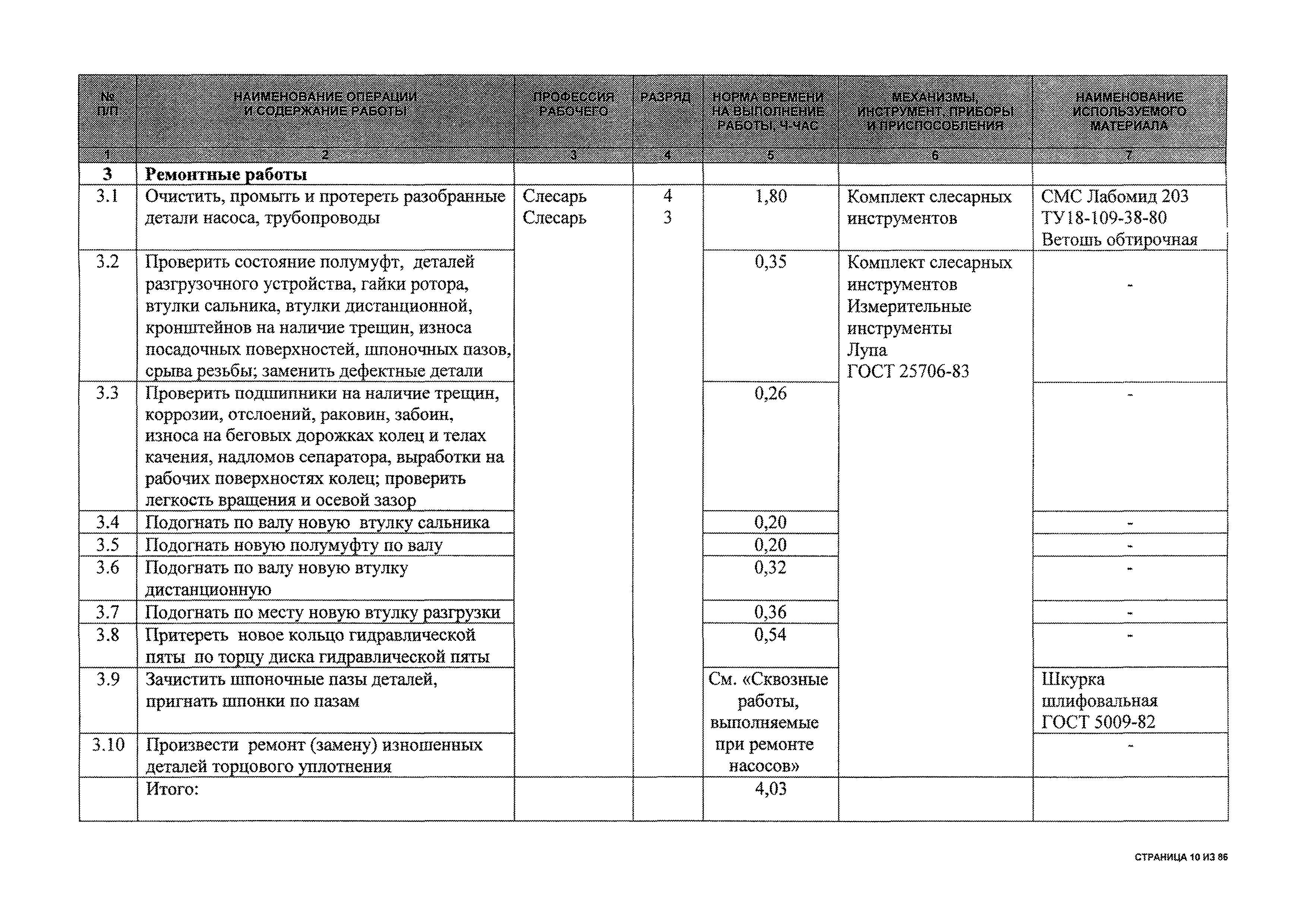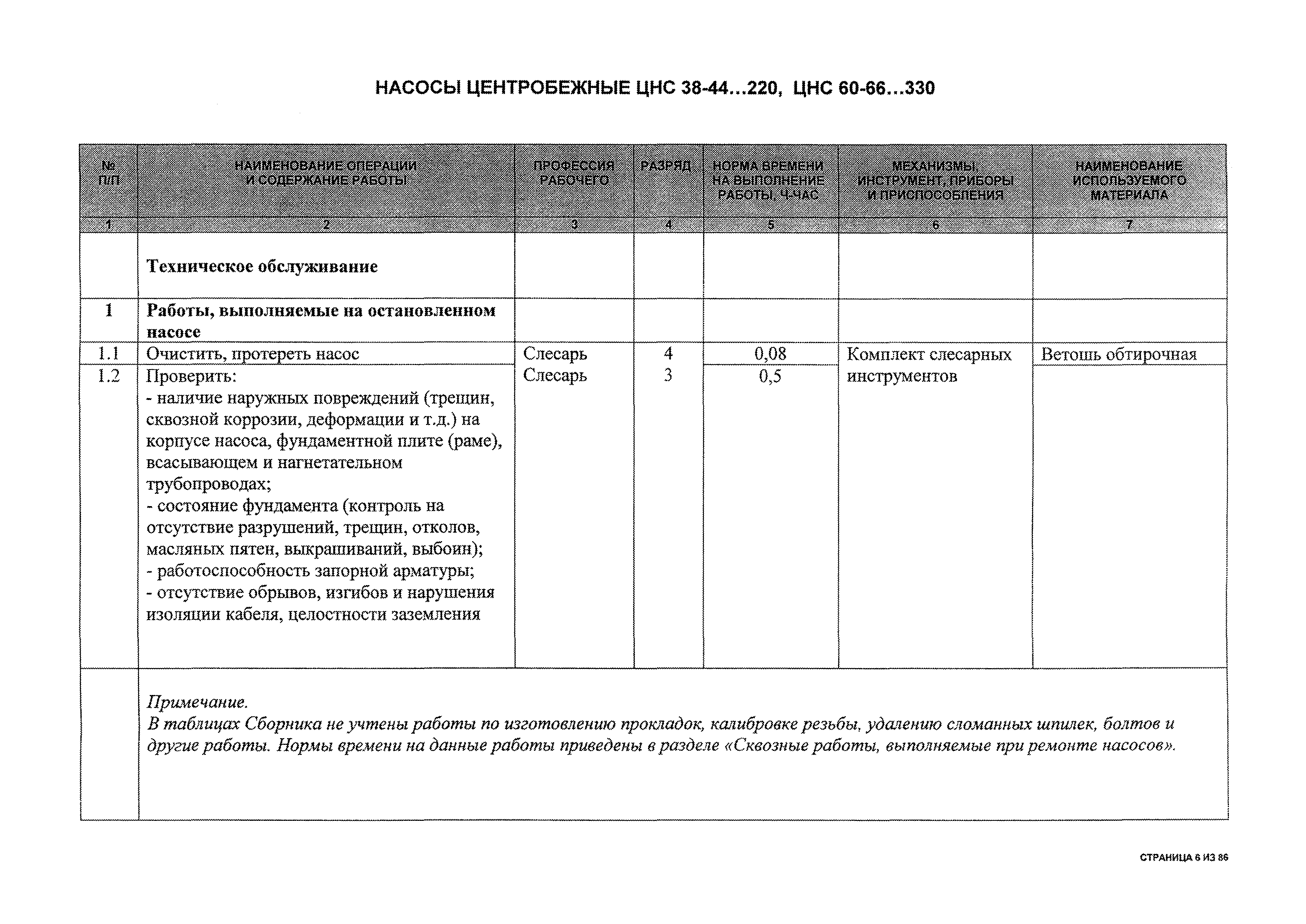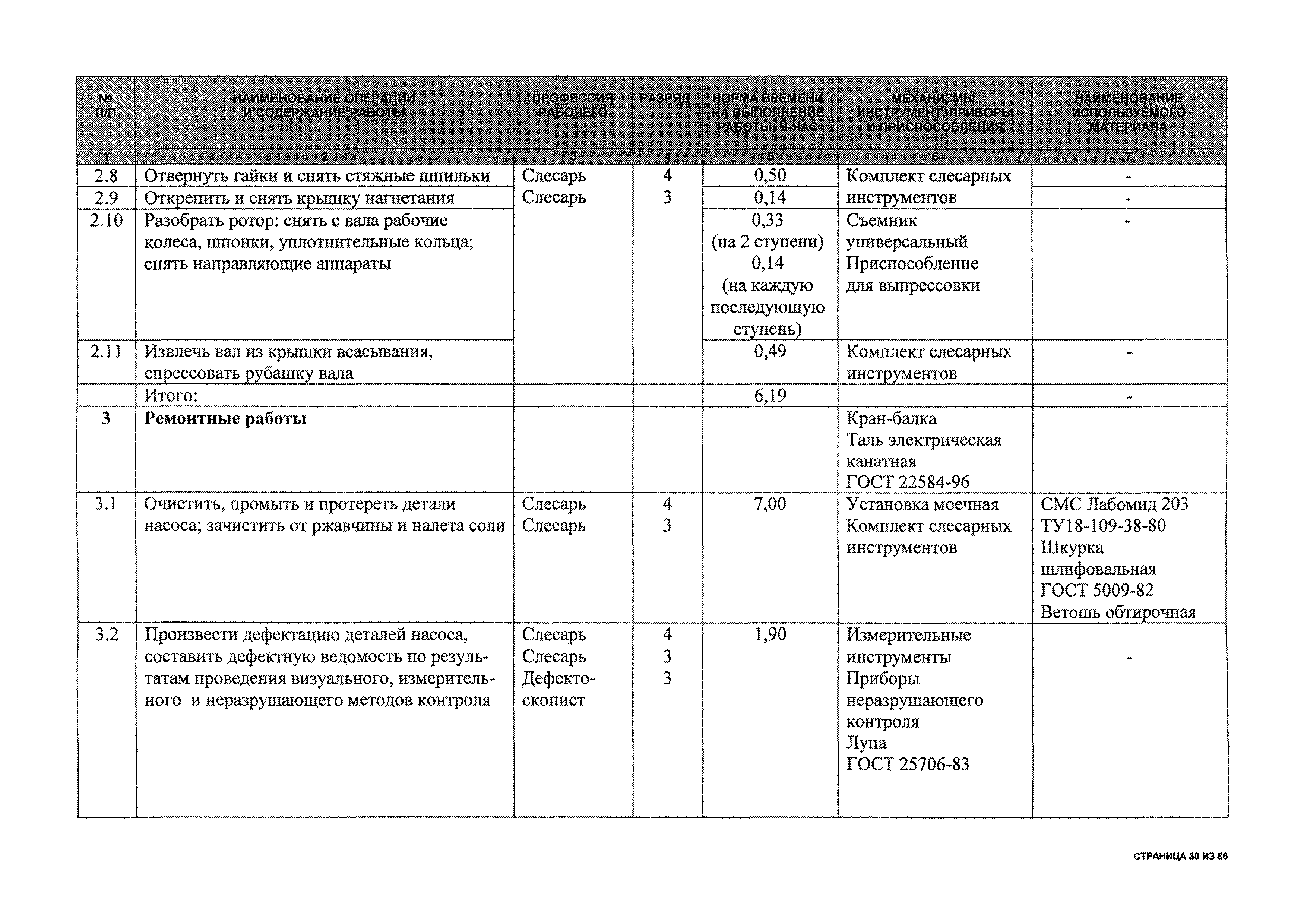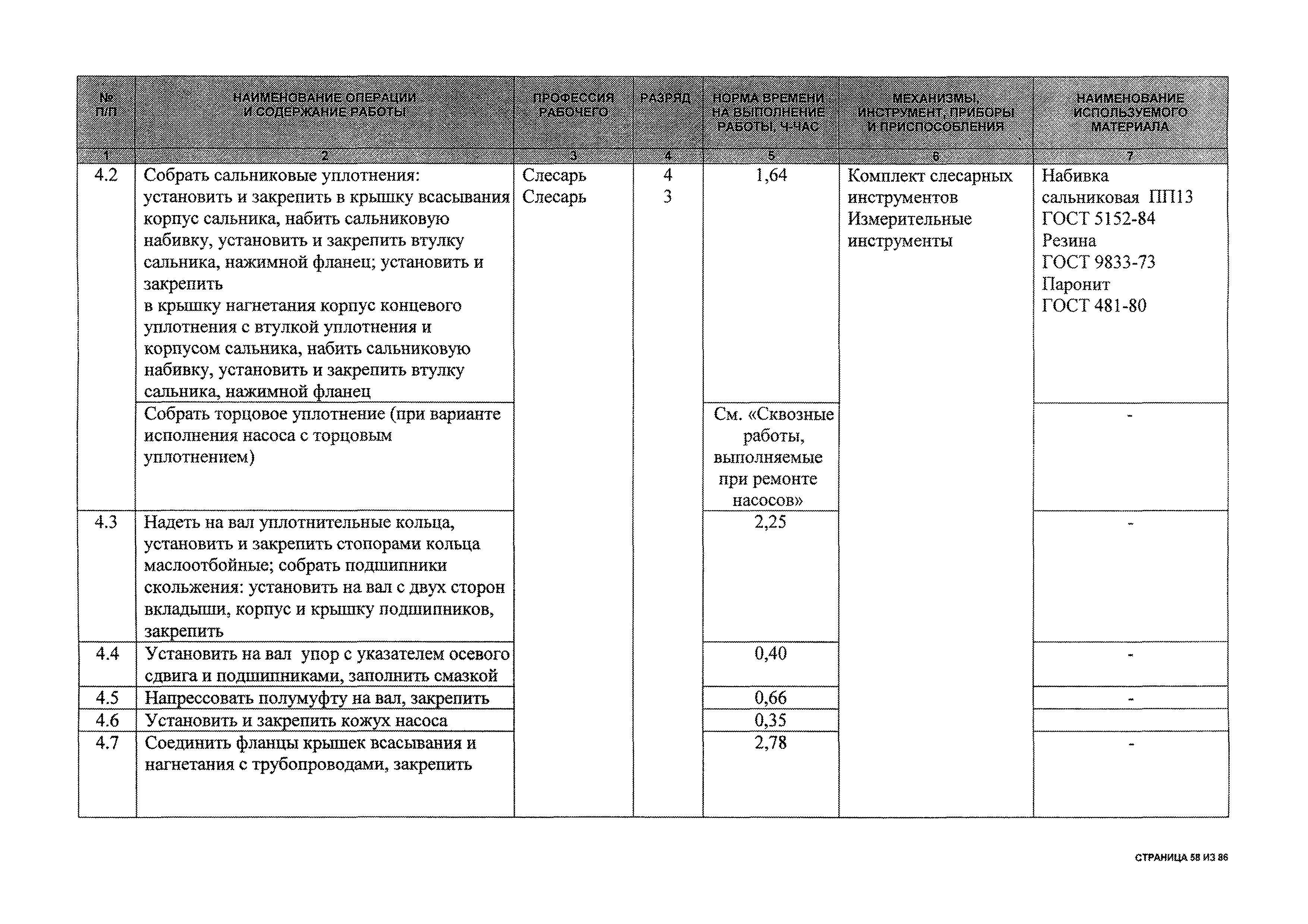 | Оглавление: | 1 Общая часть 2 Карты технического обслуживания, текущего и капитального ремонтов центробежных насосов: ЦНС 38-44…220, ЦНС 60-66…330 ЦНС105-98…490, ЦНС 180-85…425 ЦНС 300-120…600 ЦНС 180-1050 (1422) 3 Сквозные работы, выполняемые при ремонте насосов 3.1 Вырубка смазочных канавок крейцмейселем 3.2 Нарезание резьбы на стержнях плашкой 3.3 Калибровка резьбы на стержнях плашкой 3.4 Нарезание резьбы в сквозных отверстиях вручную 3.5 Калибровка резьбы в сквозных отверстиях вручную 3.6 Вырубка прямоугольных, фасонных и круглых прокладок 3.7 Пробивка отверстий в прокладках 3.8 Удаление сломанных шпилек, болтов 3.9 Шабрение разъема корпуса насоса 3.10 Подгонка и установка призматических шпонок 3.11 Заливка вкладышей баббитом 3.12 Шабрение бронзовых втулок 3.13 Шабрение бронзовых вкладышей 3.14 Ремонт торцовых уплотнений 3.15 Правка вала 3.16 Балансировка рабочих колес 3.17 Восстановление деталей насоса наплавкой электродами диаметром 4 мм 3.18 Покраска насоса после ремонта |