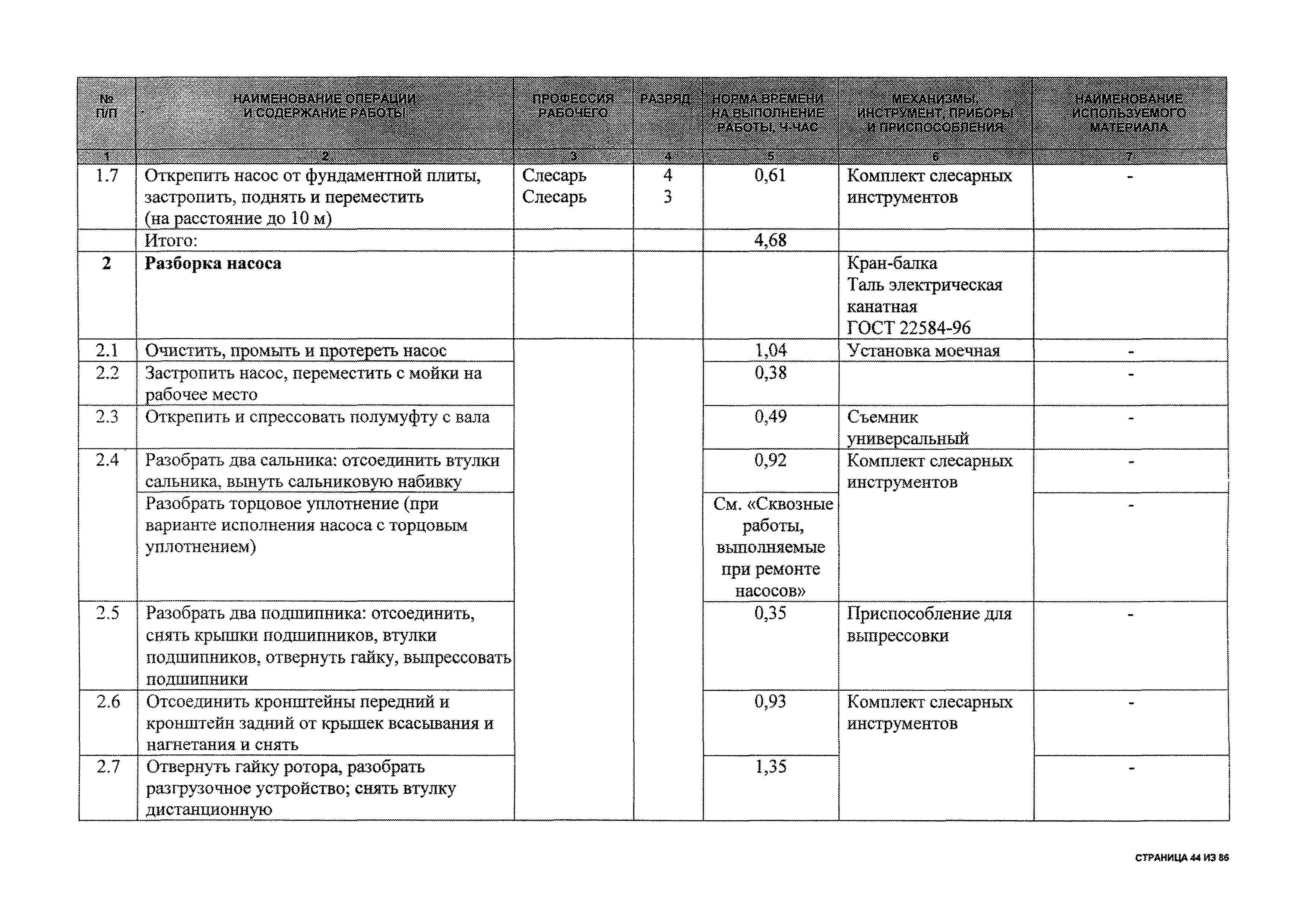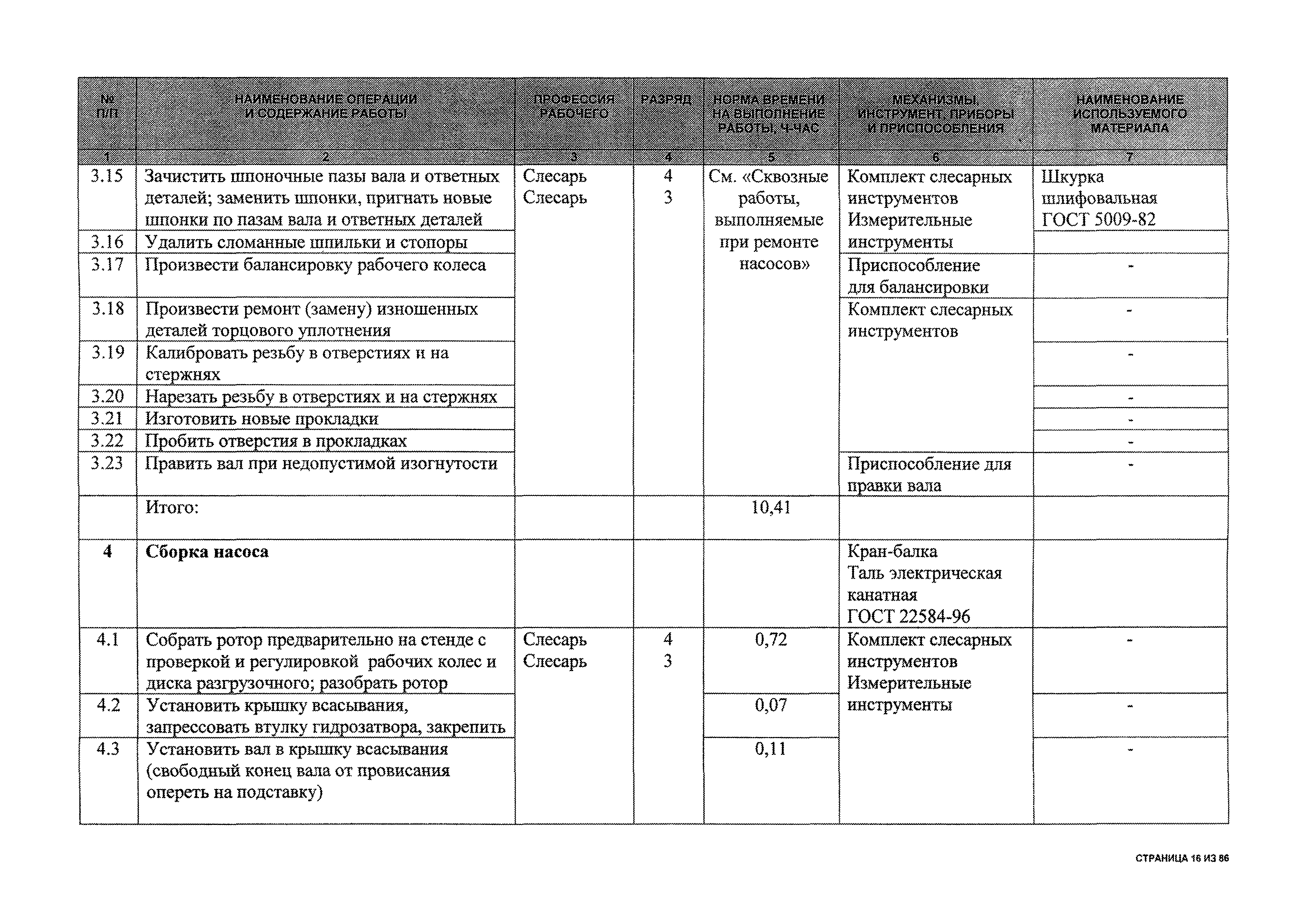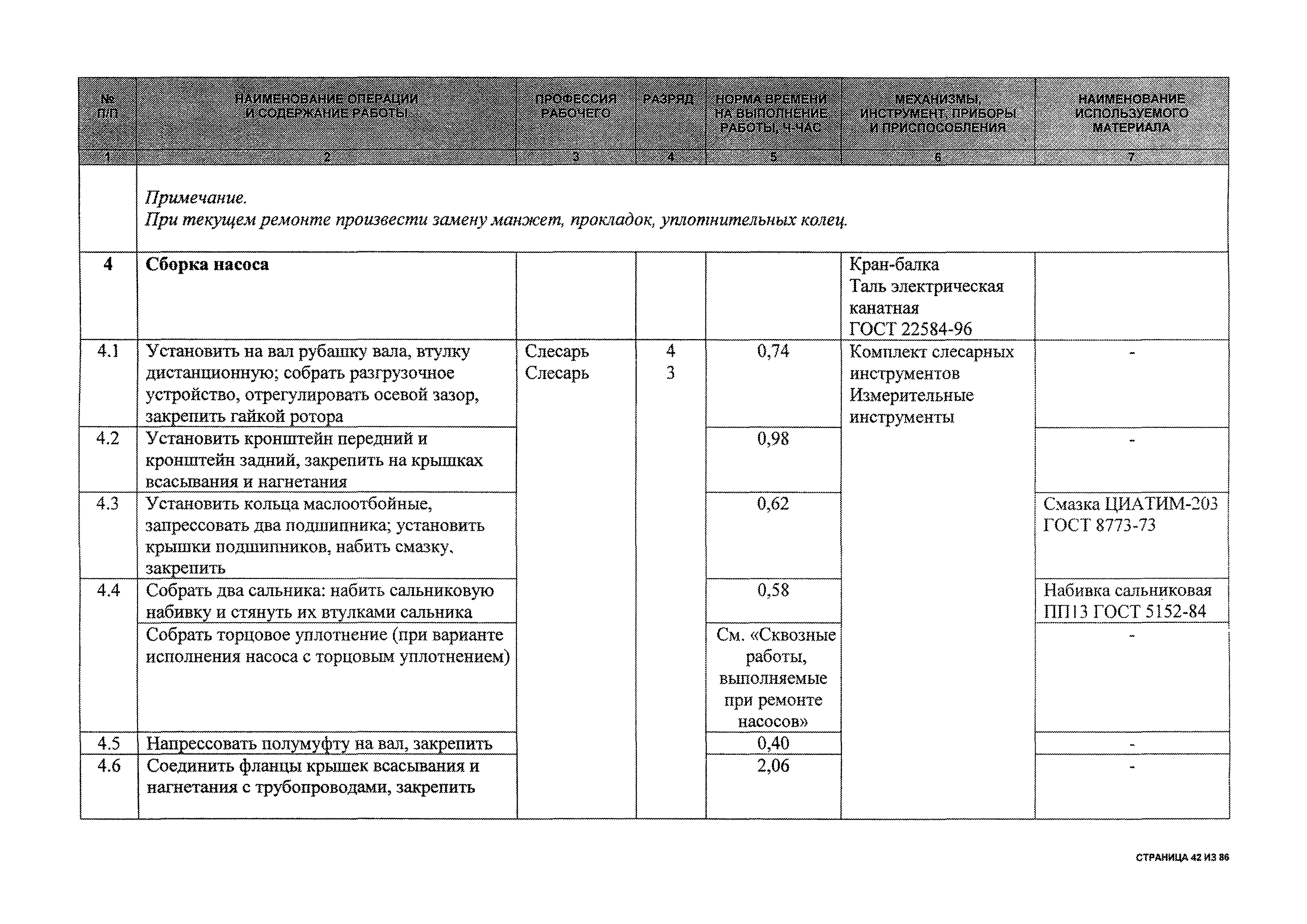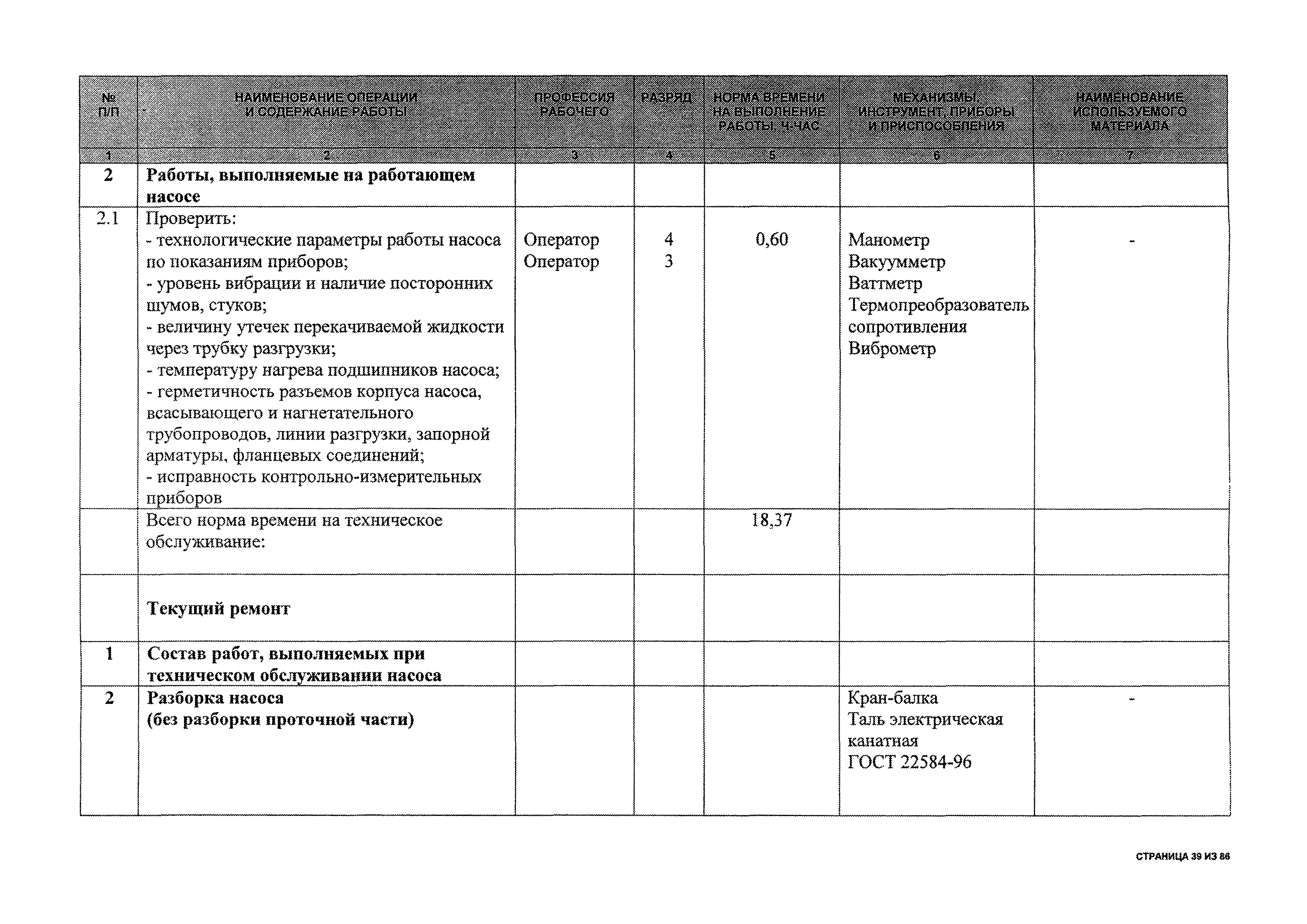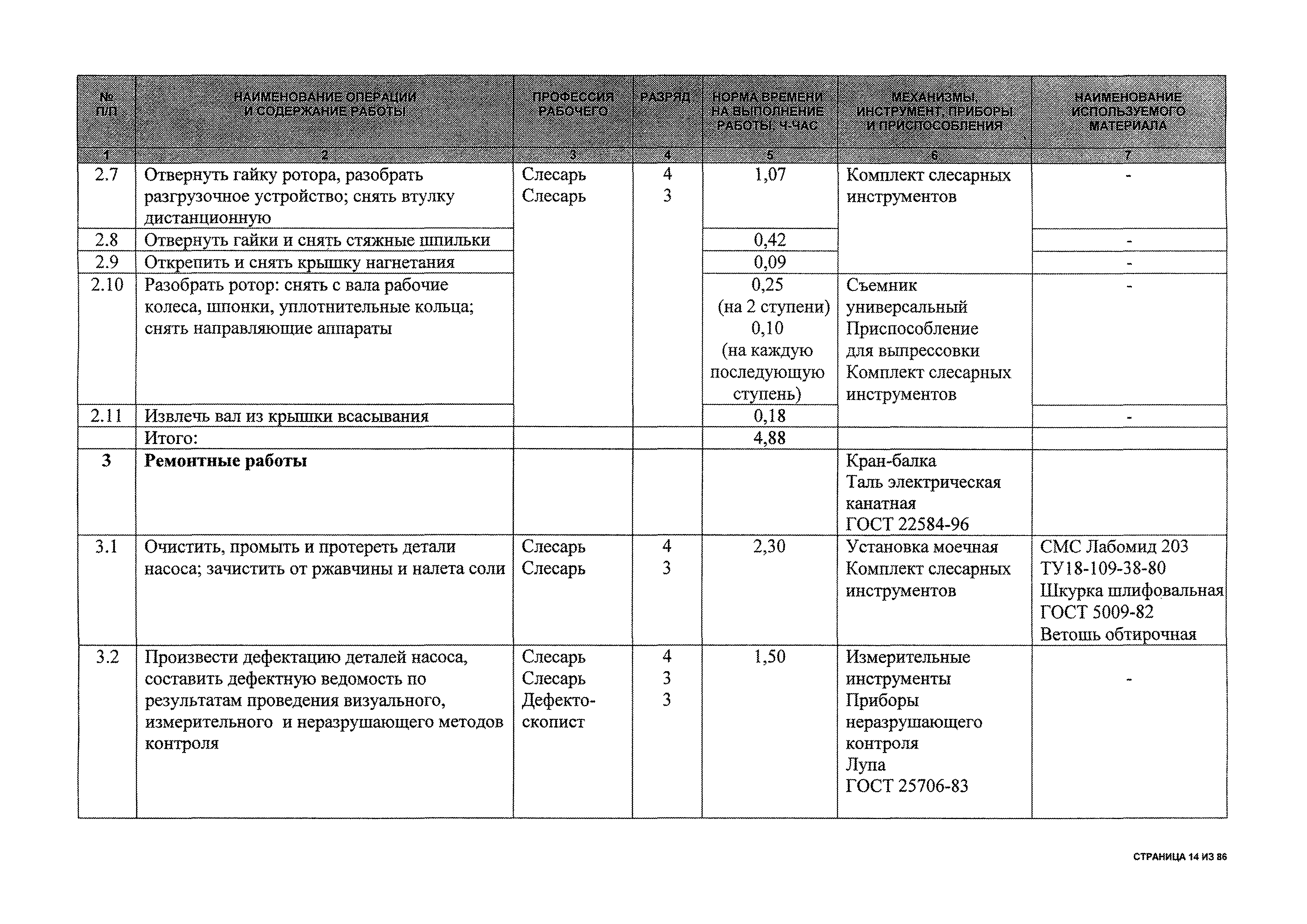 | Оглавление: | 1 Общая часть 2 Карты технического обслуживания, текущего и капитального ремонтов центробежных насосов: ЦНС 38-44…220, ЦНС 60-66…330 ЦНС105-98…490, ЦНС 180-85…425 ЦНС 300-120…600 ЦНС 180-1050 (1422) 3 Сквозные работы, выполняемые при ремонте насосов 3.1 Вырубка смазочных канавок крейцмейселем 3.2 Нарезание резьбы на стержнях плашкой 3.3 Калибровка резьбы на стержнях плашкой 3.4 Нарезание резьбы в сквозных отверстиях вручную 3.5 Калибровка резьбы в сквозных отверстиях вручную 3.6 Вырубка прямоугольных, фасонных и круглых прокладок 3.7 Пробивка отверстий в прокладках 3.8 Удаление сломанных шпилек, болтов 3.9 Шабрение разъема корпуса насоса 3.10 Подгонка и установка призматических шпонок 3.11 Заливка вкладышей баббитом 3.12 Шабрение бронзовых втулок 3.13 Шабрение бронзовых вкладышей 3.14 Ремонт торцовых уплотнений 3.15 Правка вала 3.16 Балансировка рабочих колес 3.17 Восстановление деталей насоса наплавкой электродами диаметром 4 мм 3.18 Покраска насоса после ремонта |