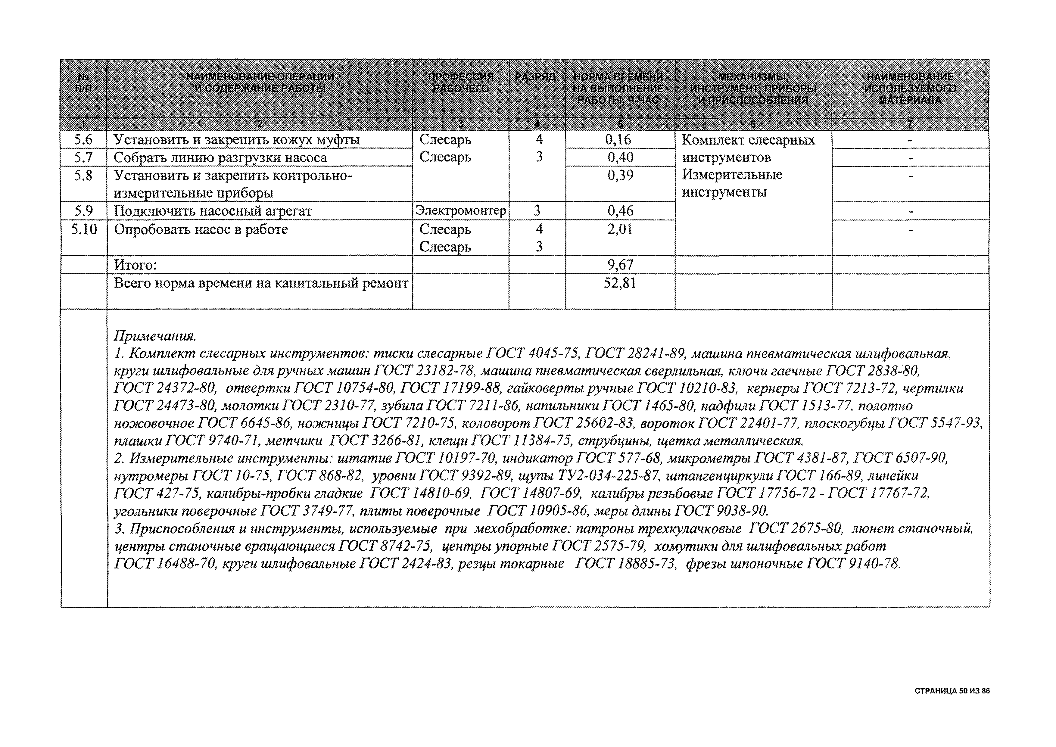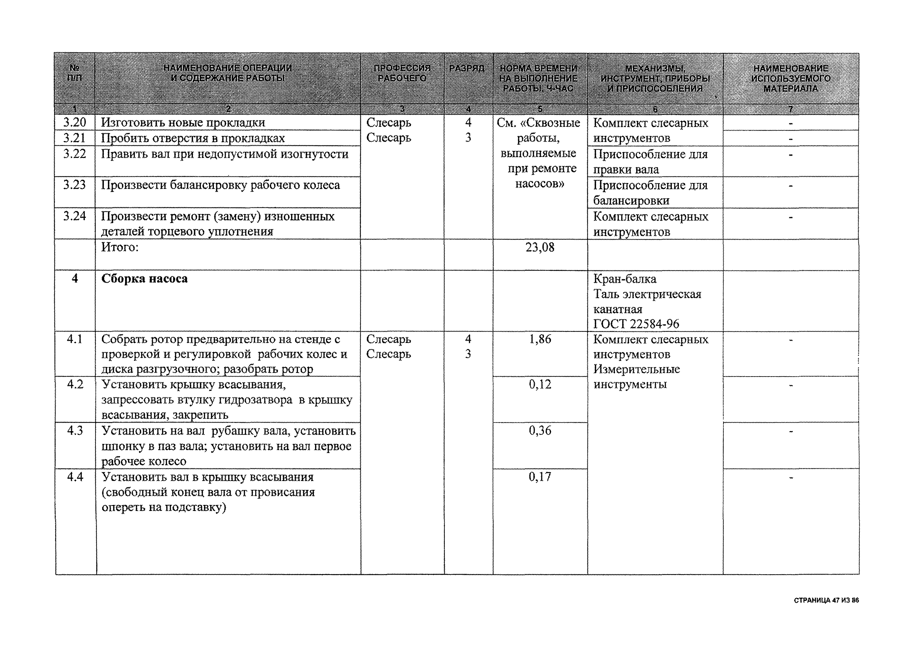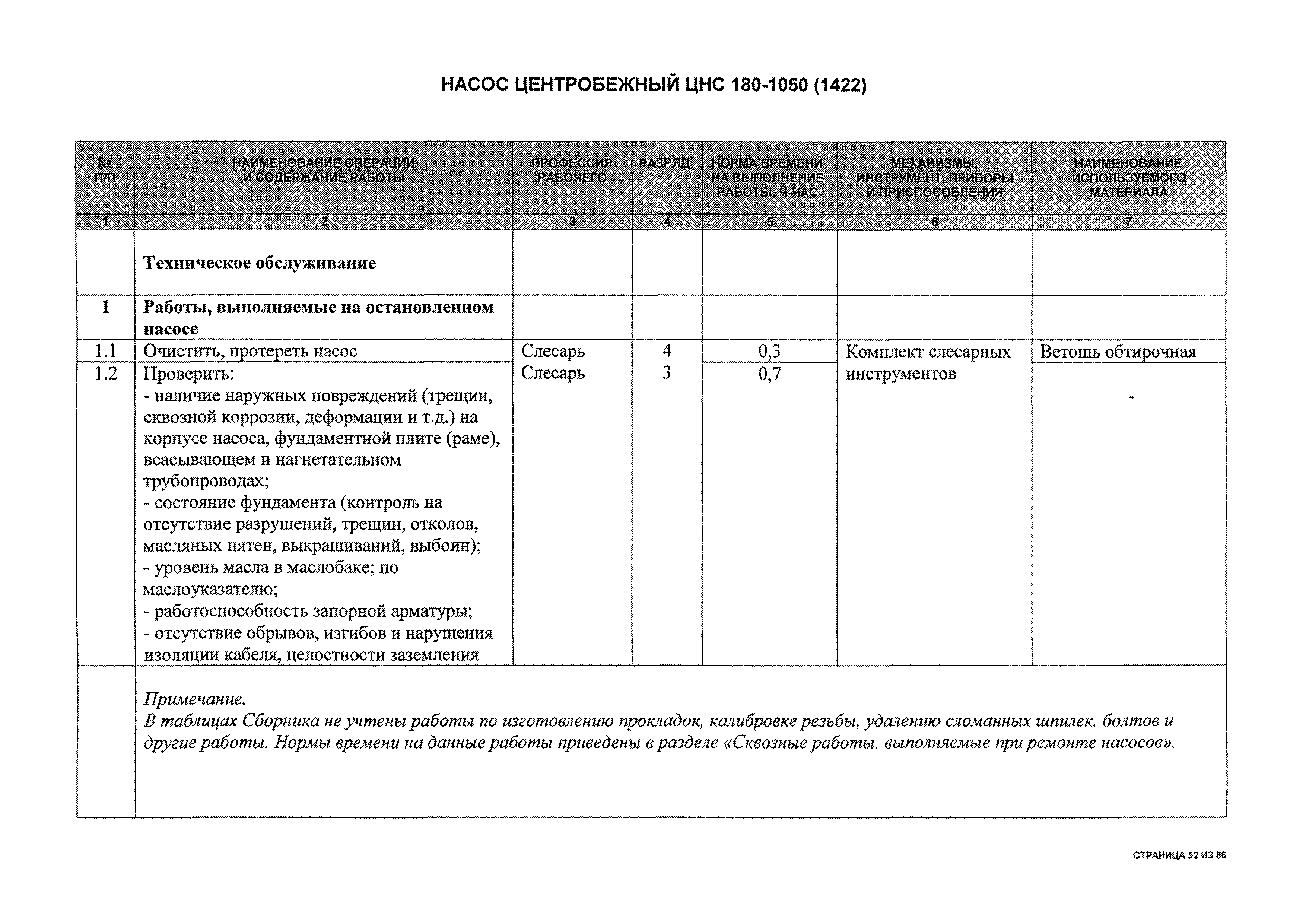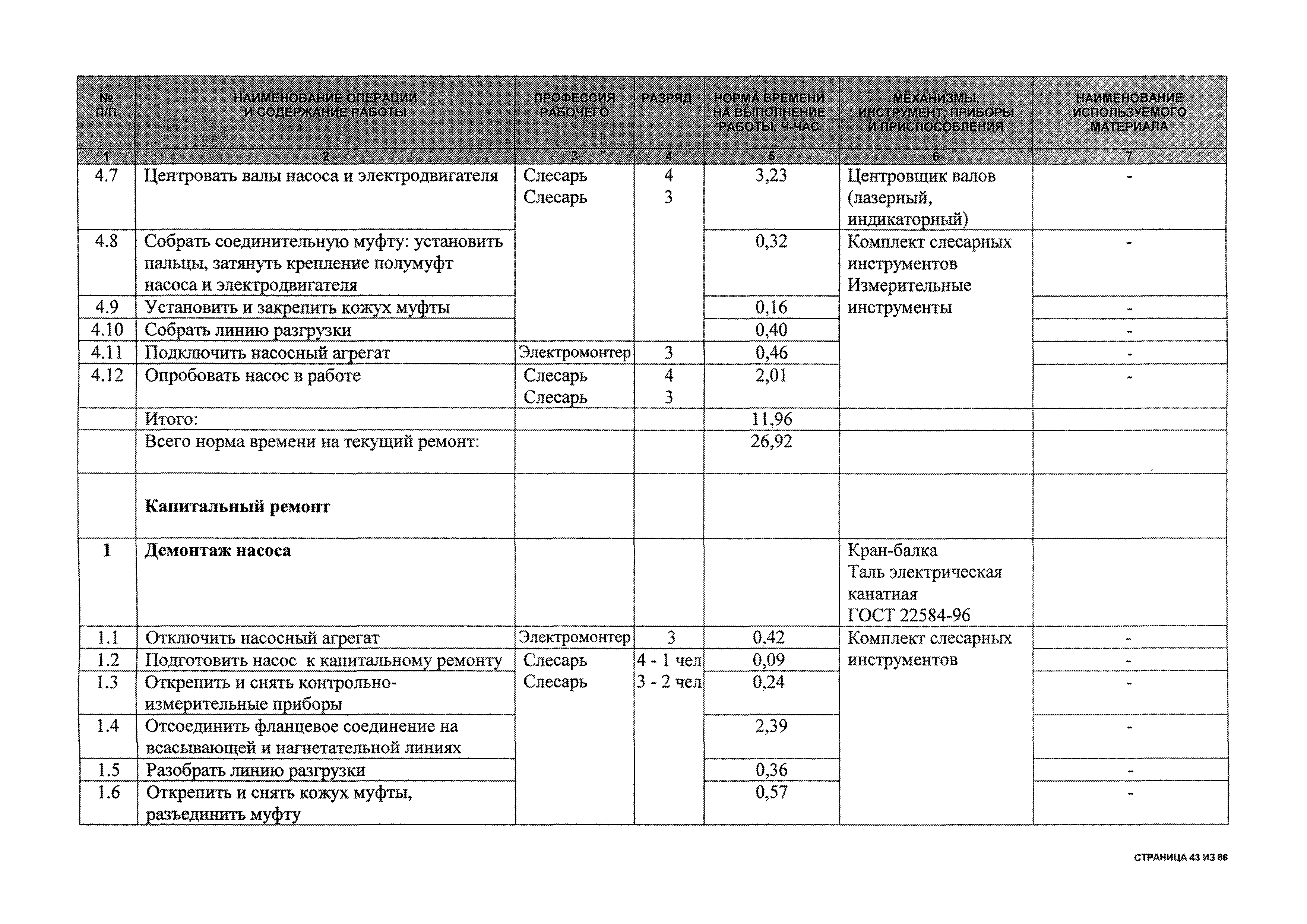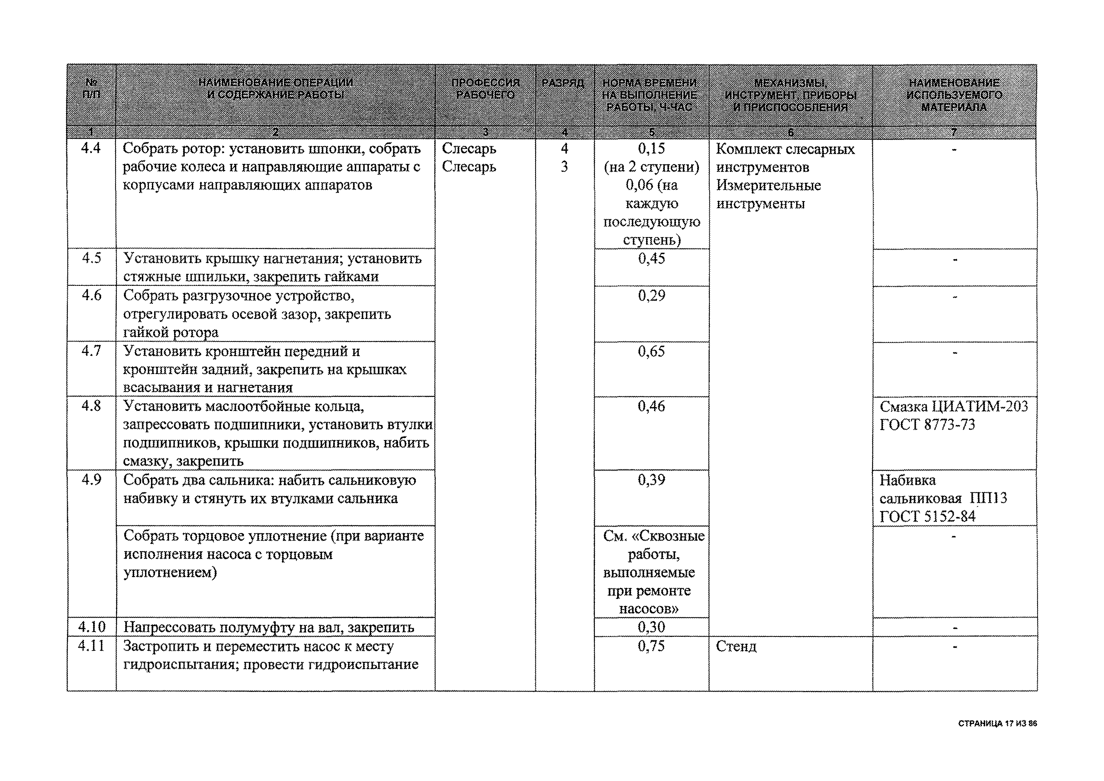 | Оглавление: | 1 Общая часть 2 Карты технического обслуживания, текущего и капитального ремонтов центробежных насосов: ЦНС 38-44…220, ЦНС 60-66…330 ЦНС105-98…490, ЦНС 180-85…425 ЦНС 300-120…600 ЦНС 180-1050 (1422) 3 Сквозные работы, выполняемые при ремонте насосов 3.1 Вырубка смазочных канавок крейцмейселем 3.2 Нарезание резьбы на стержнях плашкой 3.3 Калибровка резьбы на стержнях плашкой 3.4 Нарезание резьбы в сквозных отверстиях вручную 3.5 Калибровка резьбы в сквозных отверстиях вручную 3.6 Вырубка прямоугольных, фасонных и круглых прокладок 3.7 Пробивка отверстий в прокладках 3.8 Удаление сломанных шпилек, болтов 3.9 Шабрение разъема корпуса насоса 3.10 Подгонка и установка призматических шпонок 3.11 Заливка вкладышей баббитом 3.12 Шабрение бронзовых втулок 3.13 Шабрение бронзовых вкладышей 3.14 Ремонт торцовых уплотнений 3.15 Правка вала 3.16 Балансировка рабочих колес 3.17 Восстановление деталей насоса наплавкой электродами диаметром 4 мм 3.18 Покраска насоса после ремонта |