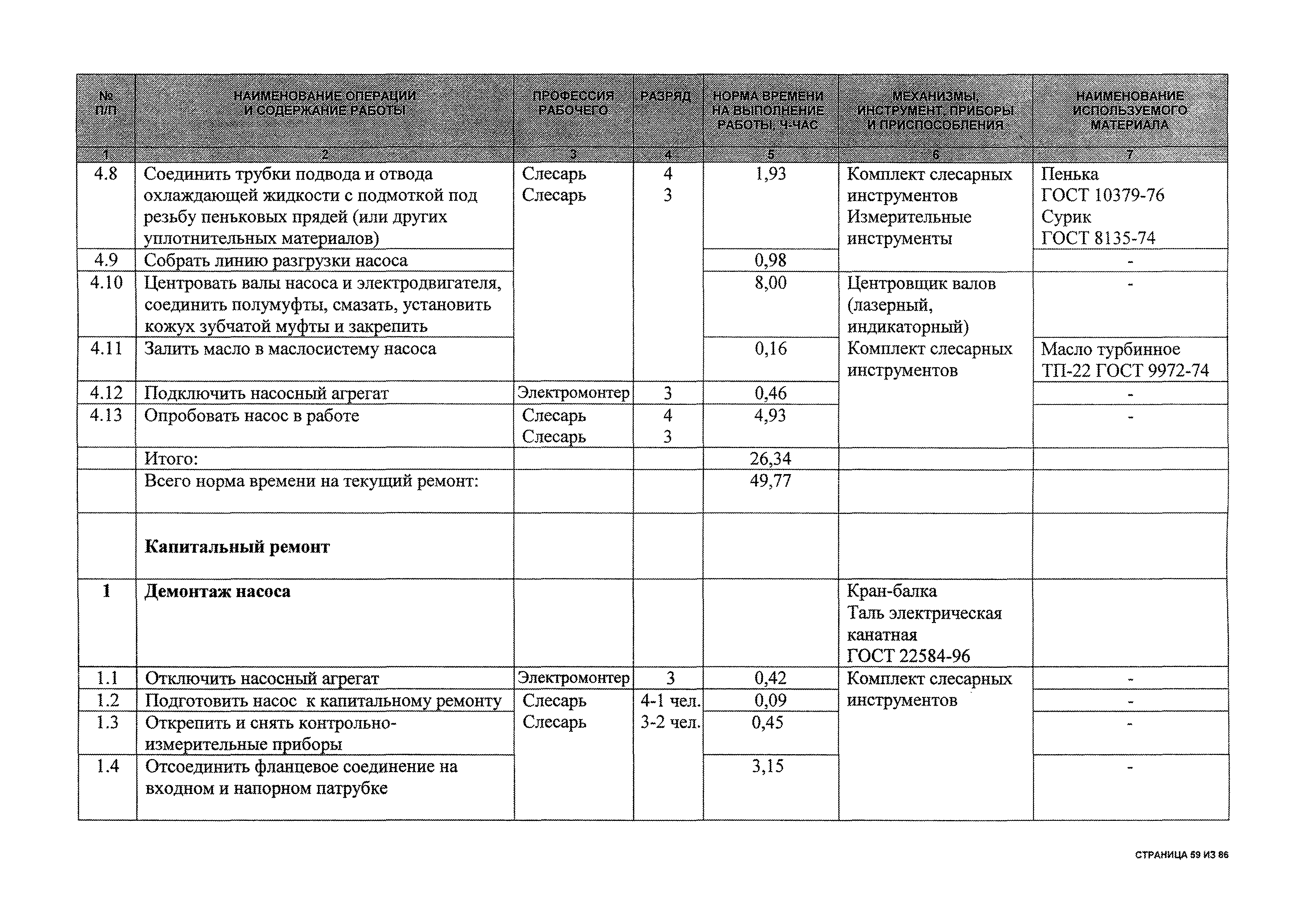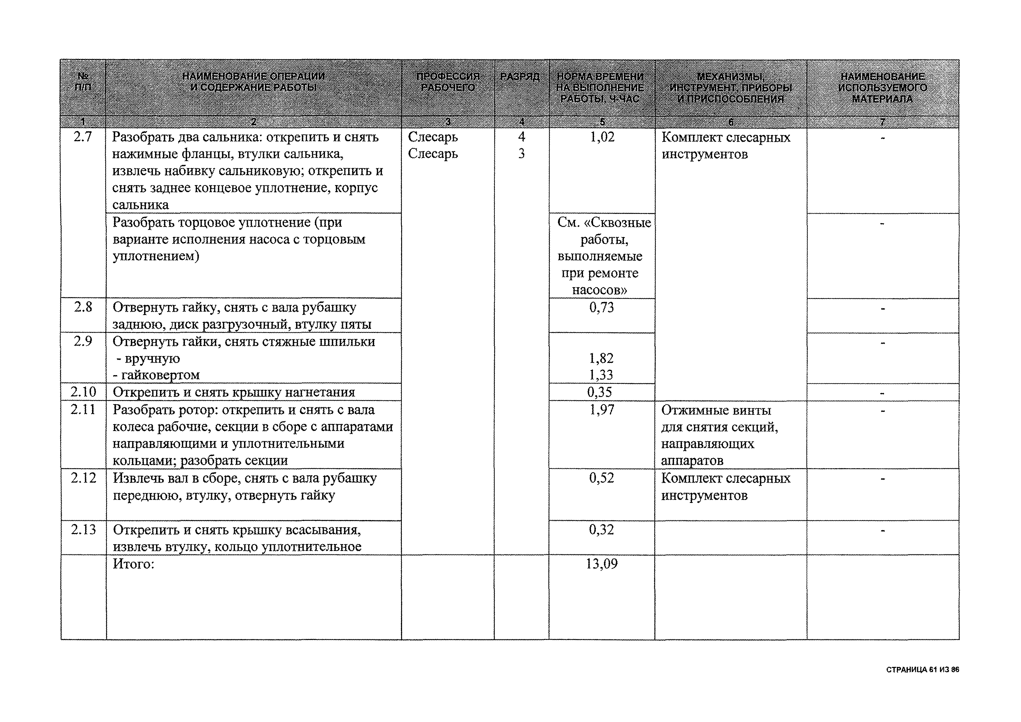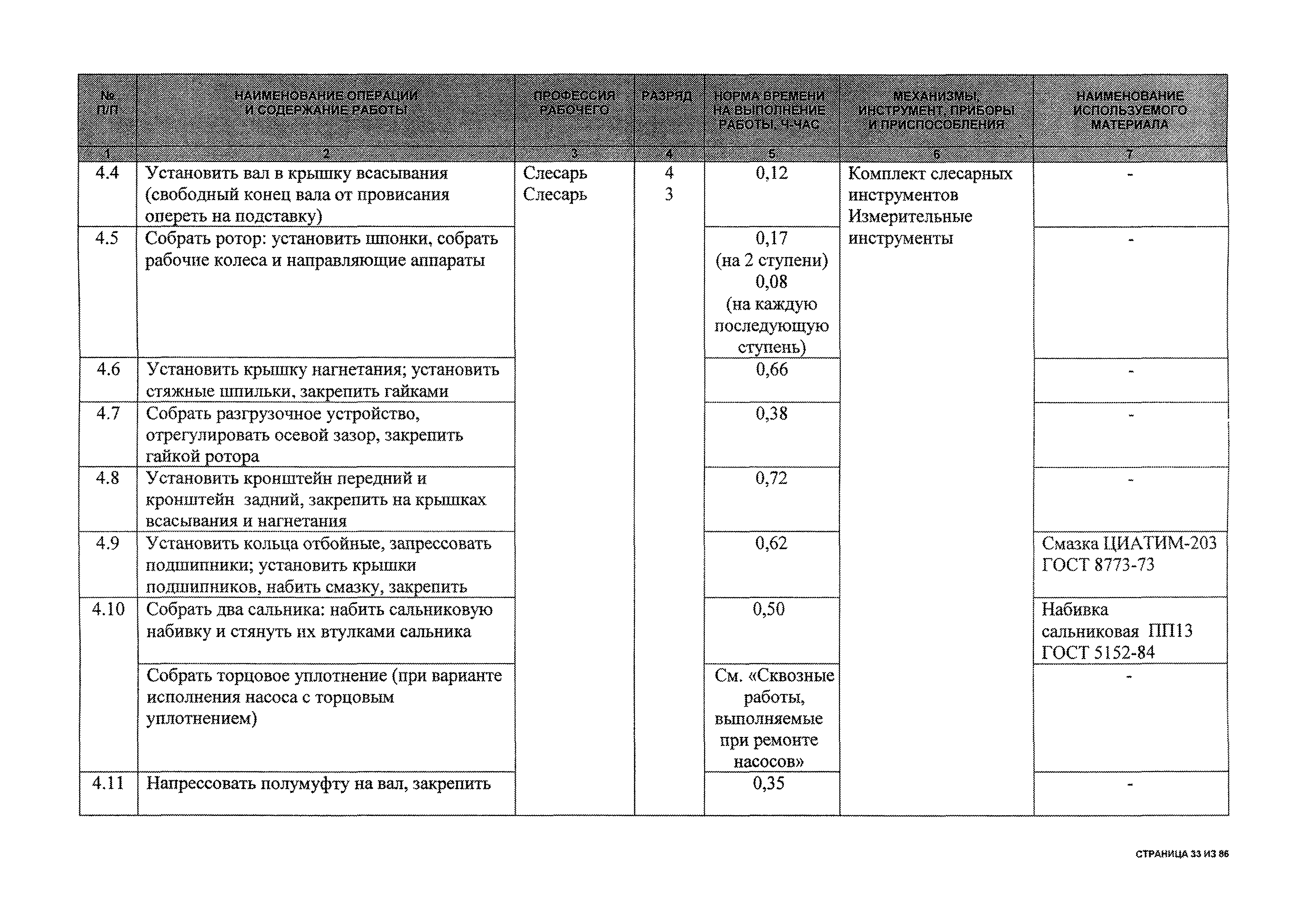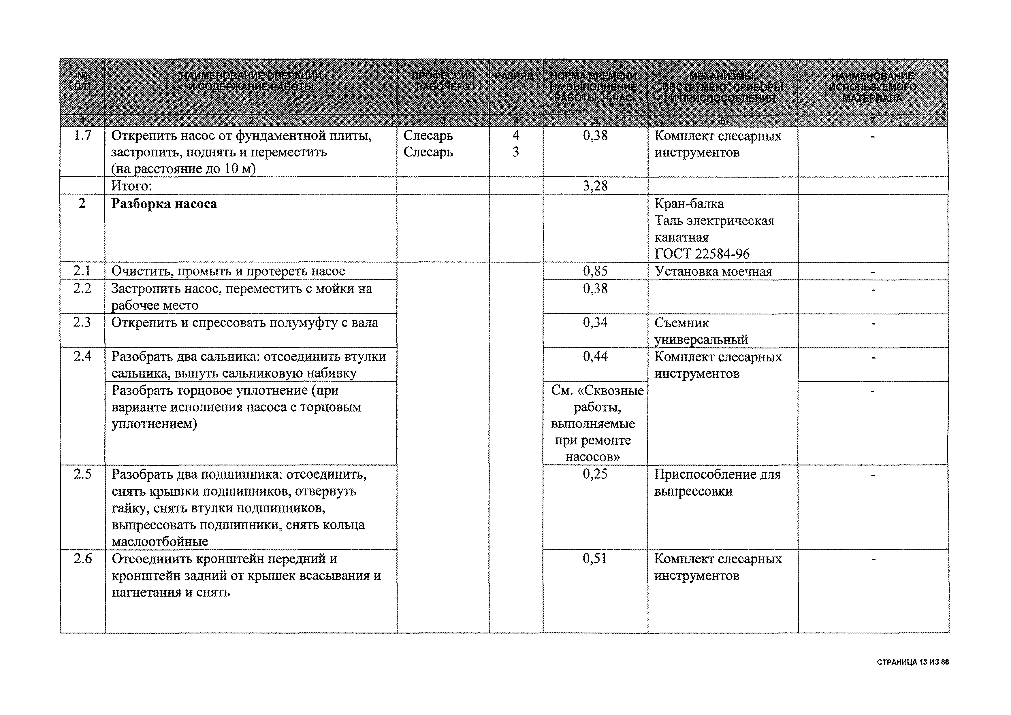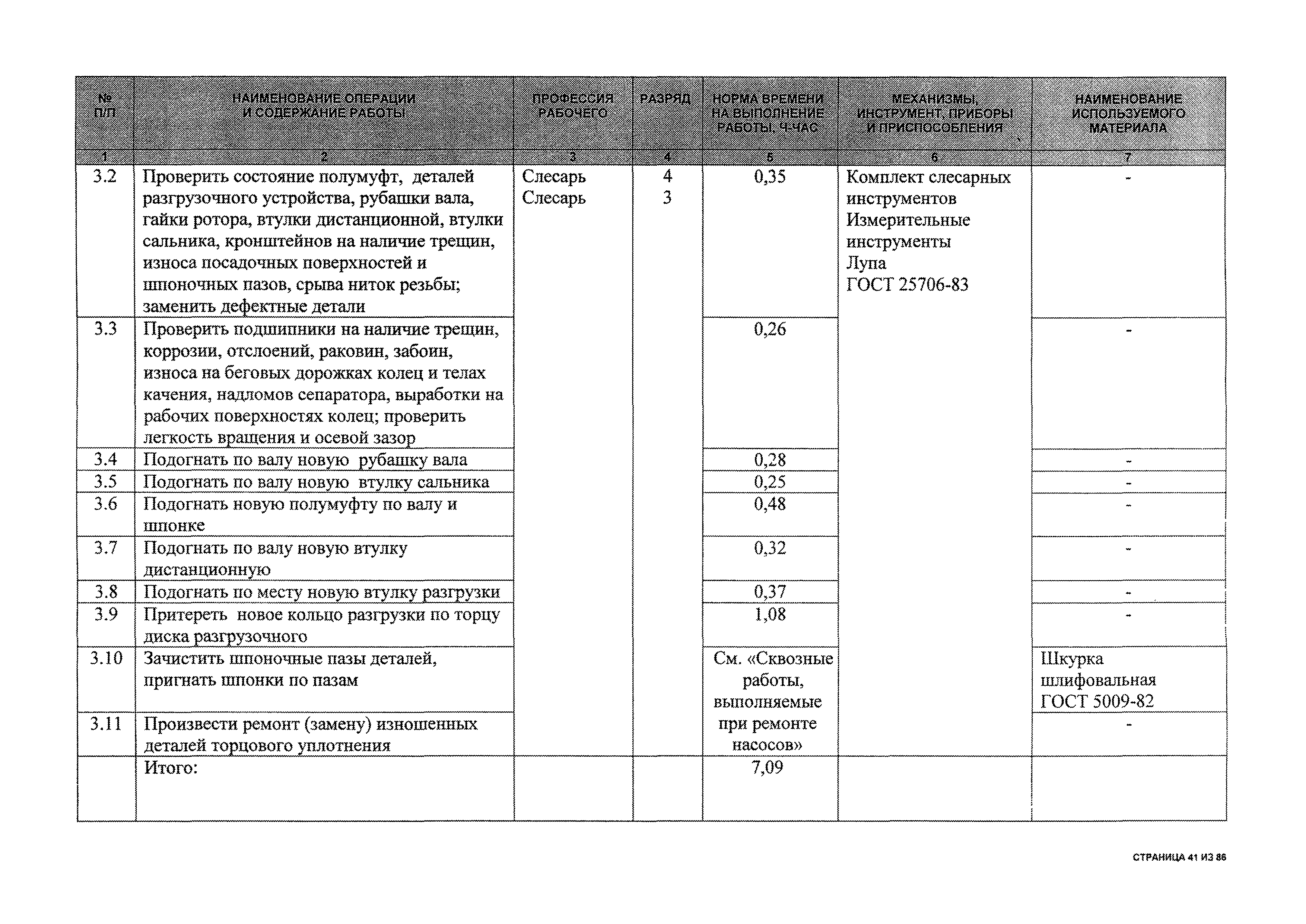 | Оглавление: | 1 Общая часть 2 Карты технического обслуживания, текущего и капитального ремонтов центробежных насосов: ЦНС 38-44…220, ЦНС 60-66…330 ЦНС105-98…490, ЦНС 180-85…425 ЦНС 300-120…600 ЦНС 180-1050 (1422) 3 Сквозные работы, выполняемые при ремонте насосов 3.1 Вырубка смазочных канавок крейцмейселем 3.2 Нарезание резьбы на стержнях плашкой 3.3 Калибровка резьбы на стержнях плашкой 3.4 Нарезание резьбы в сквозных отверстиях вручную 3.5 Калибровка резьбы в сквозных отверстиях вручную 3.6 Вырубка прямоугольных, фасонных и круглых прокладок 3.7 Пробивка отверстий в прокладках 3.8 Удаление сломанных шпилек, болтов 3.9 Шабрение разъема корпуса насоса 3.10 Подгонка и установка призматических шпонок 3.11 Заливка вкладышей баббитом 3.12 Шабрение бронзовых втулок 3.13 Шабрение бронзовых вкладышей 3.14 Ремонт торцовых уплотнений 3.15 Правка вала 3.16 Балансировка рабочих колес 3.17 Восстановление деталей насоса наплавкой электродами диаметром 4 мм 3.18 Покраска насоса после ремонта |