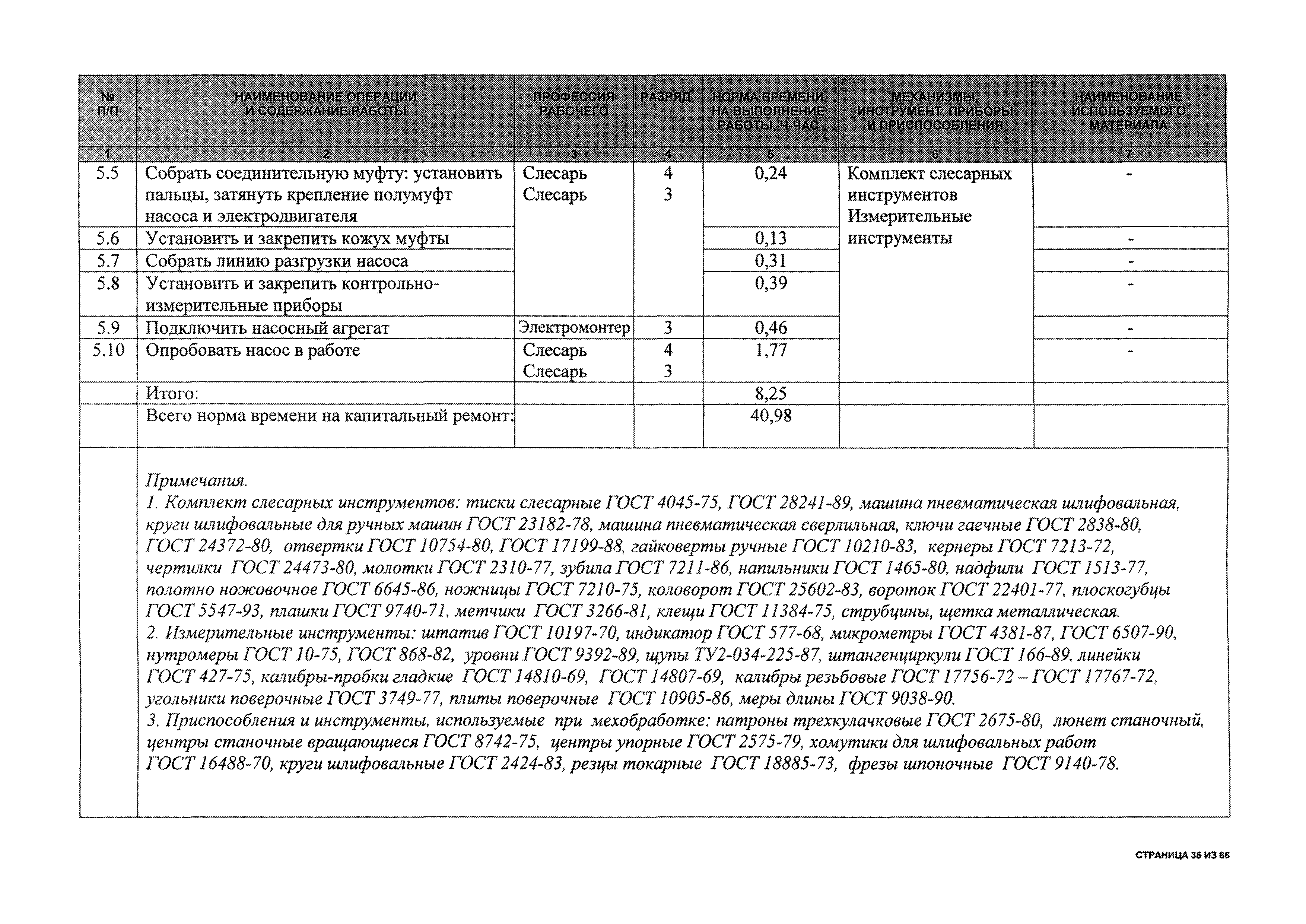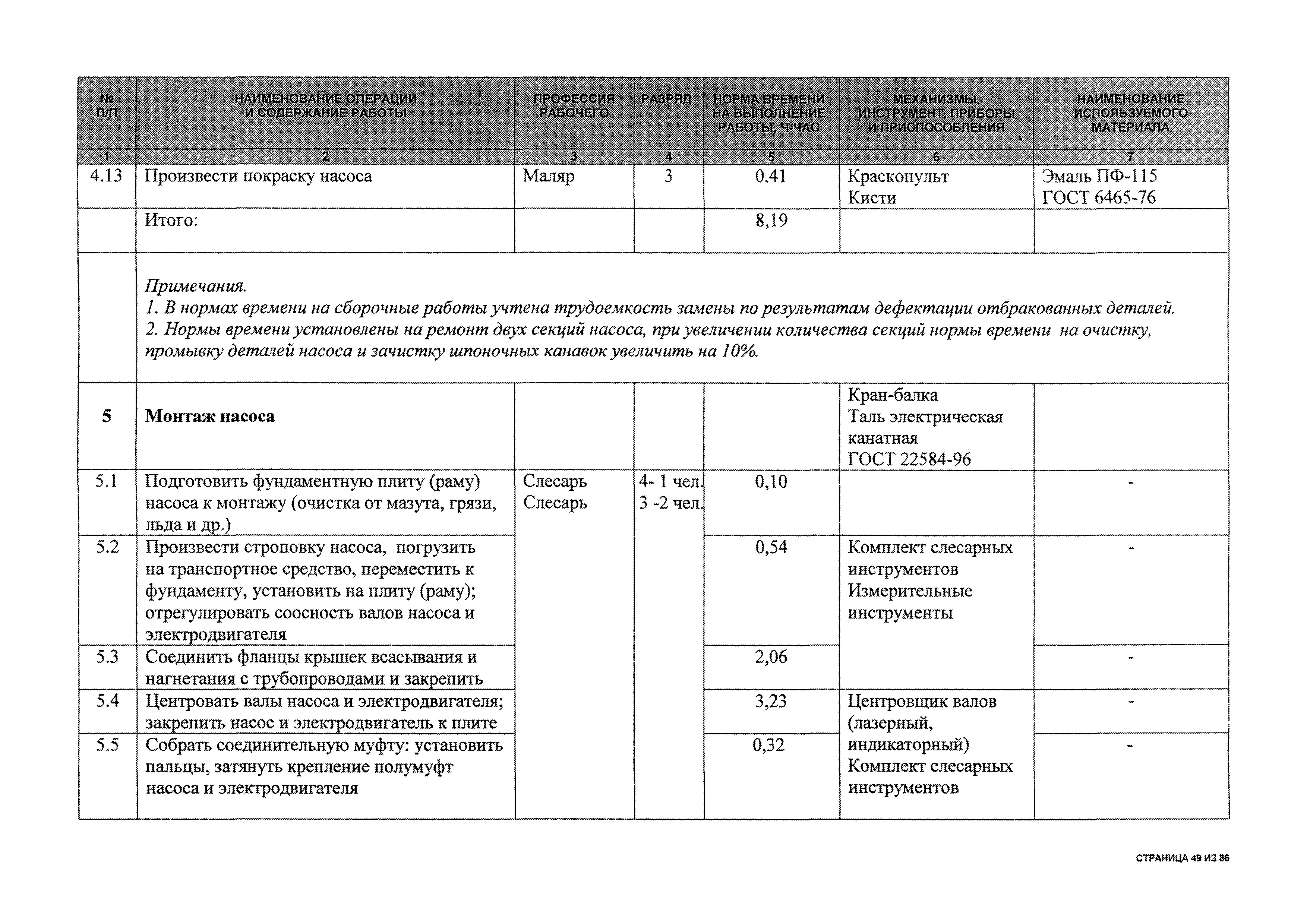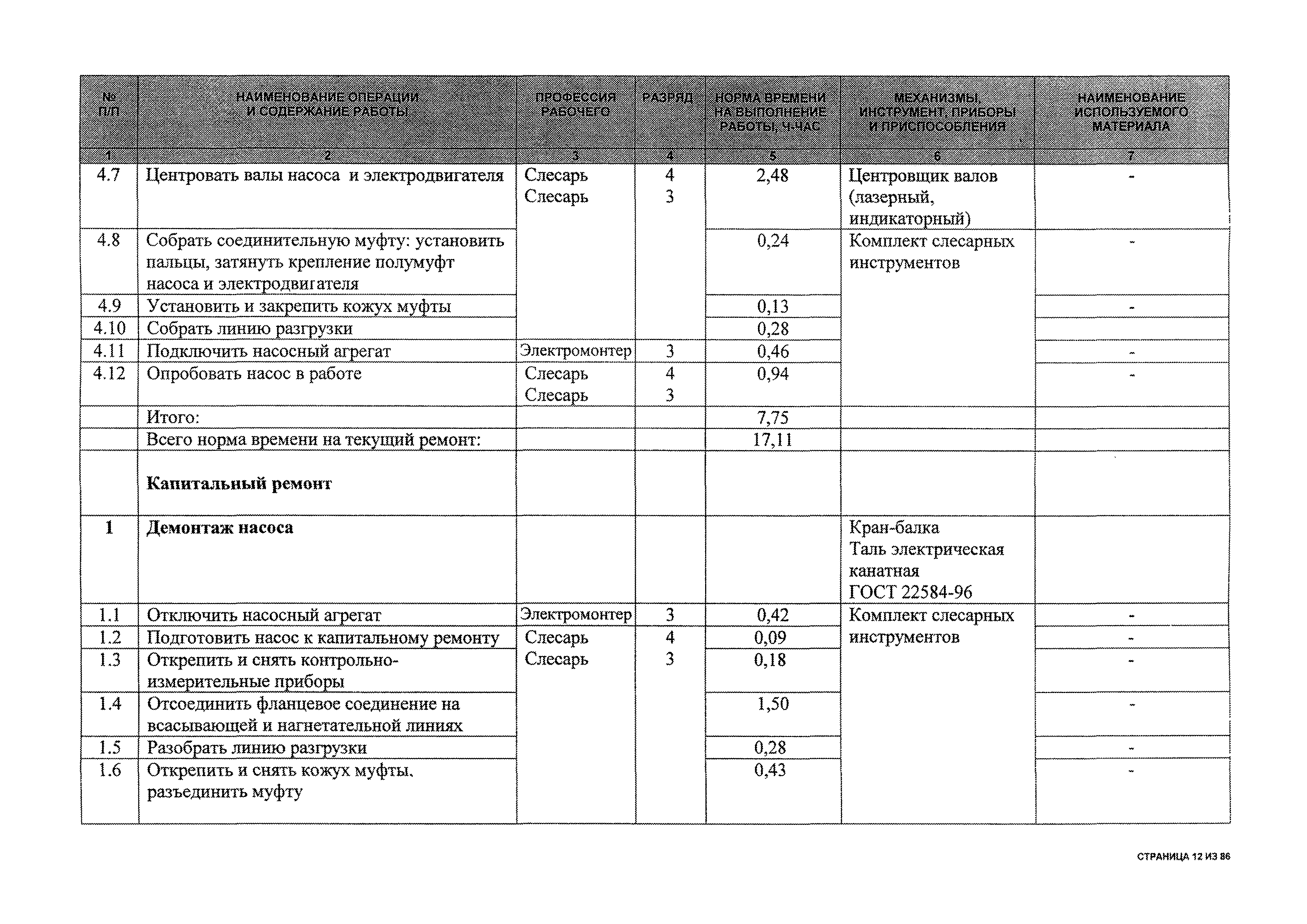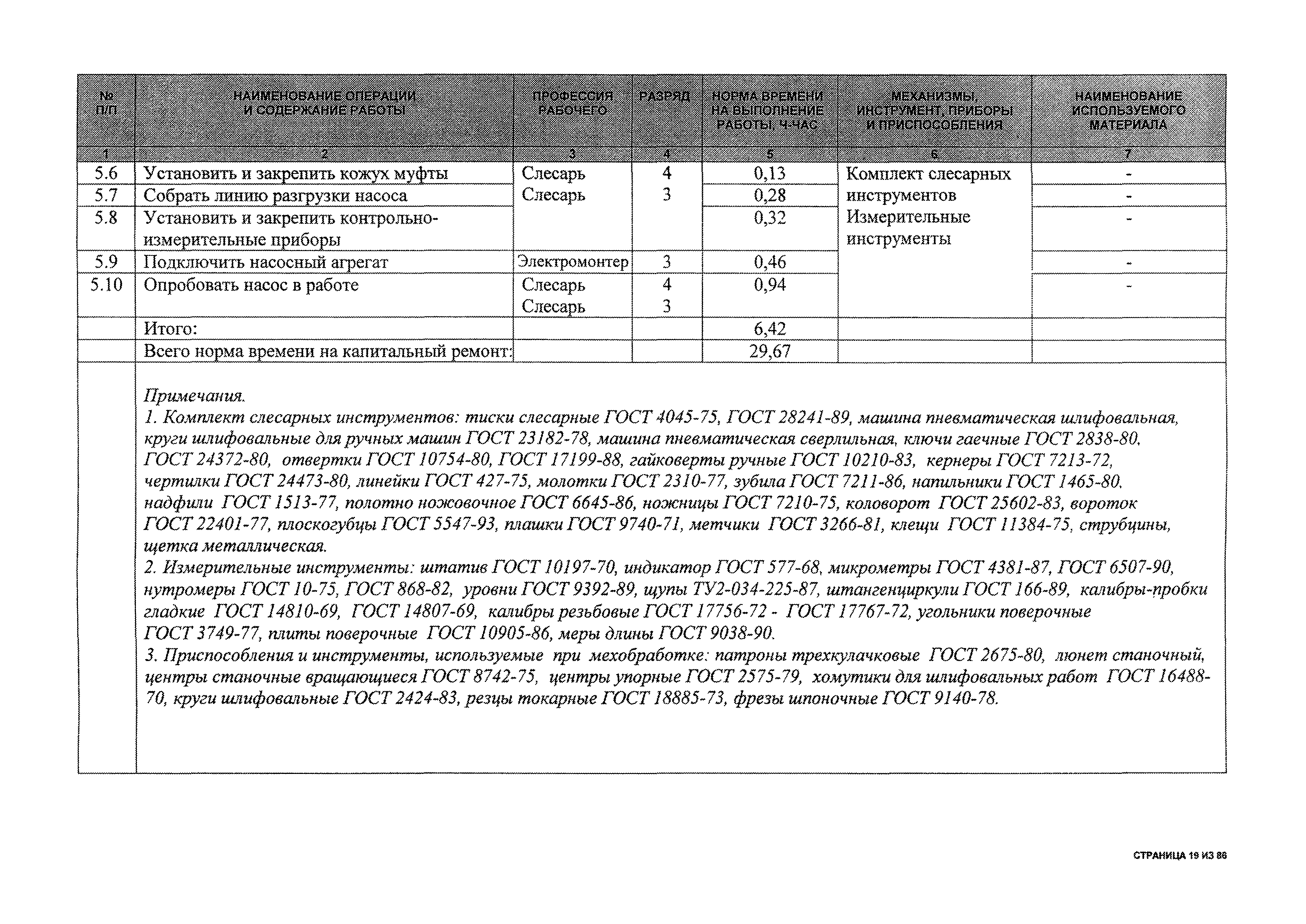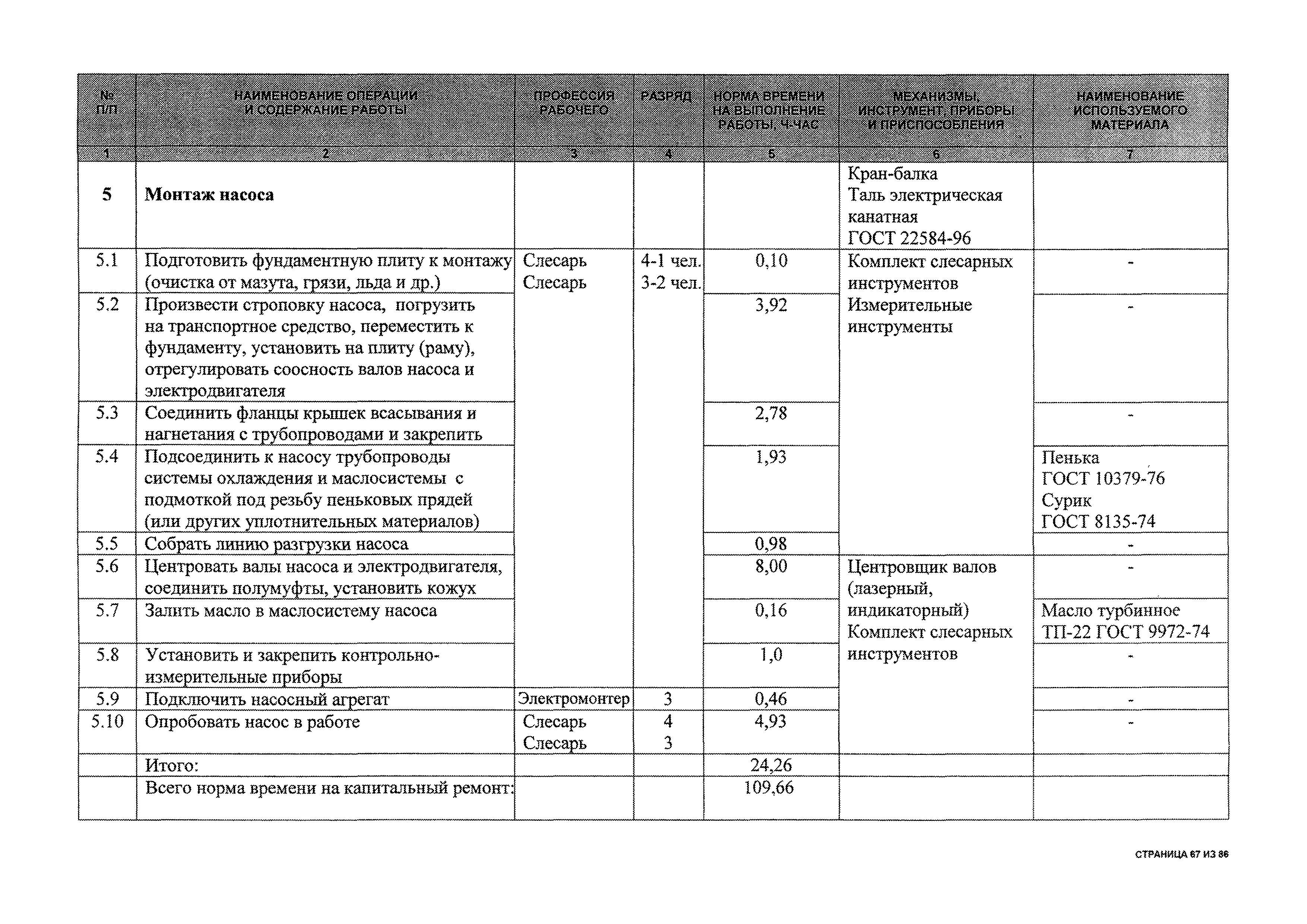 | Оглавление: | 1 Общая часть 2 Карты технического обслуживания, текущего и капитального ремонтов центробежных насосов: ЦНС 38-44…220, ЦНС 60-66…330 ЦНС105-98…490, ЦНС 180-85…425 ЦНС 300-120…600 ЦНС 180-1050 (1422) 3 Сквозные работы, выполняемые при ремонте насосов 3.1 Вырубка смазочных канавок крейцмейселем 3.2 Нарезание резьбы на стержнях плашкой 3.3 Калибровка резьбы на стержнях плашкой 3.4 Нарезание резьбы в сквозных отверстиях вручную 3.5 Калибровка резьбы в сквозных отверстиях вручную 3.6 Вырубка прямоугольных, фасонных и круглых прокладок 3.7 Пробивка отверстий в прокладках 3.8 Удаление сломанных шпилек, болтов 3.9 Шабрение разъема корпуса насоса 3.10 Подгонка и установка призматических шпонок 3.11 Заливка вкладышей баббитом 3.12 Шабрение бронзовых втулок 3.13 Шабрение бронзовых вкладышей 3.14 Ремонт торцовых уплотнений 3.15 Правка вала 3.16 Балансировка рабочих колес 3.17 Восстановление деталей насоса наплавкой электродами диаметром 4 мм 3.18 Покраска насоса после ремонта |