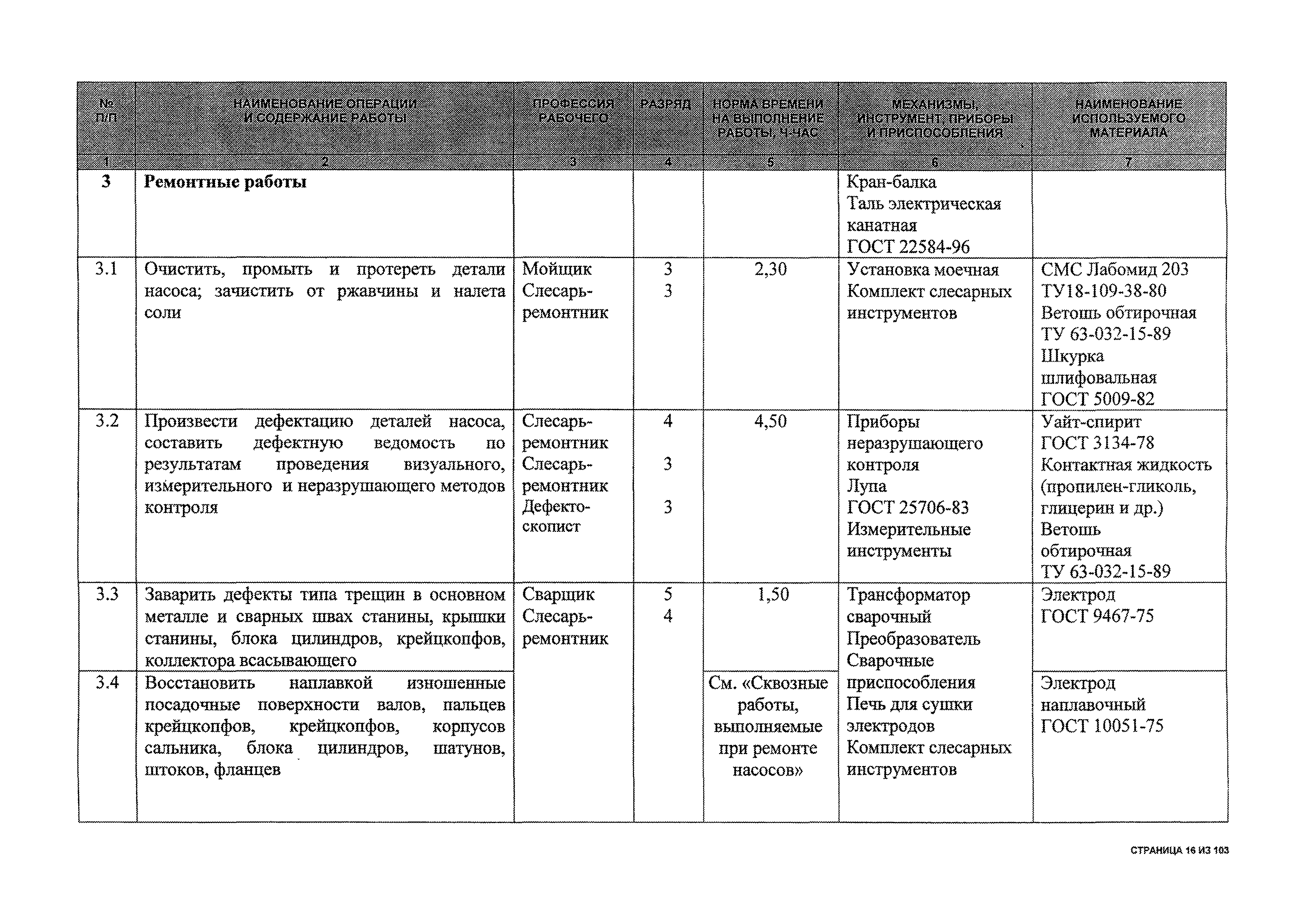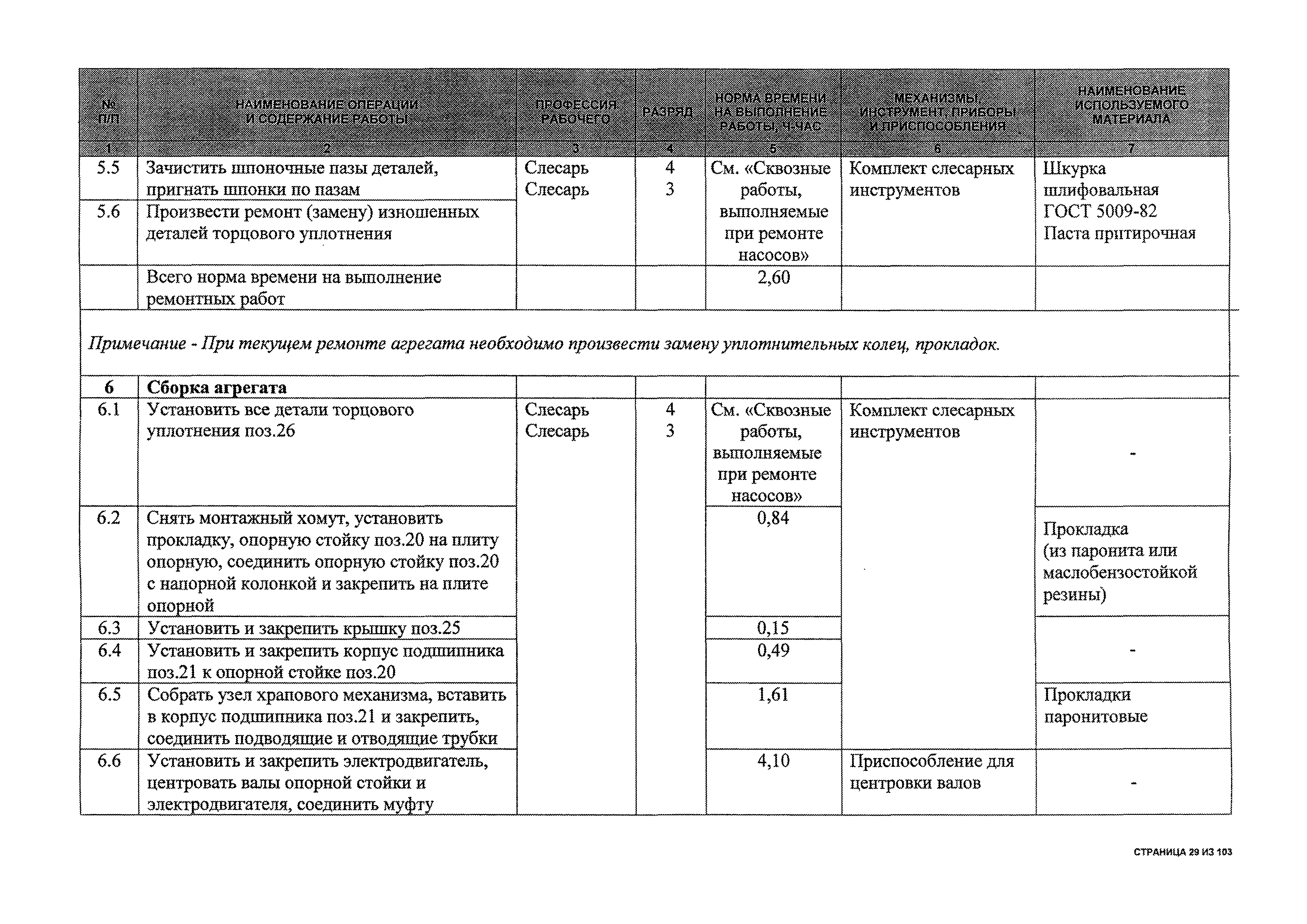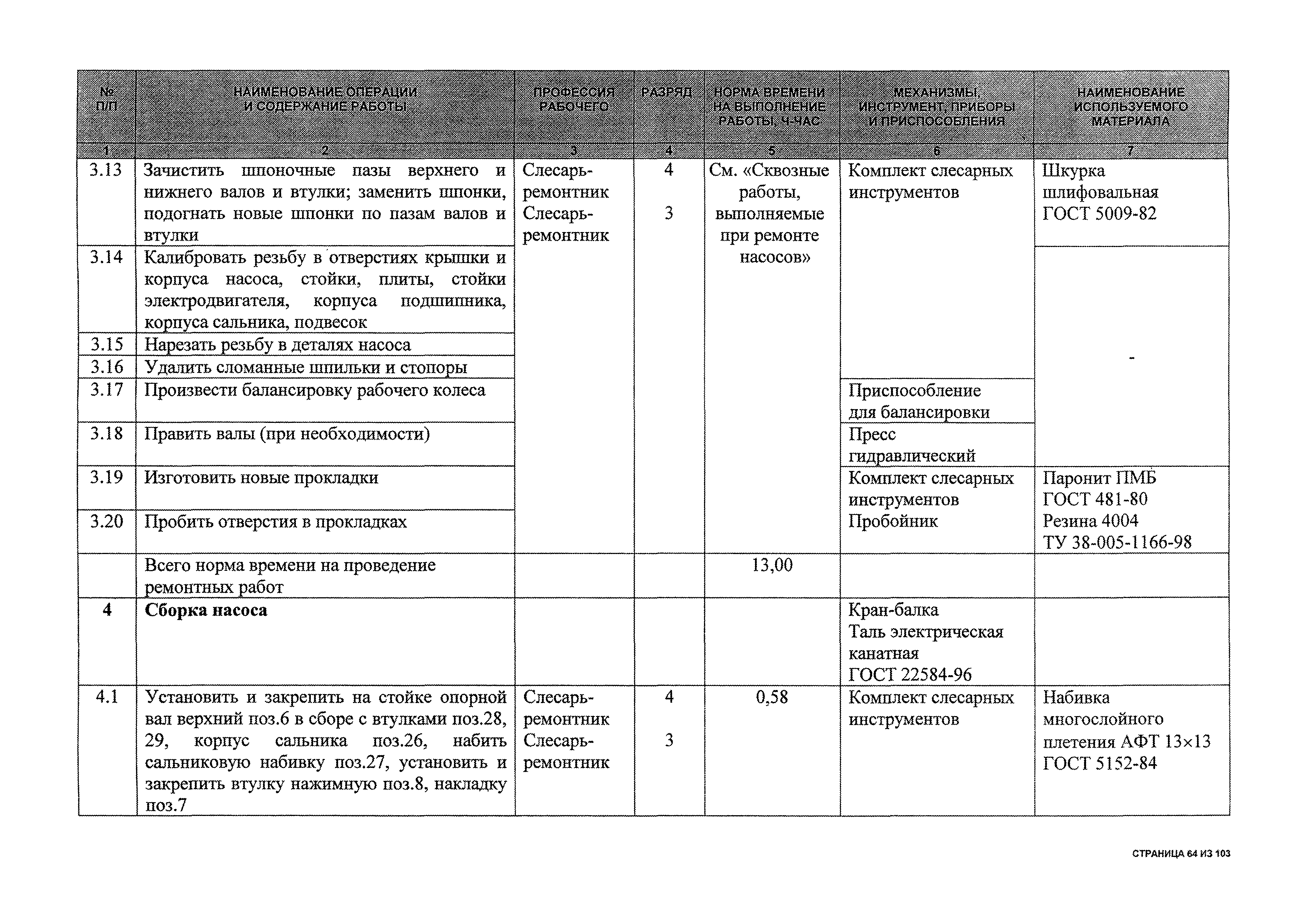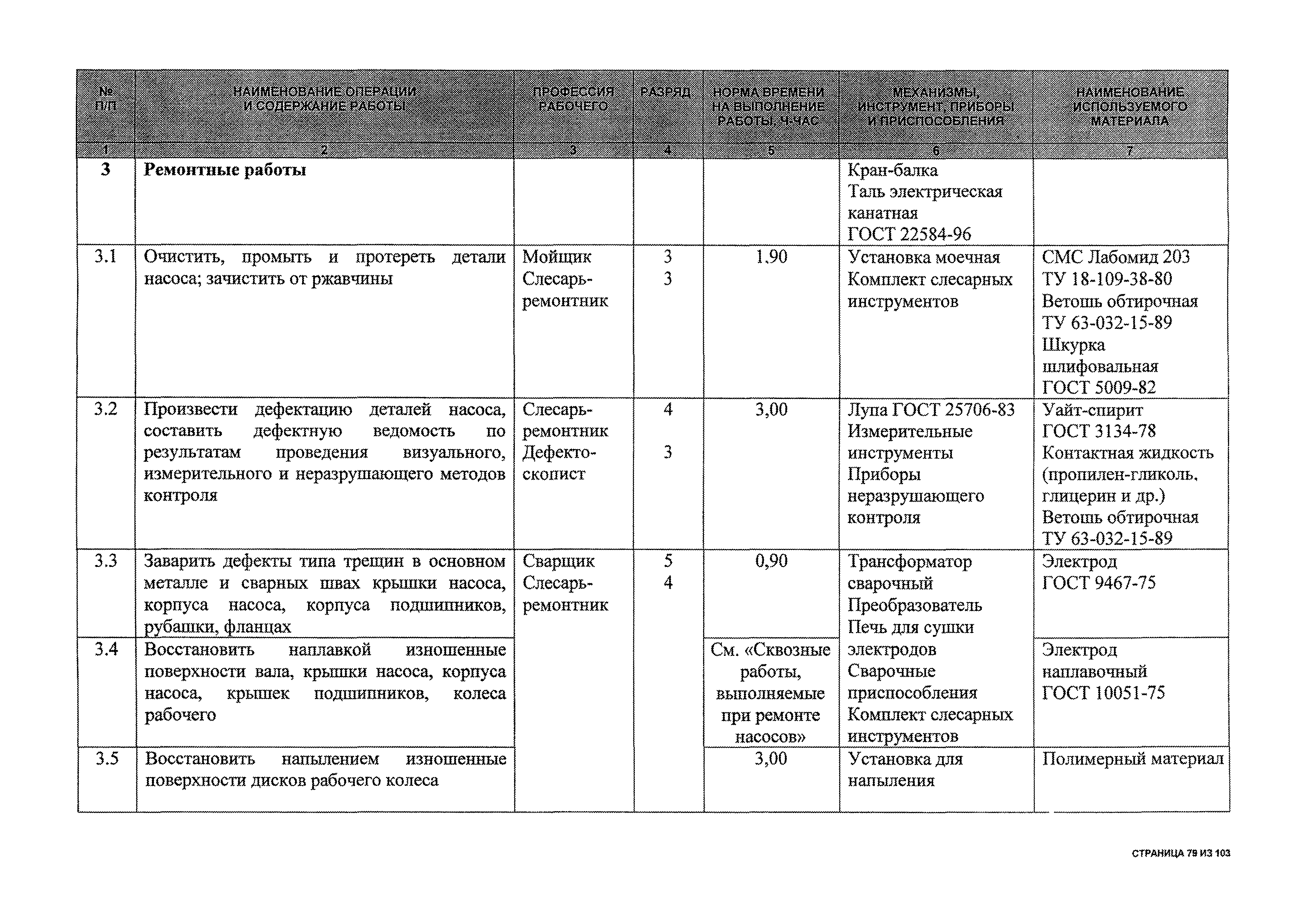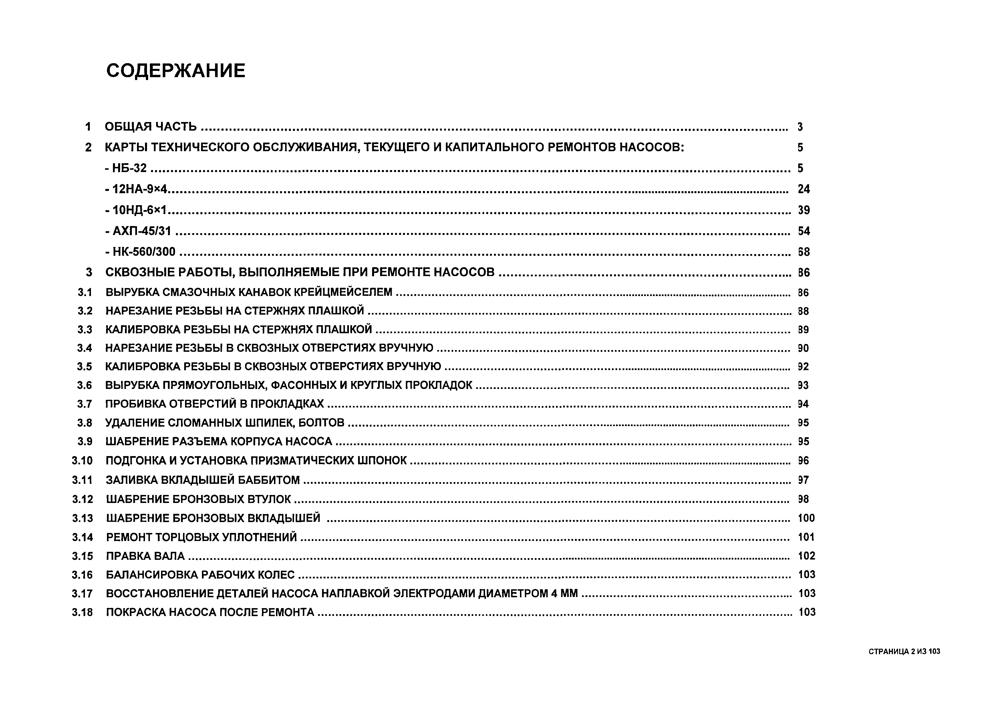 | Оглавление: | 1 Общая часть 2 Карты технического обслуживания, текущего и капитального ремонтов насосов: НБ-32 12НА-9Х4 10НД-6ХI АХП-45/31 НК560/300 3 Сквозные работы, выполняемые при ремонте насосов 3.1 Вырубка смазочных канавок крейцмейселем 3.2 Нарезание резьбы на стержнях плашкой 3.3 Калибровка резьбы на стержнях плашкой 3.4 Нарезание резьбы в сквозных отверстиях вручную 3.5 Калибровка резьбы в сквозных отверстиях вручную 3.6 Вырубка прямоугольных, фасонных и круглых прокладок 3.7 Пробивка отверстий в прокладках 3.8 Удаление сломанных шпилек, болтов 3.9 Шабрение разъема корпуса насоса 3.10 Подгонка и установка призматических шпонок 3.11 Заливка вкладышей баббитом 3.12 Шабрение бронзовых втулок 3.13 Шабрение бронзовых вкладышей 3.14 Ремонт торцовых уплотнений 3.15 Правка вала 3.16 Балансировка рабочих колес 3.17 Восстановление деталей насоса наплавкой электродами диаметром 4 мм 3.18 Покраска насоса после ремонта |