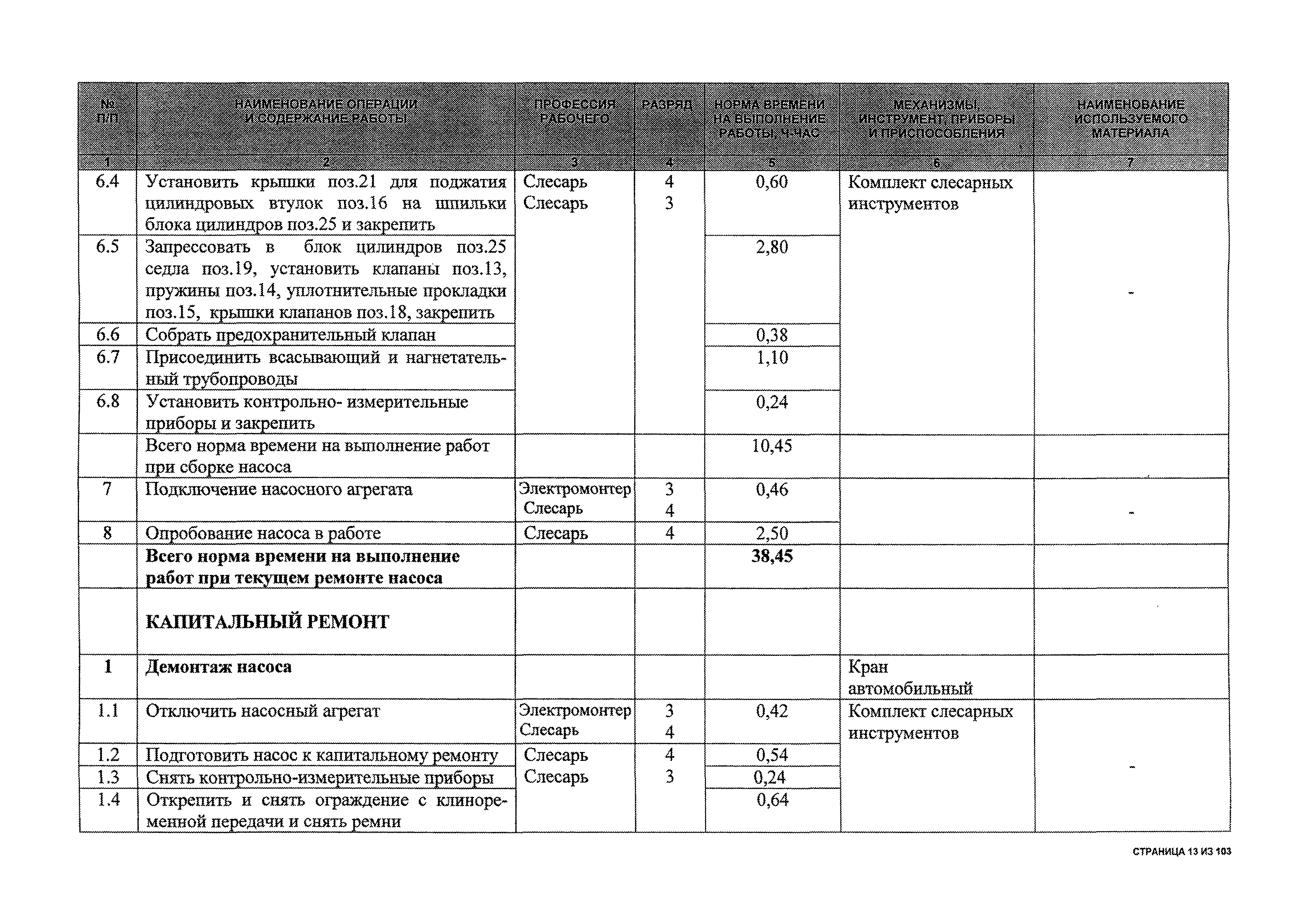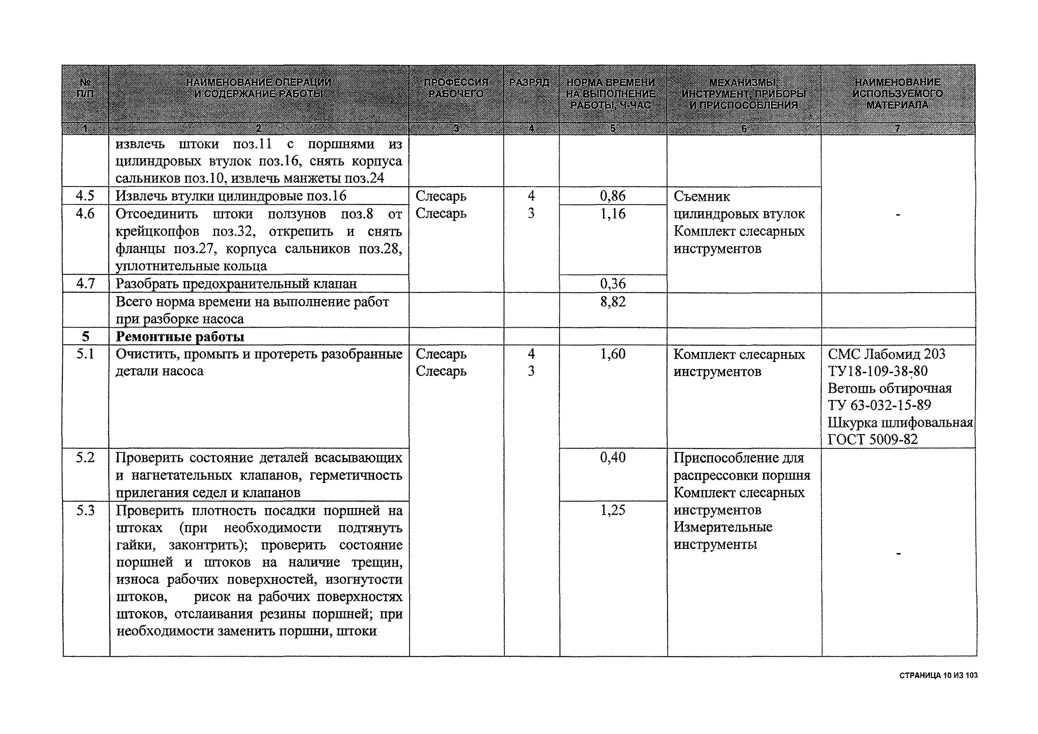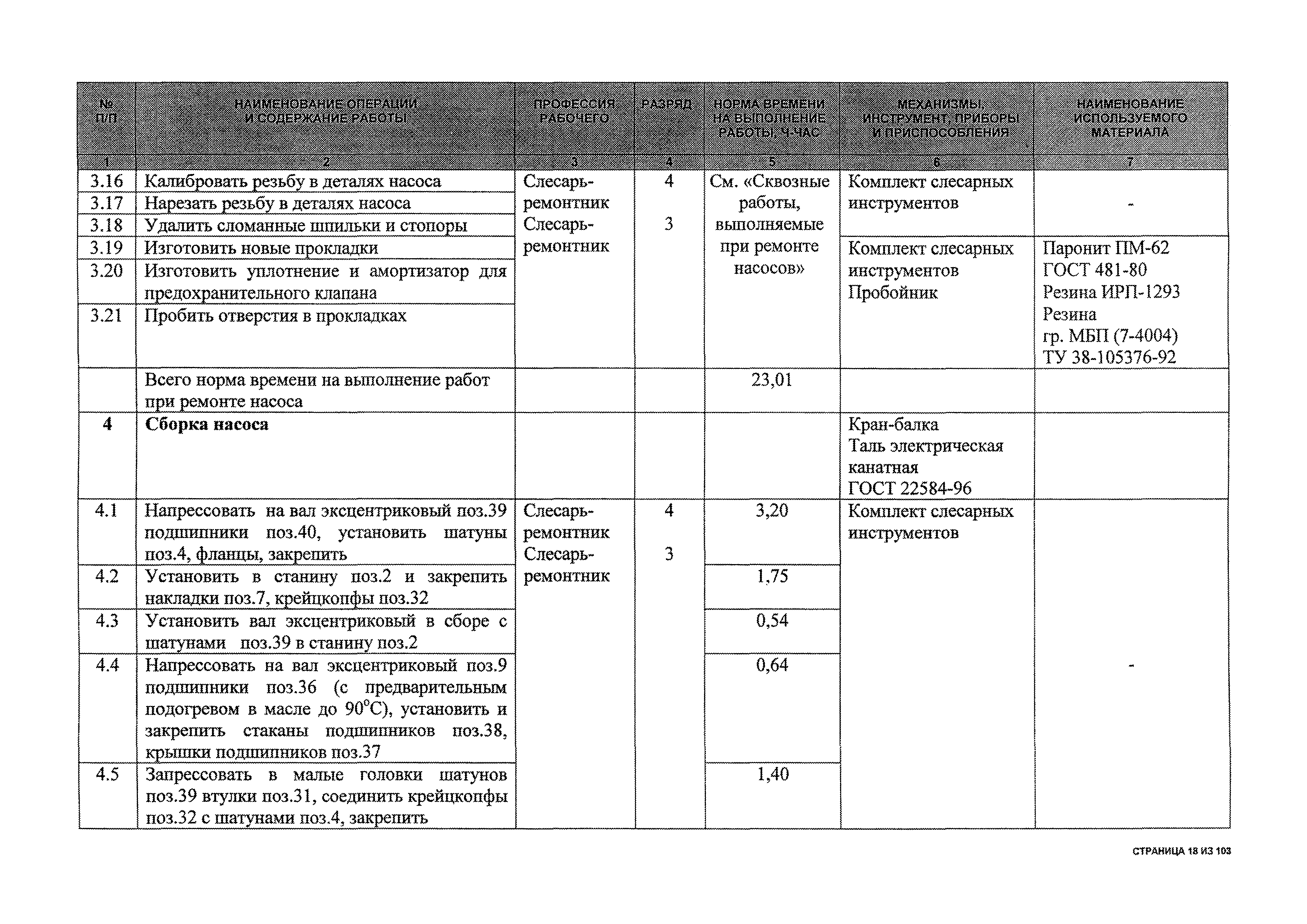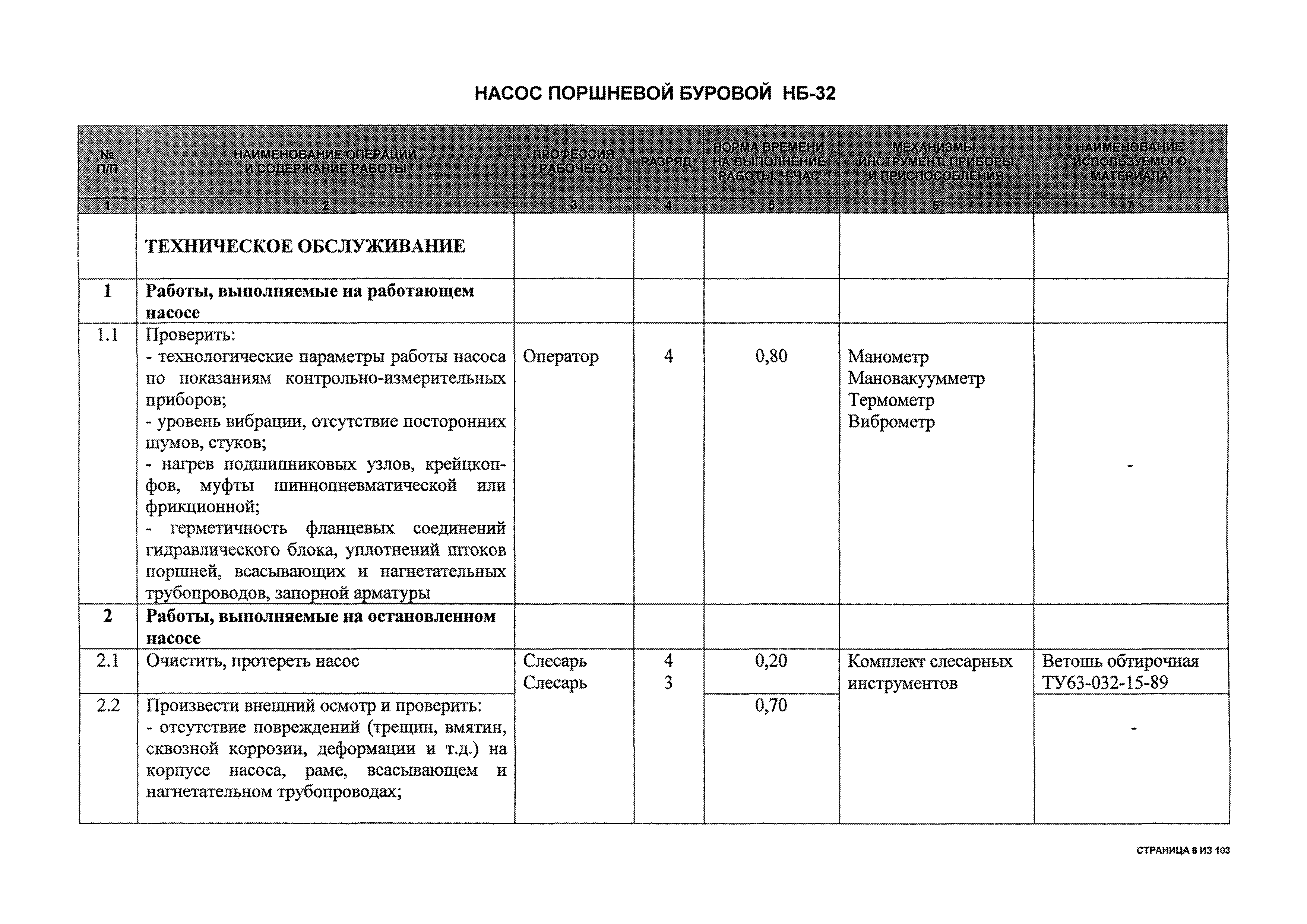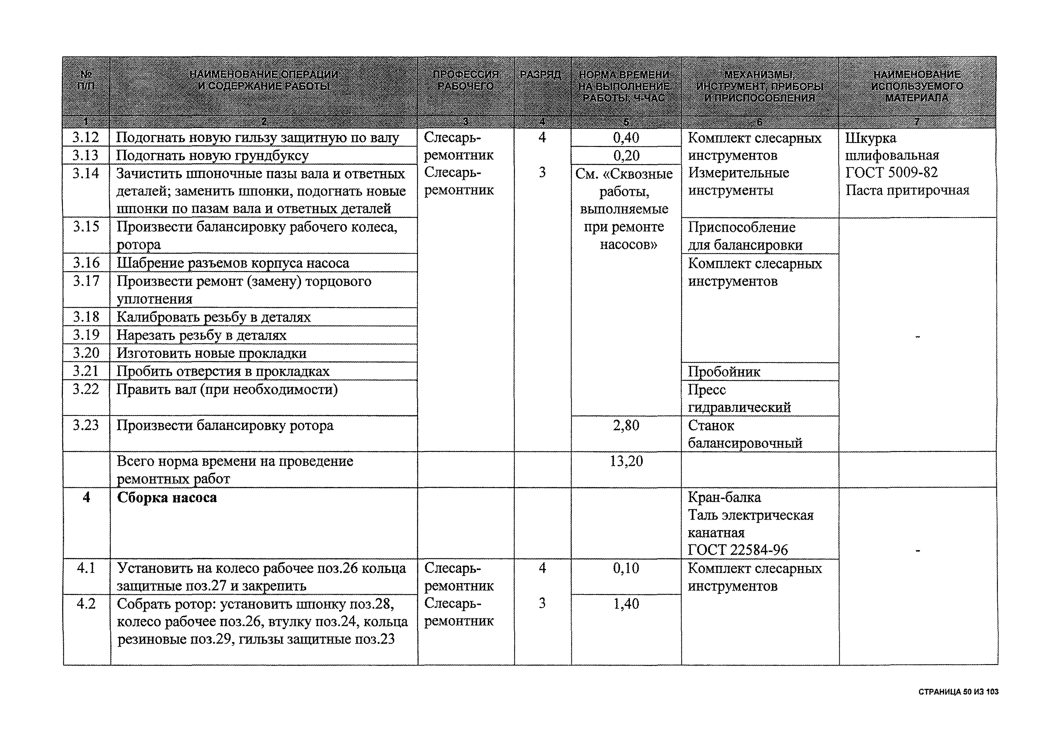 | Оглавление: | 1 Общая часть 2 Карты технического обслуживания, текущего и капитального ремонтов насосов: НБ-32 12НА-9Х4 10НД-6ХI АХП-45/31 НК560/300 3 Сквозные работы, выполняемые при ремонте насосов 3.1 Вырубка смазочных канавок крейцмейселем 3.2 Нарезание резьбы на стержнях плашкой 3.3 Калибровка резьбы на стержнях плашкой 3.4 Нарезание резьбы в сквозных отверстиях вручную 3.5 Калибровка резьбы в сквозных отверстиях вручную 3.6 Вырубка прямоугольных, фасонных и круглых прокладок 3.7 Пробивка отверстий в прокладках 3.8 Удаление сломанных шпилек, болтов 3.9 Шабрение разъема корпуса насоса 3.10 Подгонка и установка призматических шпонок 3.11 Заливка вкладышей баббитом 3.12 Шабрение бронзовых втулок 3.13 Шабрение бронзовых вкладышей 3.14 Ремонт торцовых уплотнений 3.15 Правка вала 3.16 Балансировка рабочих колес 3.17 Восстановление деталей насоса наплавкой электродами диаметром 4 мм 3.18 Покраска насоса после ремонта |