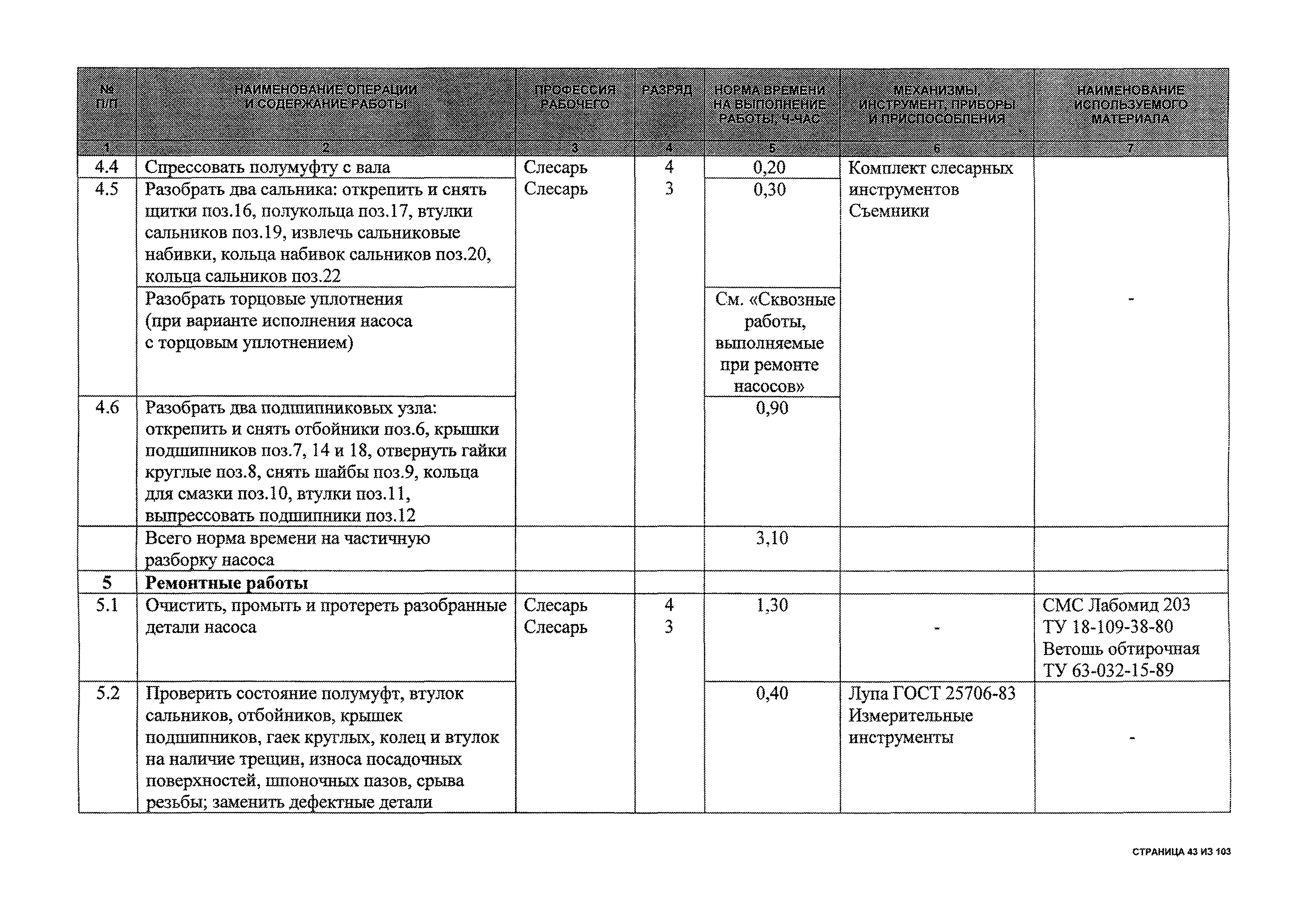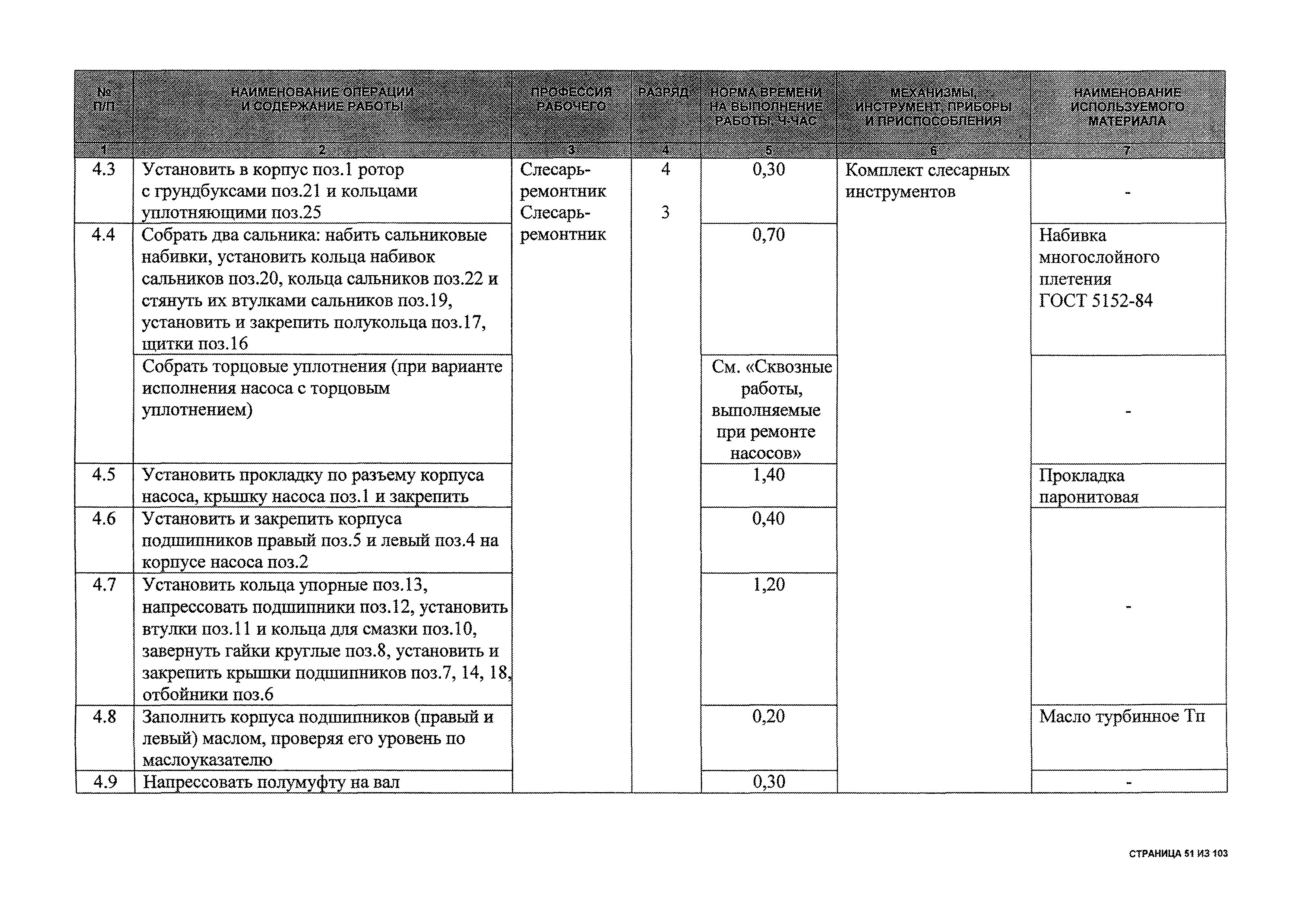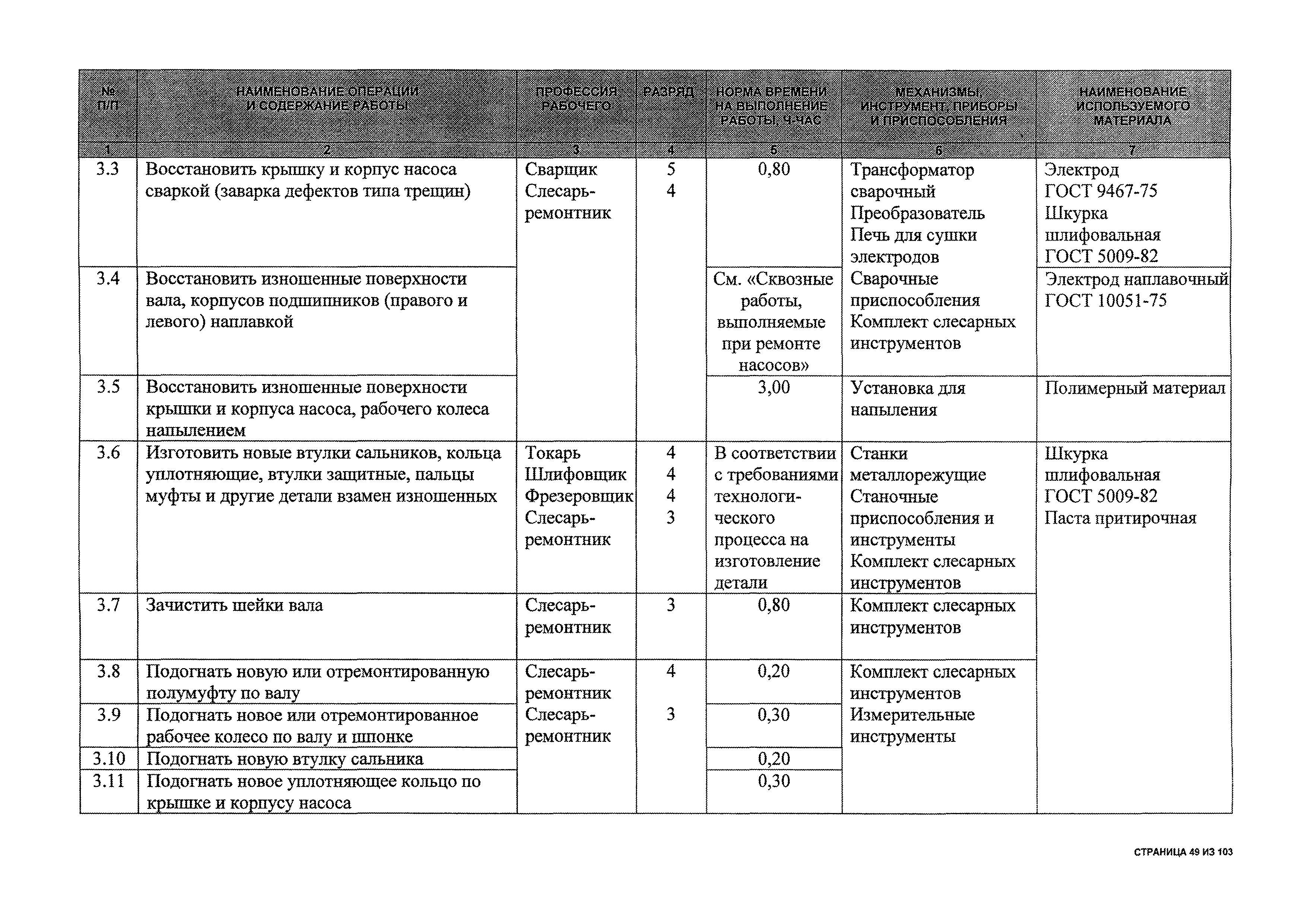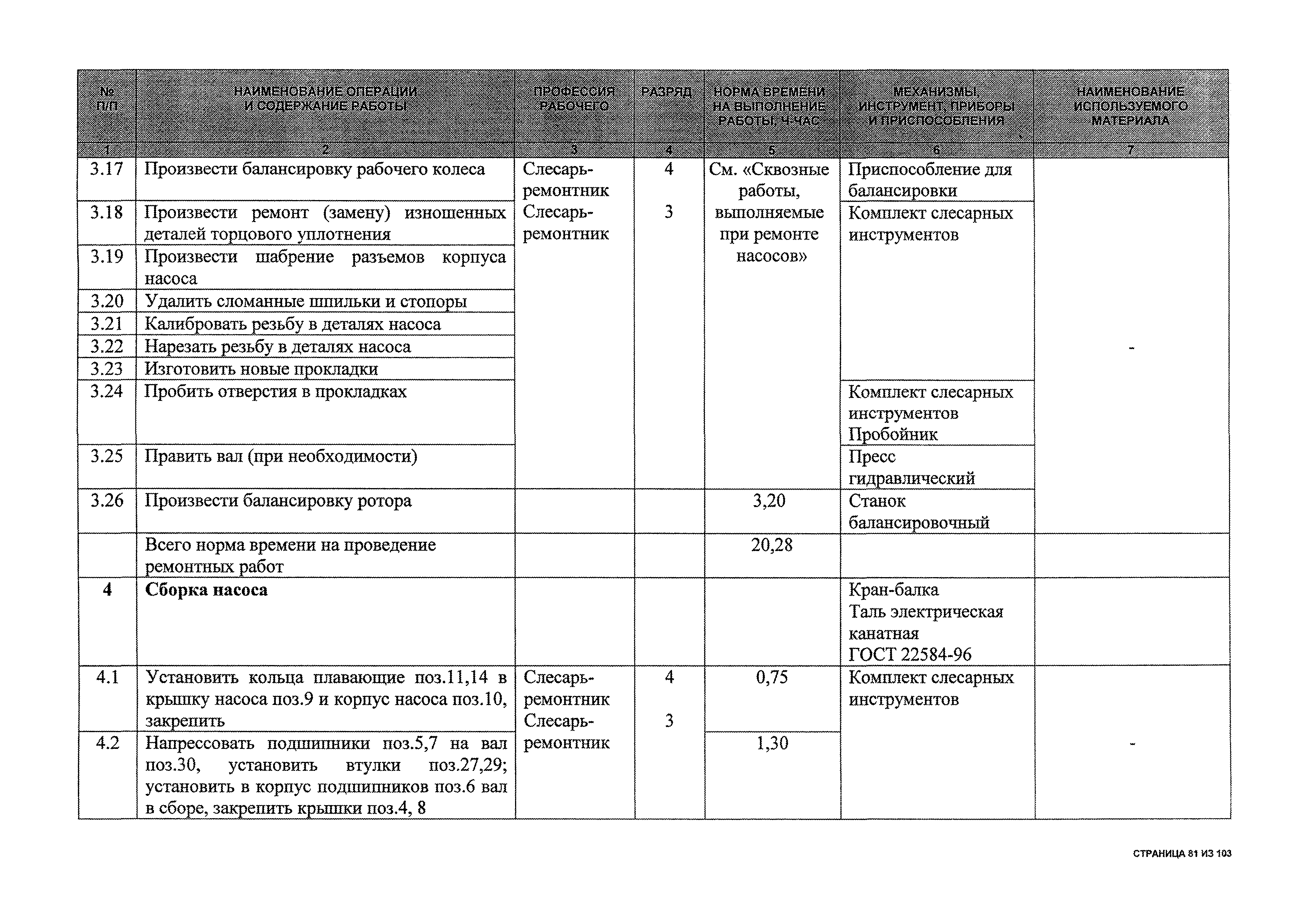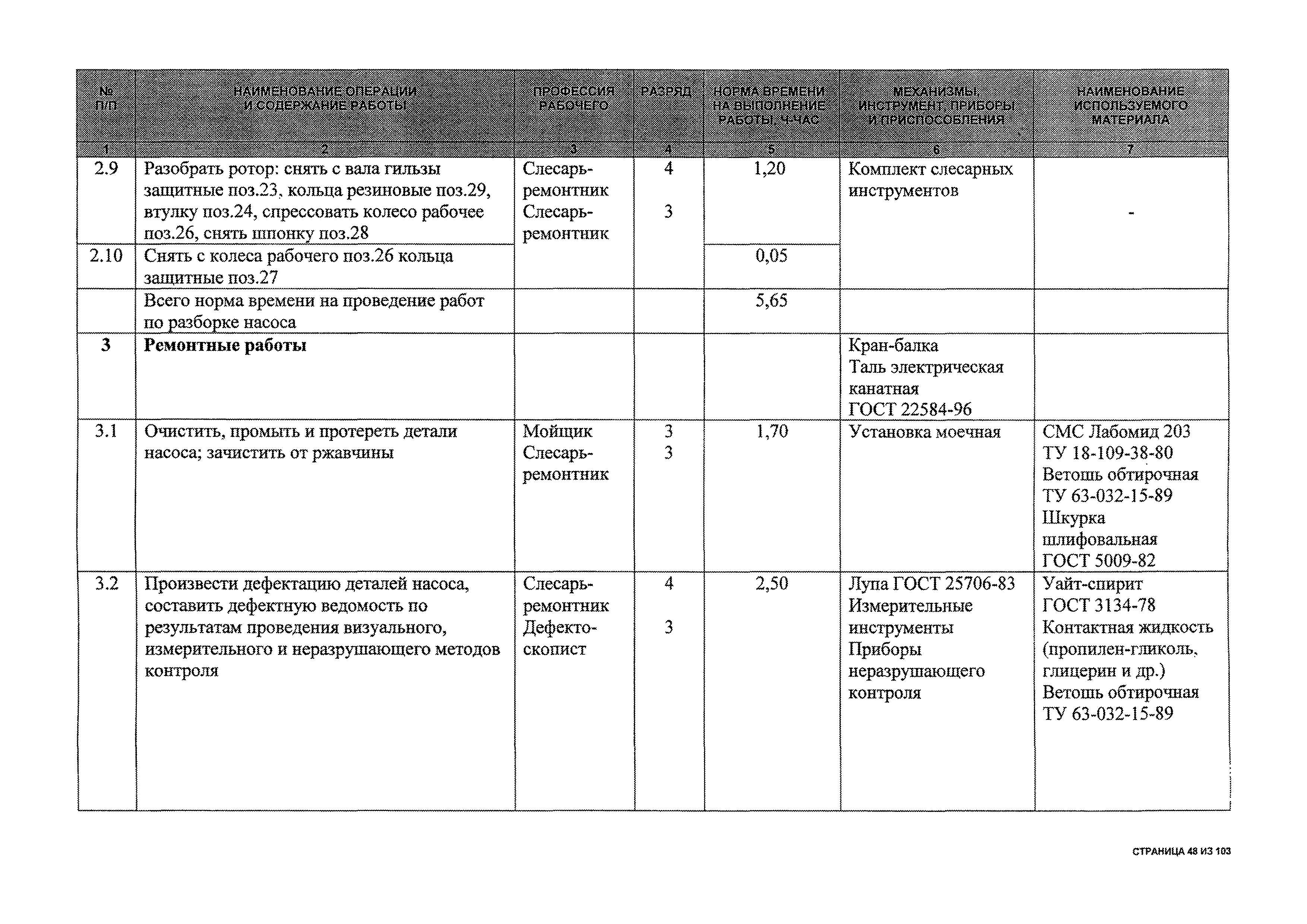 | Оглавление: | 1 Общая часть 2 Карты технического обслуживания, текущего и капитального ремонтов насосов: НБ-32 12НА-9Х4 10НД-6ХI АХП-45/31 НК560/300 3 Сквозные работы, выполняемые при ремонте насосов 3.1 Вырубка смазочных канавок крейцмейселем 3.2 Нарезание резьбы на стержнях плашкой 3.3 Калибровка резьбы на стержнях плашкой 3.4 Нарезание резьбы в сквозных отверстиях вручную 3.5 Калибровка резьбы в сквозных отверстиях вручную 3.6 Вырубка прямоугольных, фасонных и круглых прокладок 3.7 Пробивка отверстий в прокладках 3.8 Удаление сломанных шпилек, болтов 3.9 Шабрение разъема корпуса насоса 3.10 Подгонка и установка призматических шпонок 3.11 Заливка вкладышей баббитом 3.12 Шабрение бронзовых втулок 3.13 Шабрение бронзовых вкладышей 3.14 Ремонт торцовых уплотнений 3.15 Правка вала 3.16 Балансировка рабочих колес 3.17 Восстановление деталей насоса наплавкой электродами диаметром 4 мм 3.18 Покраска насоса после ремонта |