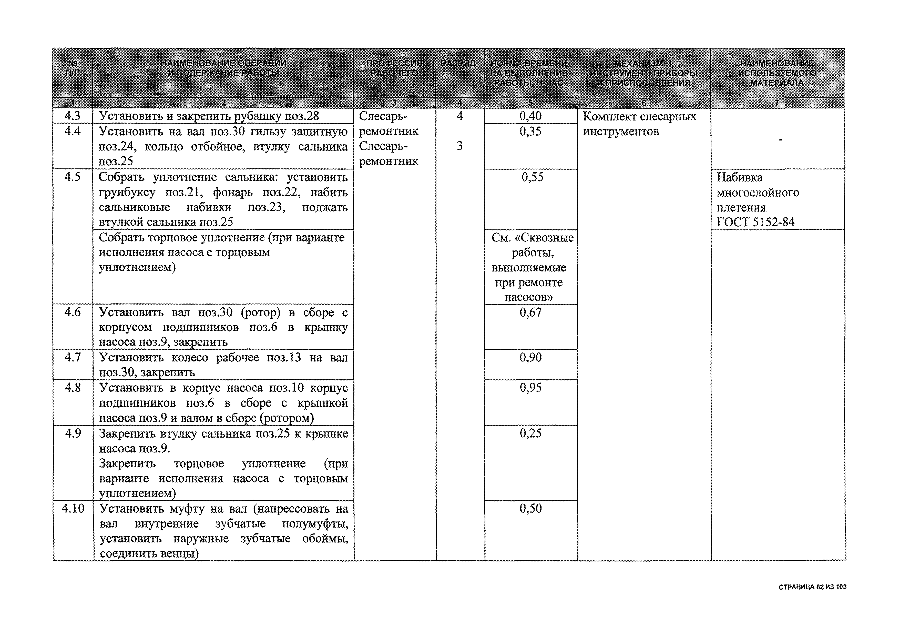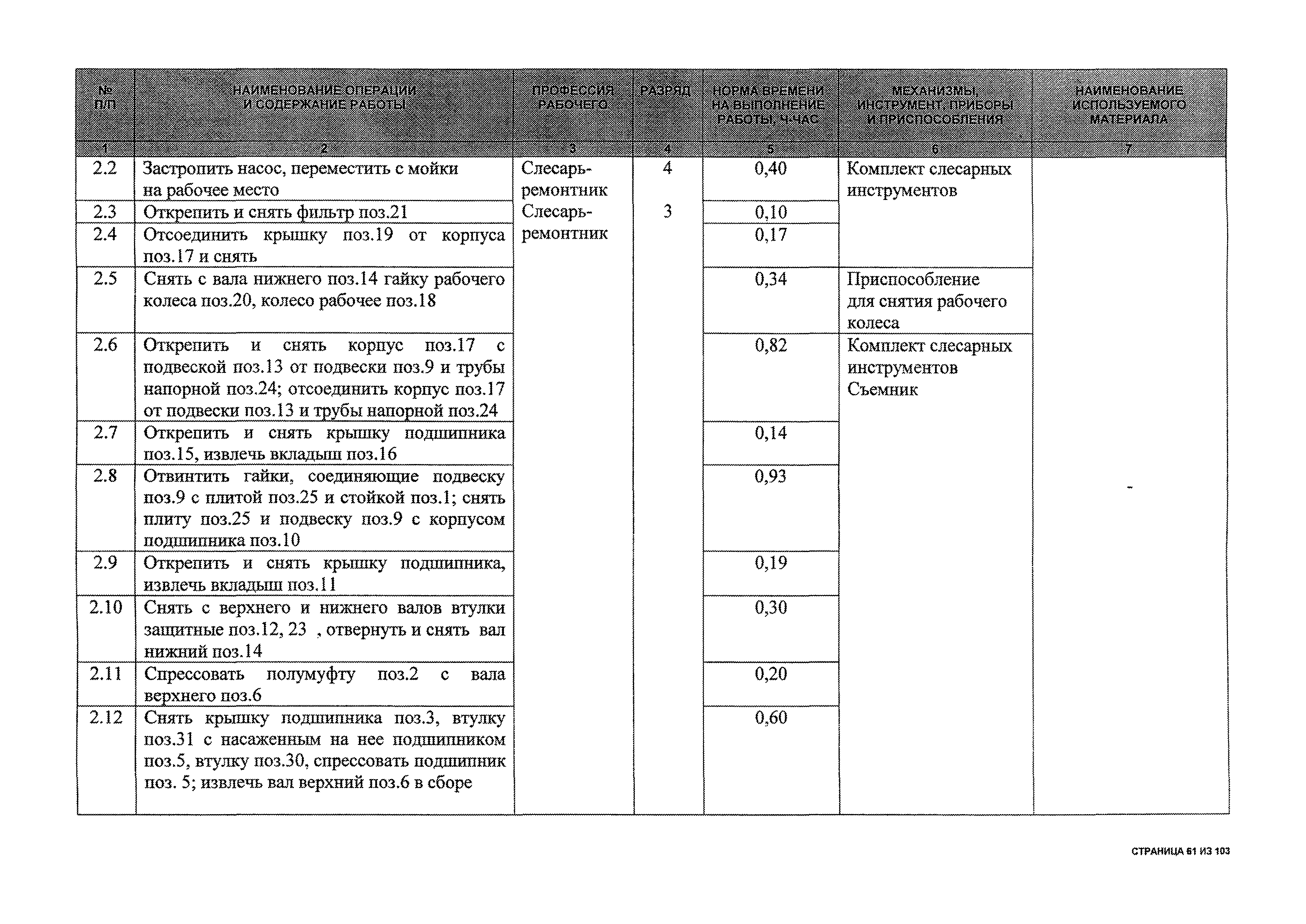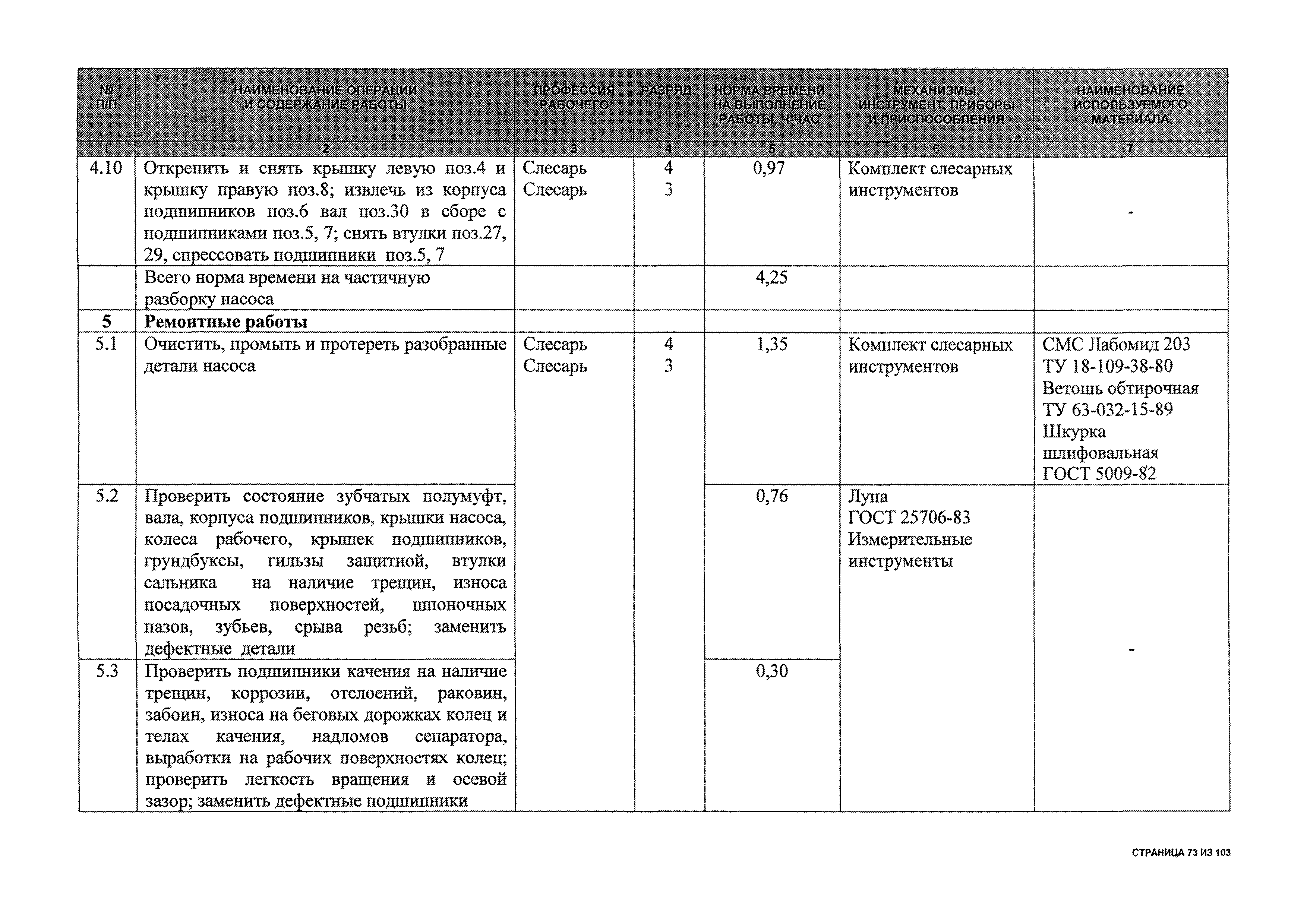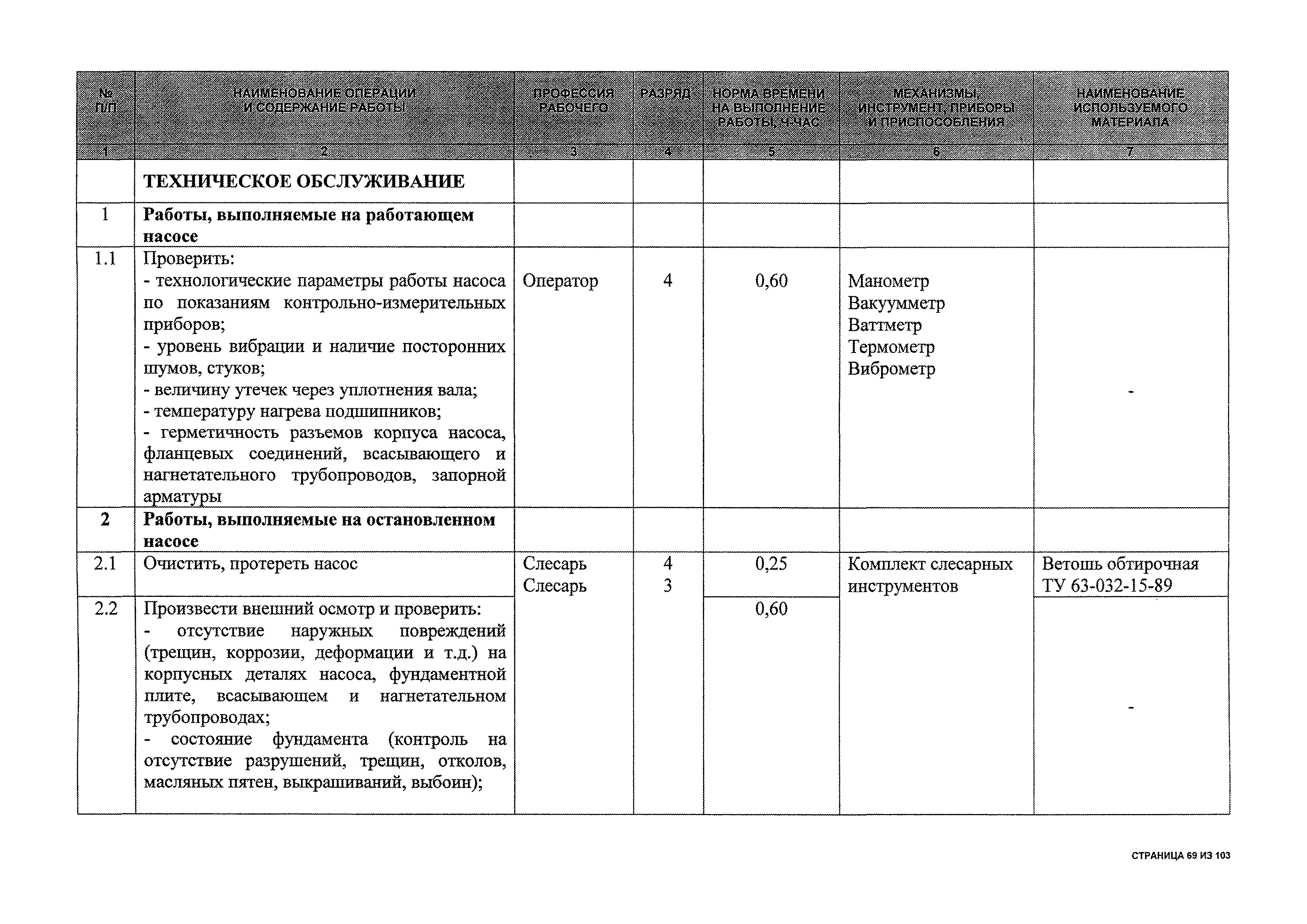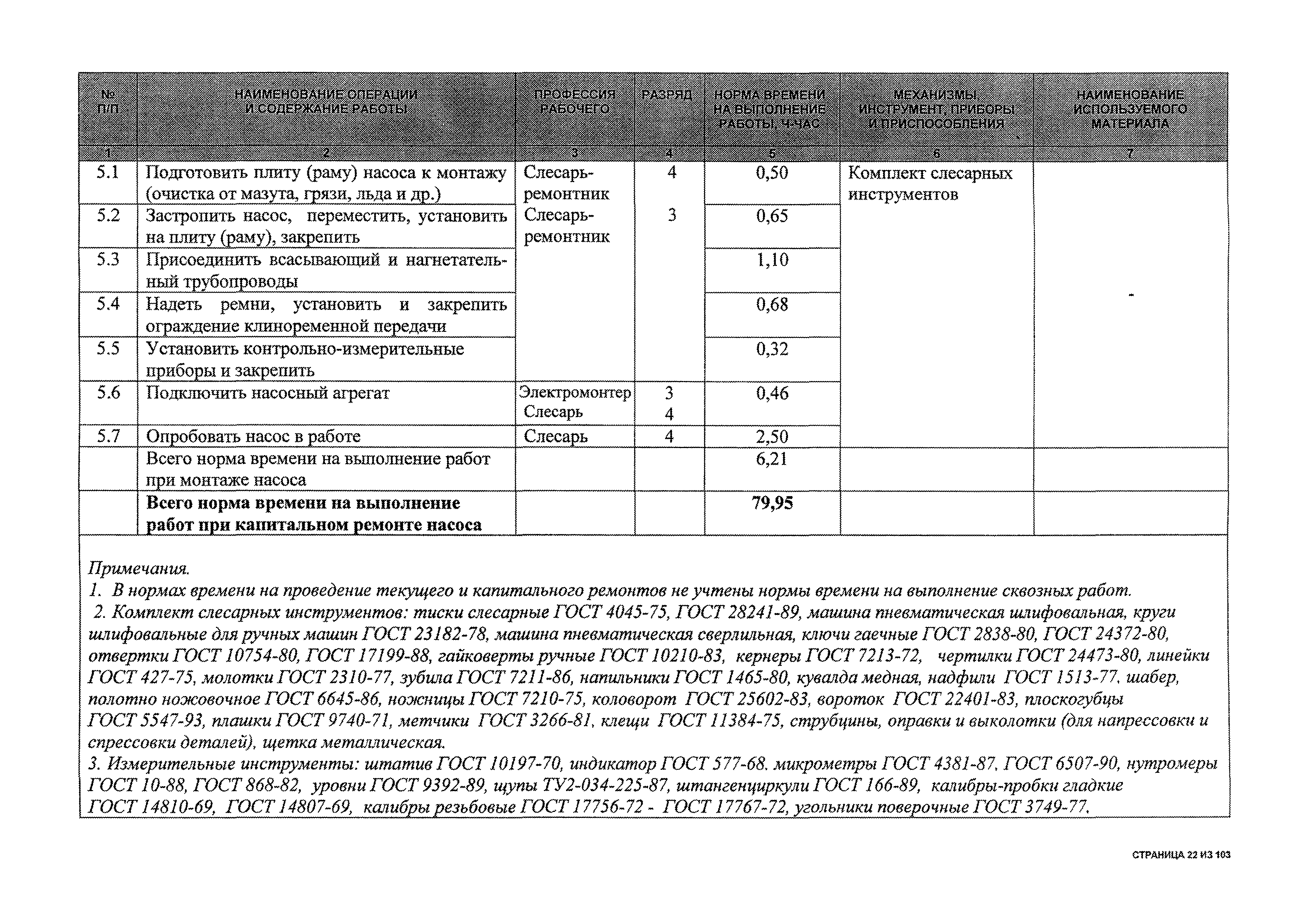 | Оглавление: | 1 Общая часть 2 Карты технического обслуживания, текущего и капитального ремонтов насосов: НБ-32 12НА-9Х4 10НД-6ХI АХП-45/31 НК560/300 3 Сквозные работы, выполняемые при ремонте насосов 3.1 Вырубка смазочных канавок крейцмейселем 3.2 Нарезание резьбы на стержнях плашкой 3.3 Калибровка резьбы на стержнях плашкой 3.4 Нарезание резьбы в сквозных отверстиях вручную 3.5 Калибровка резьбы в сквозных отверстиях вручную 3.6 Вырубка прямоугольных, фасонных и круглых прокладок 3.7 Пробивка отверстий в прокладках 3.8 Удаление сломанных шпилек, болтов 3.9 Шабрение разъема корпуса насоса 3.10 Подгонка и установка призматических шпонок 3.11 Заливка вкладышей баббитом 3.12 Шабрение бронзовых втулок 3.13 Шабрение бронзовых вкладышей 3.14 Ремонт торцовых уплотнений 3.15 Правка вала 3.16 Балансировка рабочих колес 3.17 Восстановление деталей насоса наплавкой электродами диаметром 4 мм 3.18 Покраска насоса после ремонта |